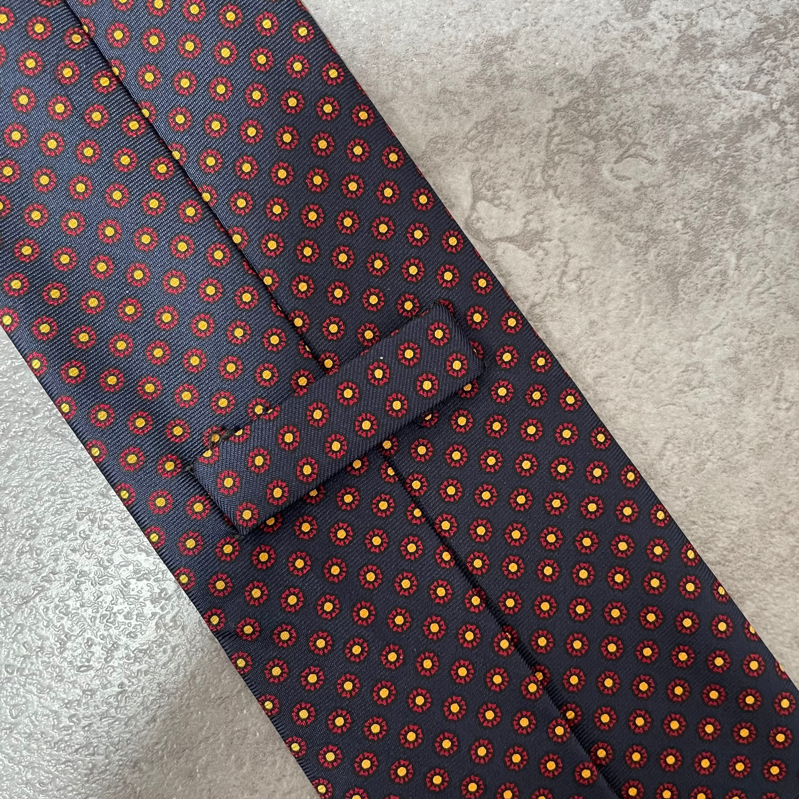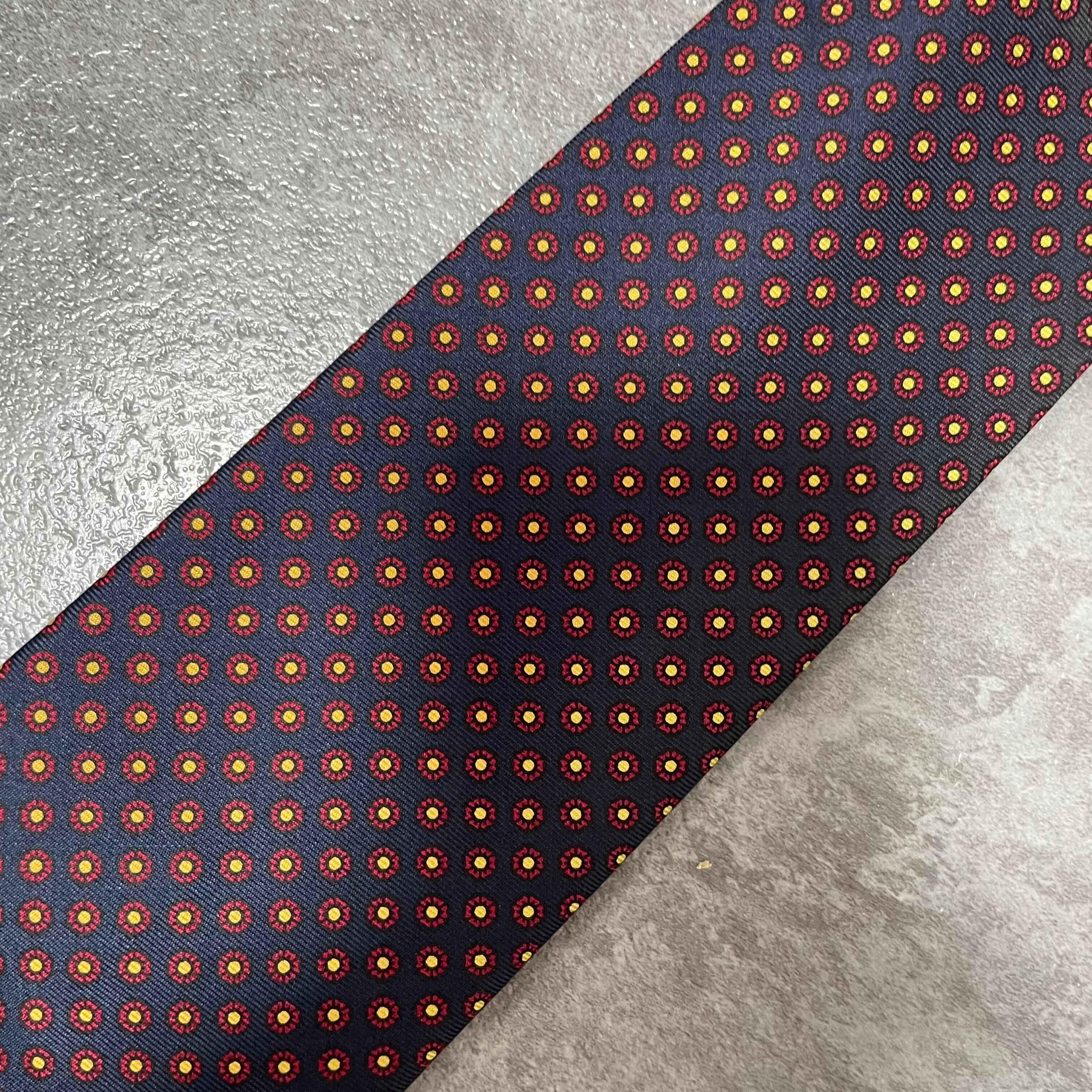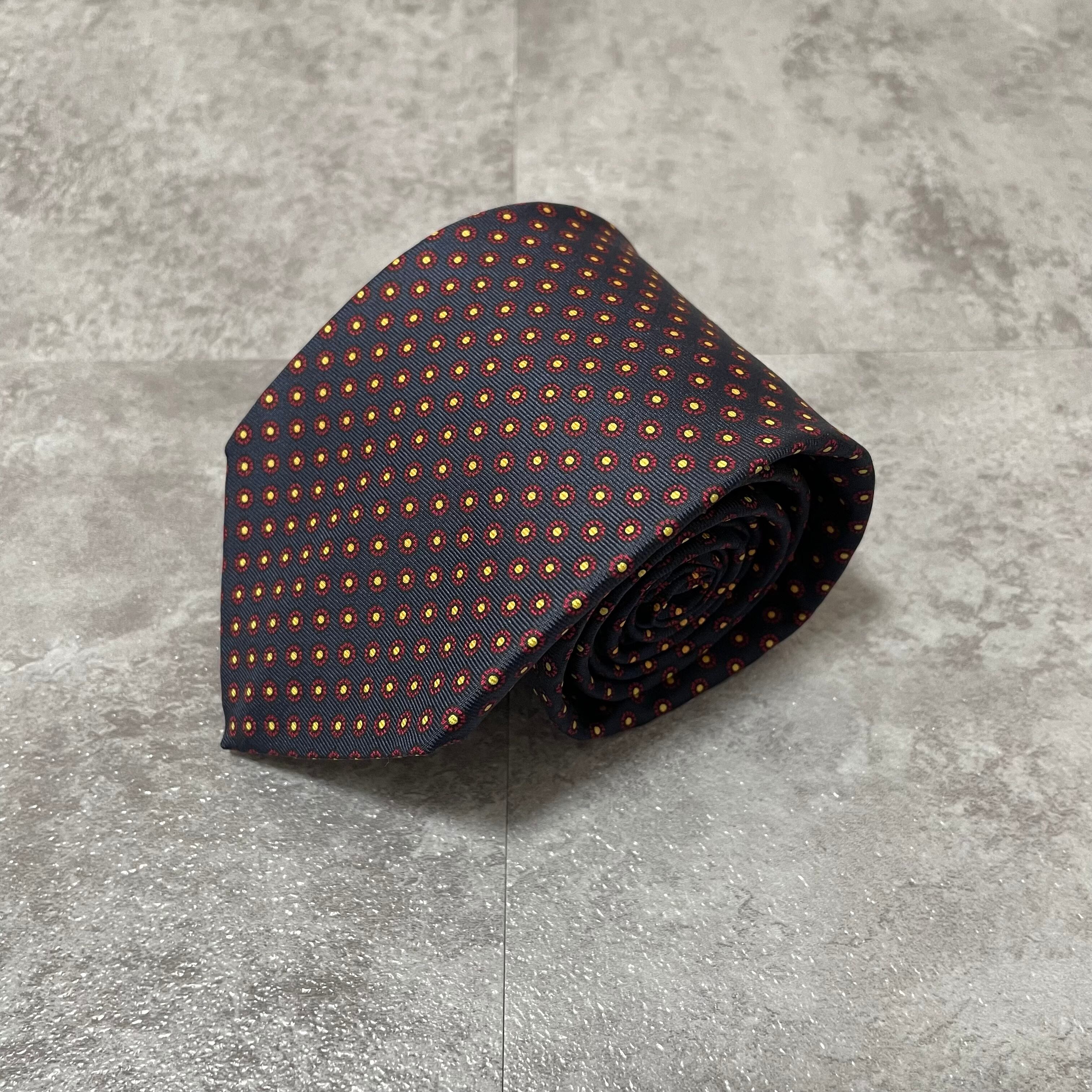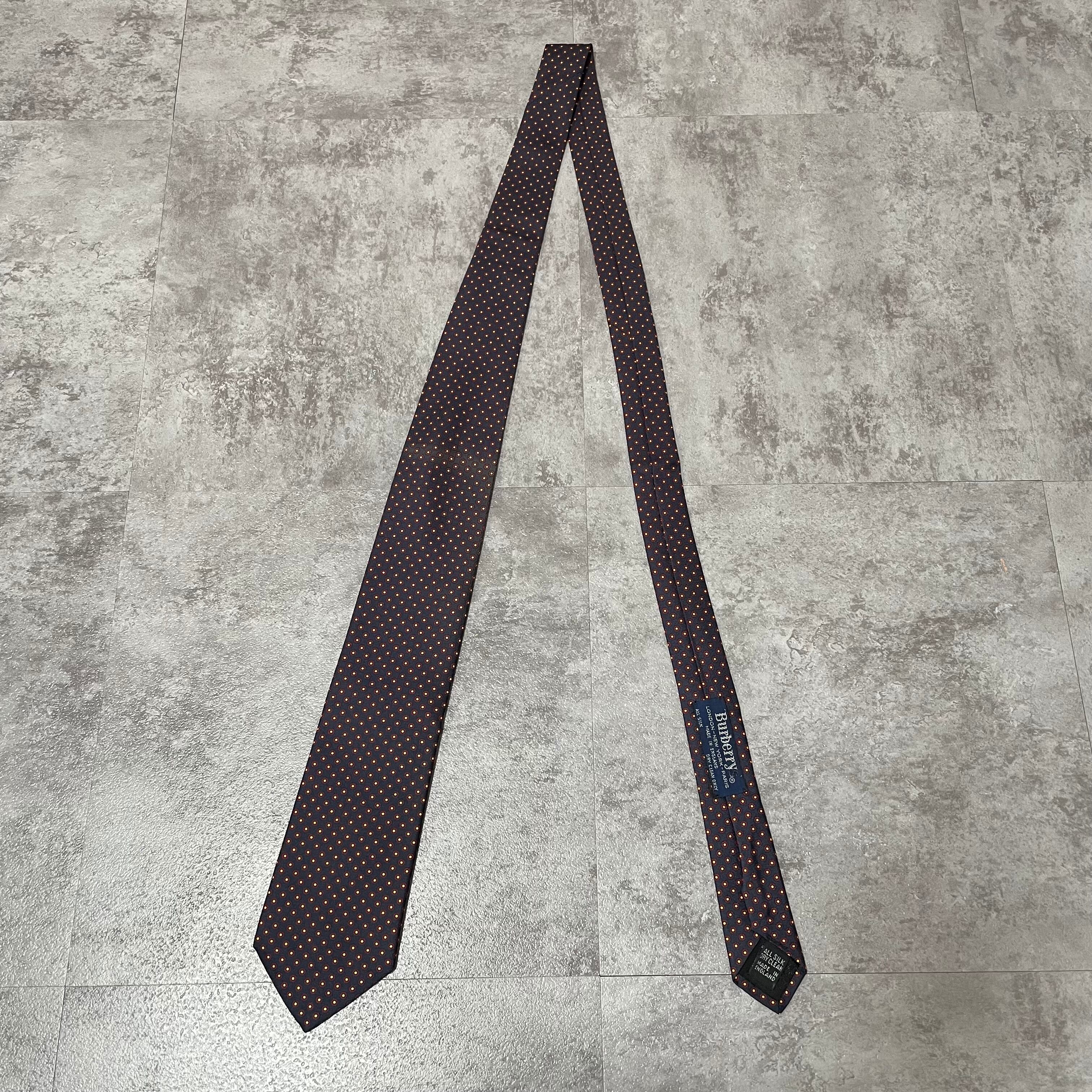 【Burberry】小紋柄チェックネクタイ ネイビー バイカラー 紺色 レッド 赤 ビジネス向け バーバリー ドット柄