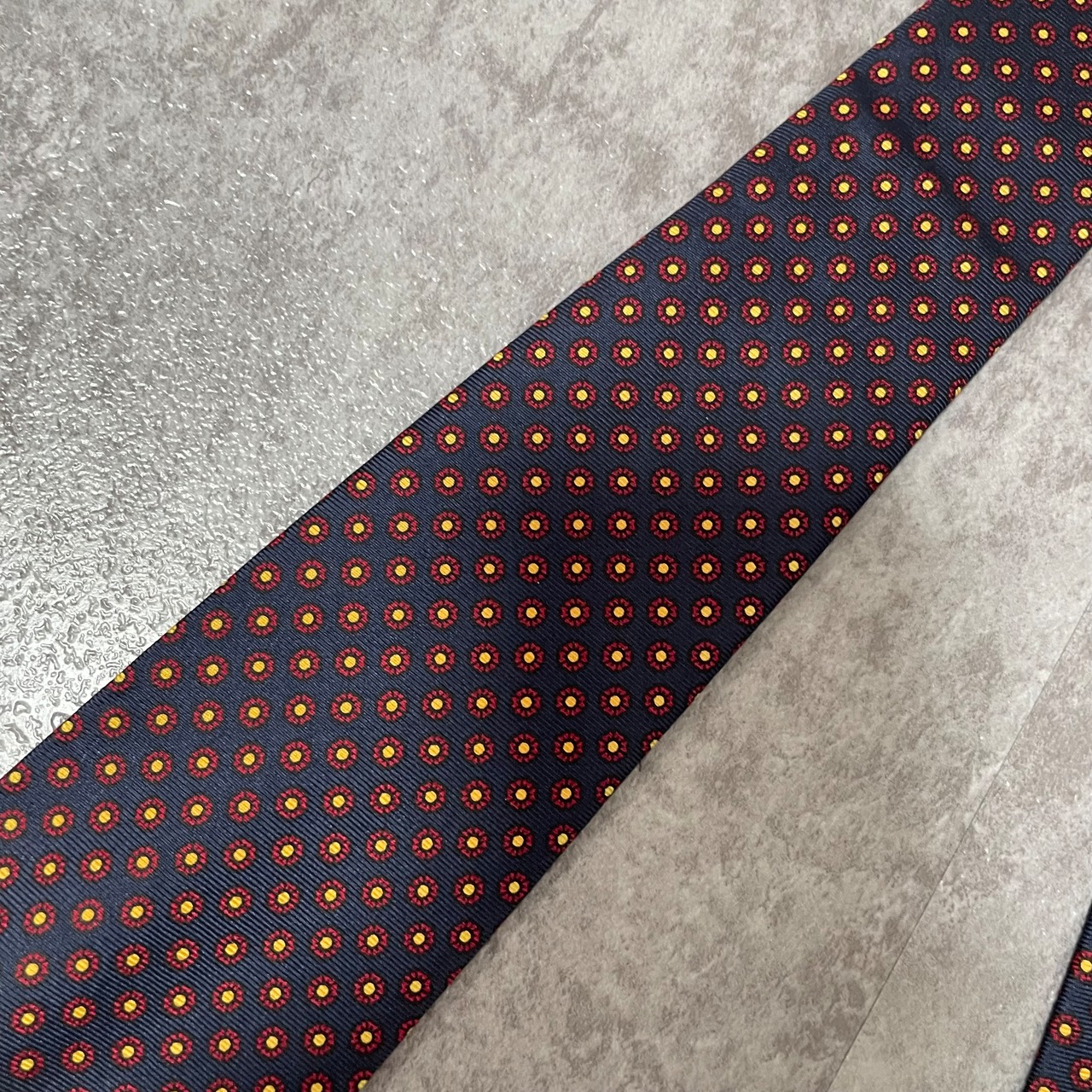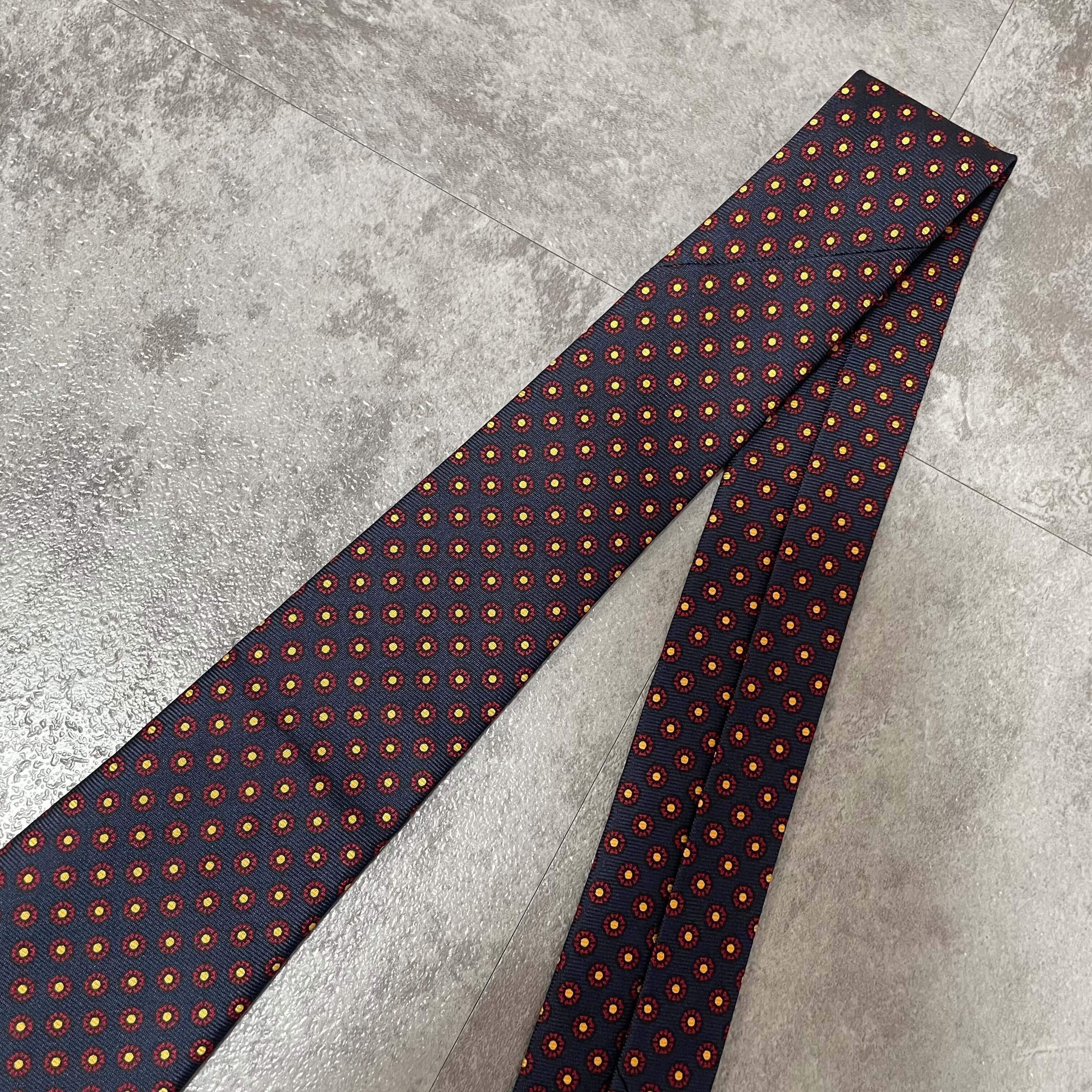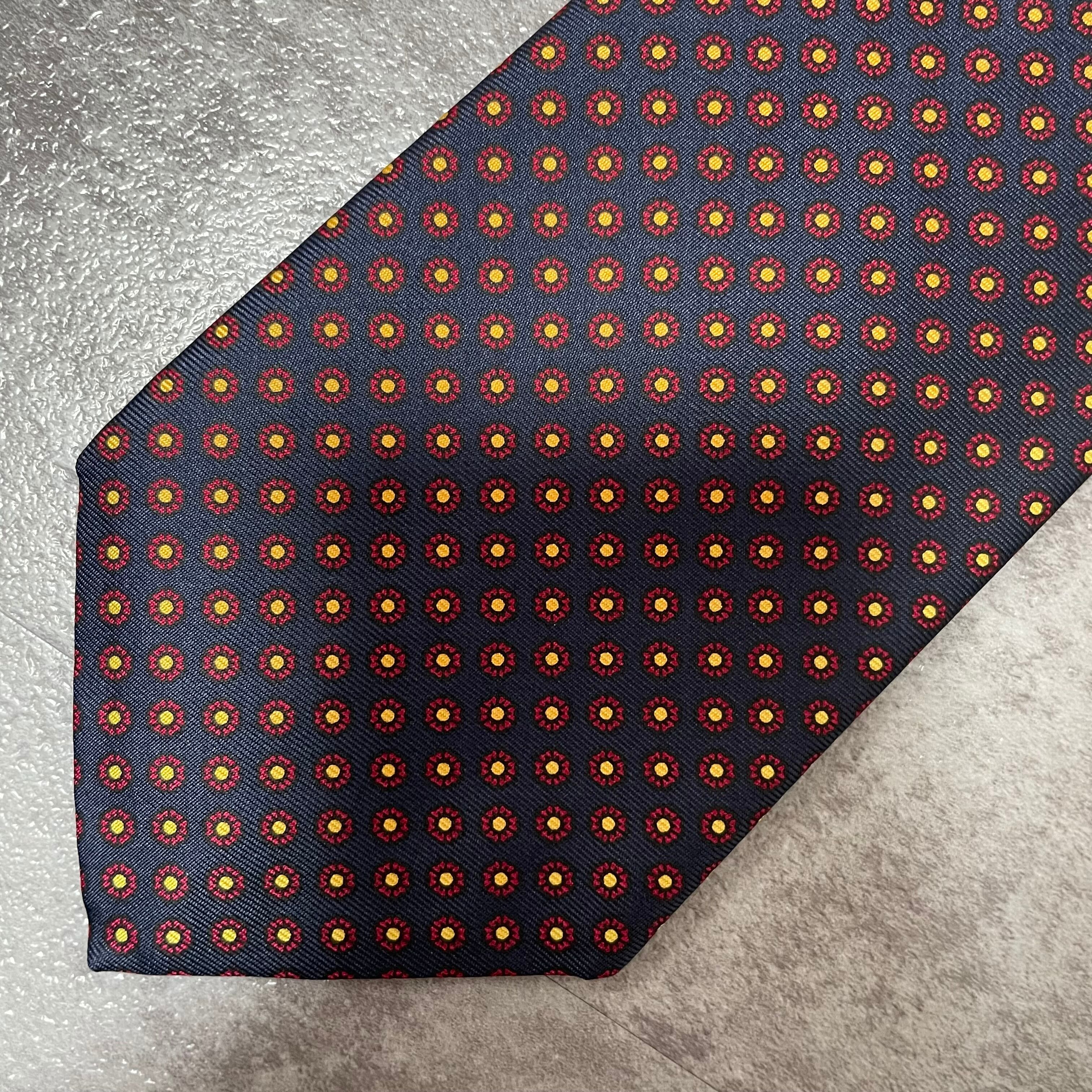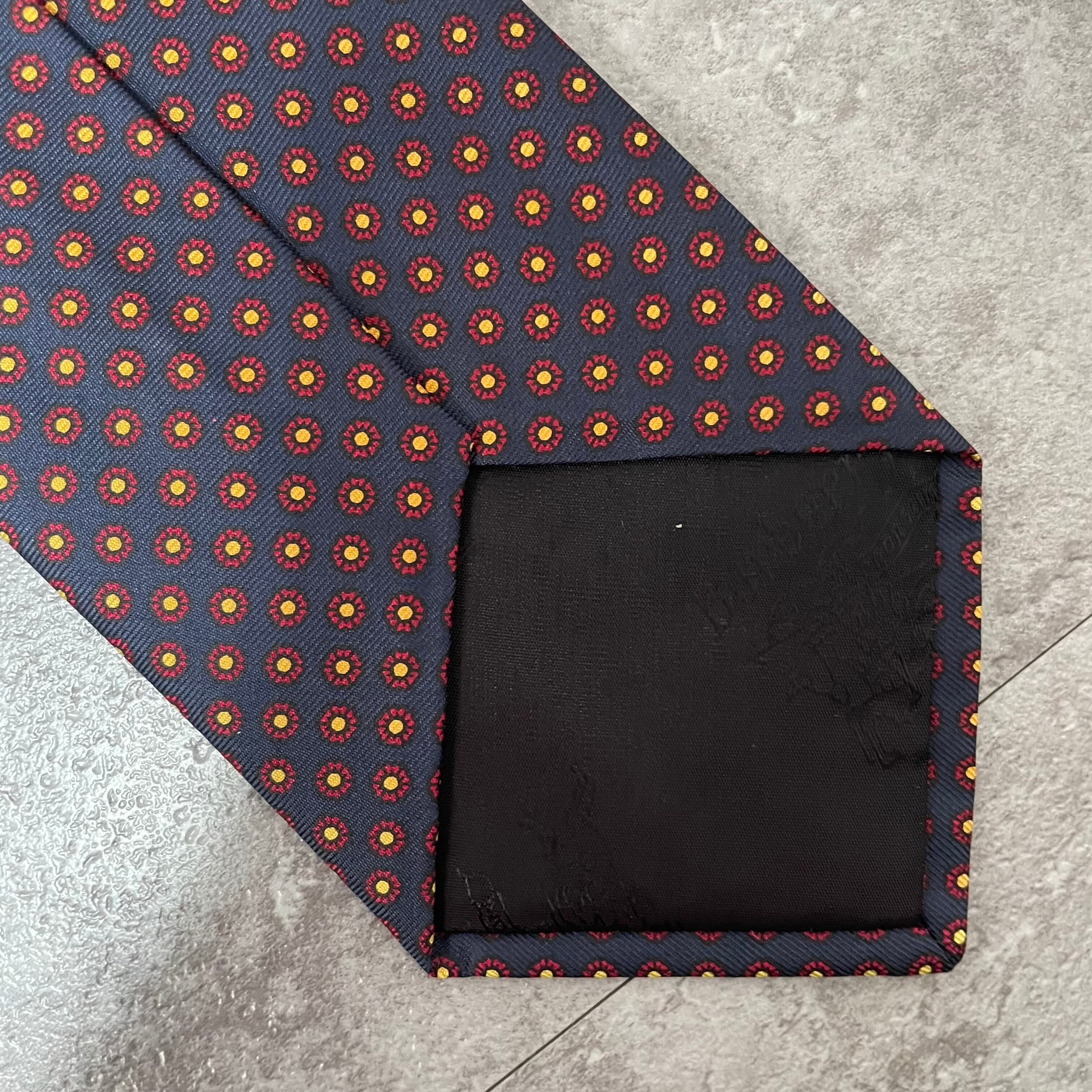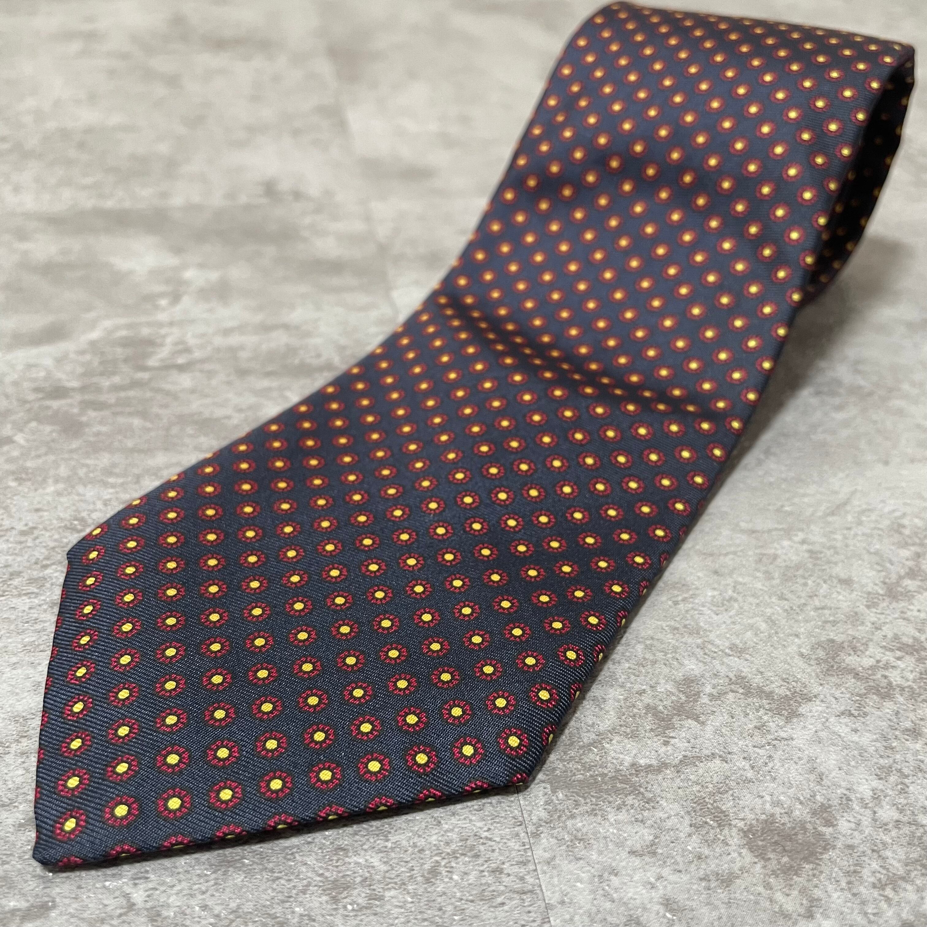 【Burberry】小紋柄チェックネクタイ ネイビー バイカラー 紺色 レッド 赤 ビジネス向け バーバリー ドット柄