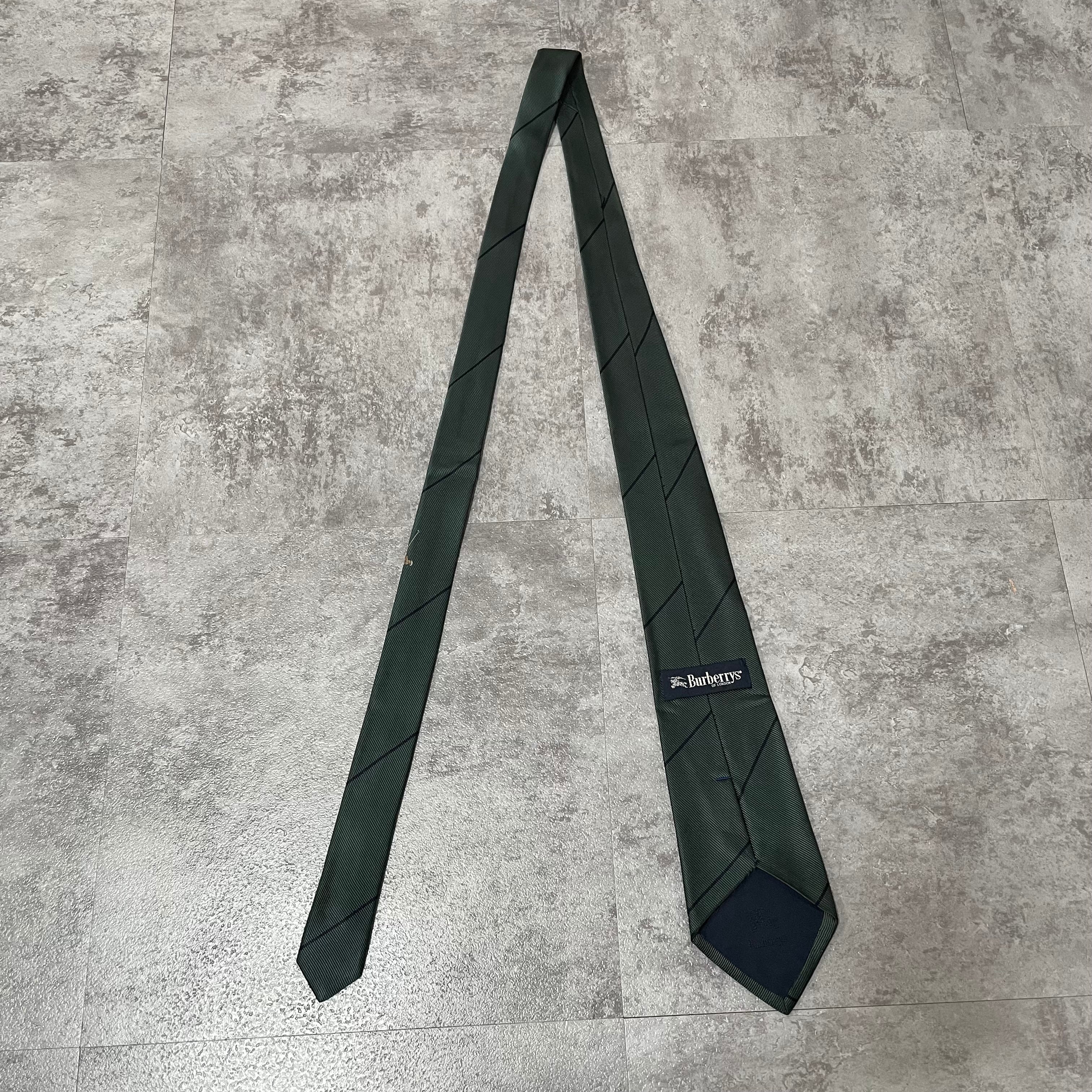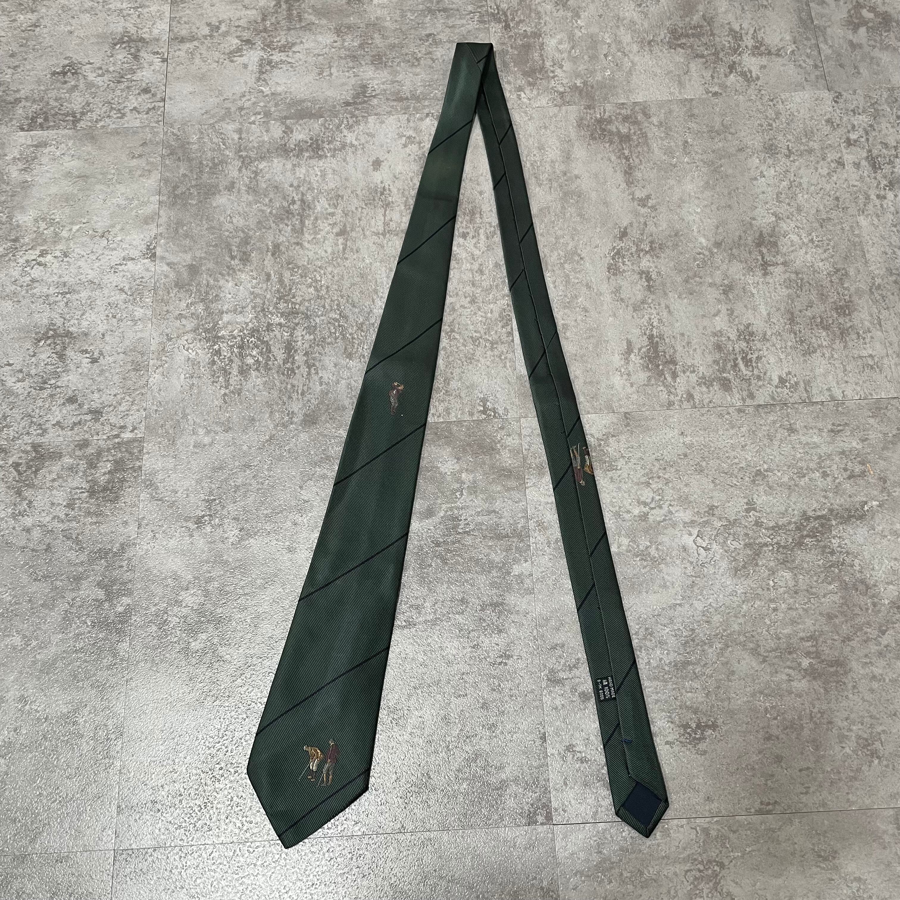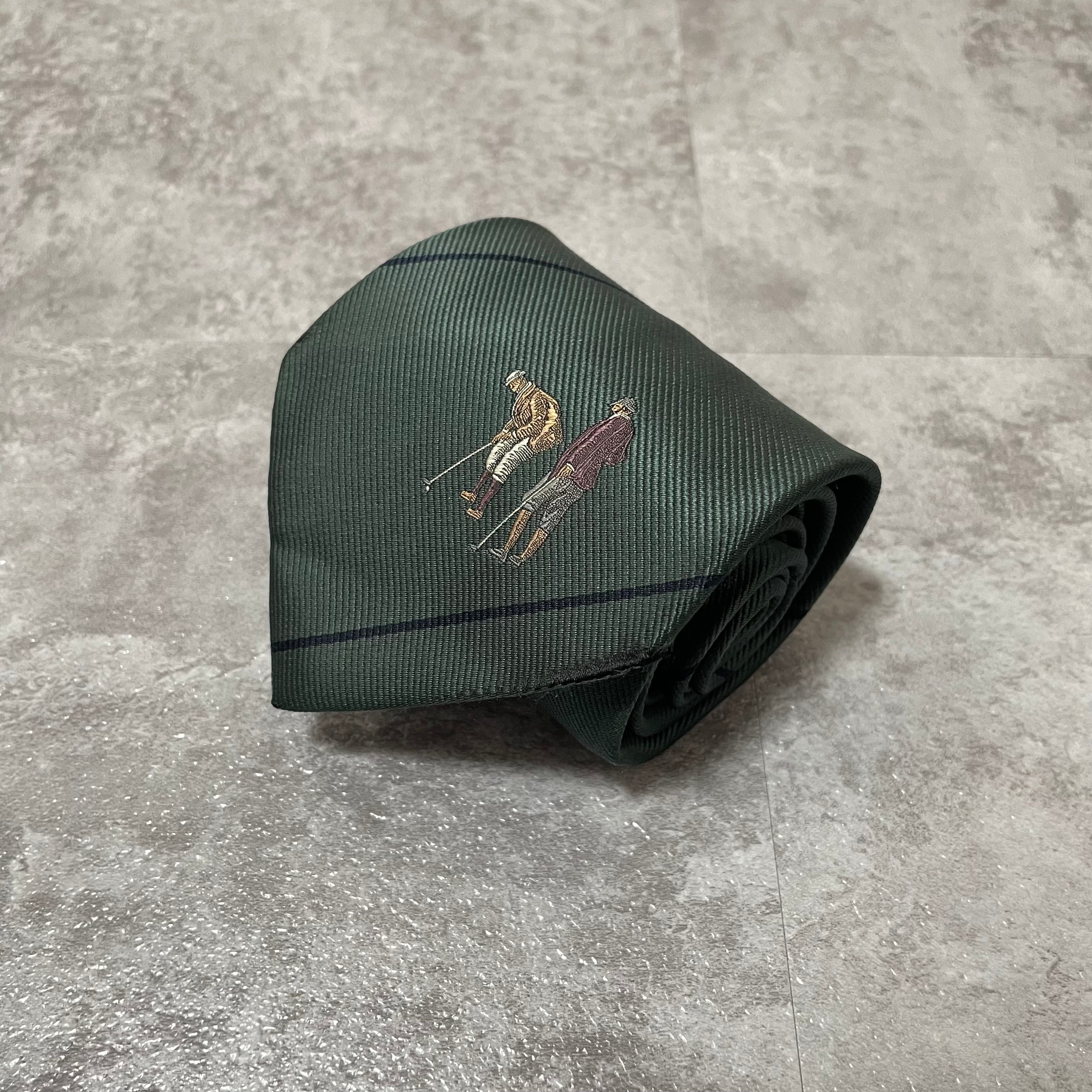 【Burberry】レジメンタルストライプネクタイ ビジネス向け グリーン 緑 ゴルフモチーフ 刺繍 バーバリー