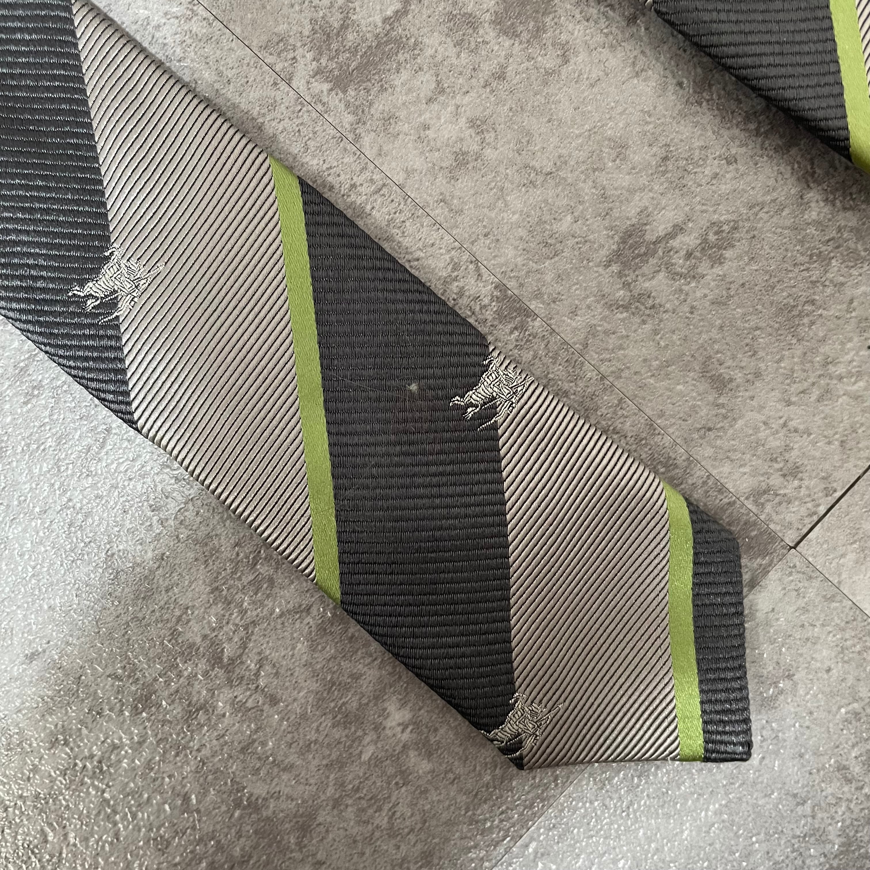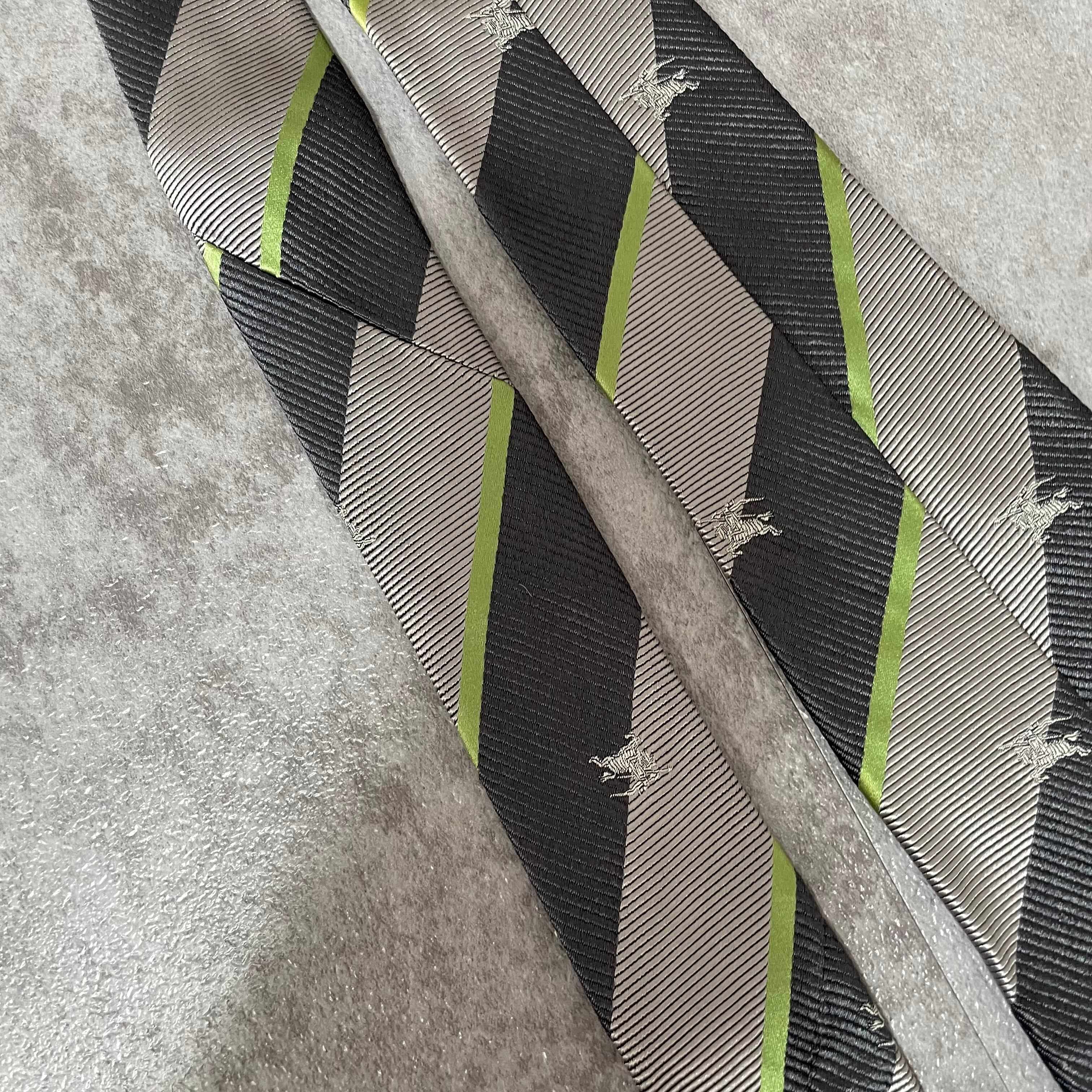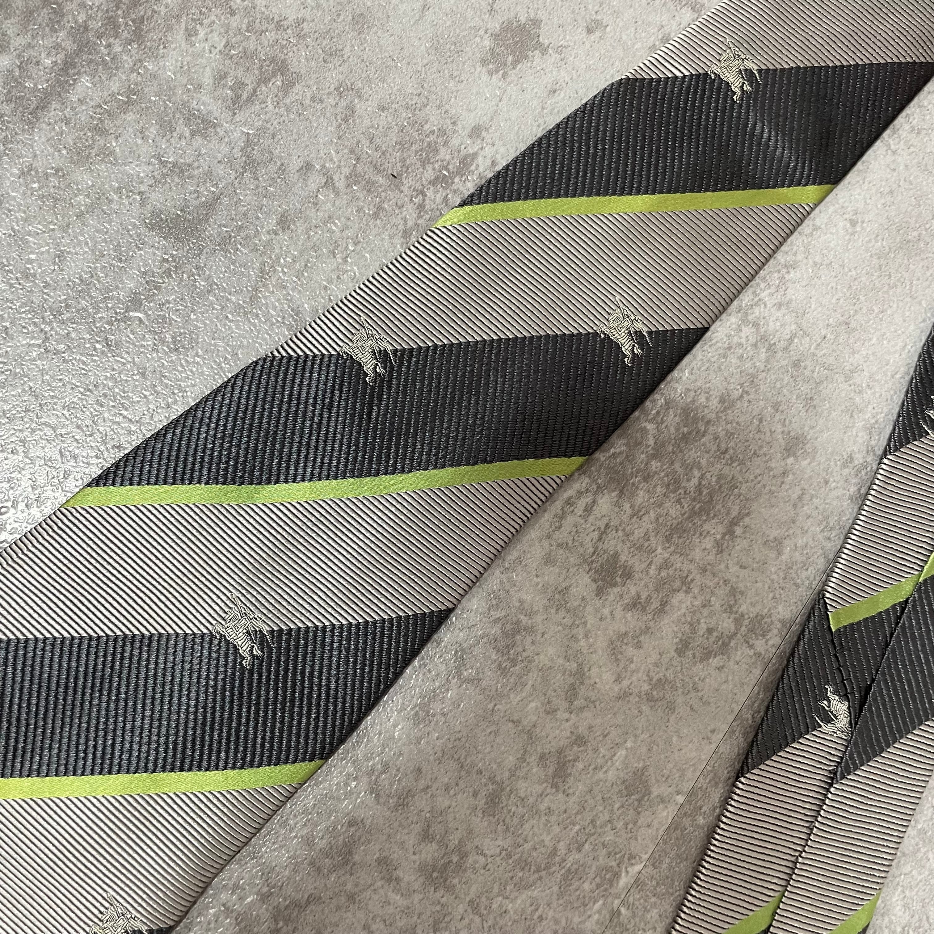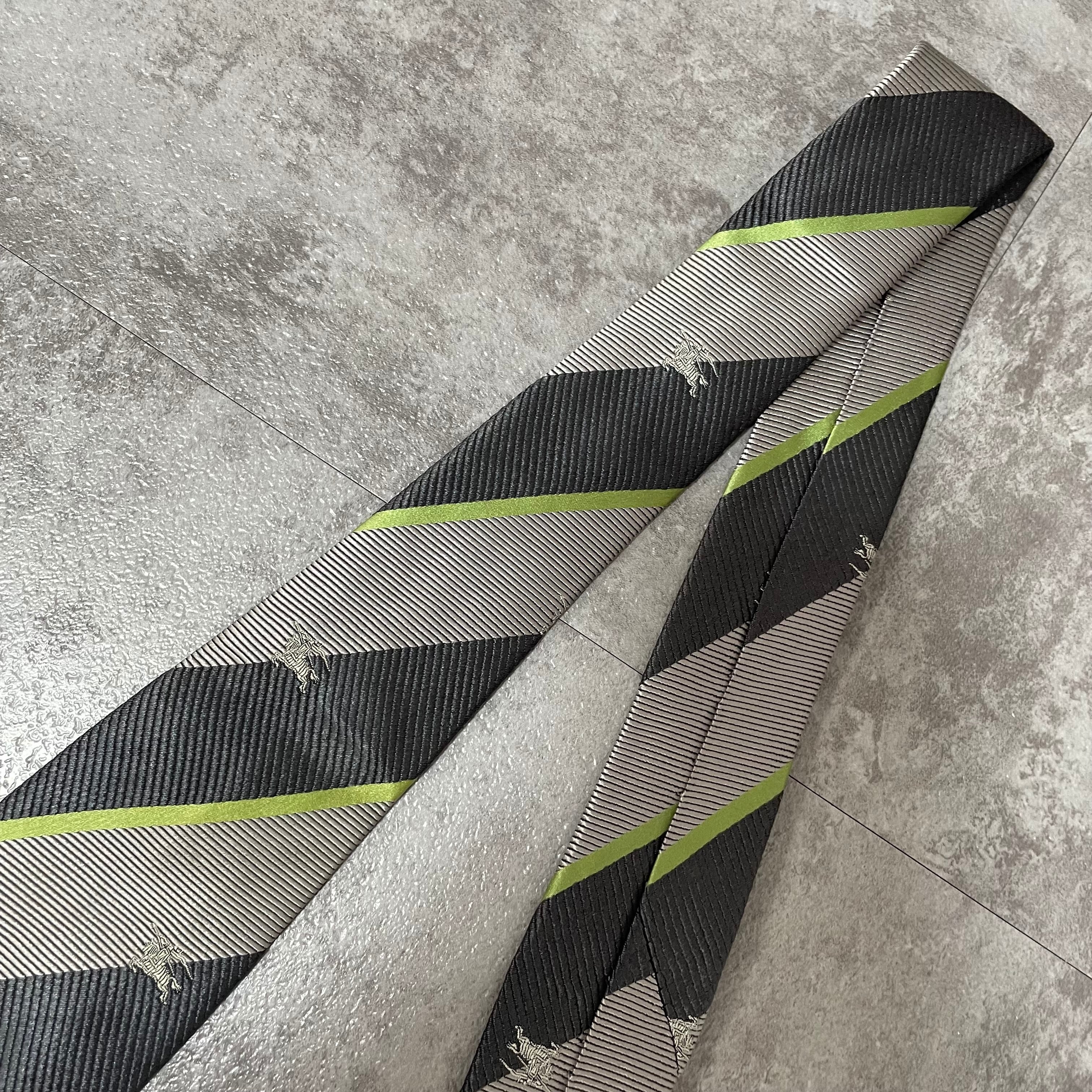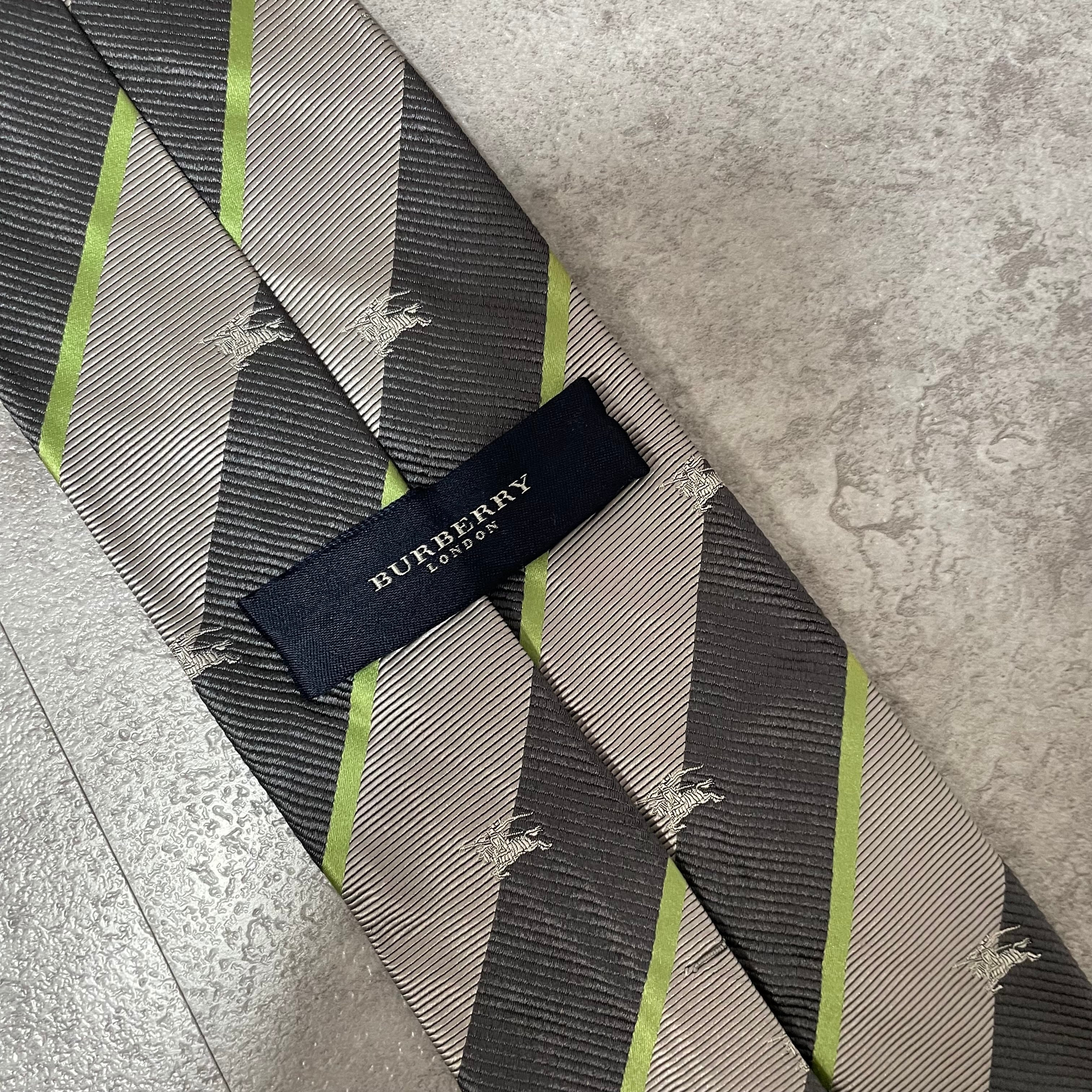 【Burberry】レジメンタルストライプネクタイ ビジネス向け バイカラー グレー 灰色 シルバー 銀色 グリーン 緑 バーバリー ホースロゴ入り