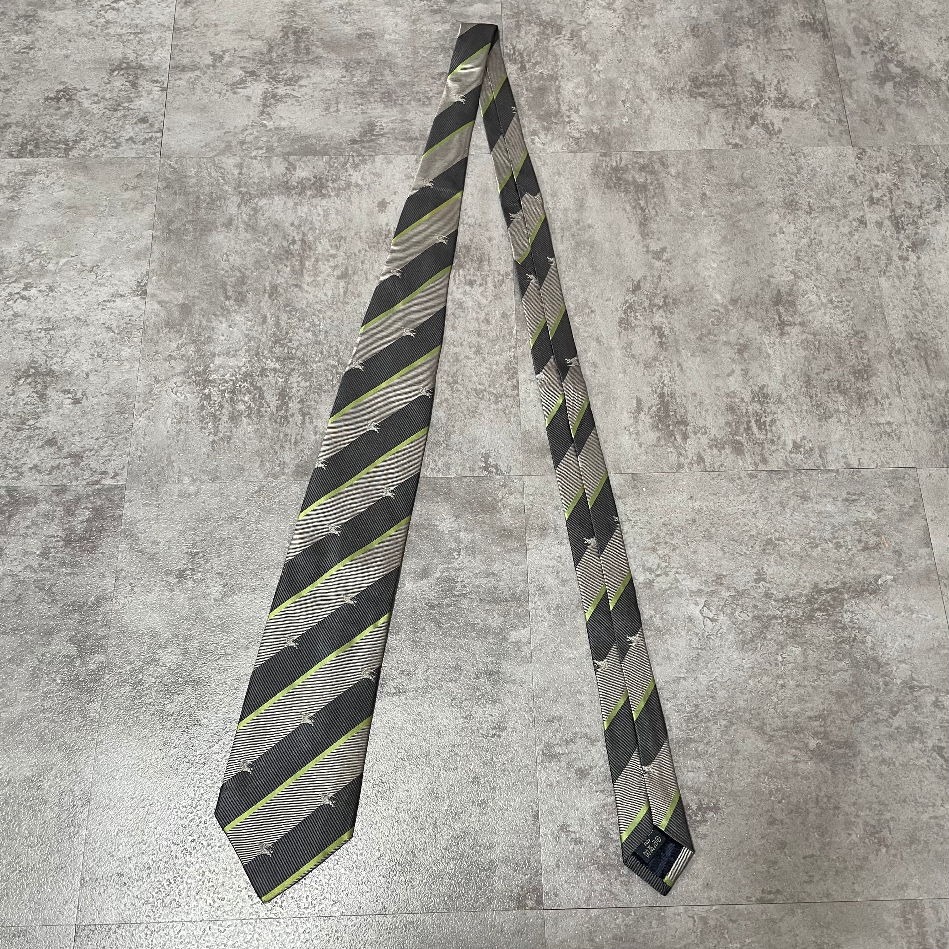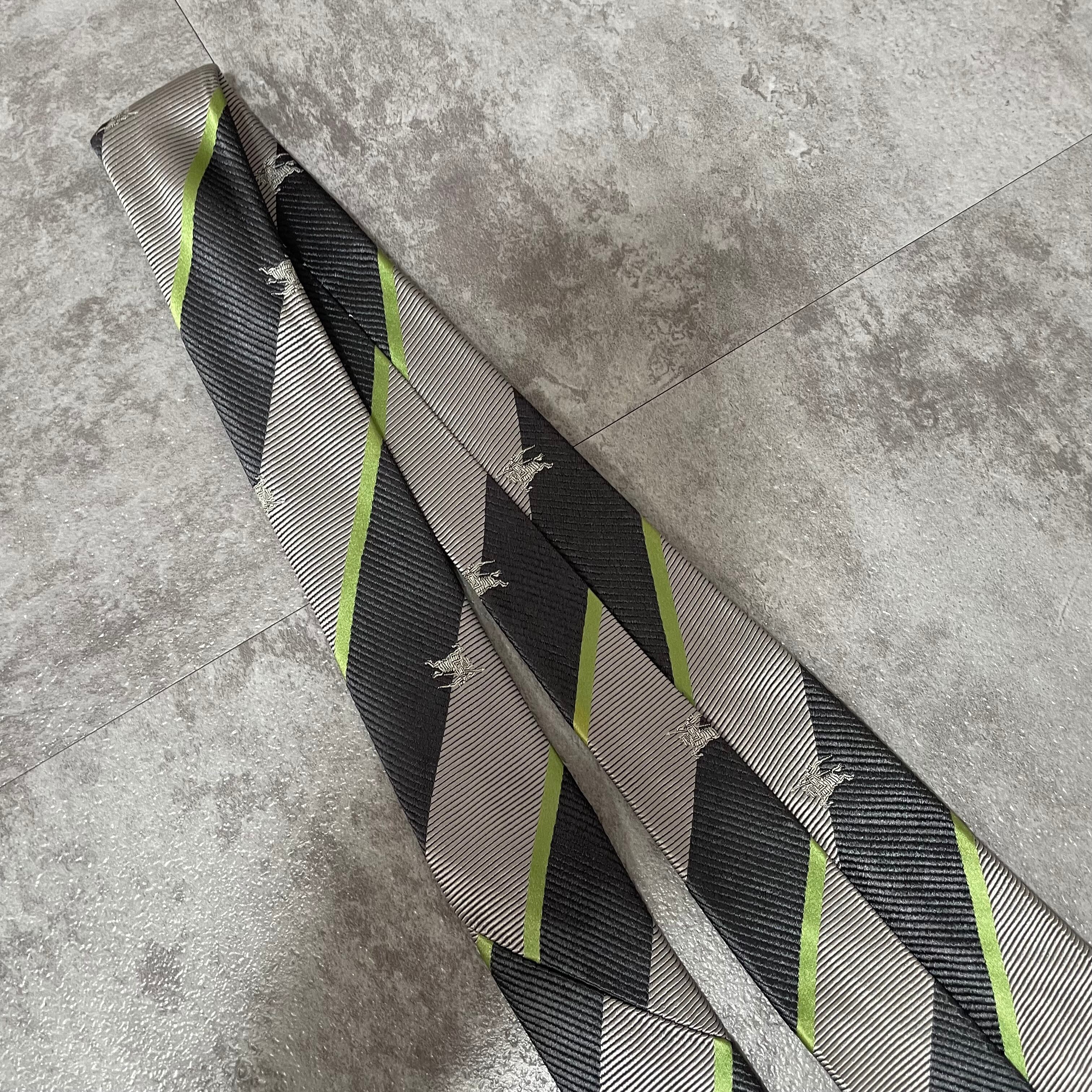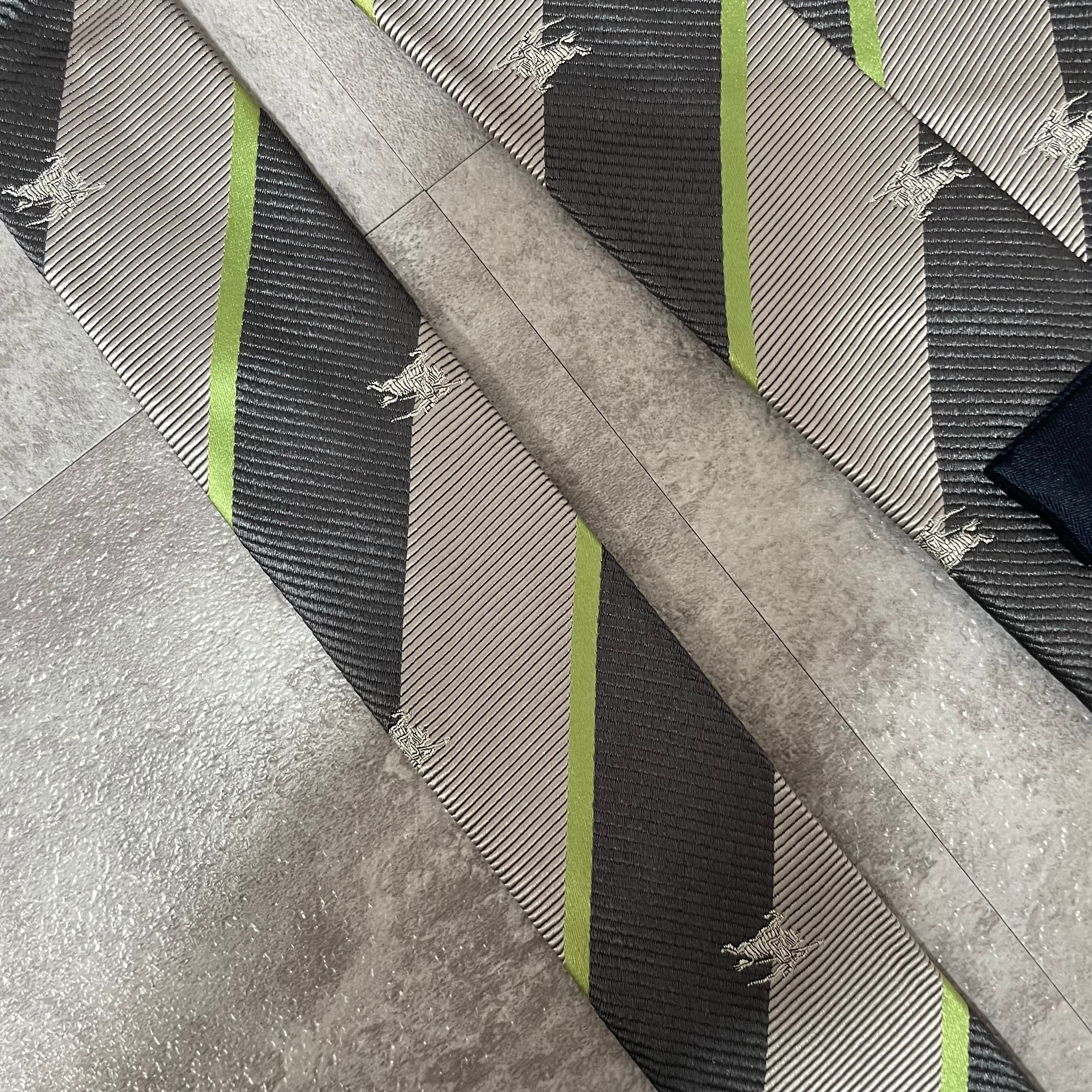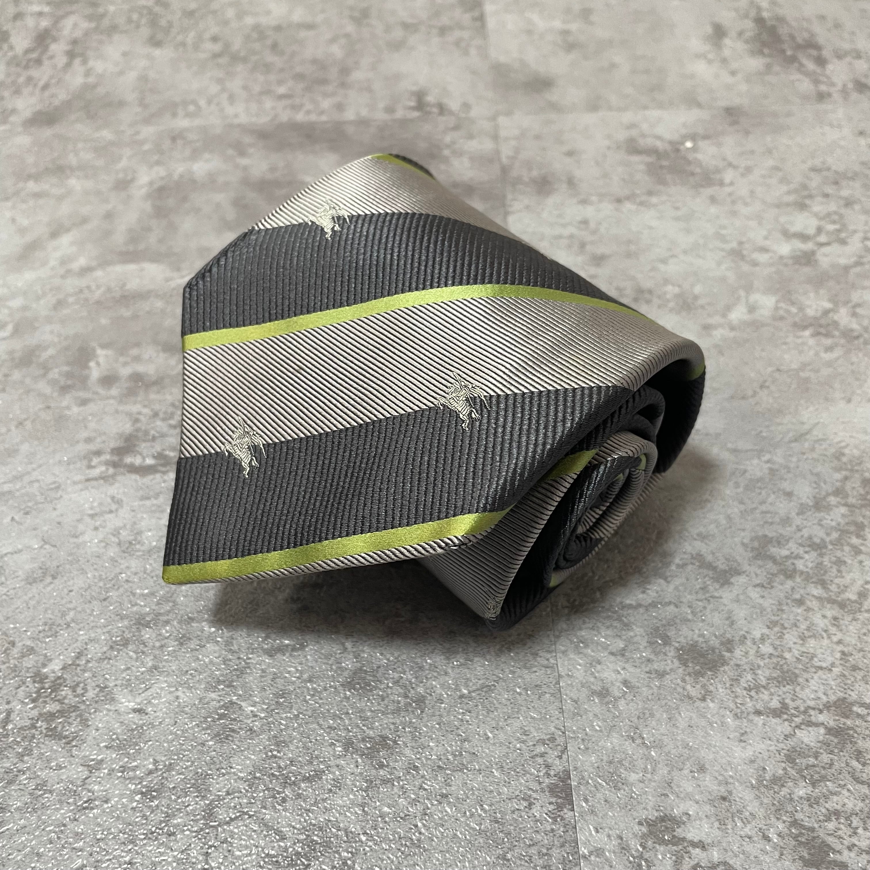 【Burberry】レジメンタルストライプネクタイ ビジネス向け バイカラー グレー 灰色 シルバー 銀色 グリーン 緑 バーバリー ホースロゴ入り