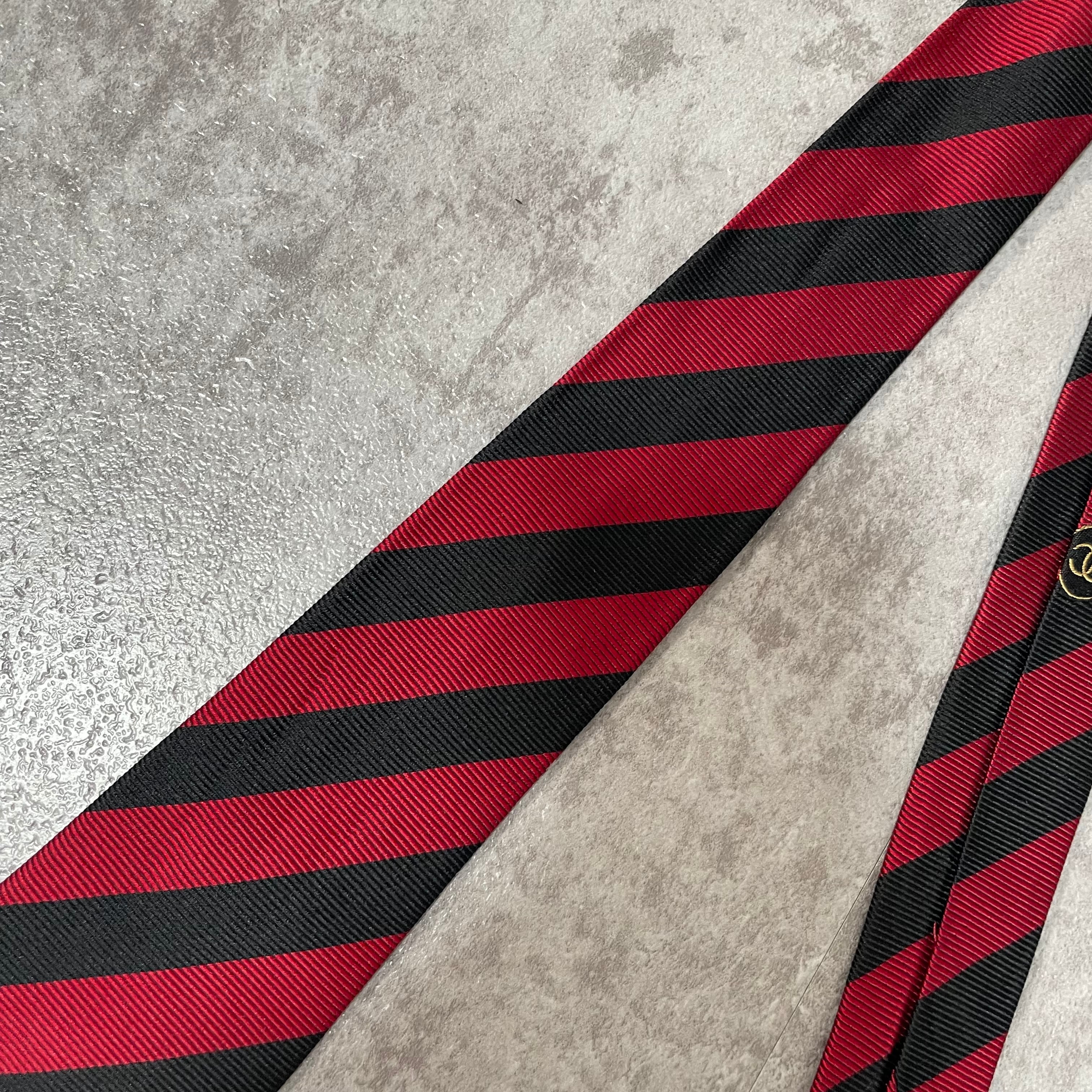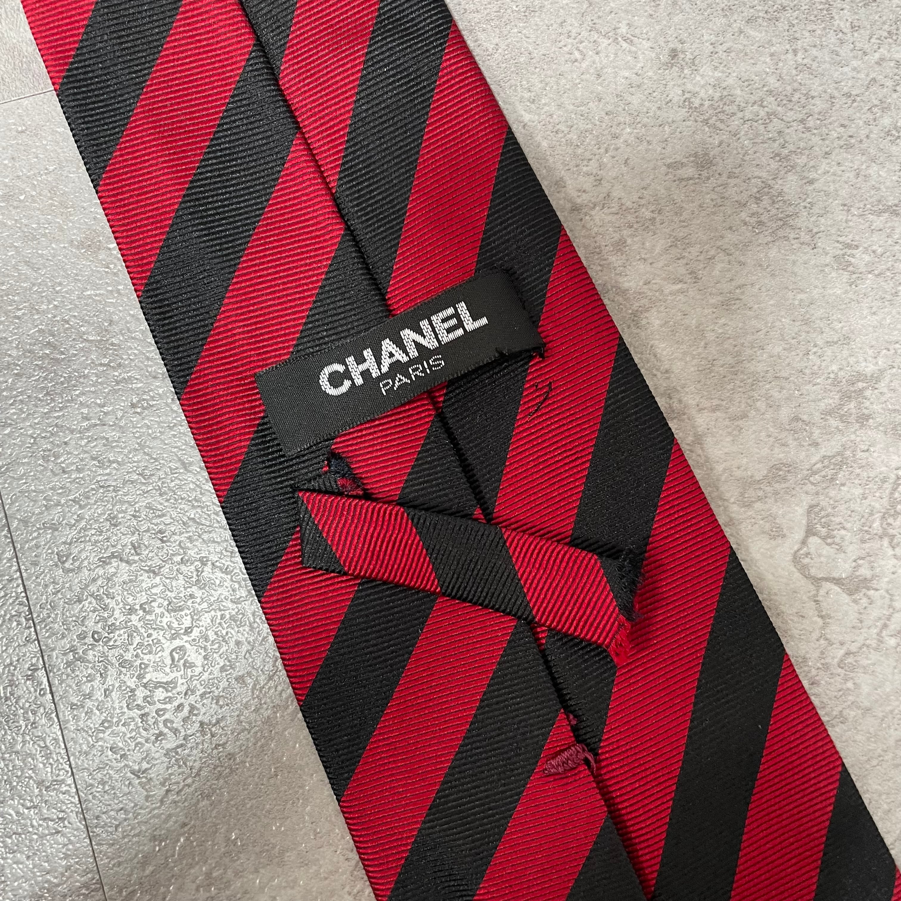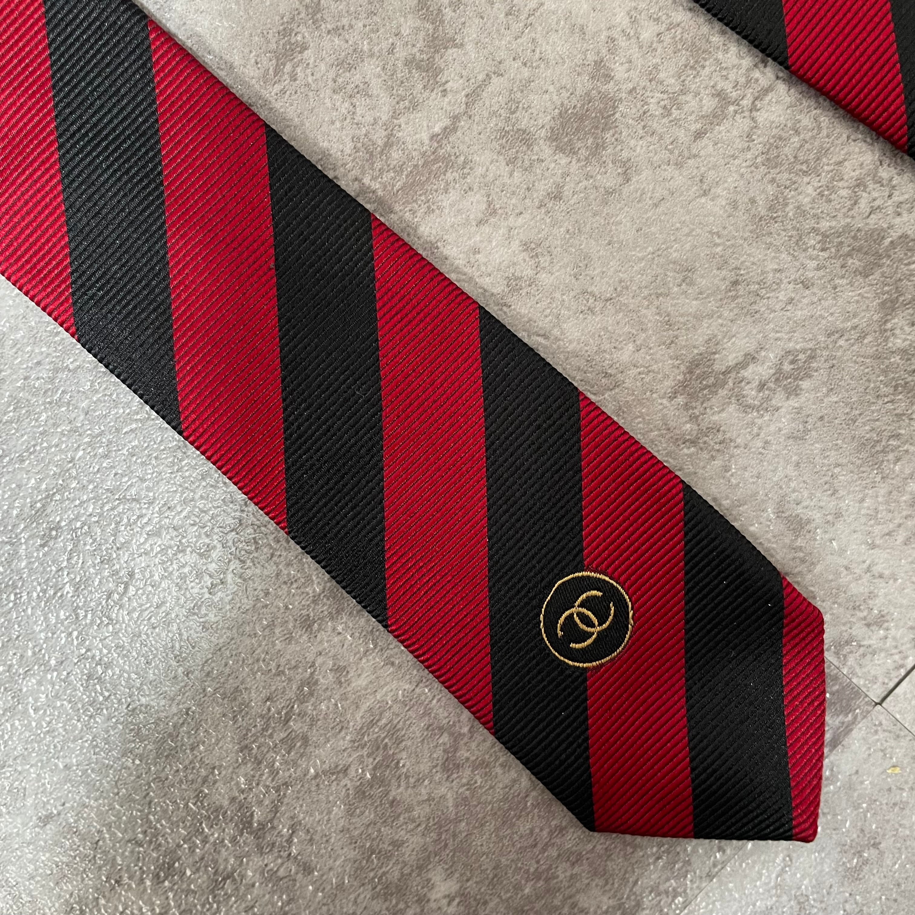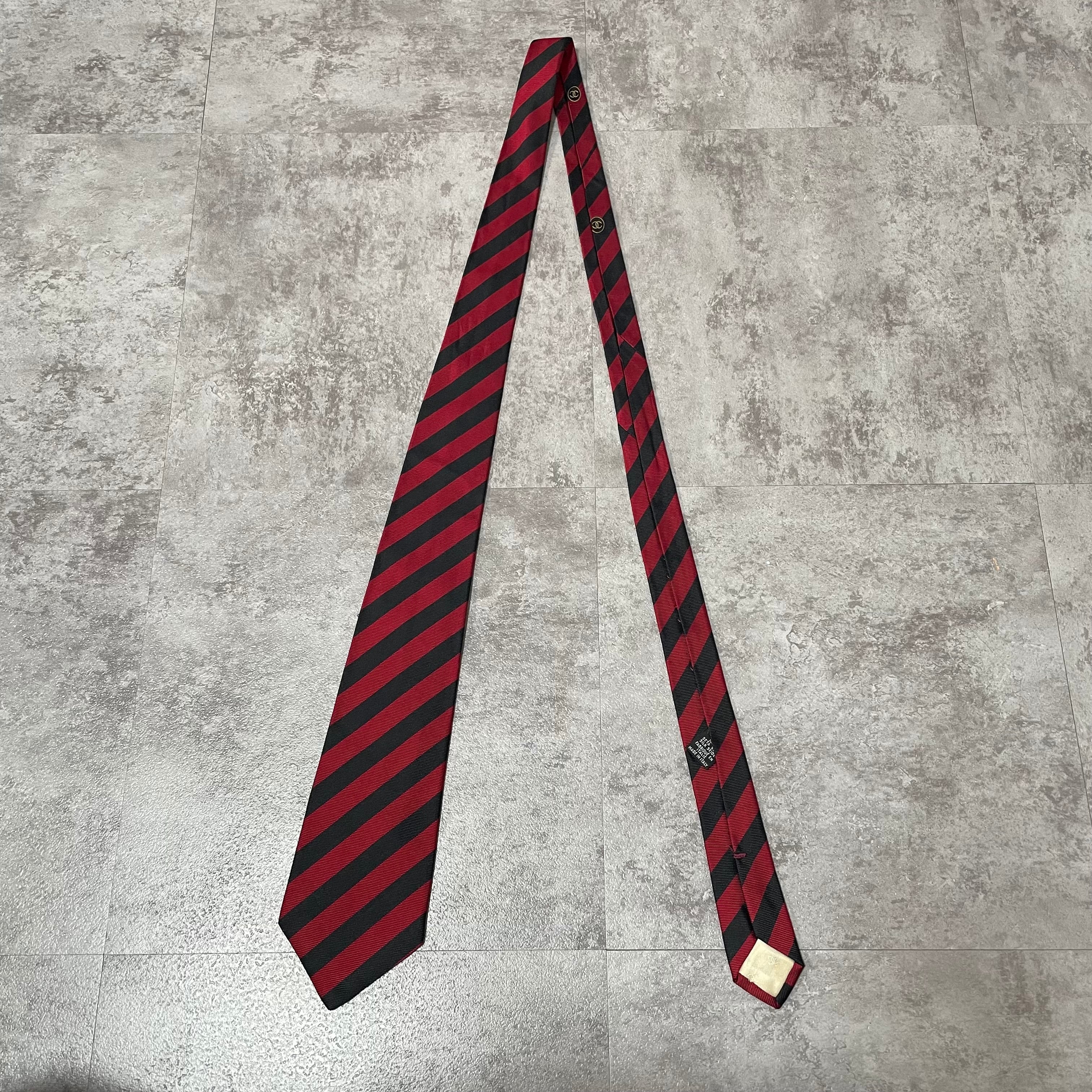 【CHANEL】レジメンタルストライプネクタイ ビジネス向け バイカラー レッド ブラック 赤黒 ココマーク シャネル
