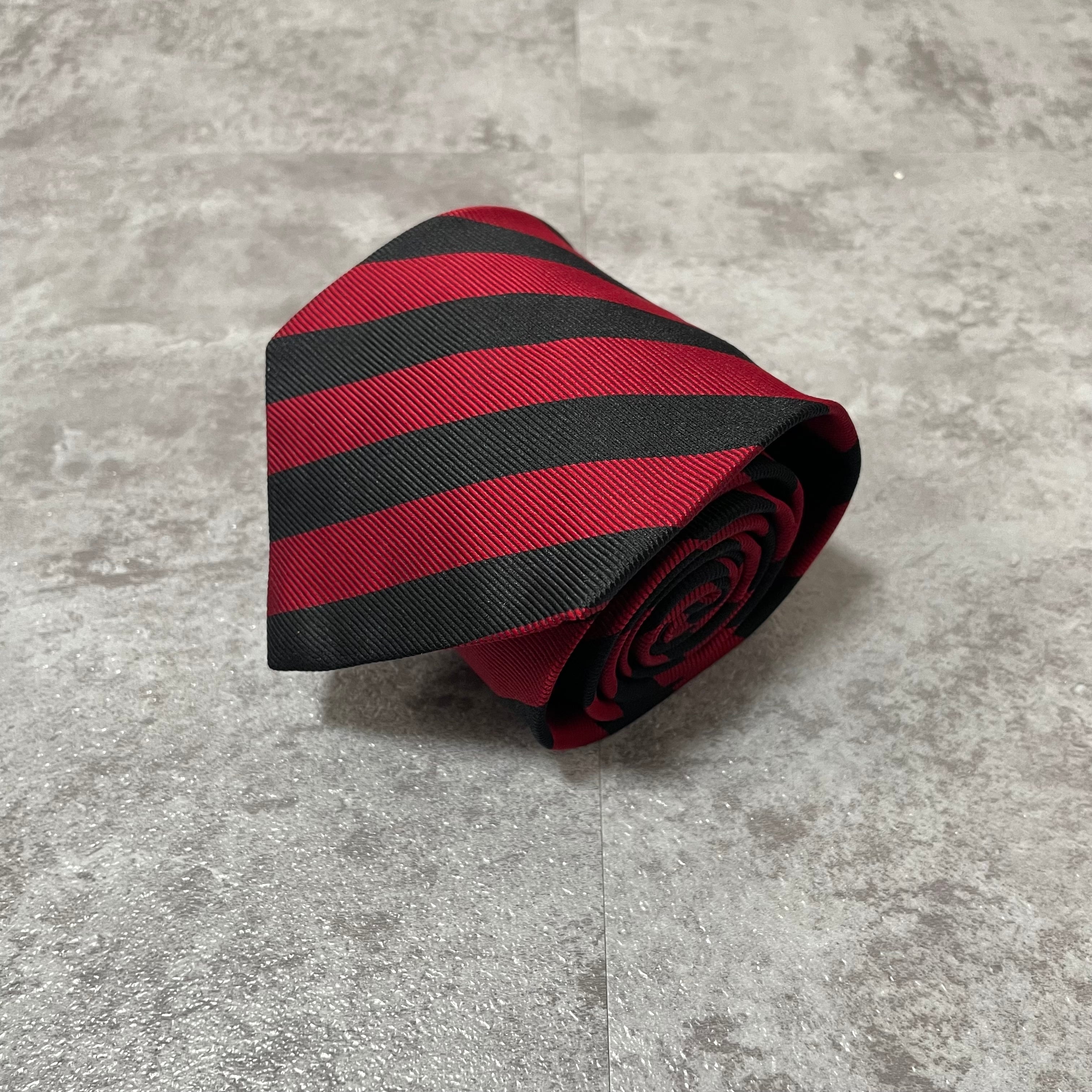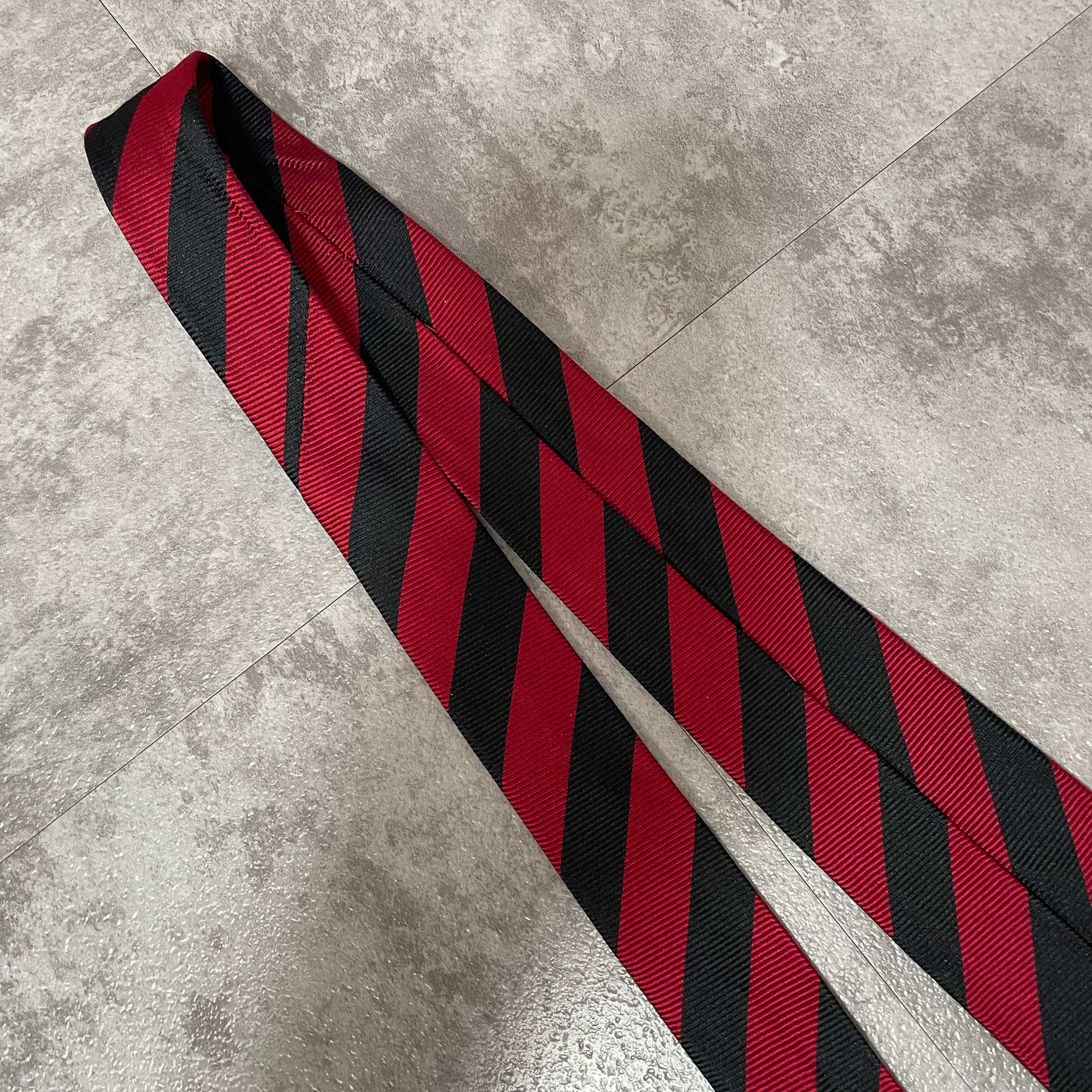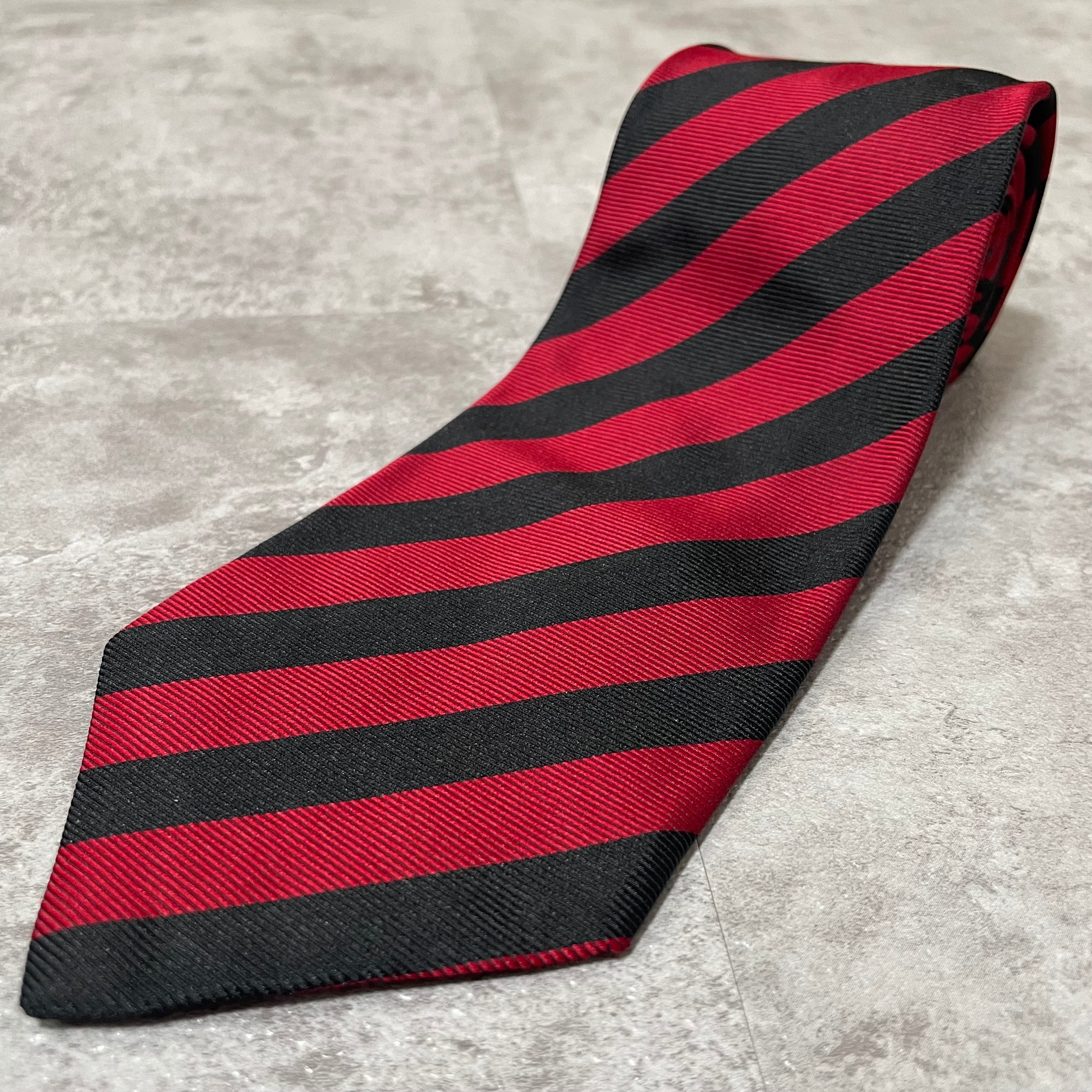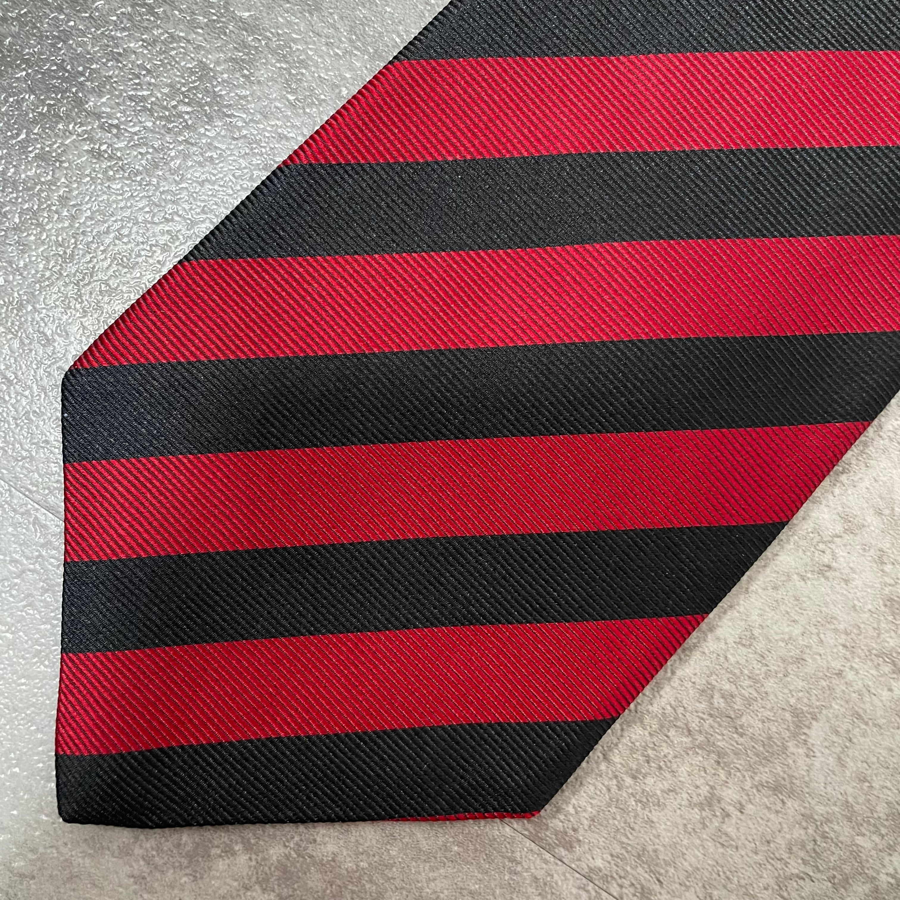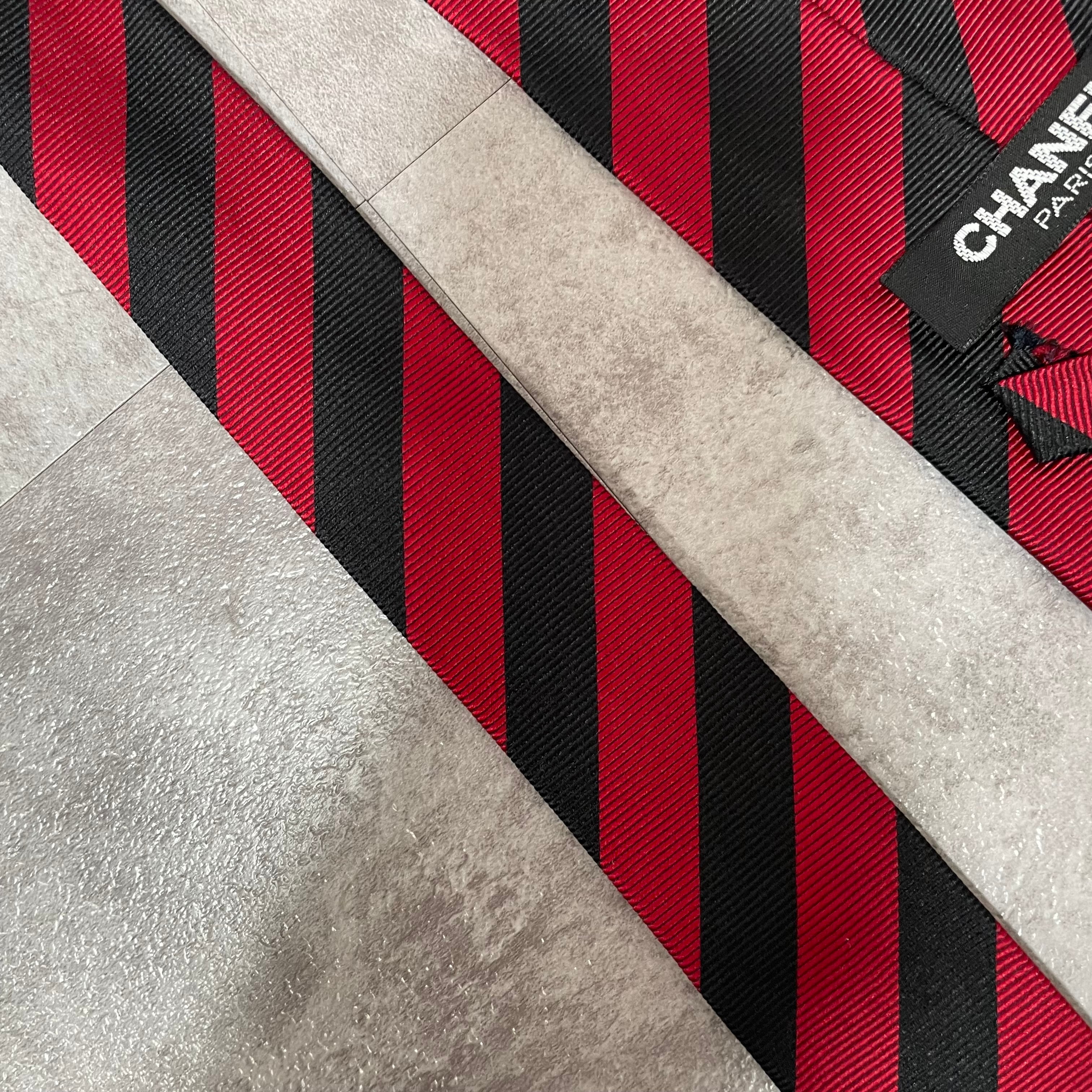 【CHANEL】レジメンタルストライプネクタイ ビジネス向け バイカラー レッド ブラック 赤黒 ココマーク シャネル
