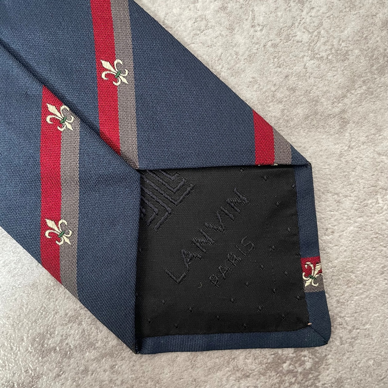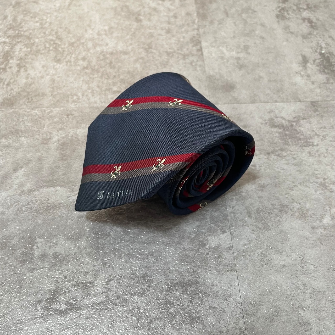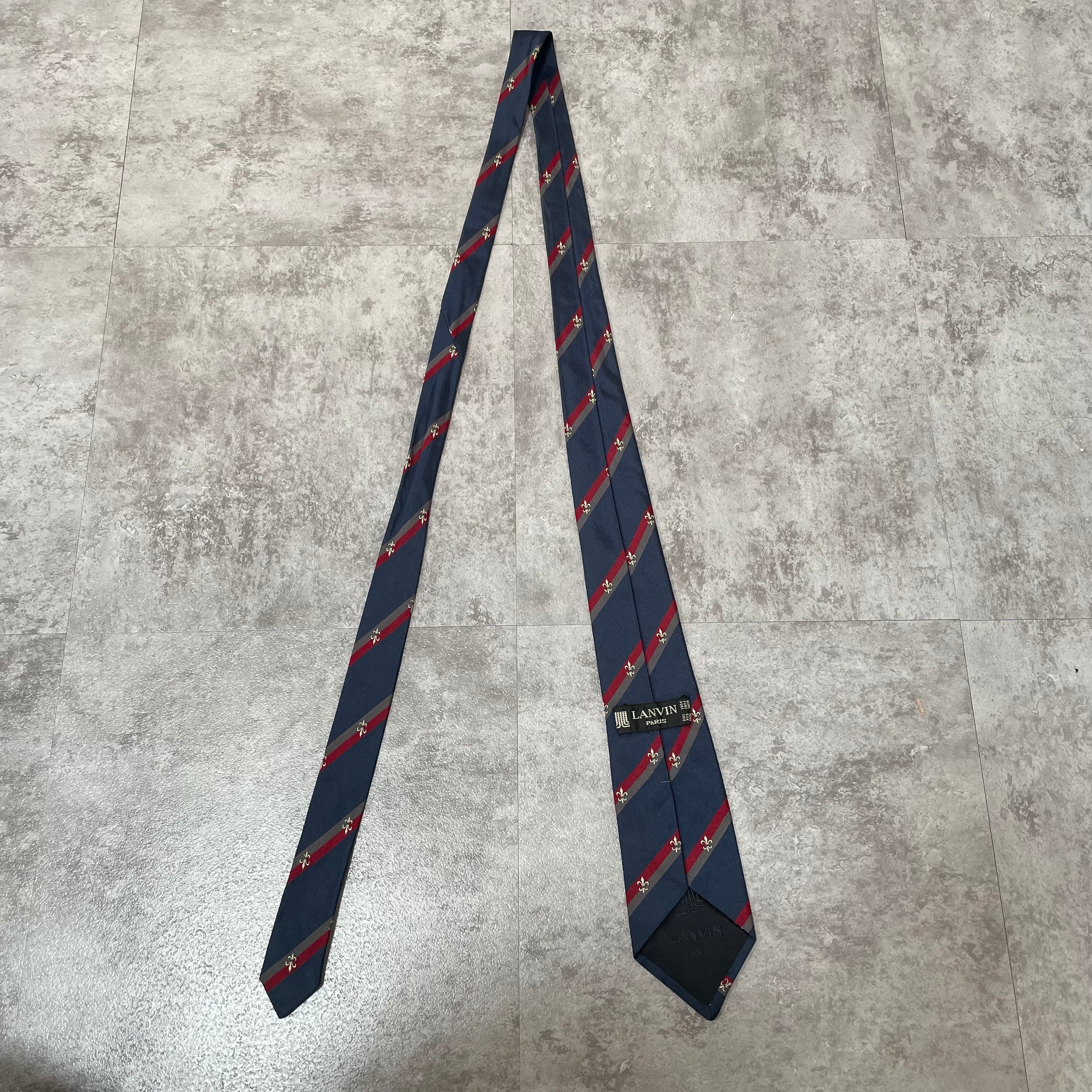 【LANVIN】紋章入りレジメンタルストライプネクタイ ビジネス向け バイカラー マルチカラー ネイビー 紺色 グリーン 緑 レッド 赤 ランバン