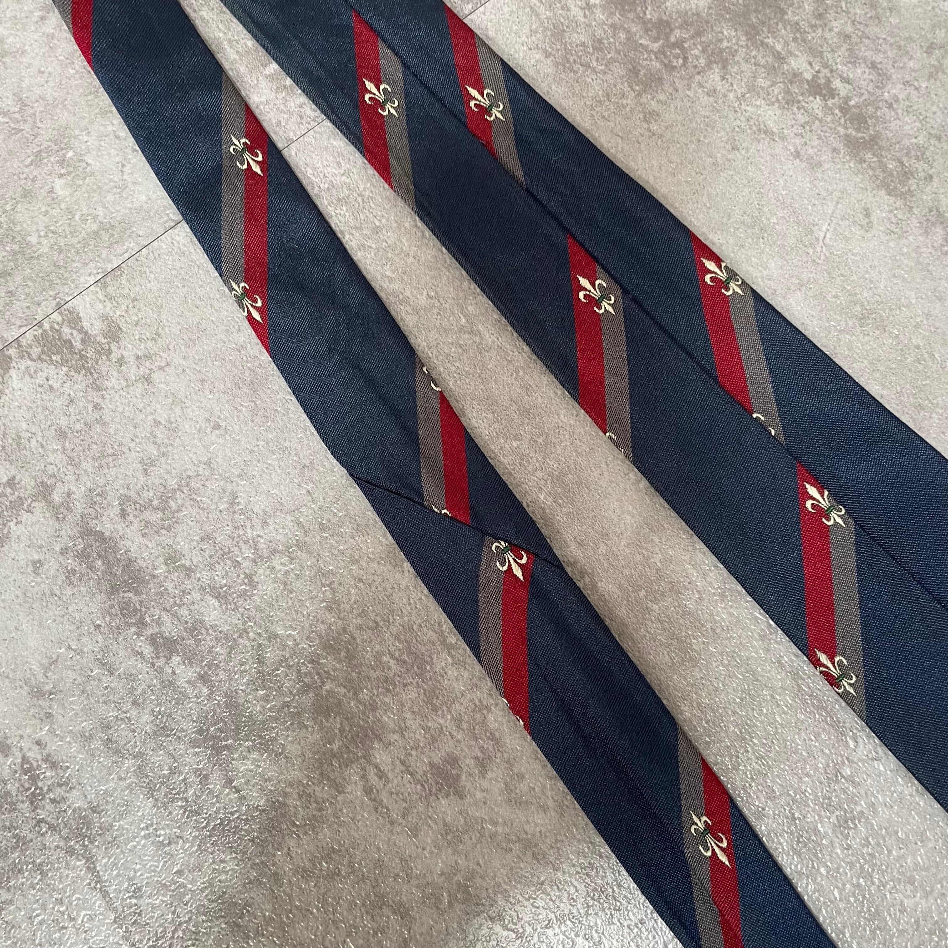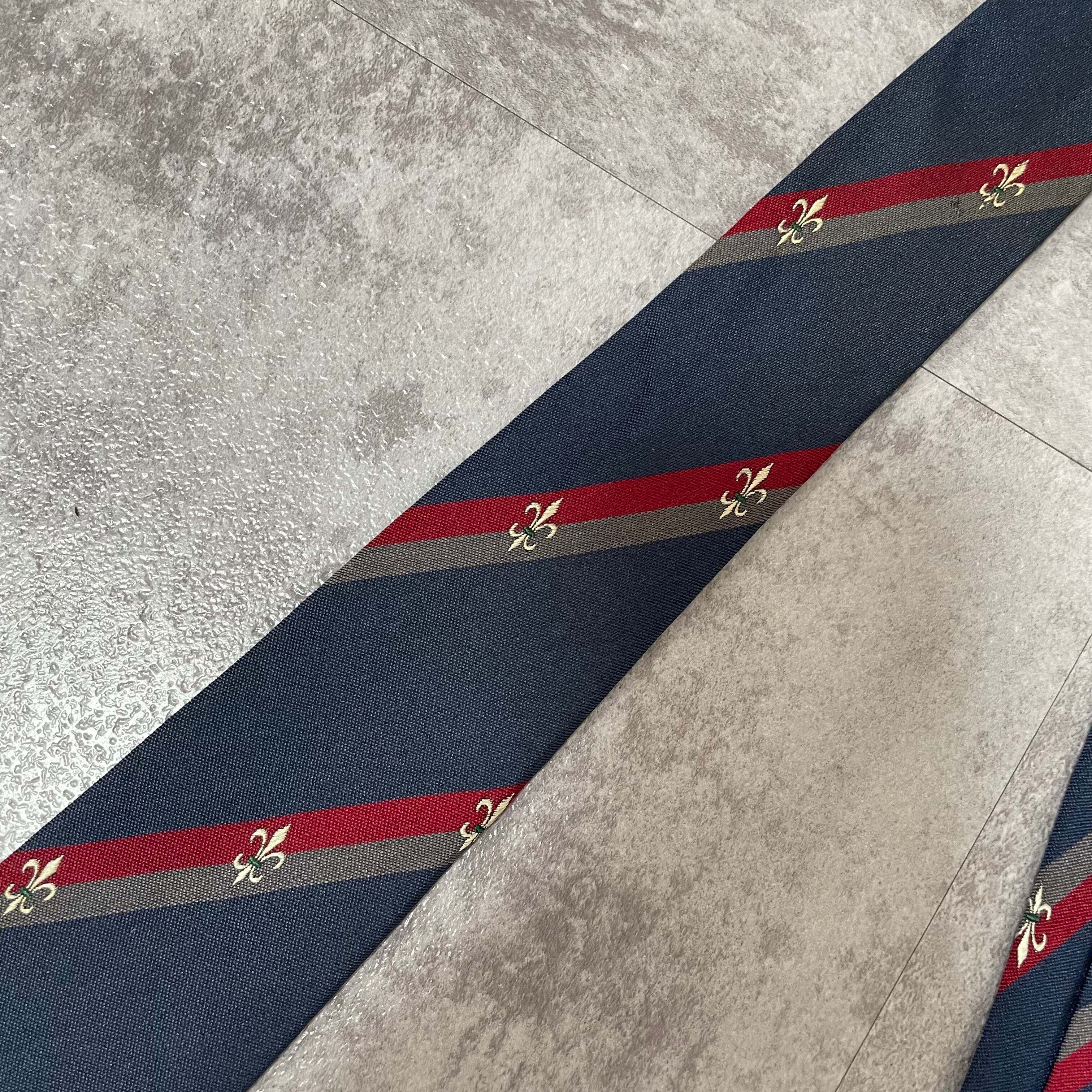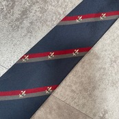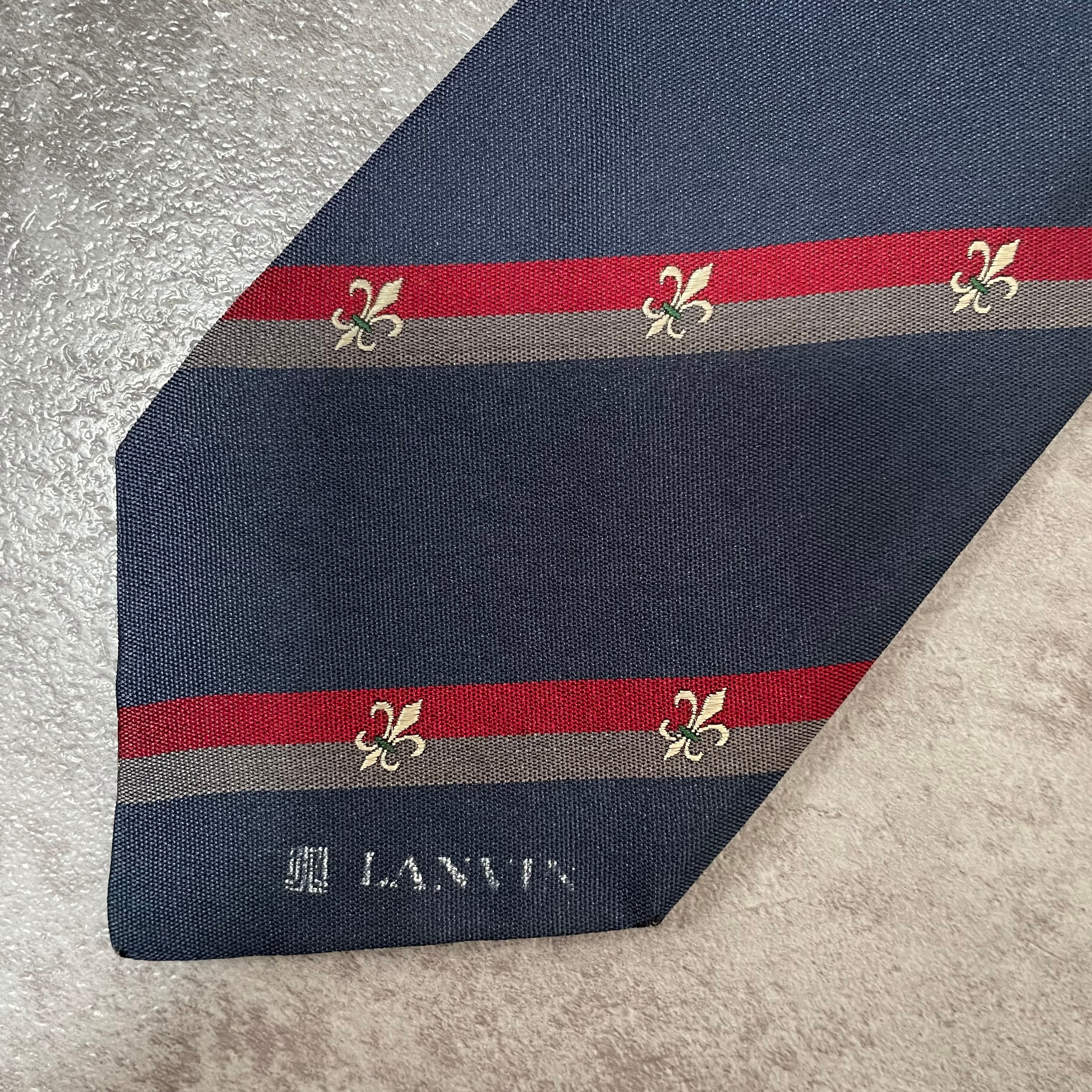 【LANVIN】紋章入りレジメンタルストライプネクタイ ビジネス向け バイカラー マルチカラー ネイビー 紺色 グリーン 緑 レッド 赤 ランバン