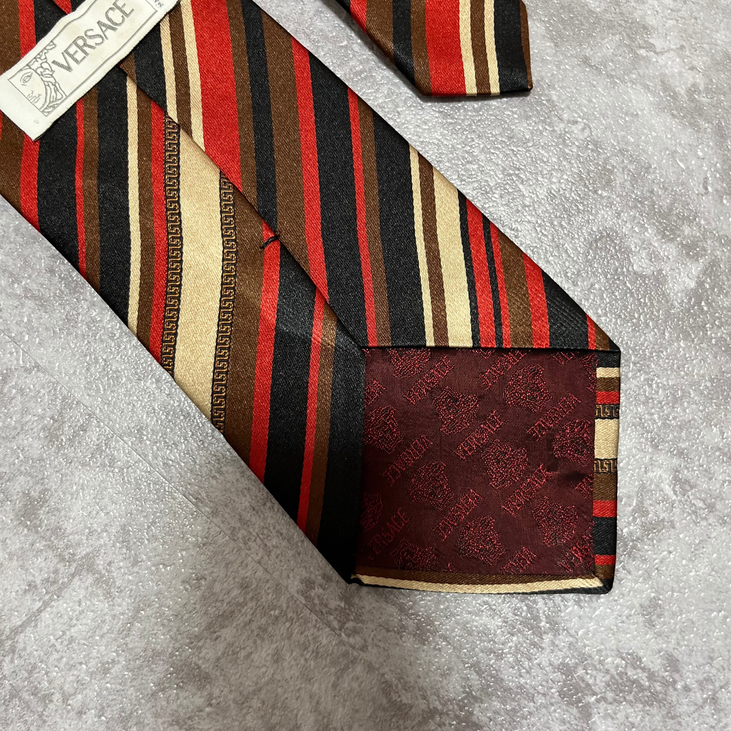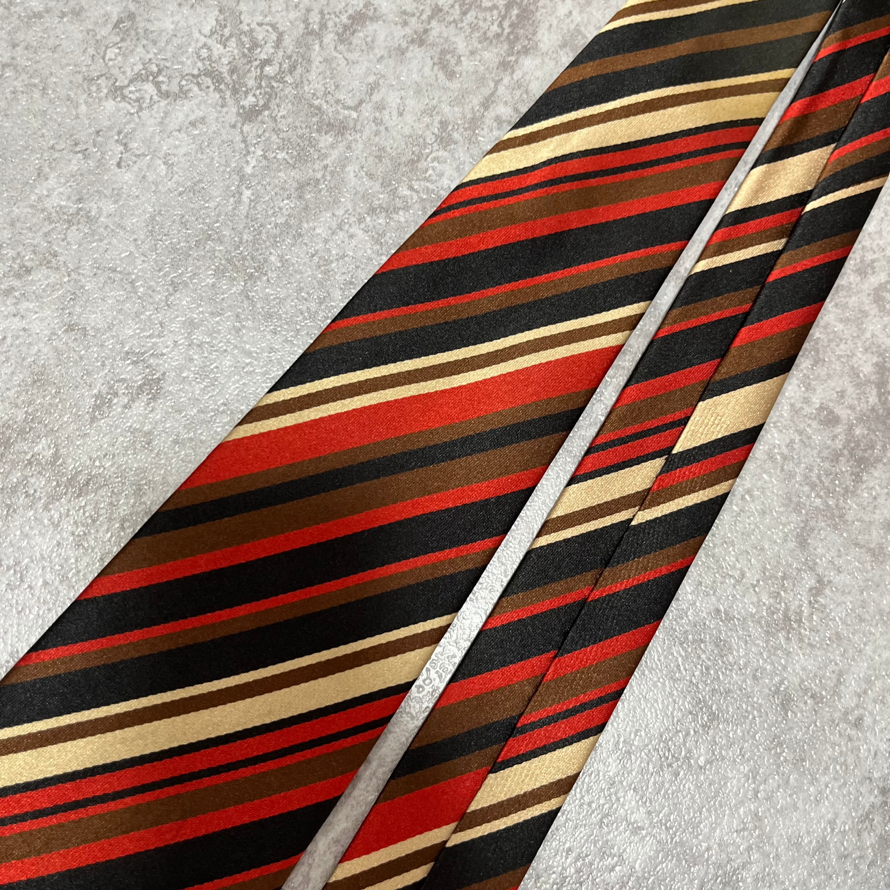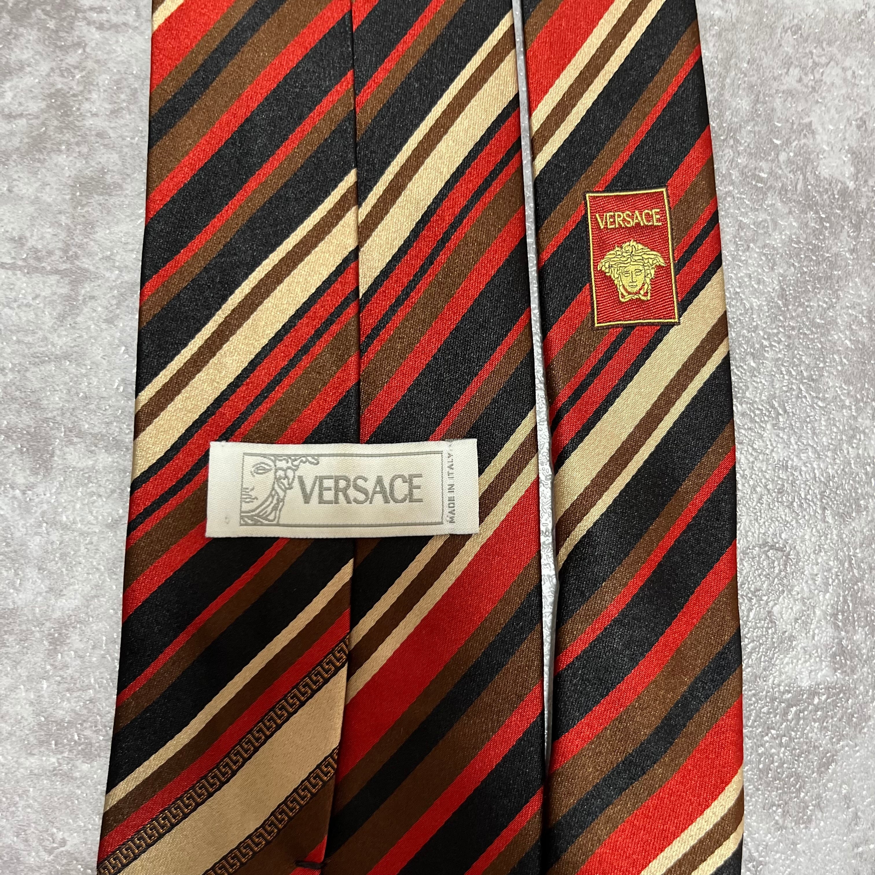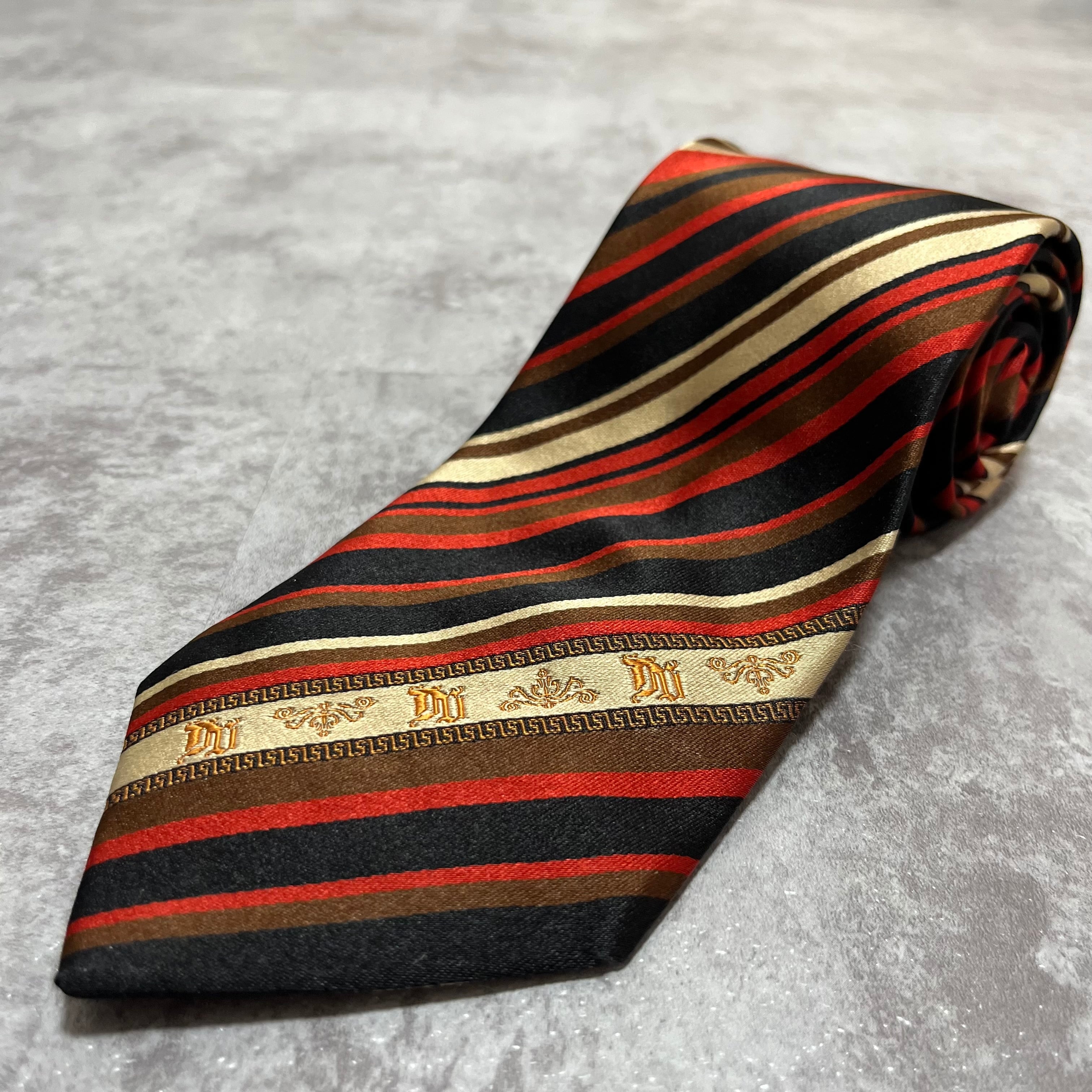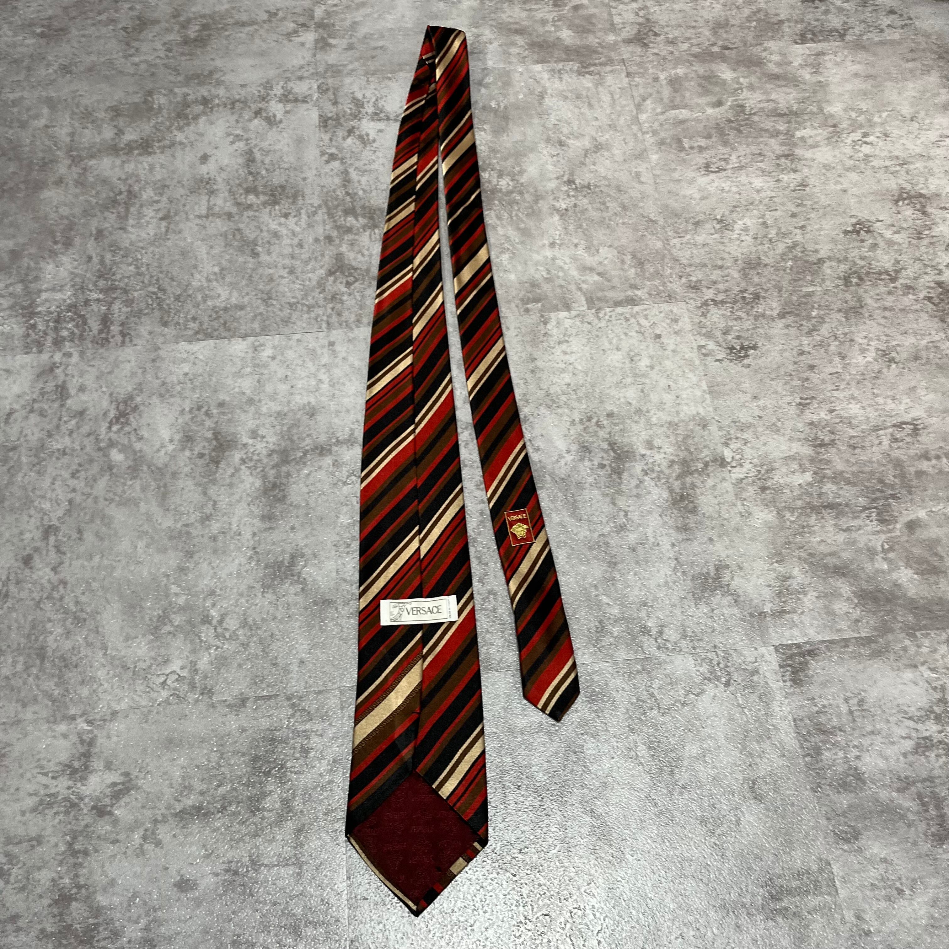 【Versace】レジメンタルストライプネクタイ ビジネス向け バイカラー 黒 橙 金 マルチカラー ブラック オレンジ ゴールド 紋章入り ヴェルサーチェ