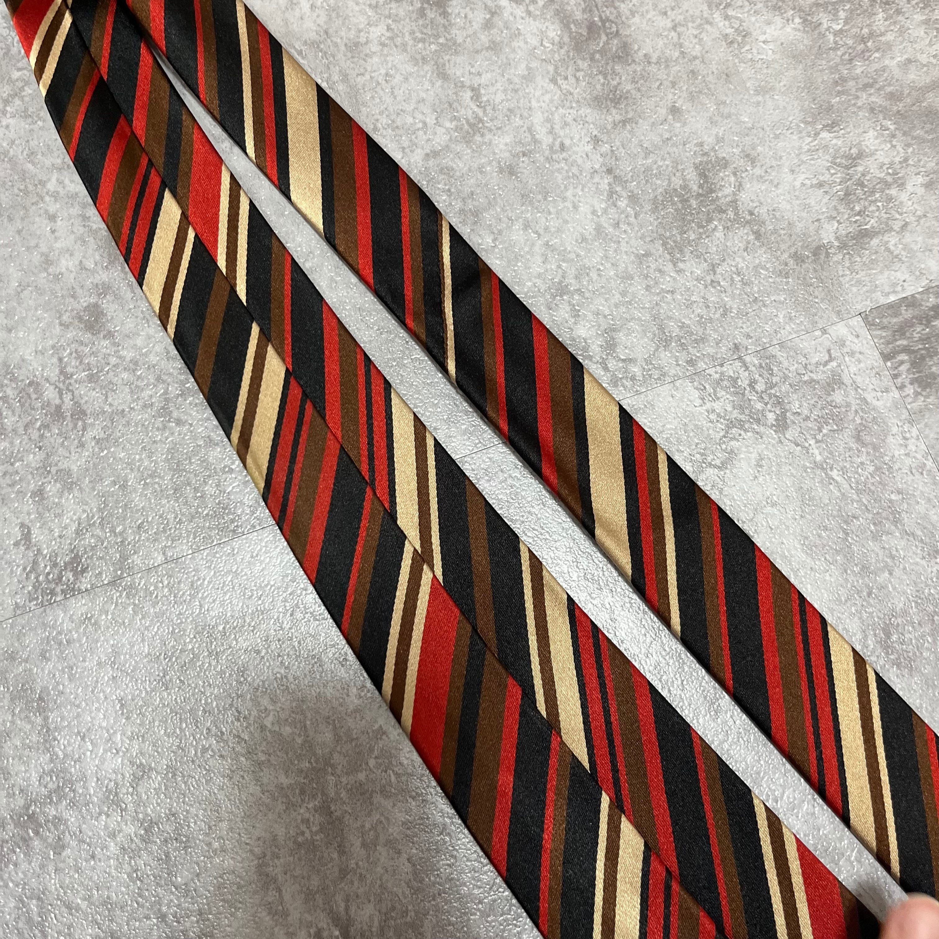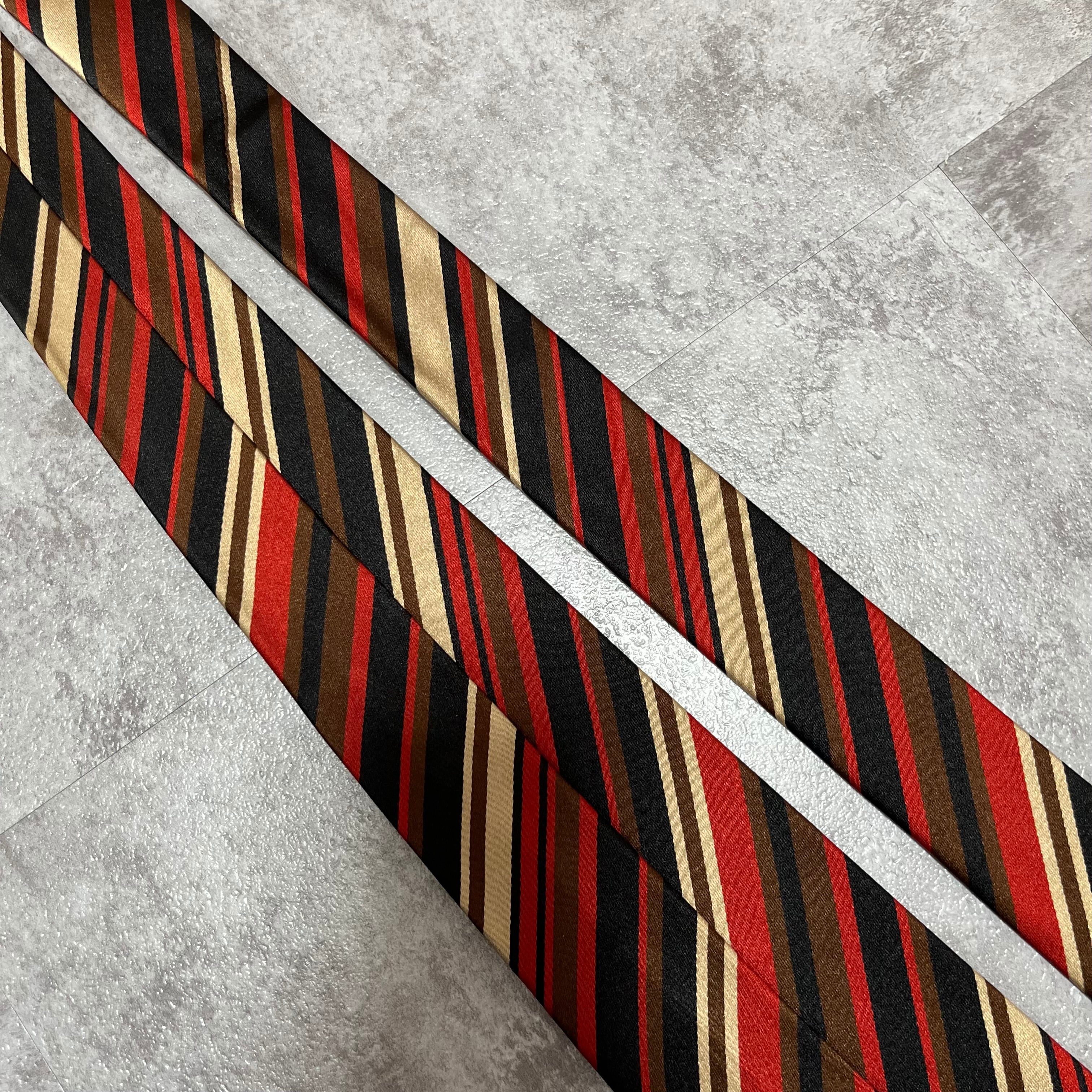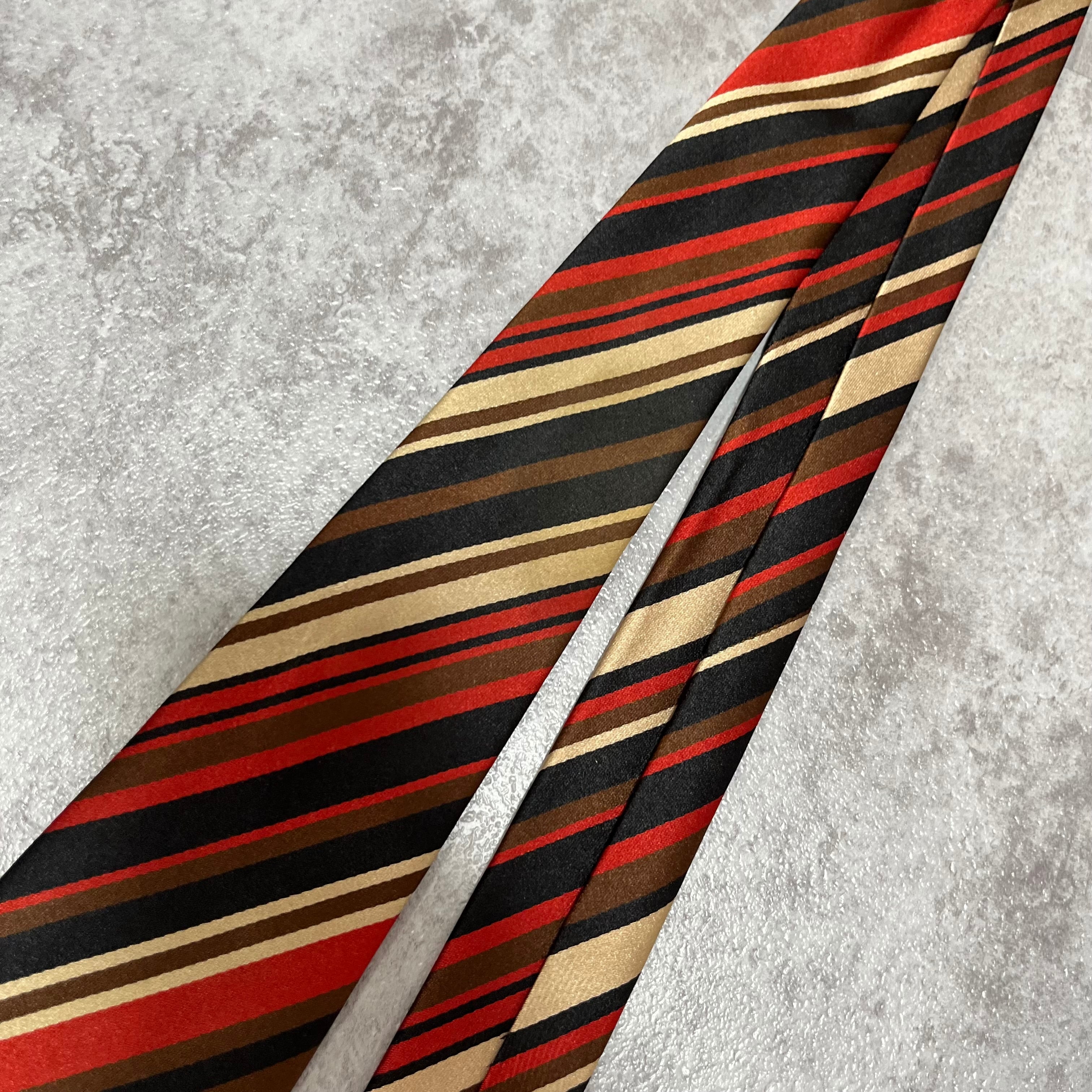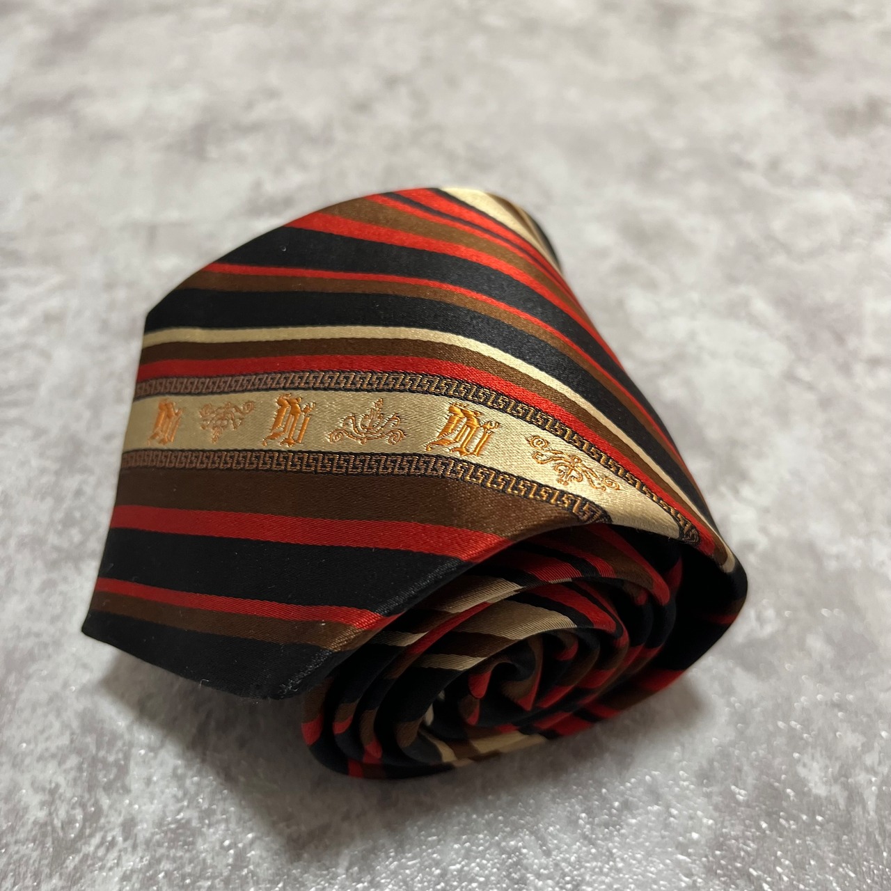 【Versace】レジメンタルストライプネクタイ ビジネス向け バイカラー 黒 橙 金 マルチカラー ブラック オレンジ ゴールド 紋章入り ヴェルサーチェ