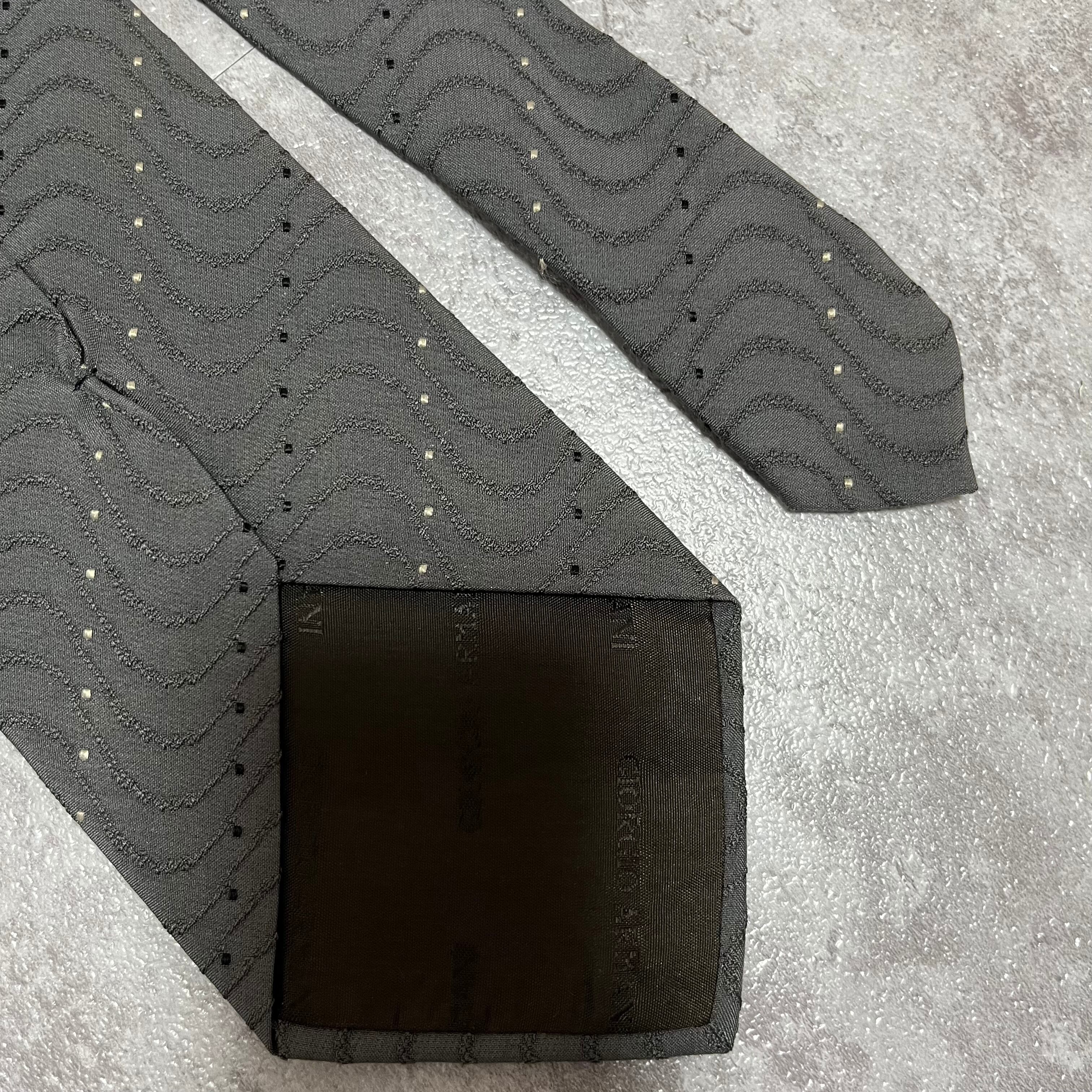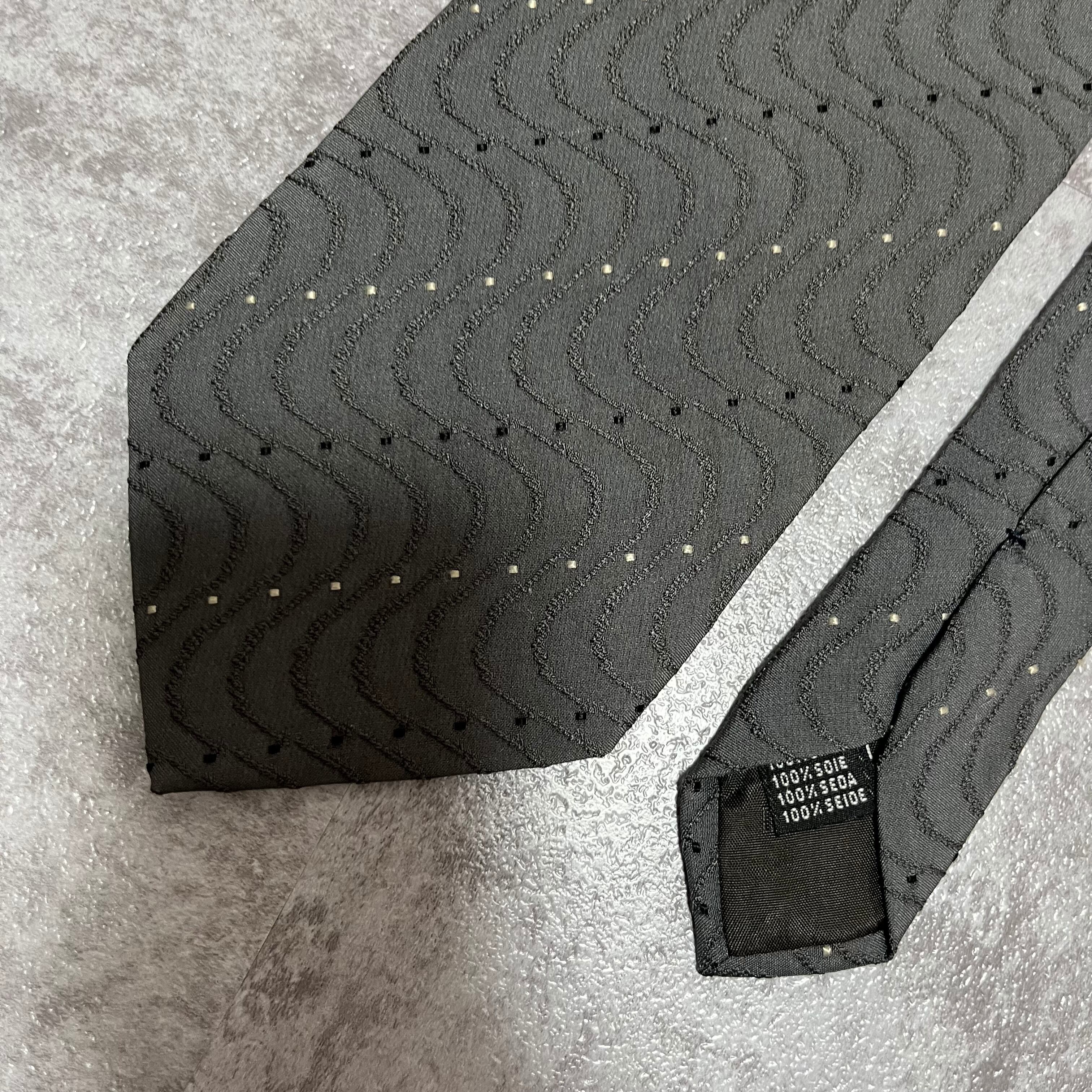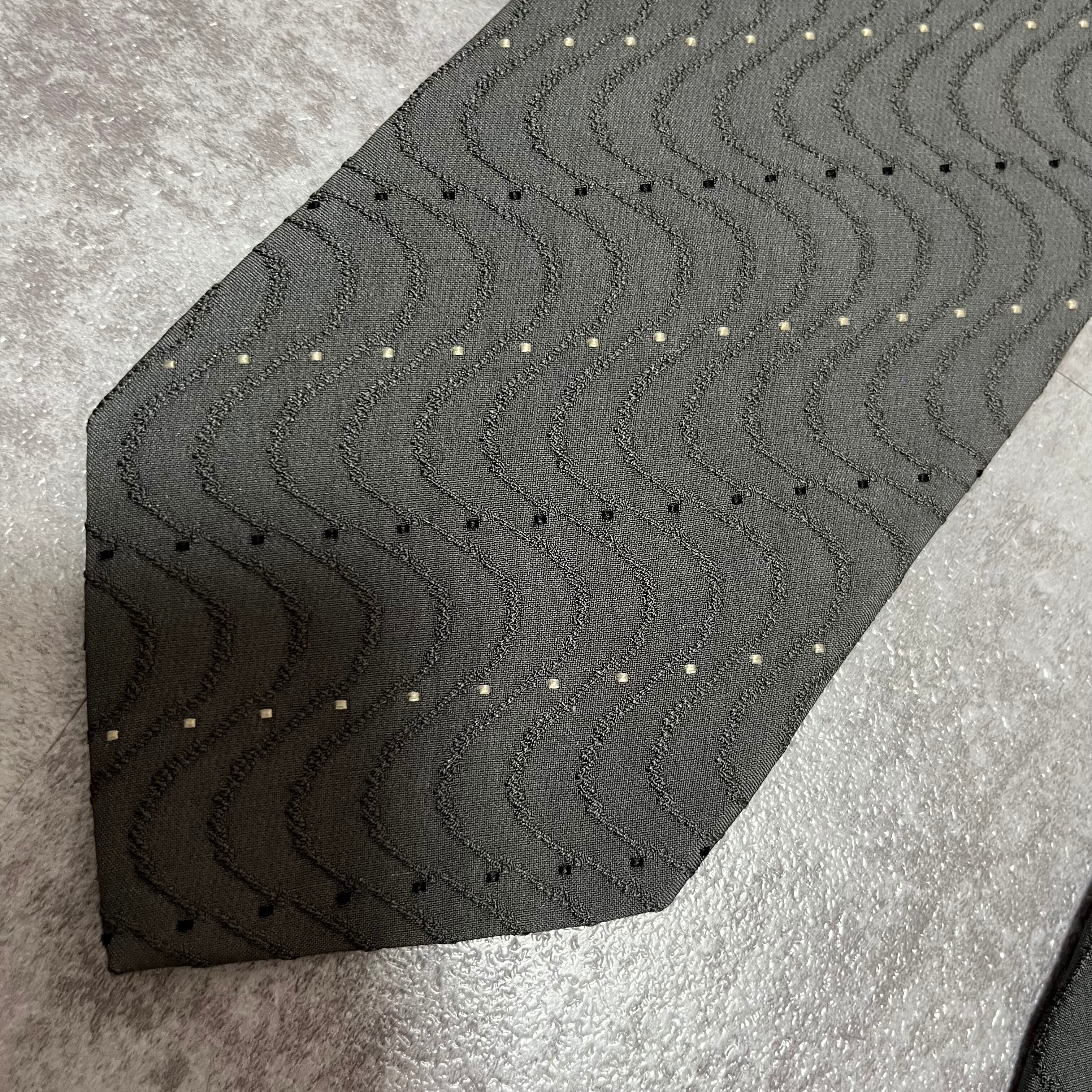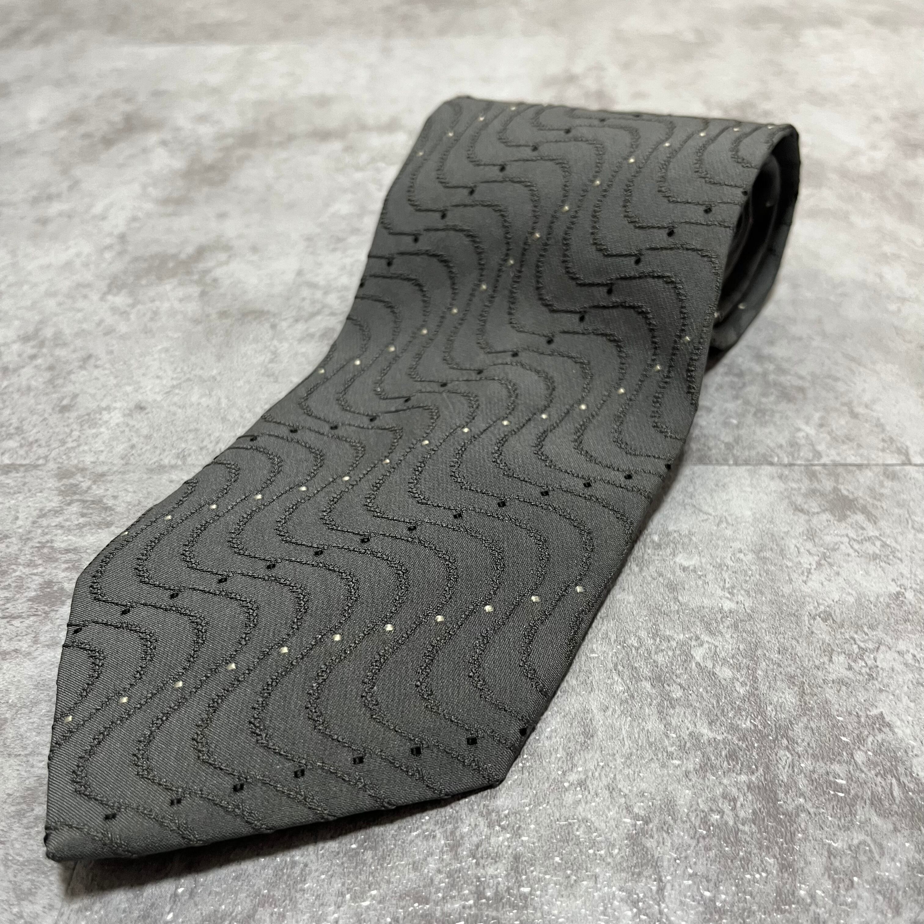 【GIORGIO ARMANI】レジメンタルストライプネクタイ グレー 灰色 ビジネス向け ジョルジオアルマーニ 波線 特殊ストライプ