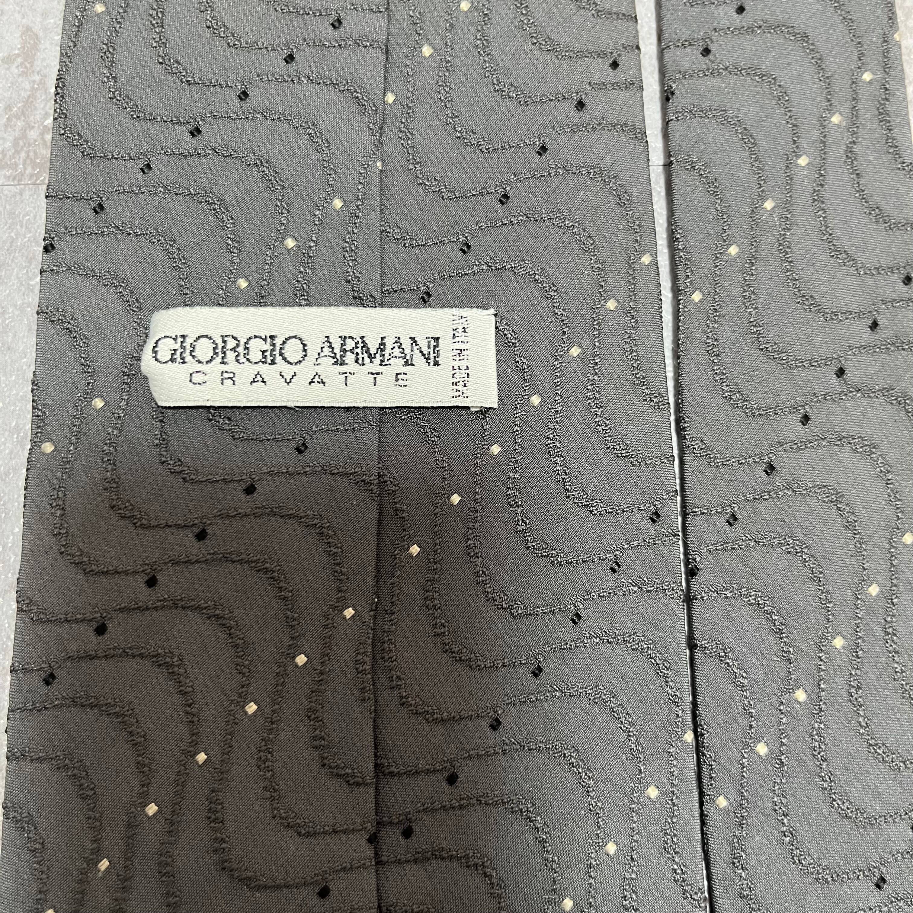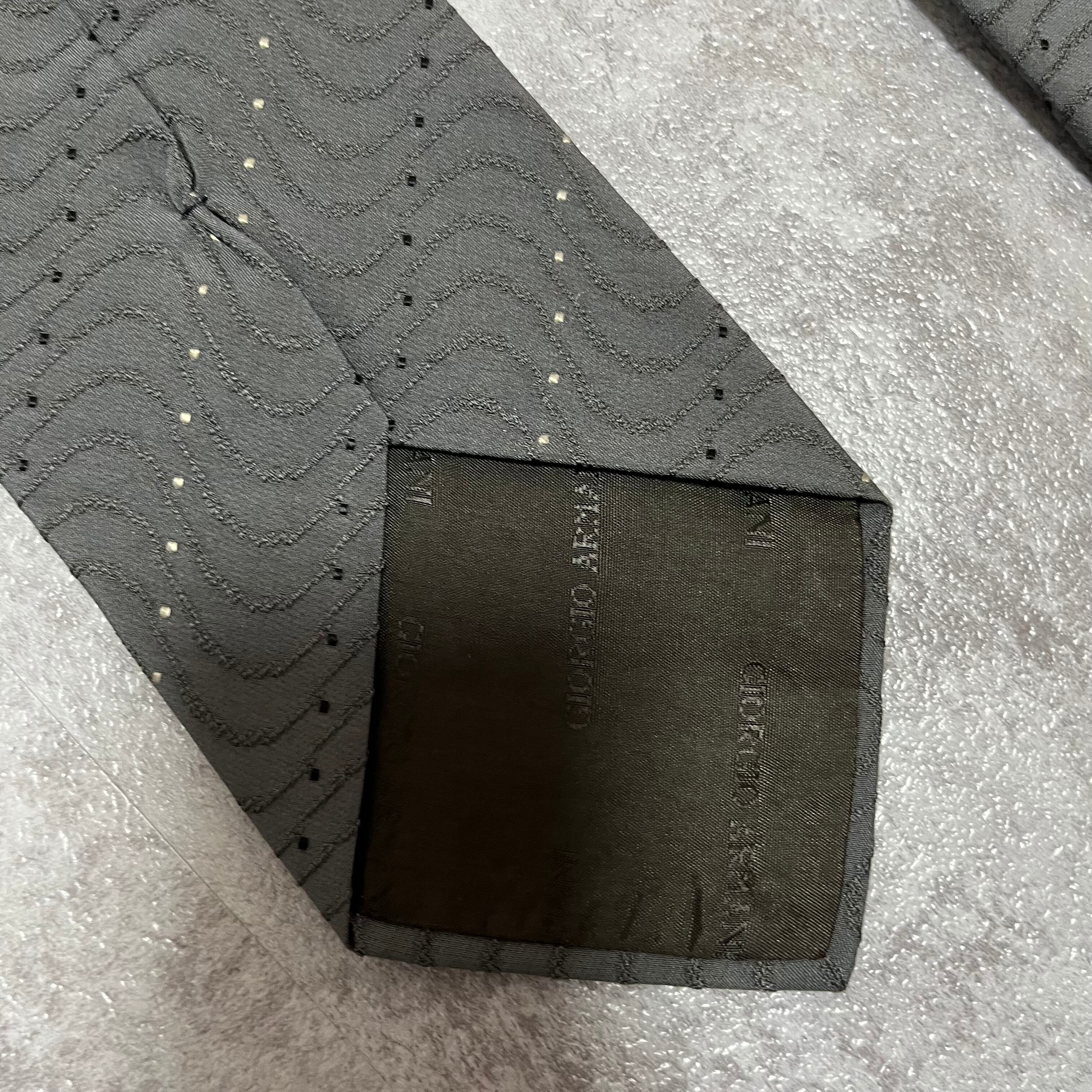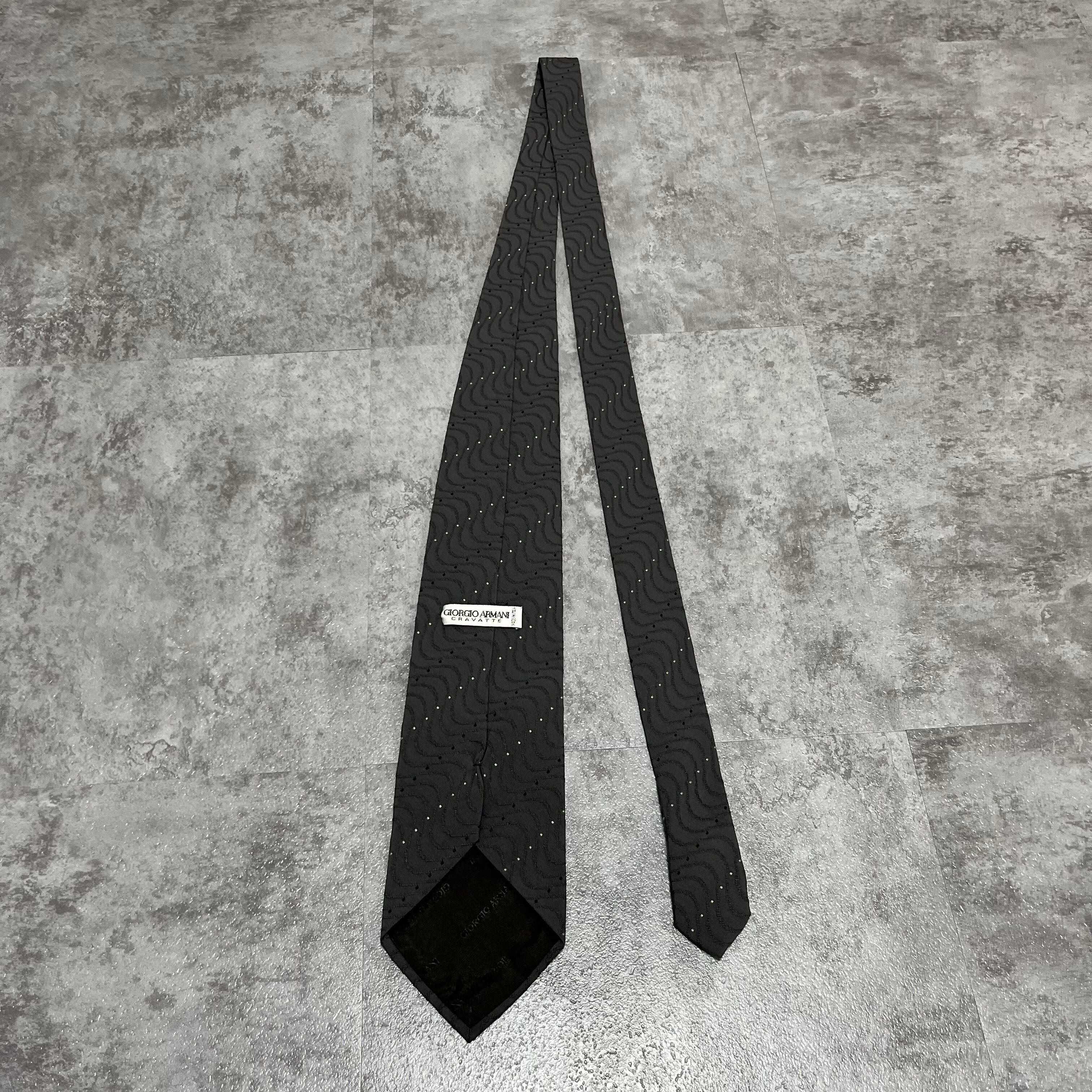 【GIORGIO ARMANI】レジメンタルストライプネクタイ グレー 灰色 ビジネス向け ジョルジオアルマーニ 波線 特殊ストライプ