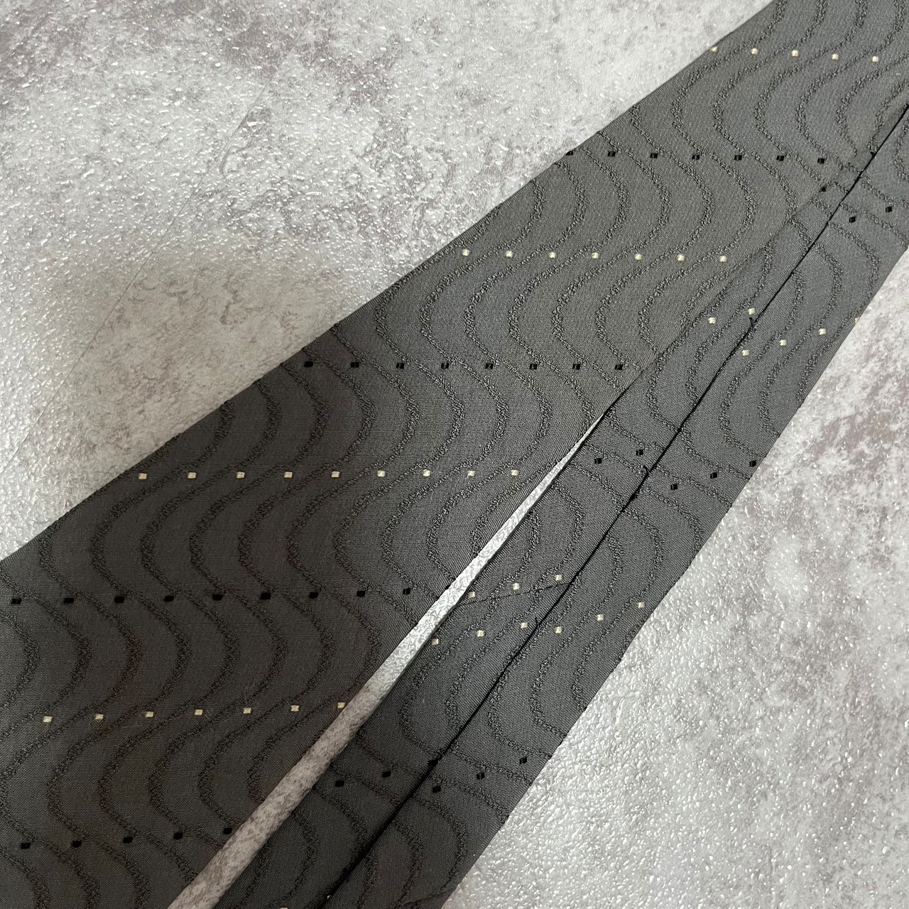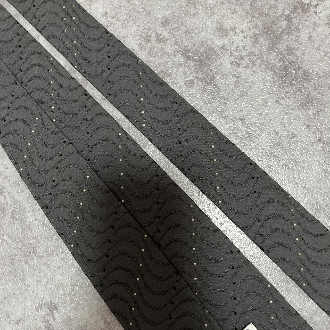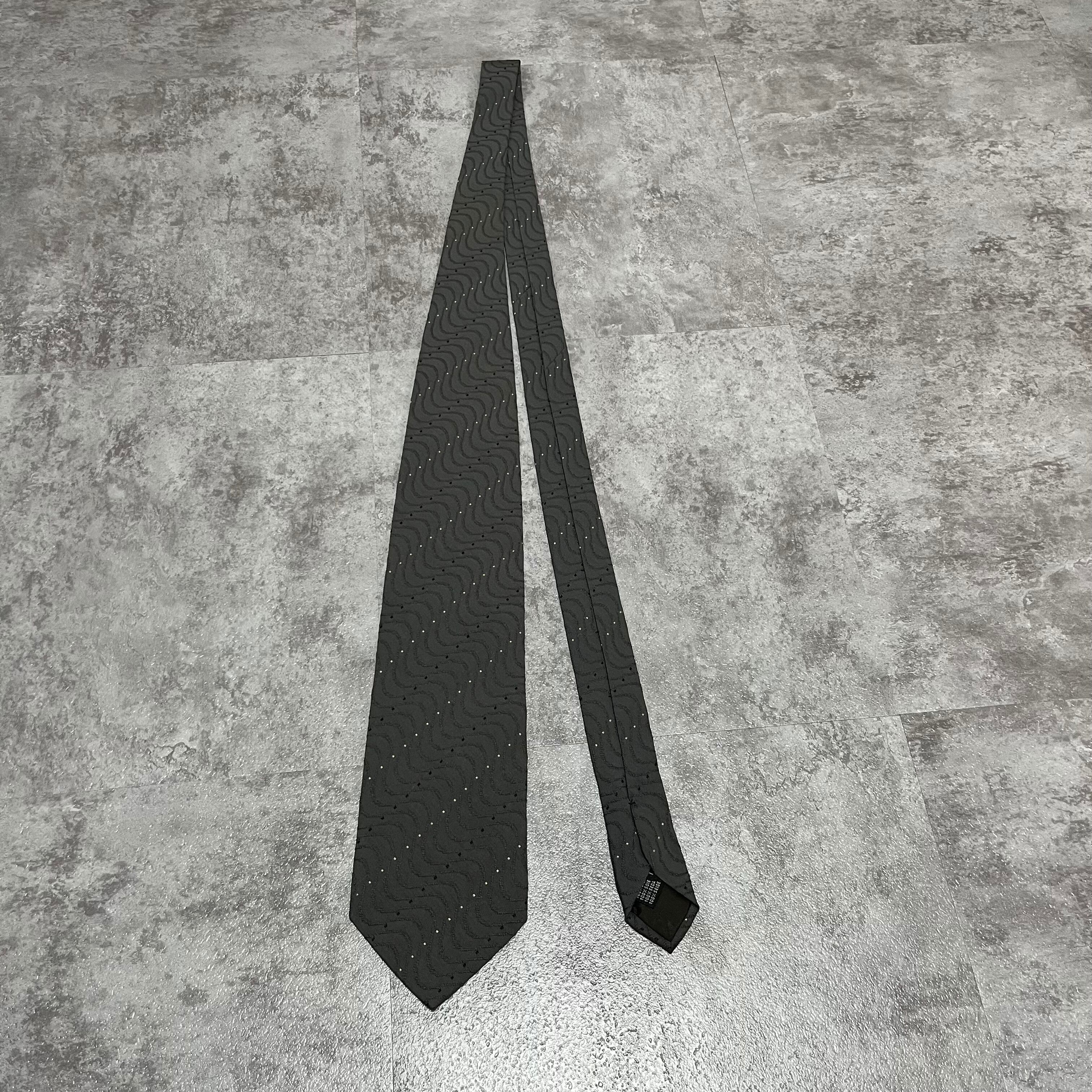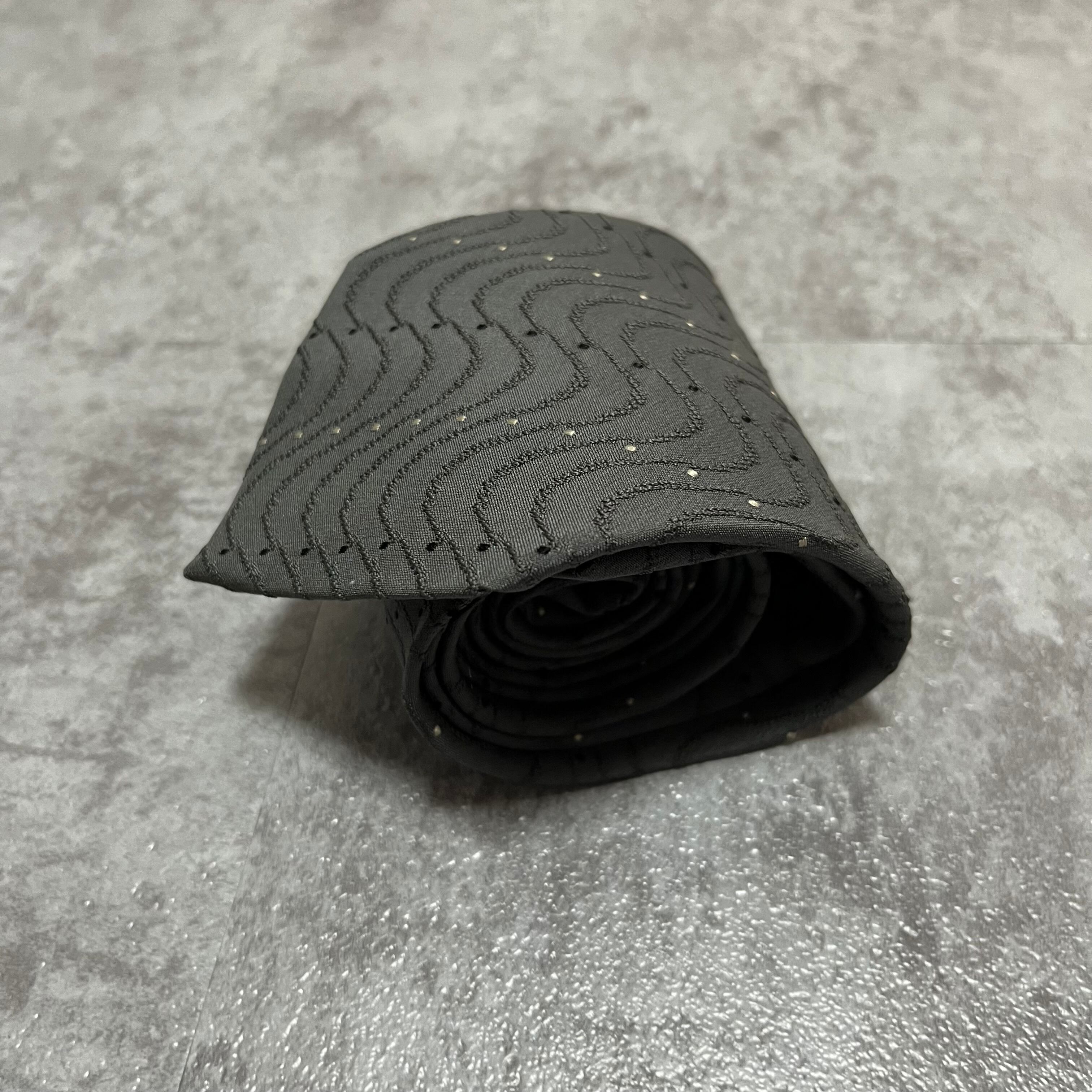 【GIORGIO ARMANI】レジメンタルストライプネクタイ グレー 灰色 ビジネス向け ジョルジオアルマーニ 波線 特殊ストライプ