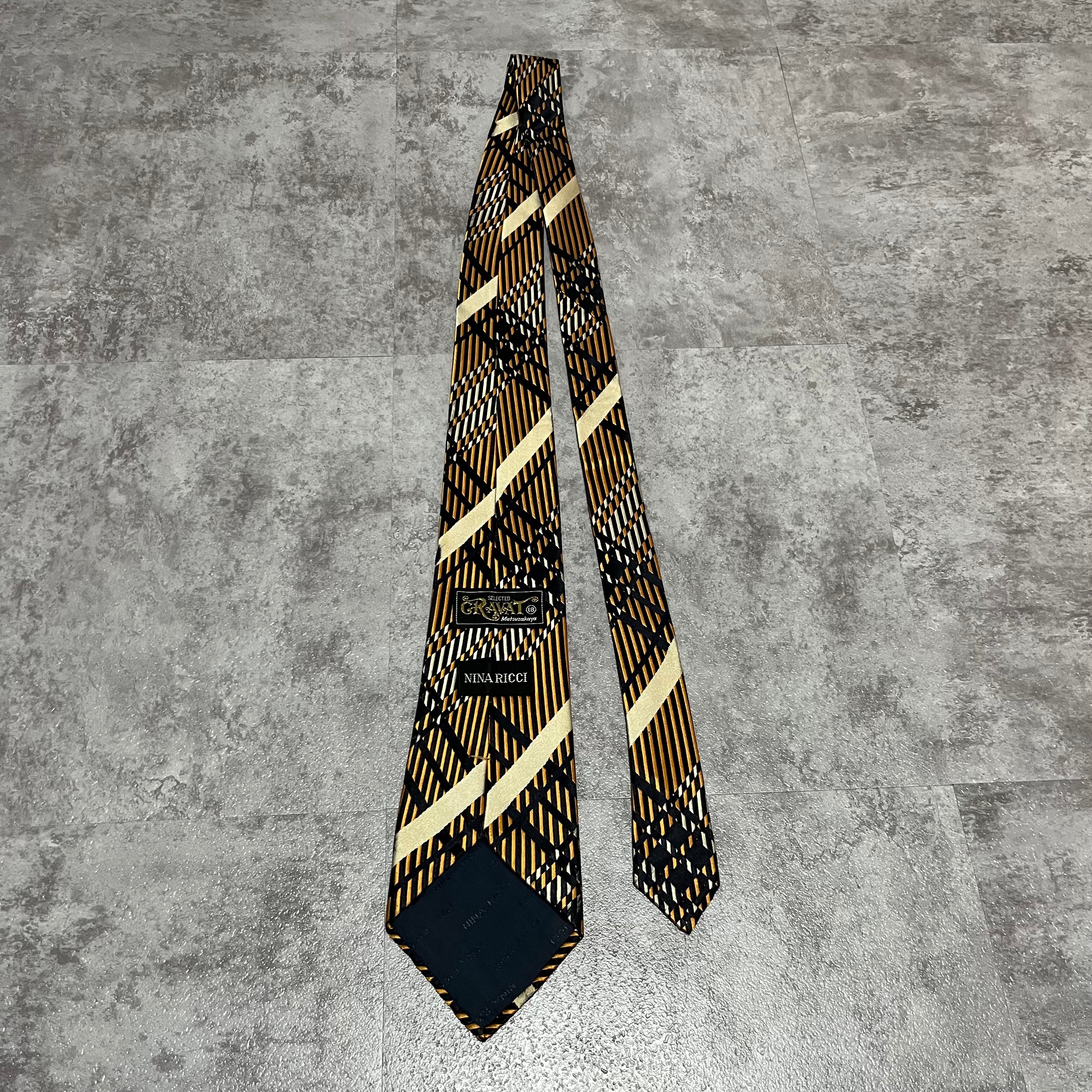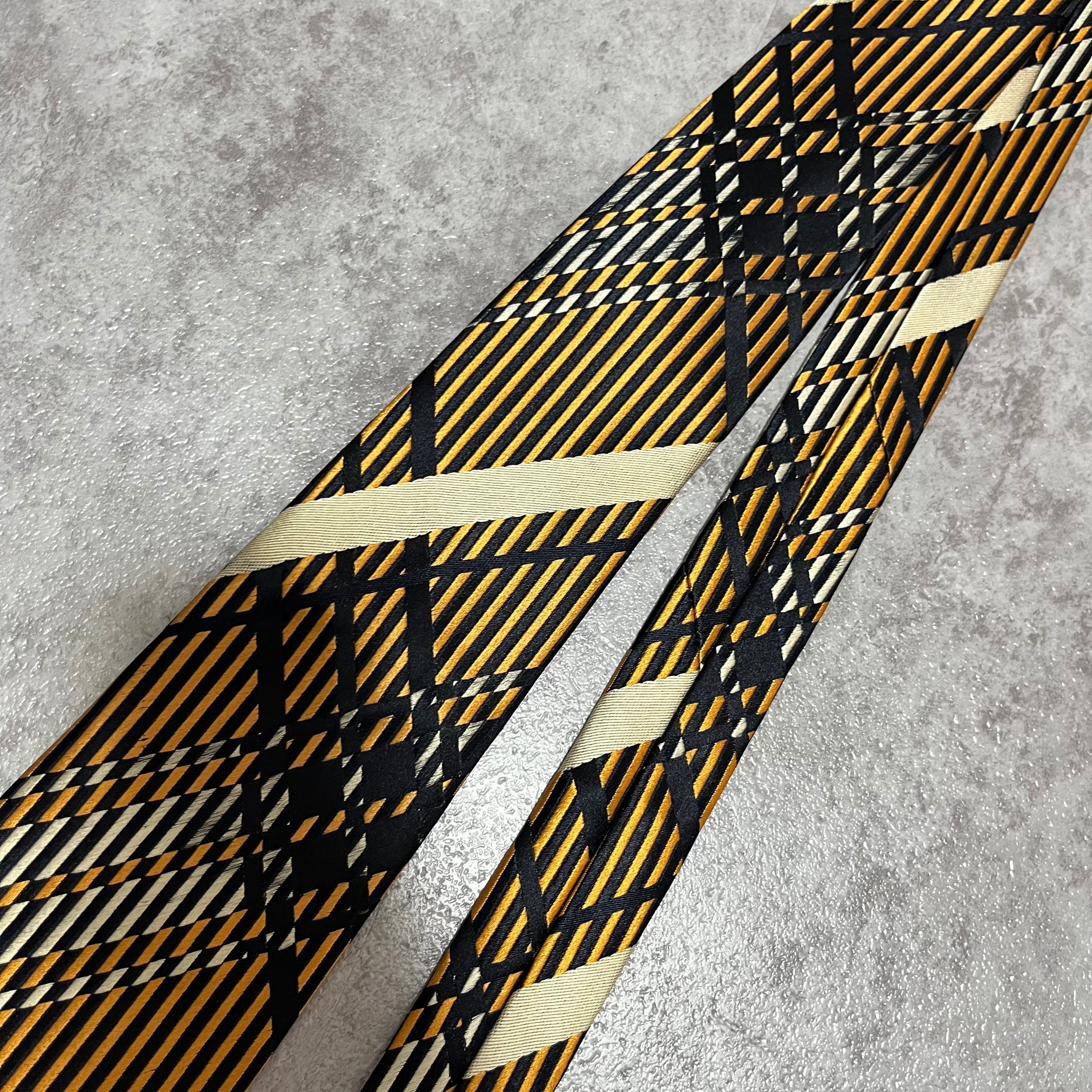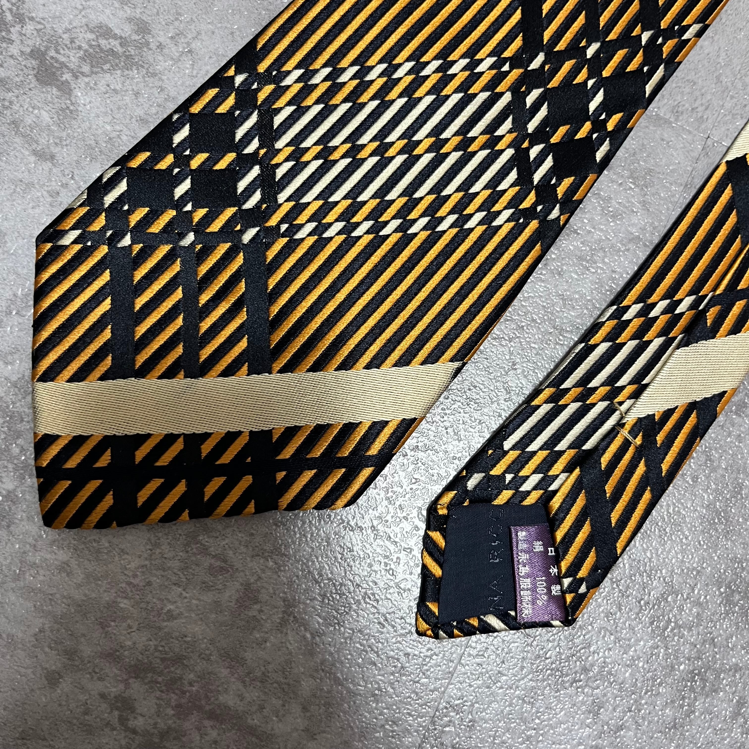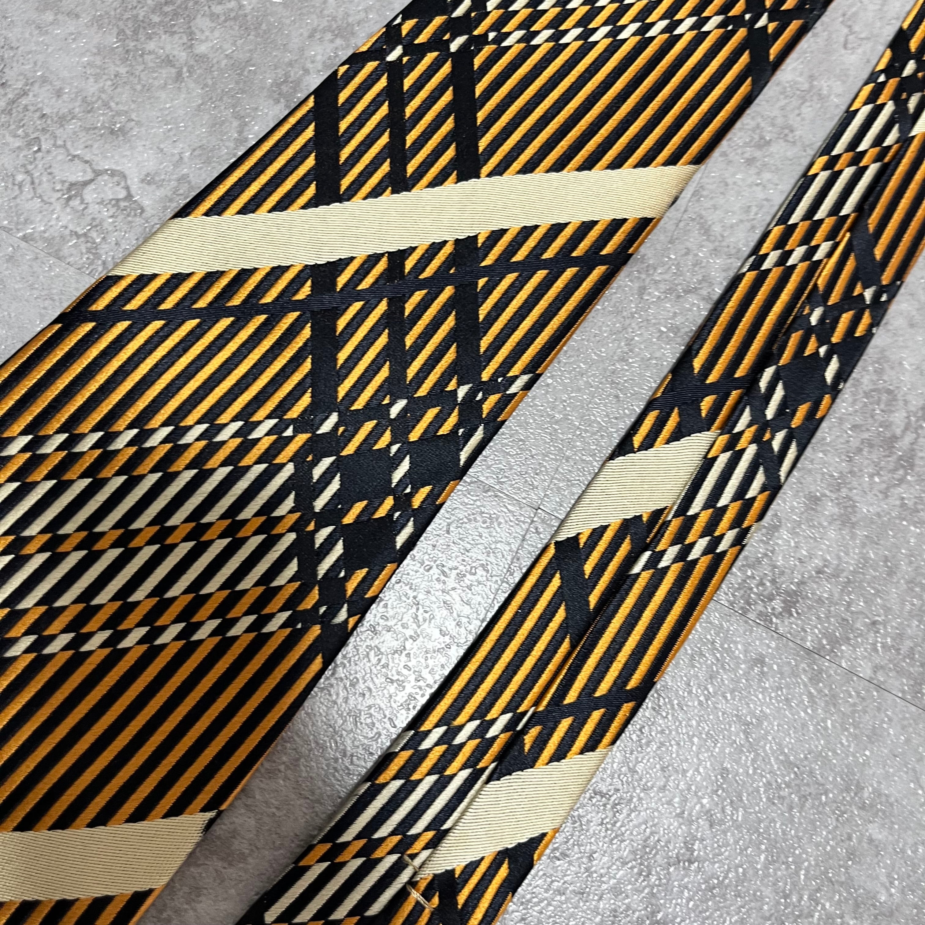 【NINA RICCI】特殊チェック柄ネクタイ バイカラー オレンジ ブラック 橙 黒 ビジネス向け 光沢 ニナリッチ