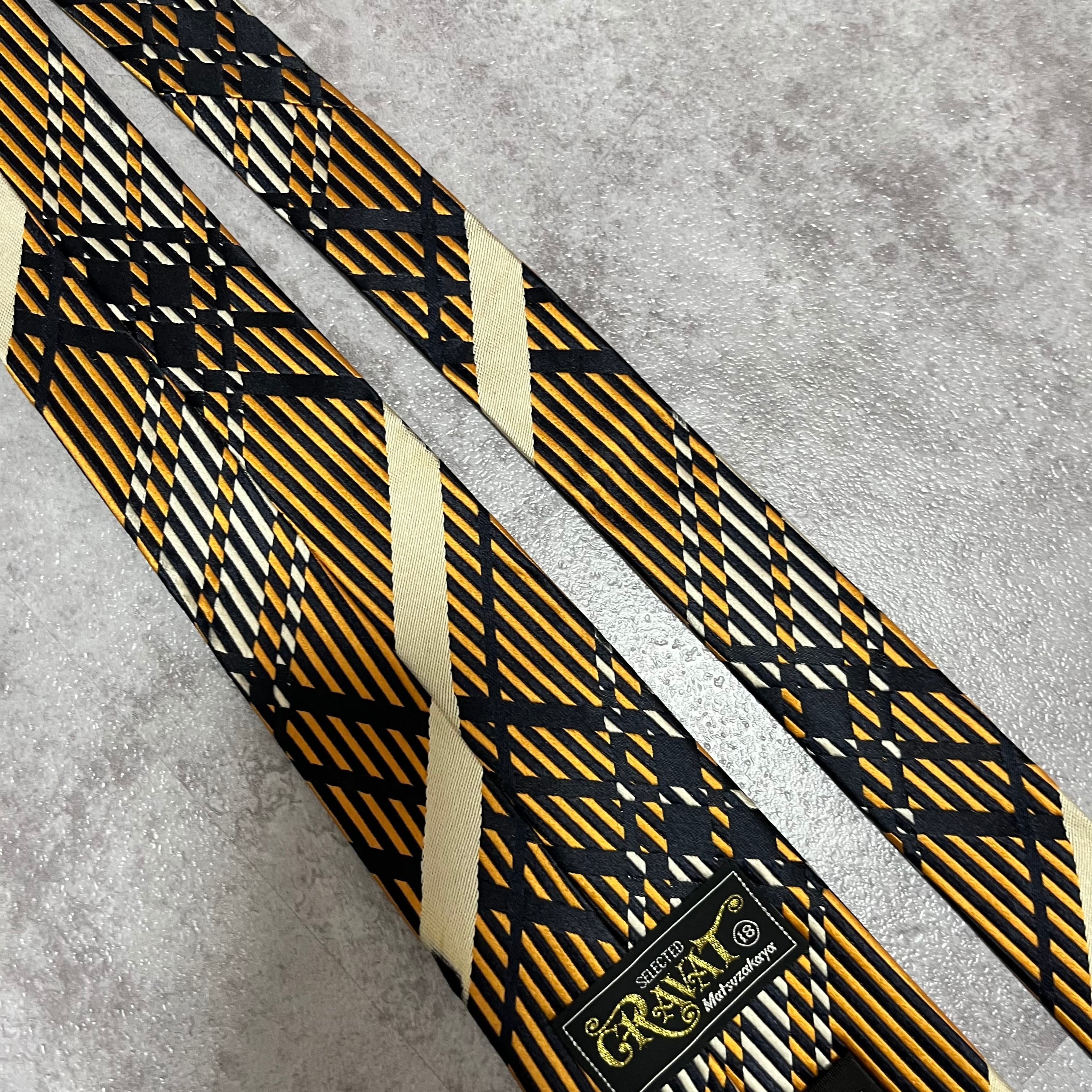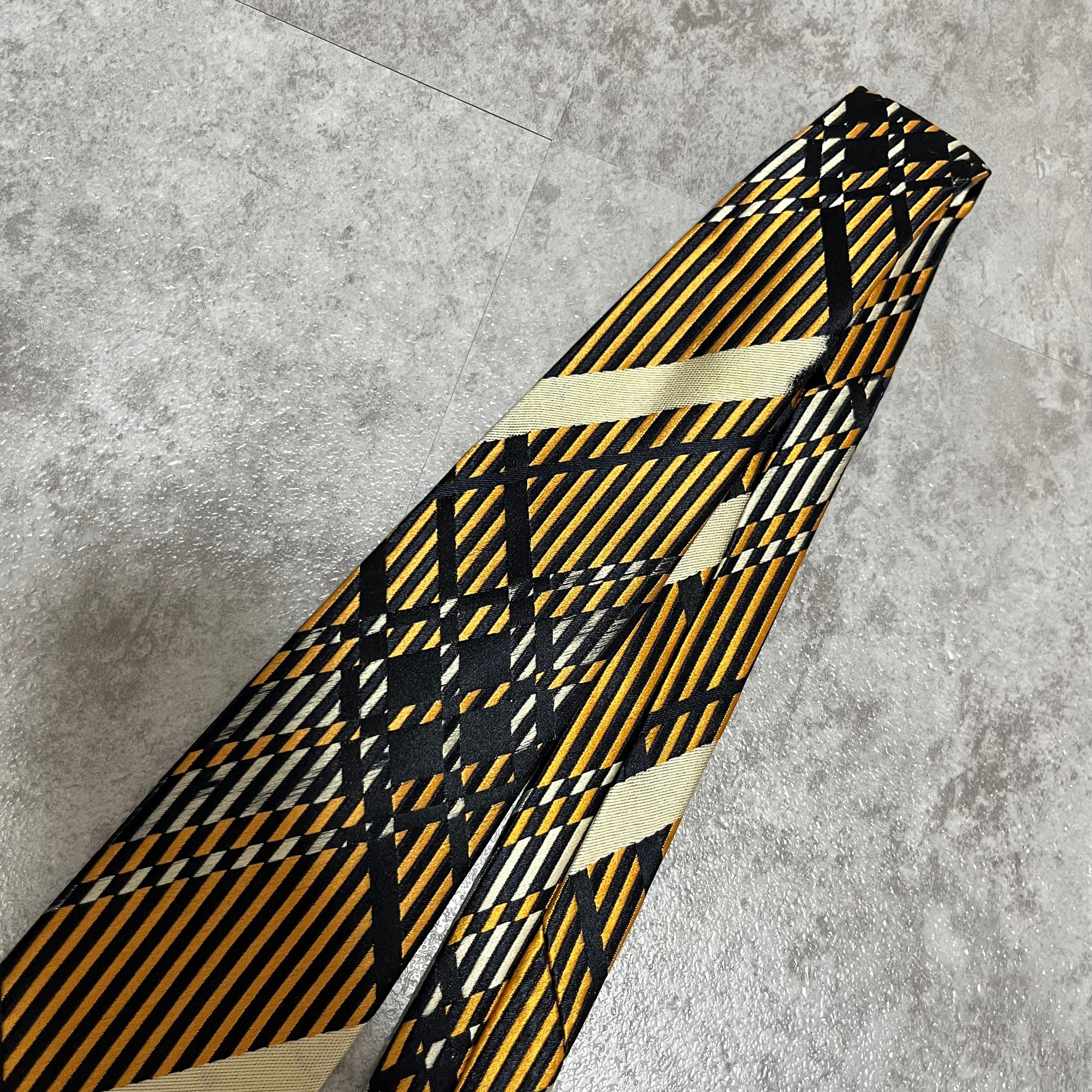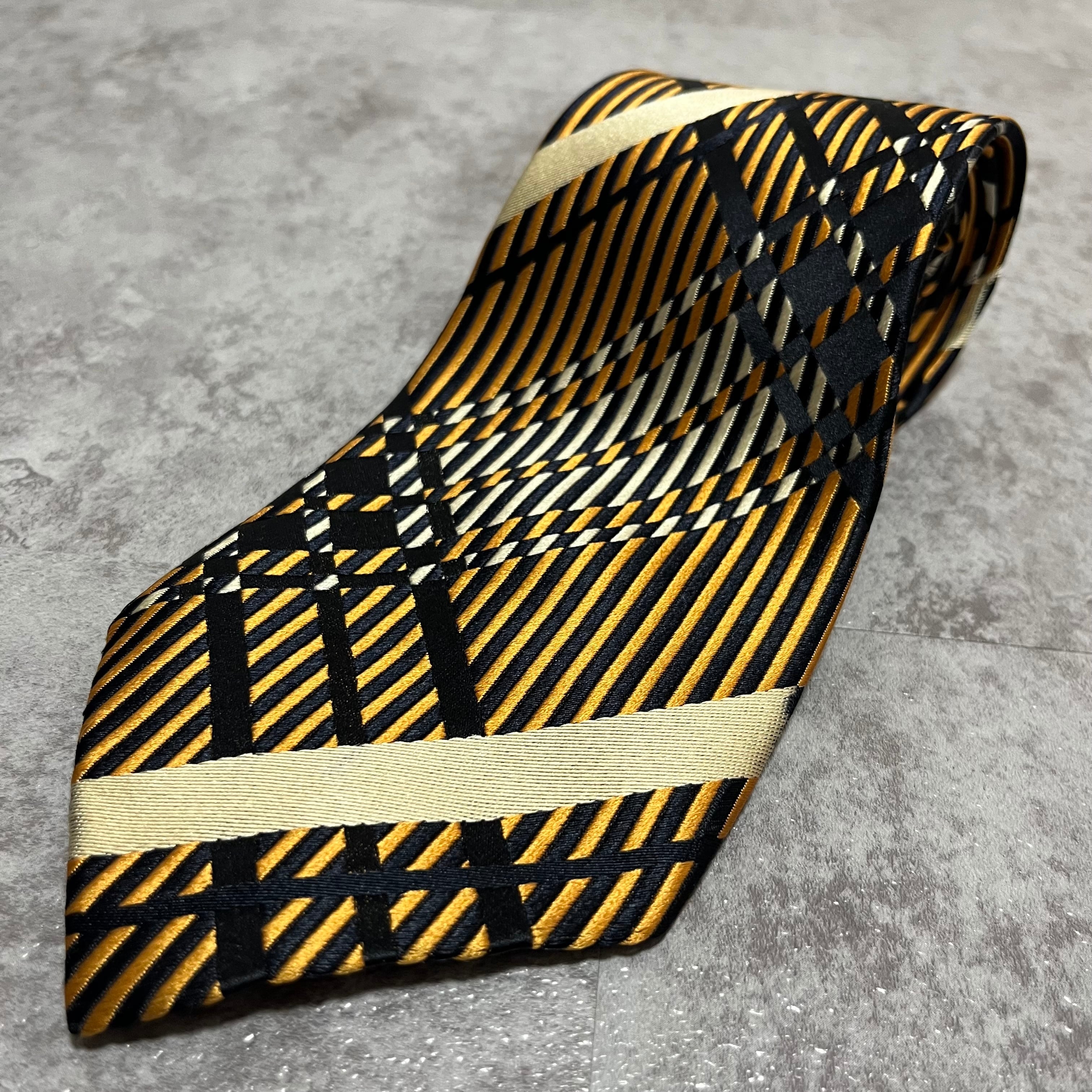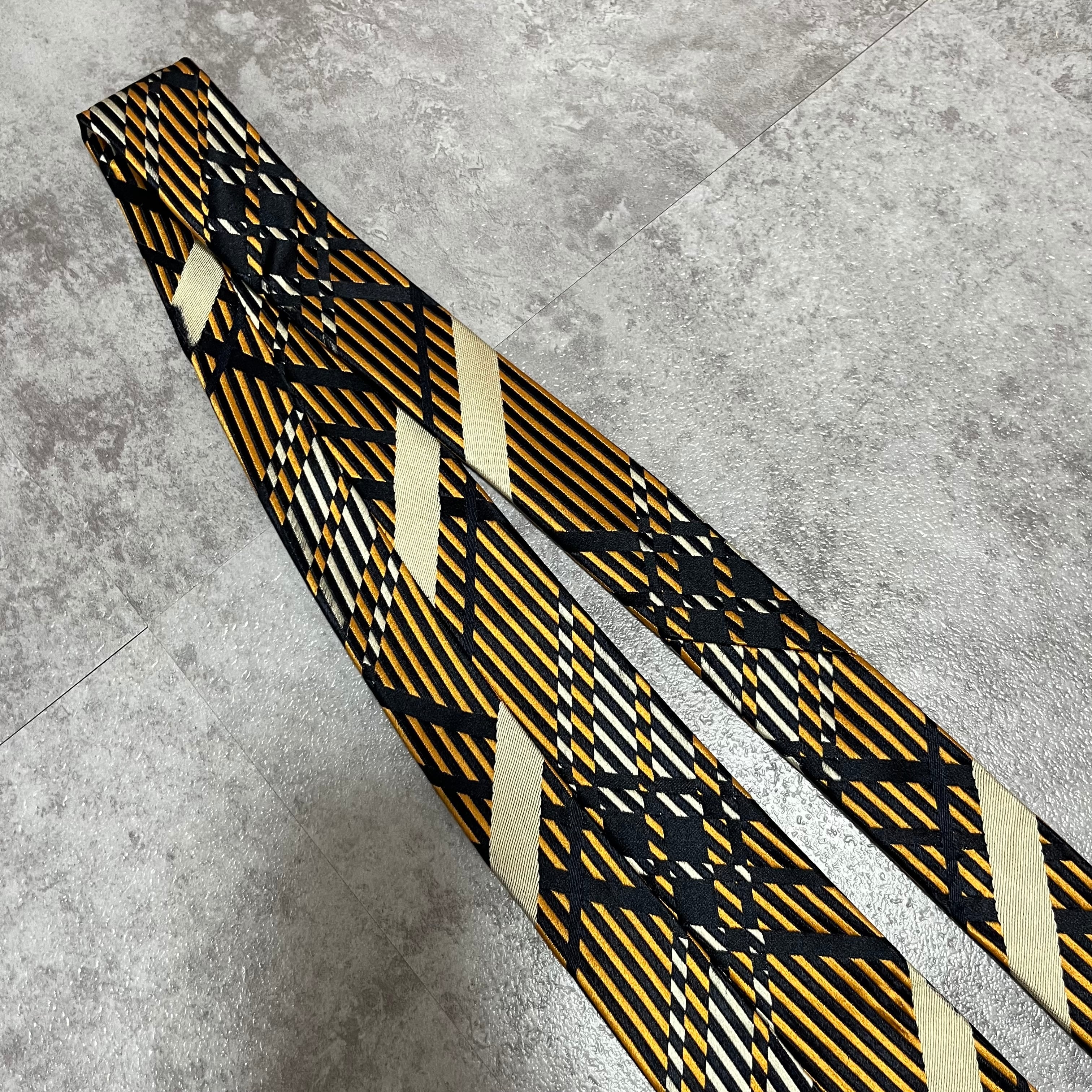 【NINA RICCI】特殊チェック柄ネクタイ バイカラー オレンジ ブラック 橙 黒 ビジネス向け 光沢 ニナリッチ
