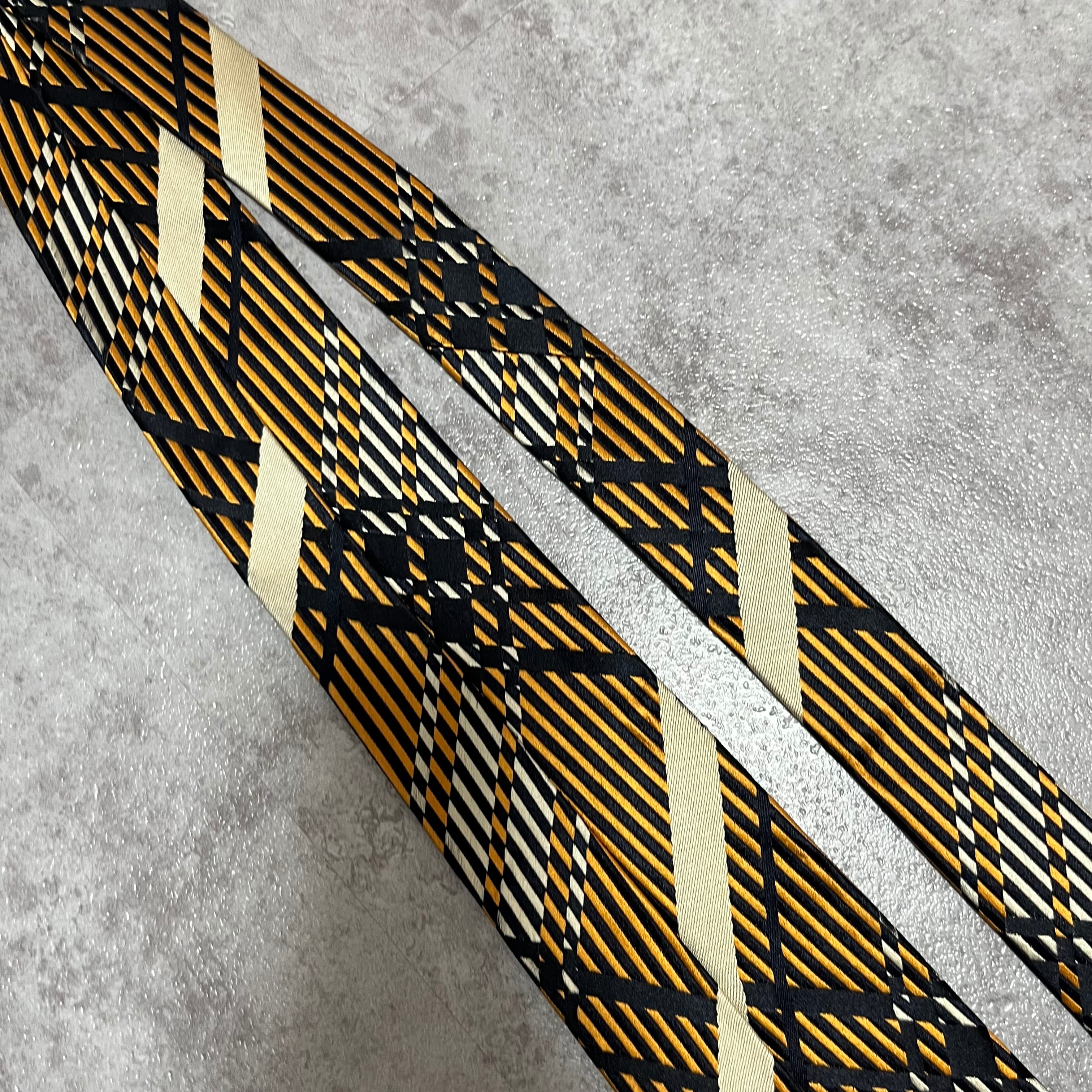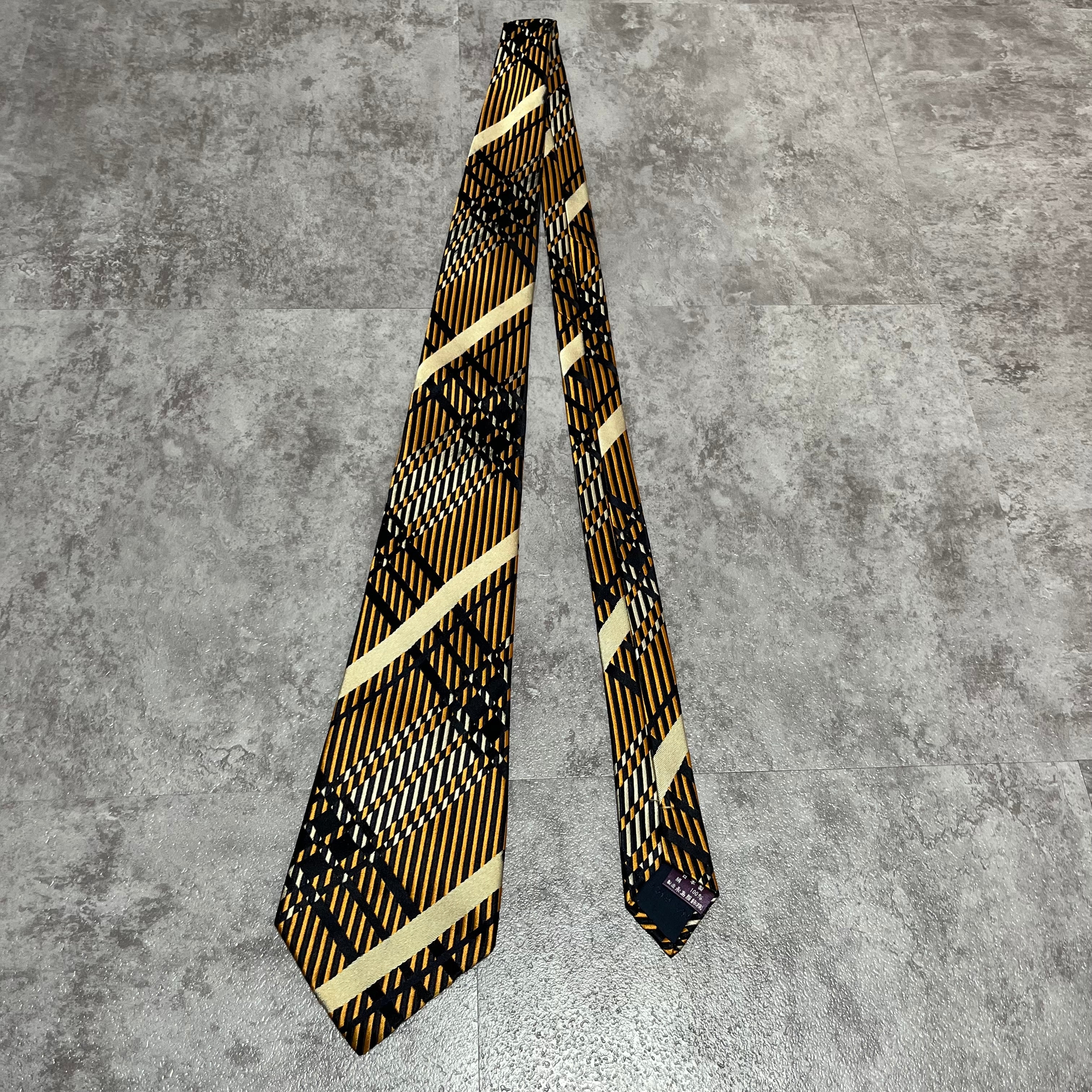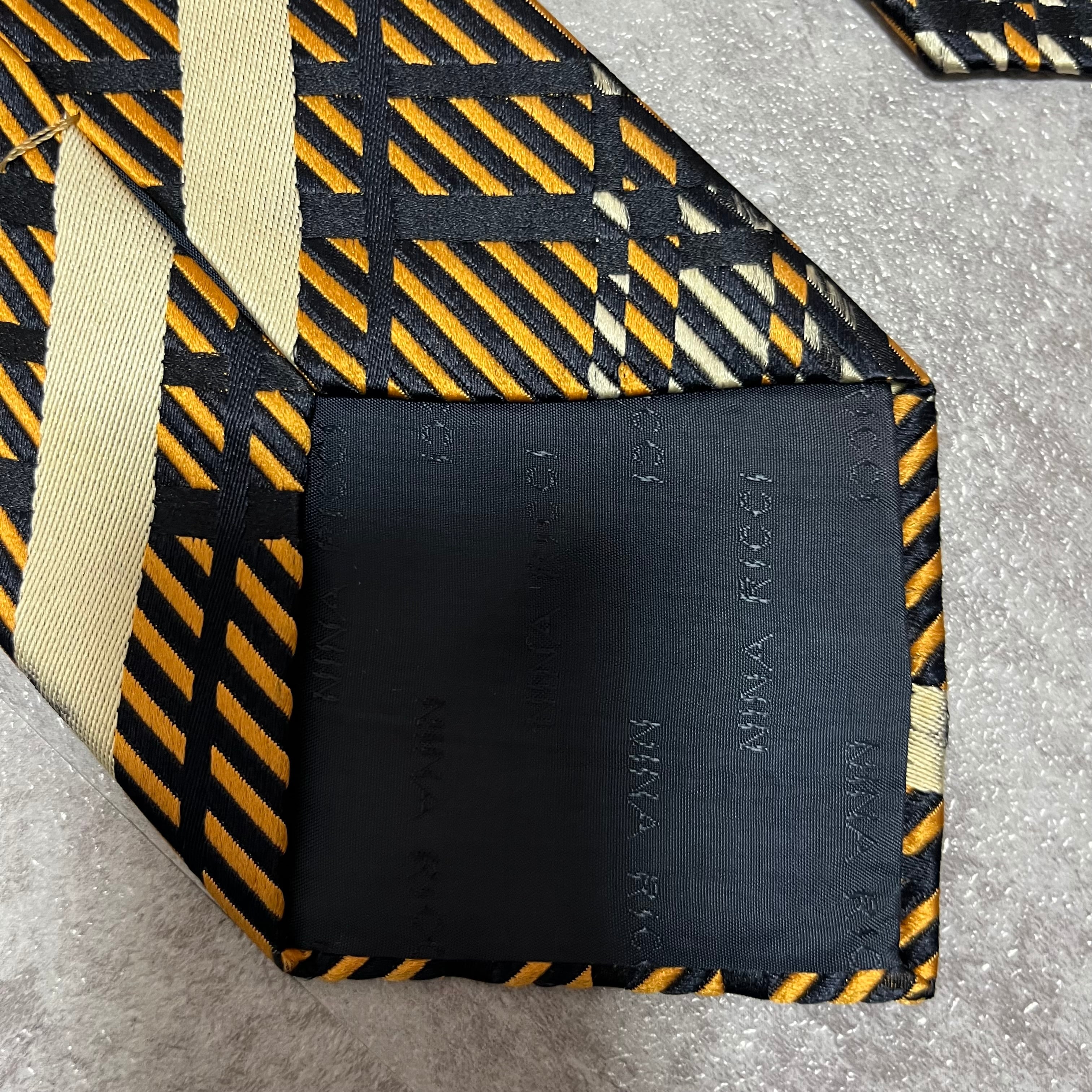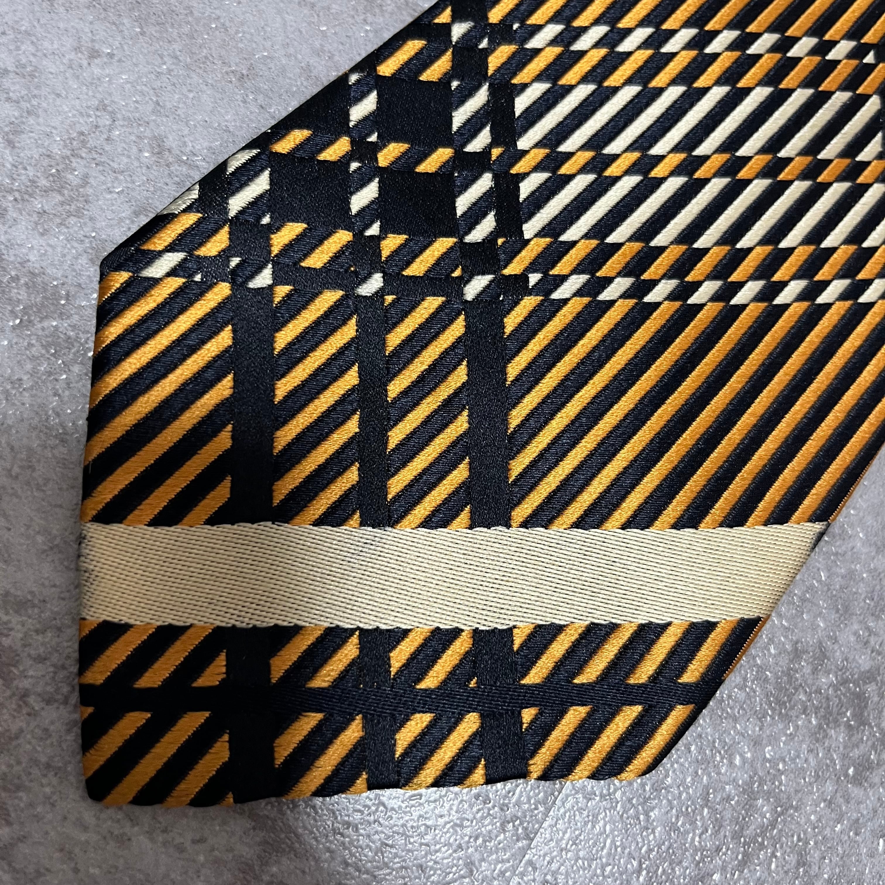 【NINA RICCI】特殊チェック柄ネクタイ バイカラー オレンジ ブラック 橙 黒 ビジネス向け 光沢 ニナリッチ