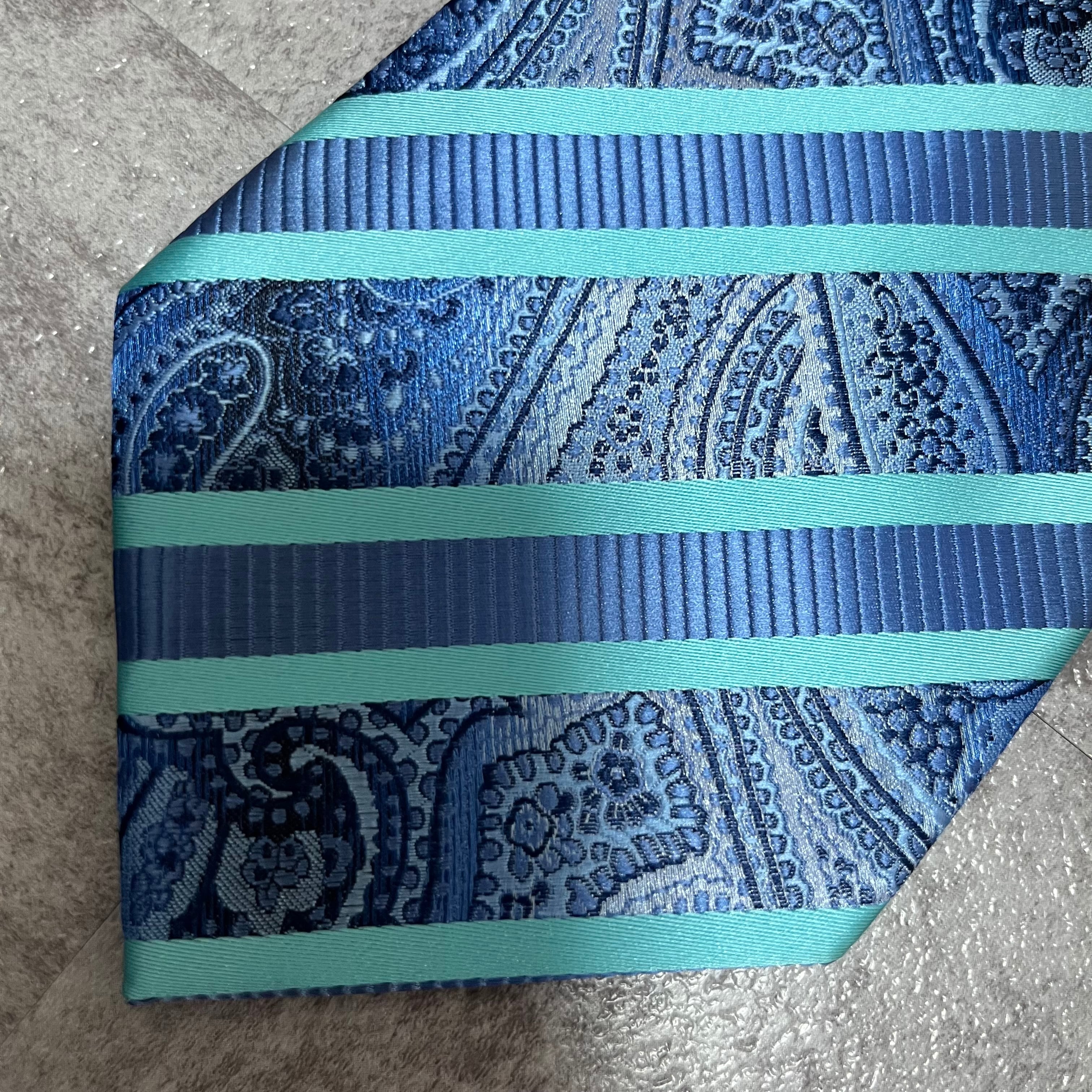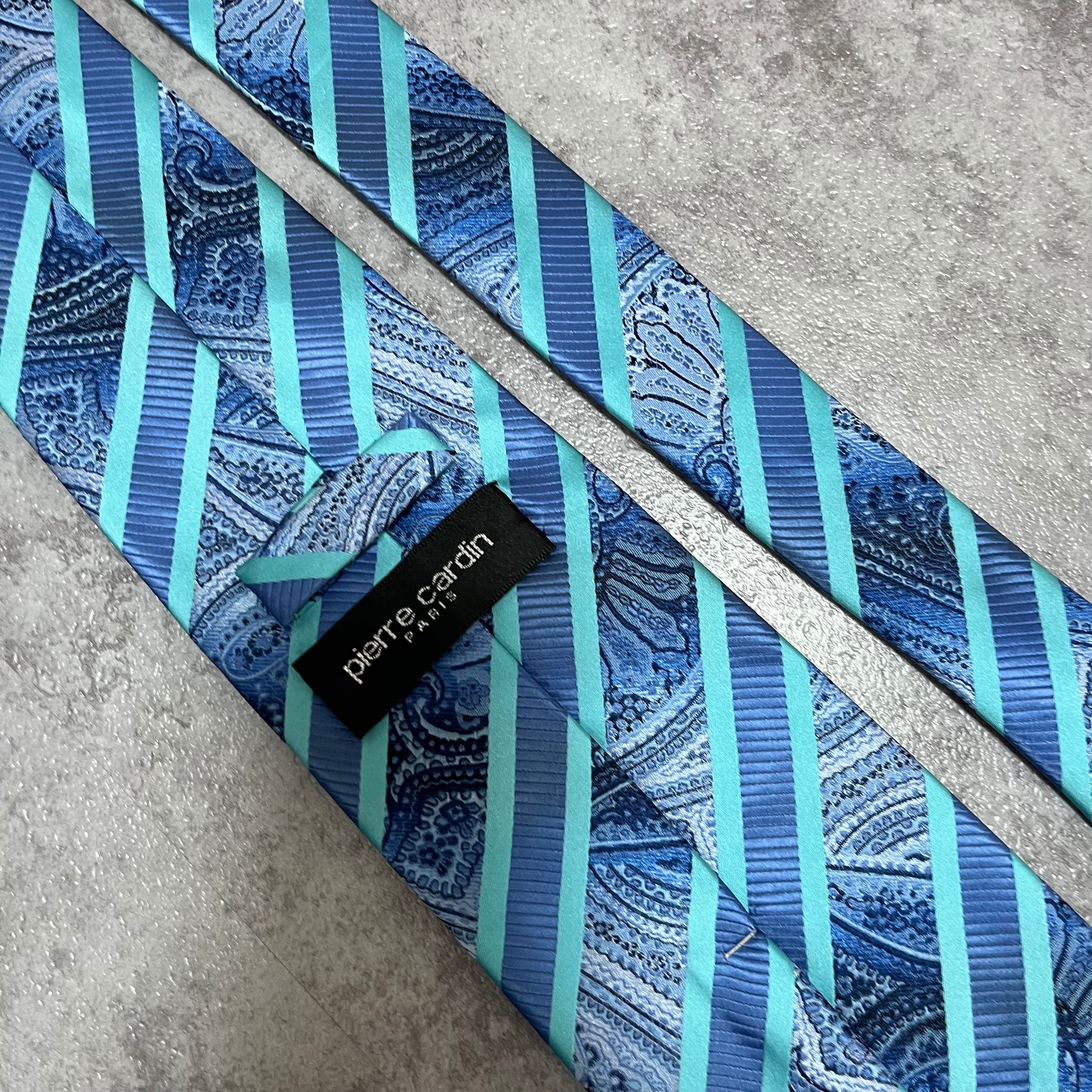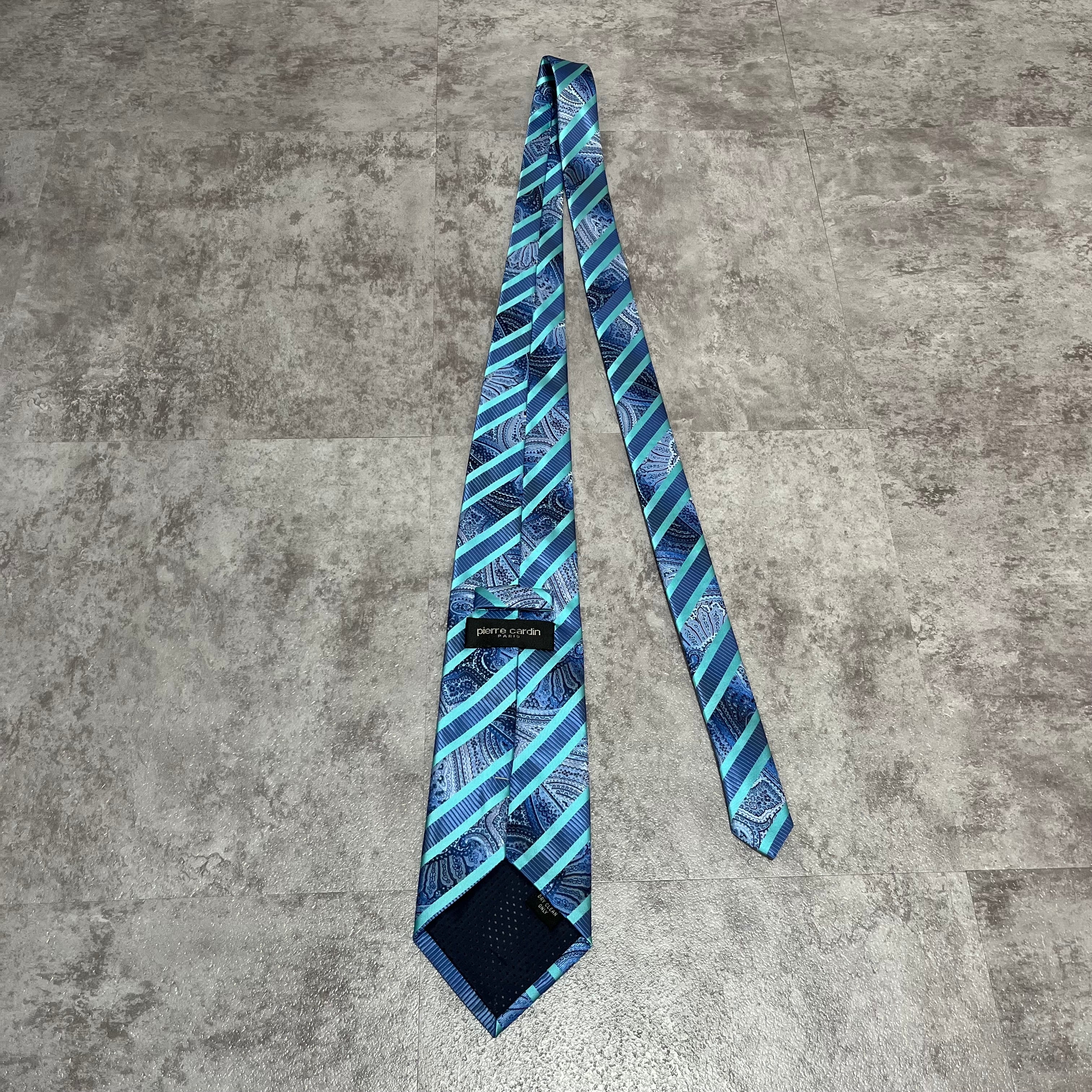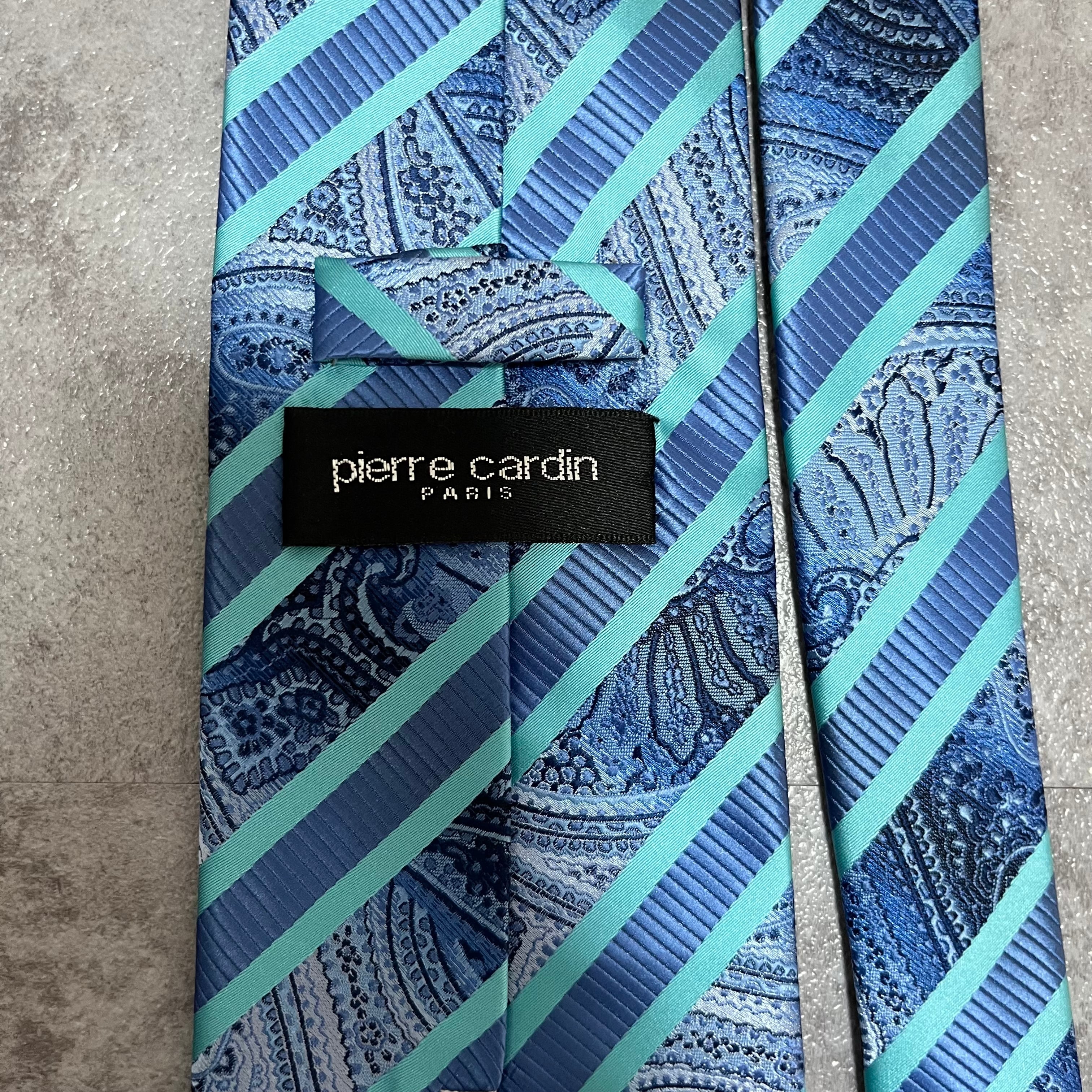 【pierre cardin】レジメンタルストライプネクタイ ビジネス向け バイカラー ペイズリー柄 光沢肉厚 ブルー 青 ピエールカルダン