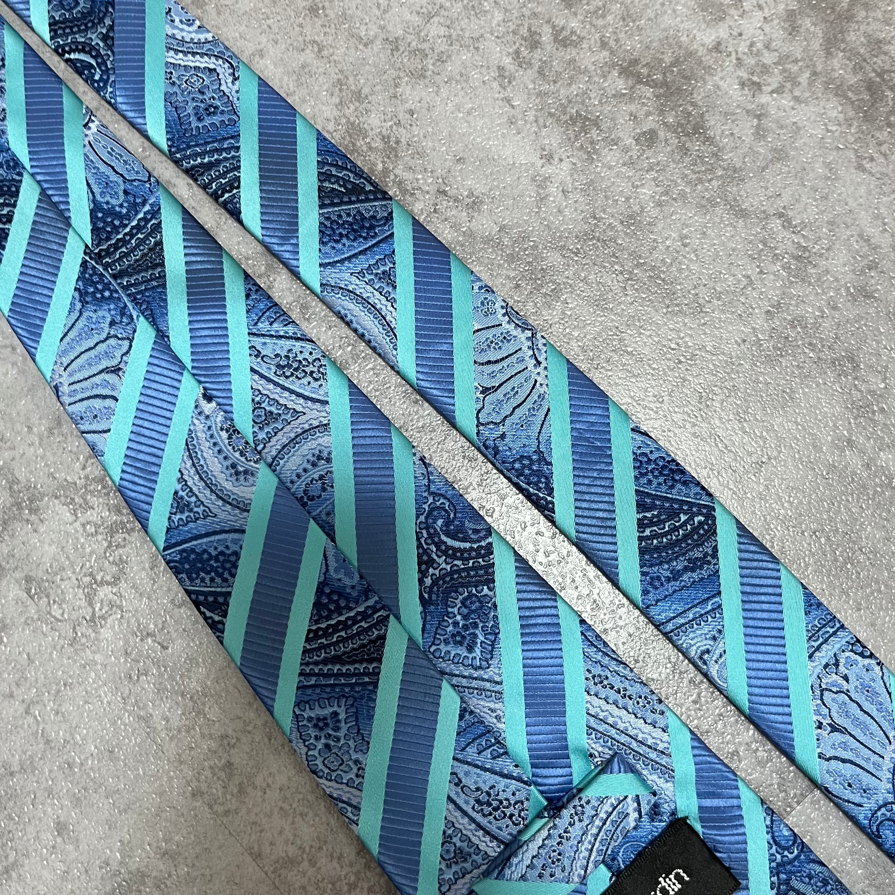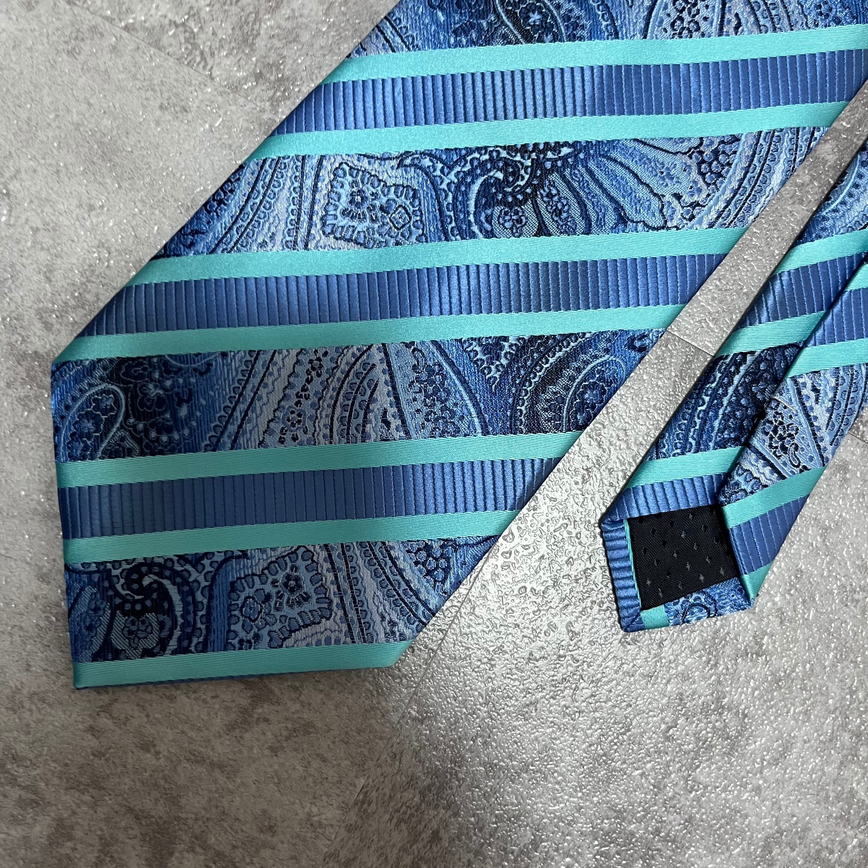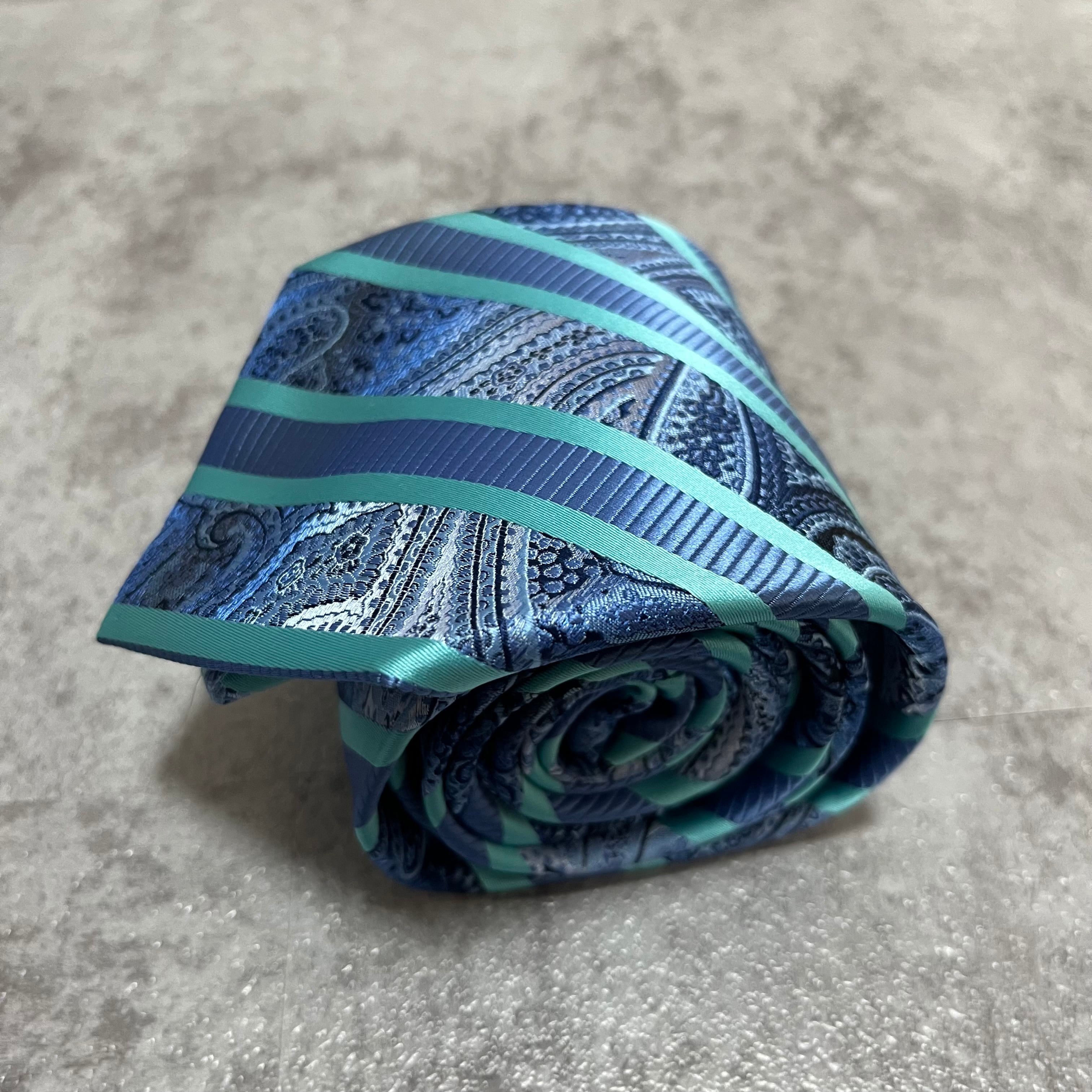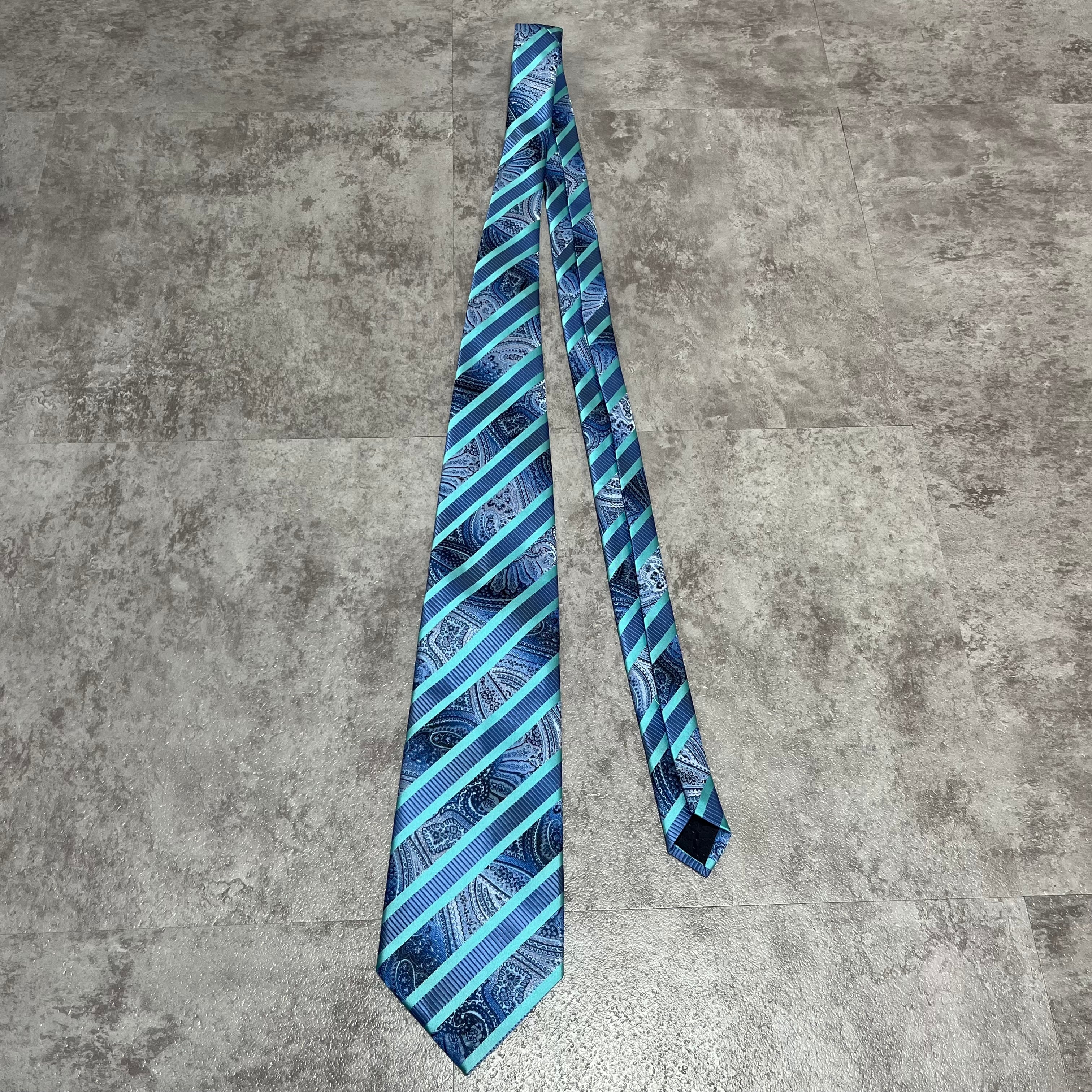 【pierre cardin】レジメンタルストライプネクタイ ビジネス向け バイカラー ペイズリー柄 光沢肉厚 ブルー 青 ピエールカルダン