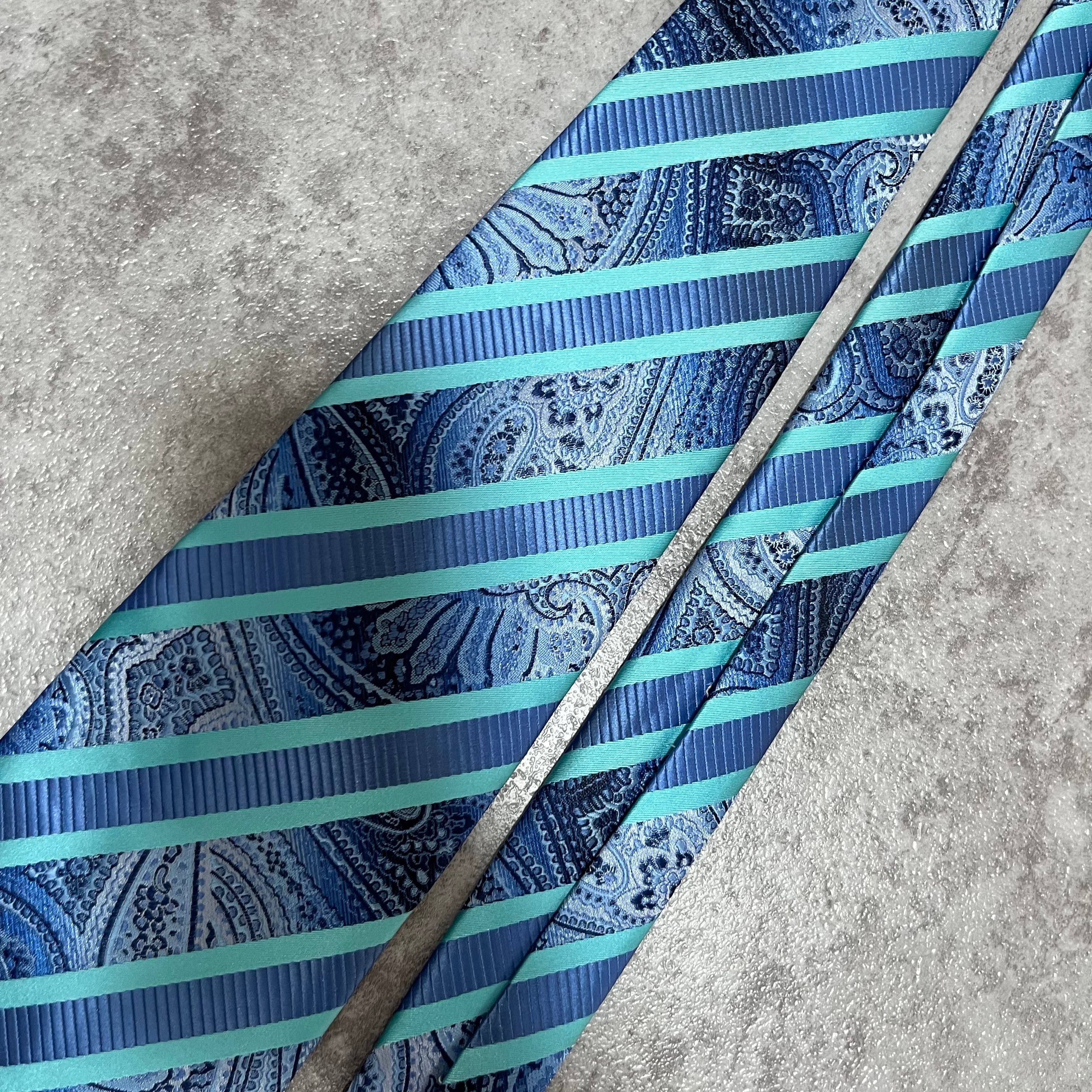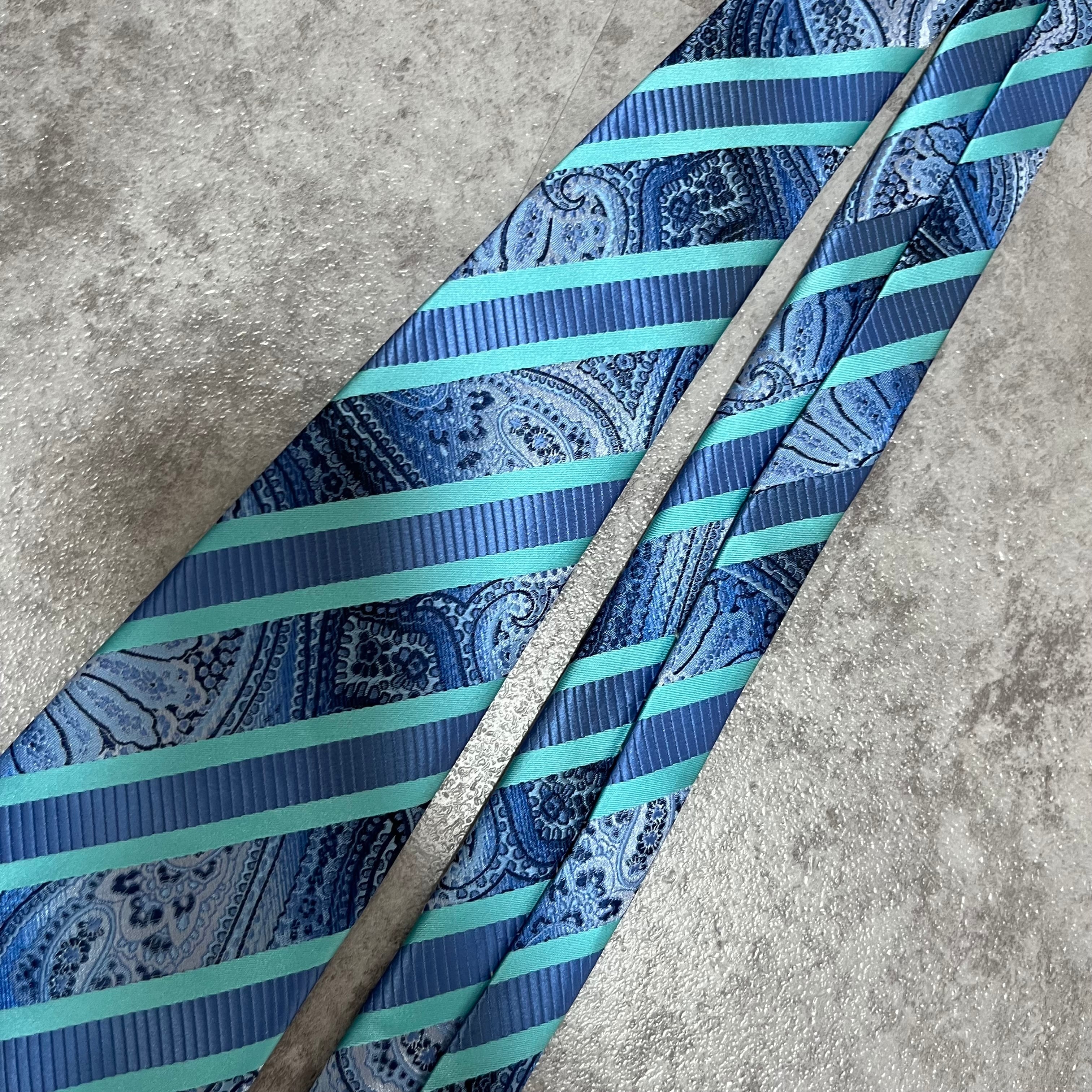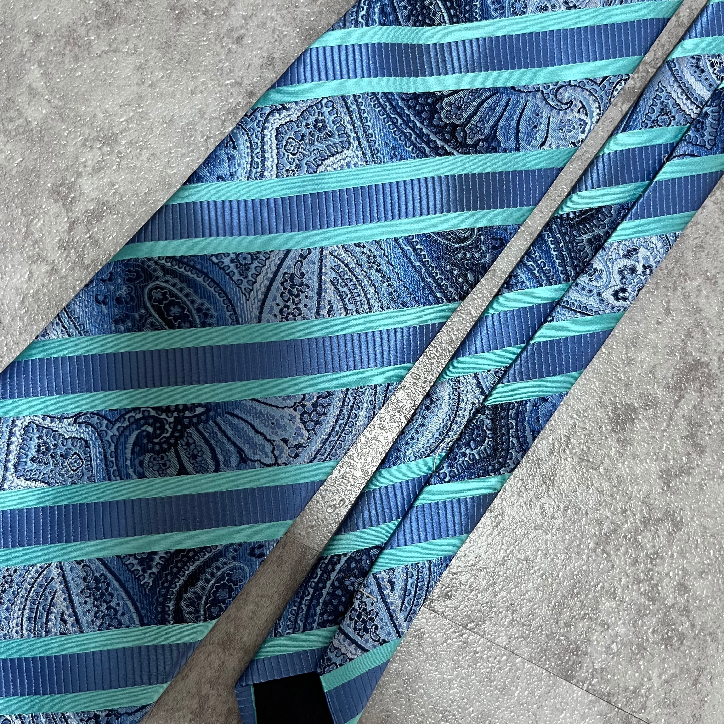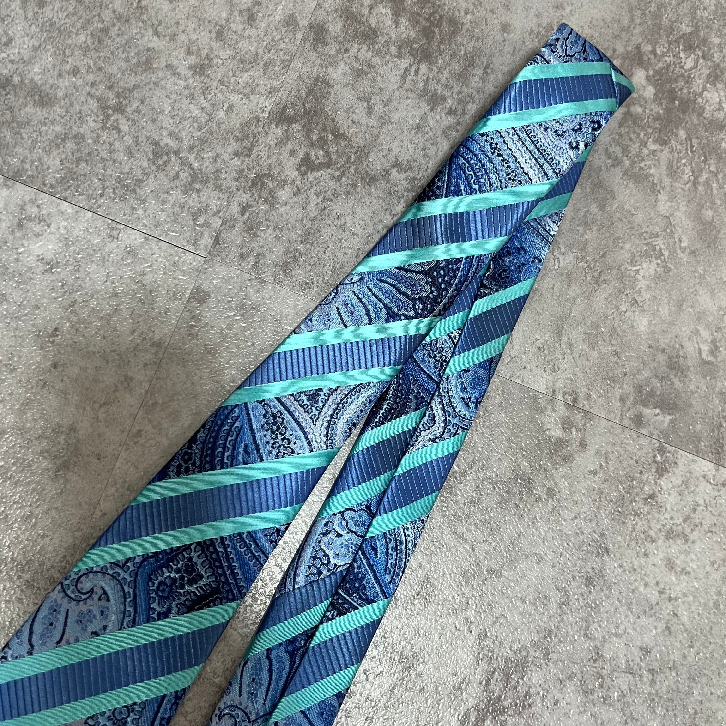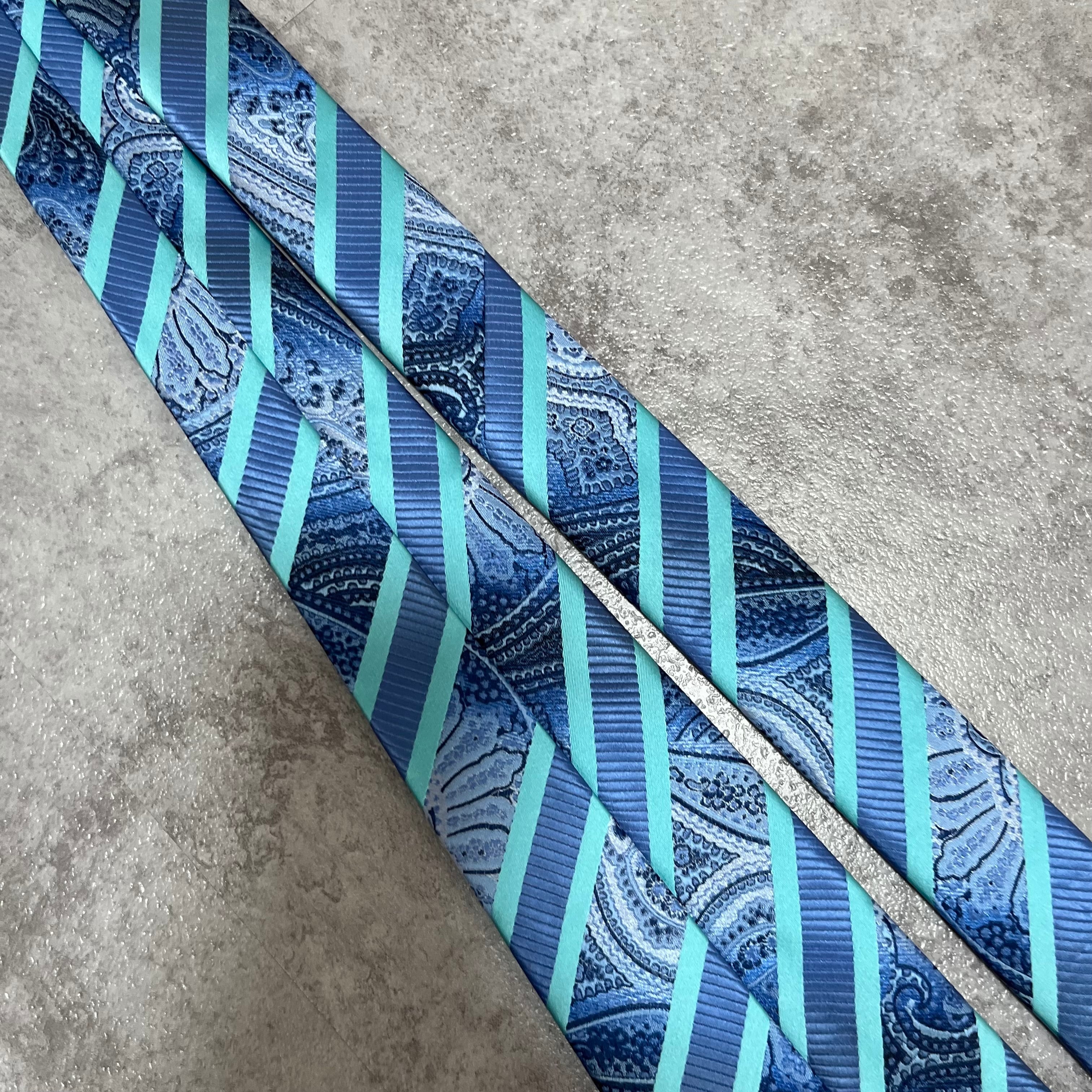 【pierre cardin】レジメンタルストライプネクタイ ビジネス向け バイカラー ペイズリー柄 光沢肉厚 ブルー 青 ピエールカルダン