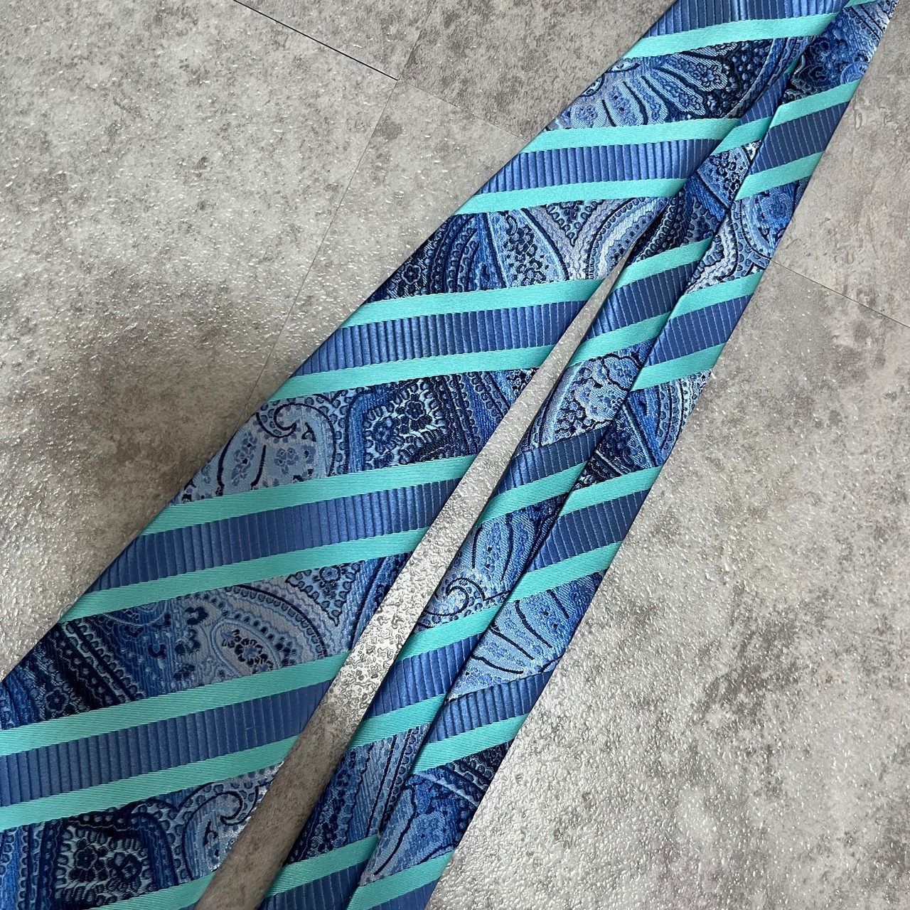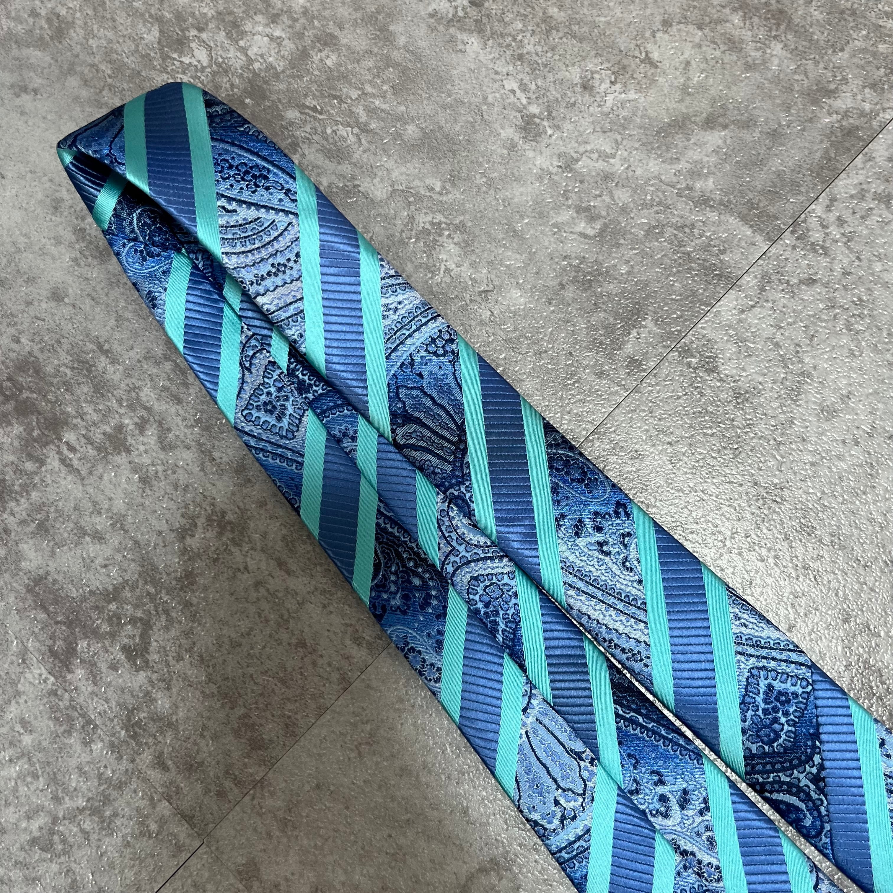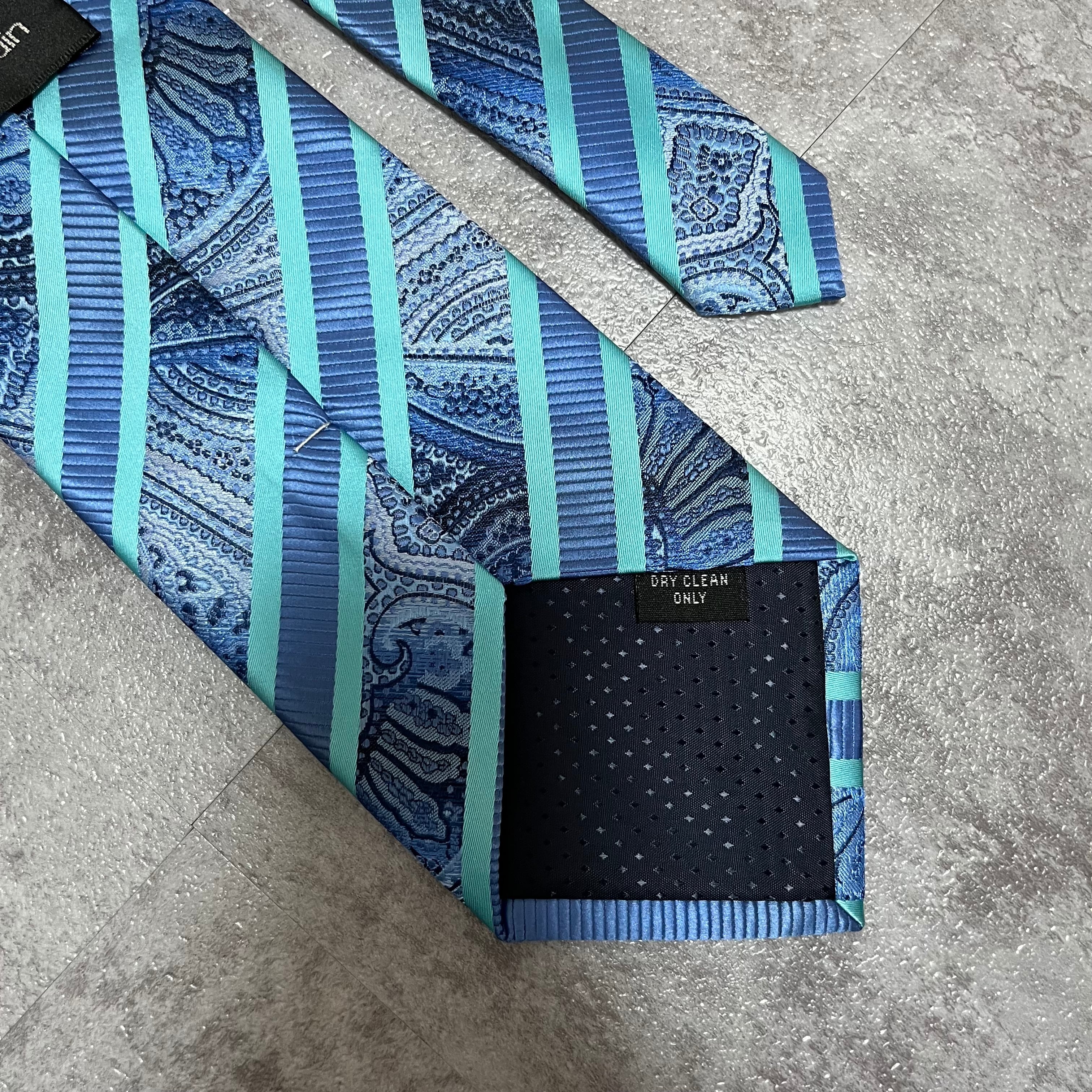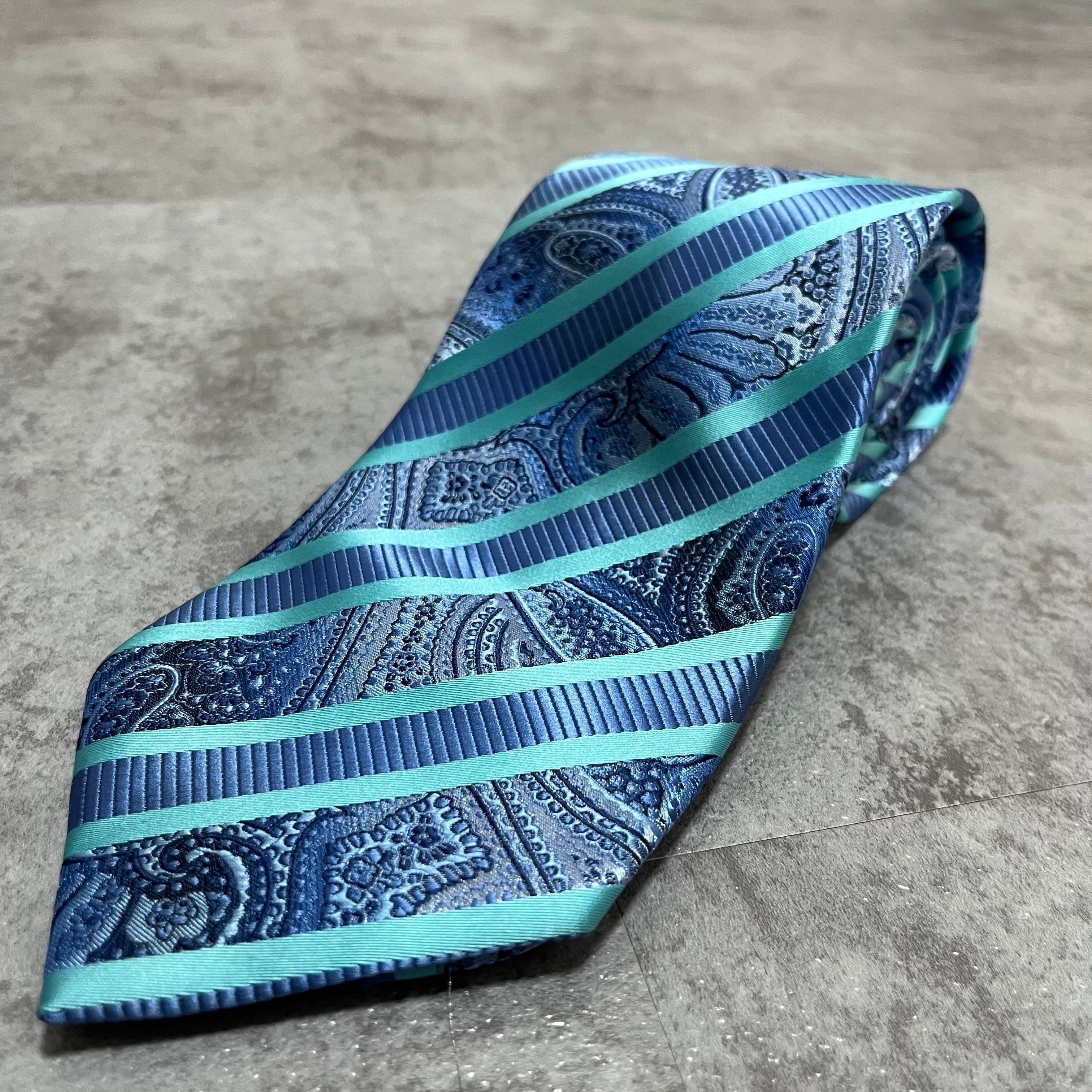【pierre cardin】レジメンタルストライプネクタイ ビジネス向け バイカラー ペイズリー柄 光沢肉厚 ブルー 青 ピエールカルダン