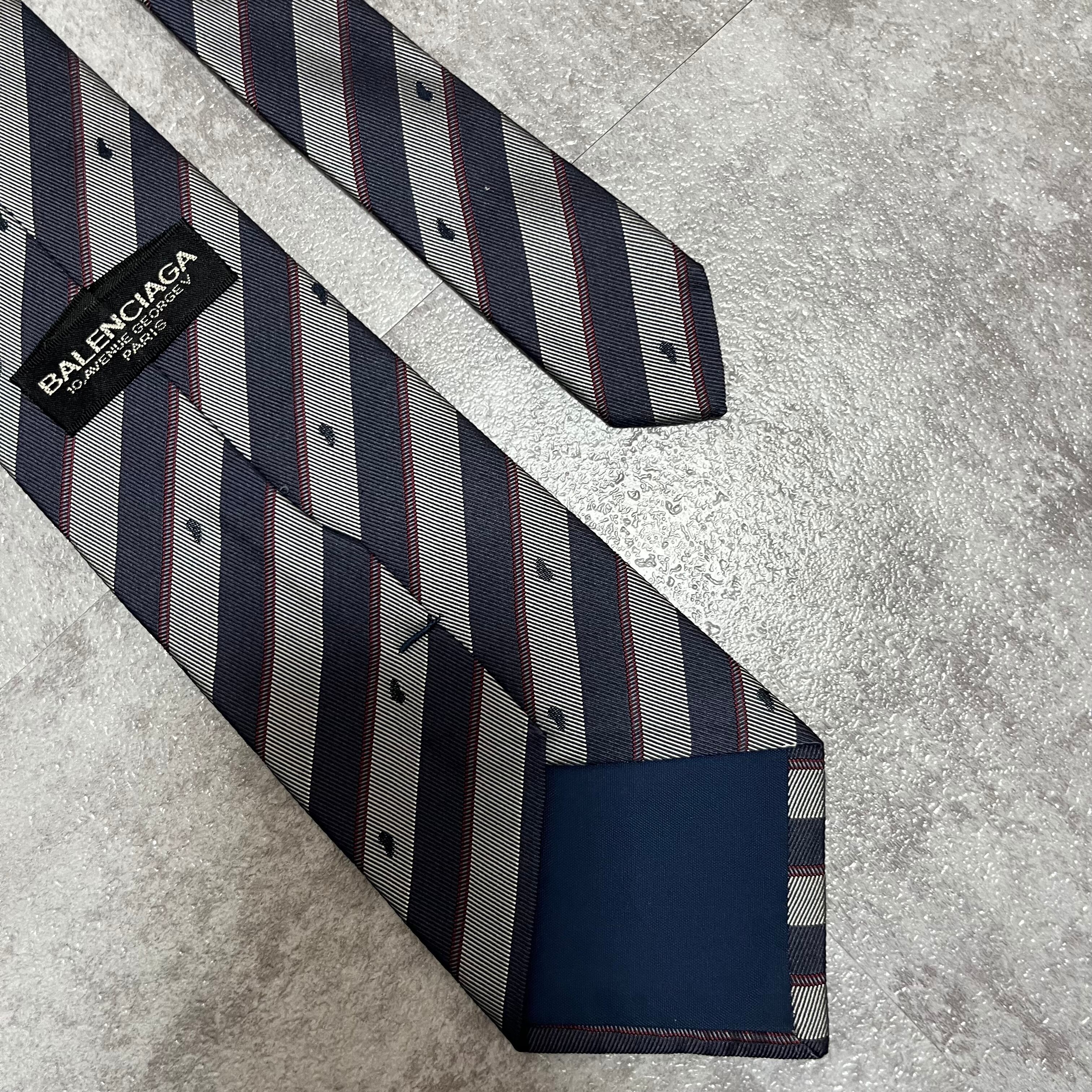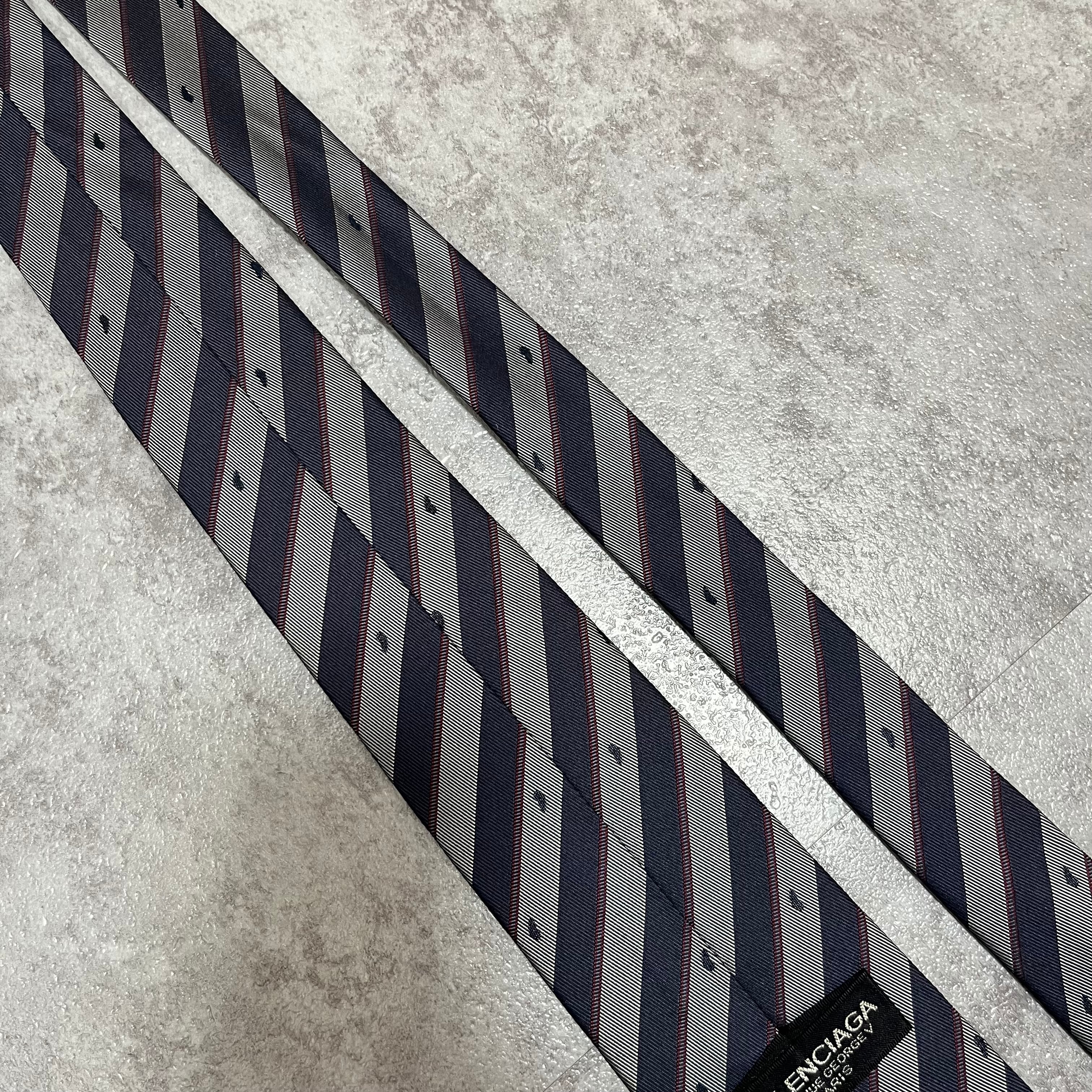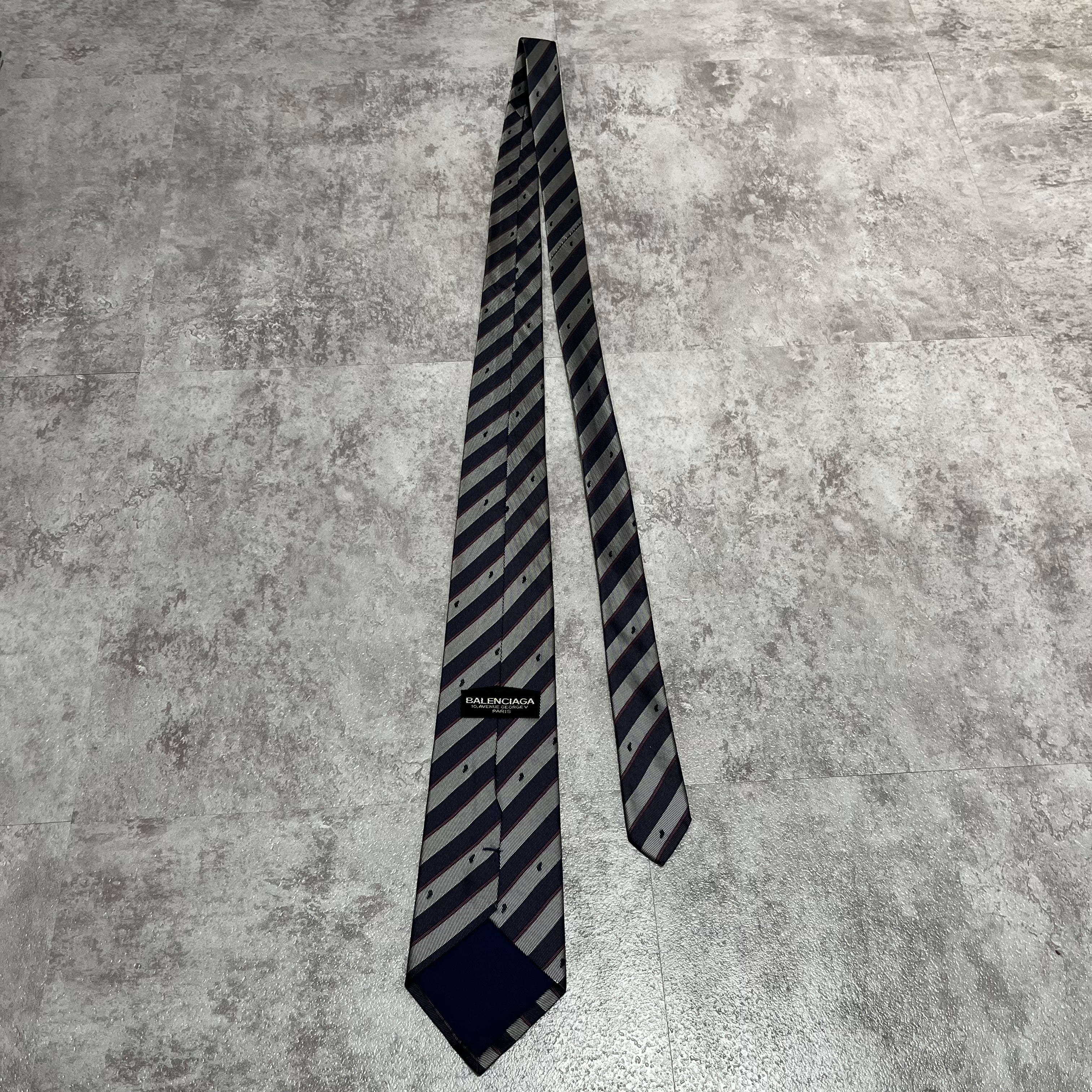 【BALENCIAGA】レジメンタルストライプネクタイ ビジネス向け バイカラー ネイビー グレー 紺色 灰色 小紋ペイズリー柄 バレンシアガ