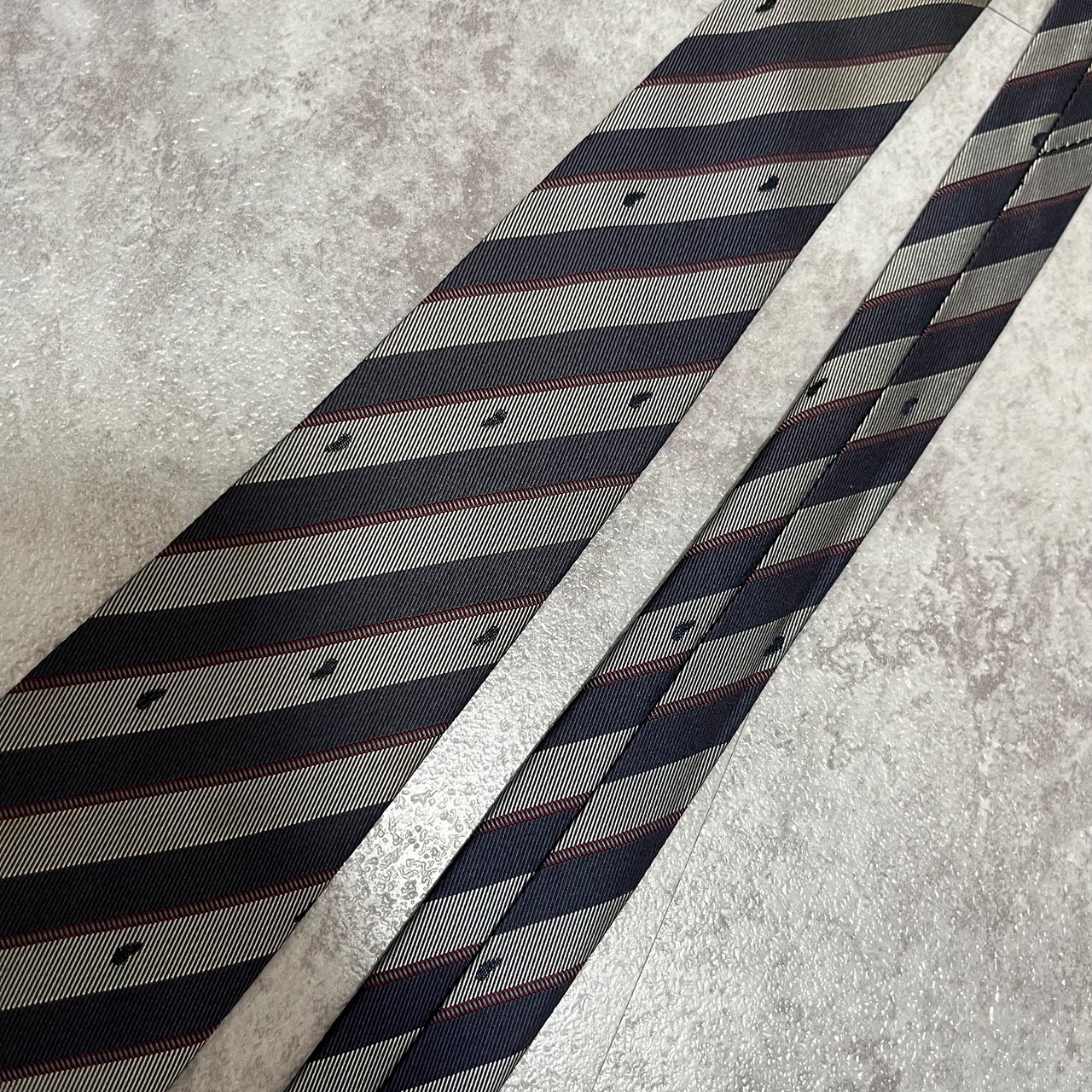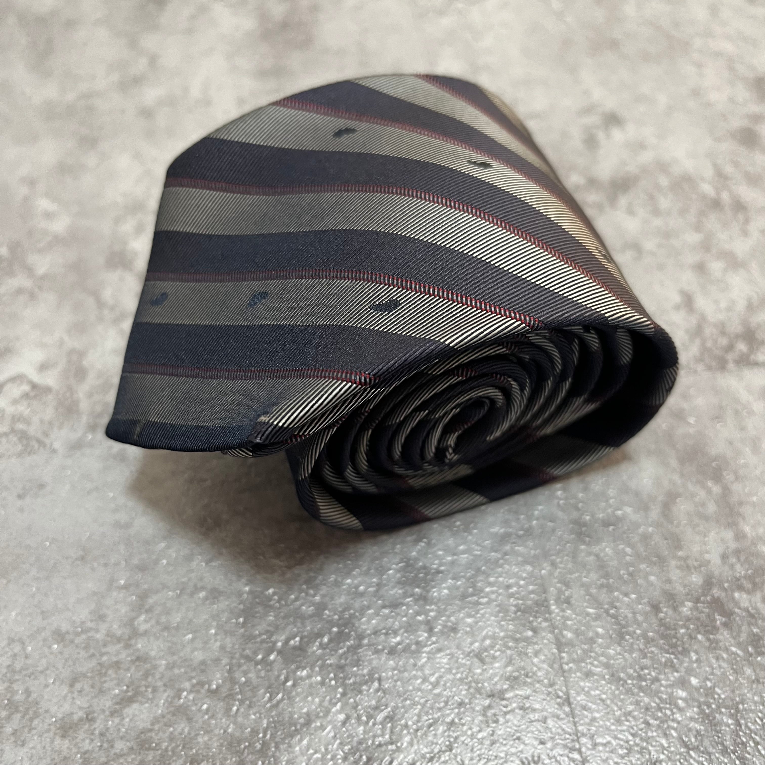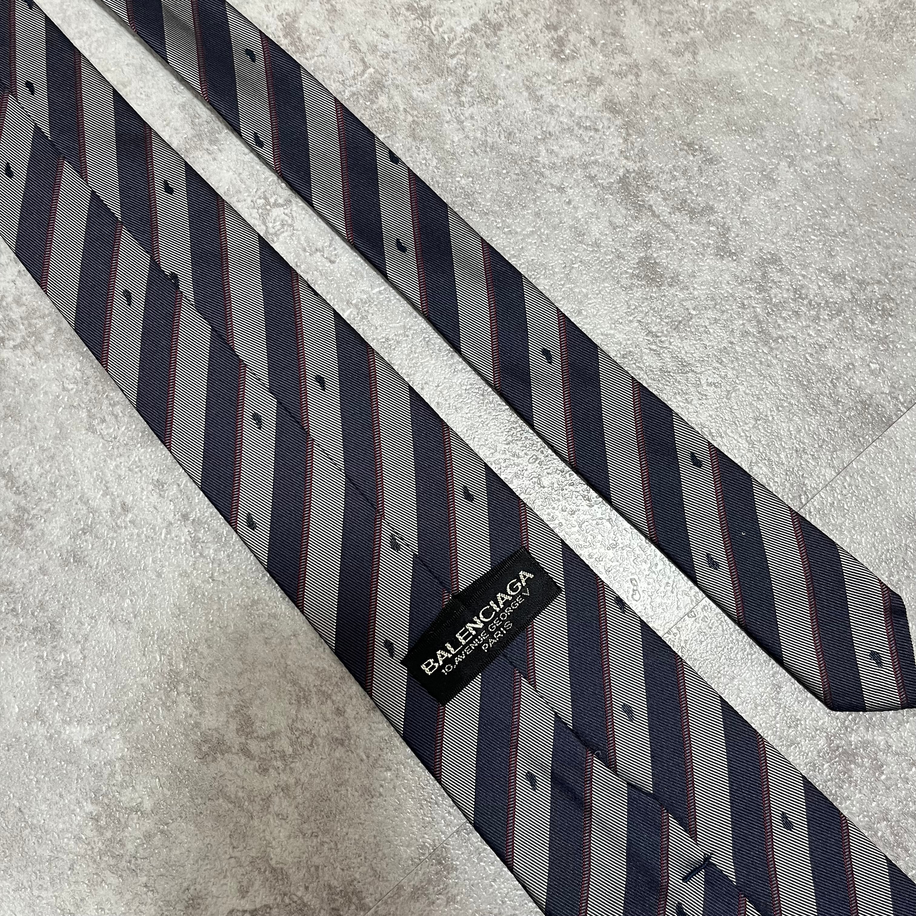 【BALENCIAGA】レジメンタルストライプネクタイ ビジネス向け バイカラー ネイビー グレー 紺色 灰色 小紋ペイズリー柄 バレンシアガ