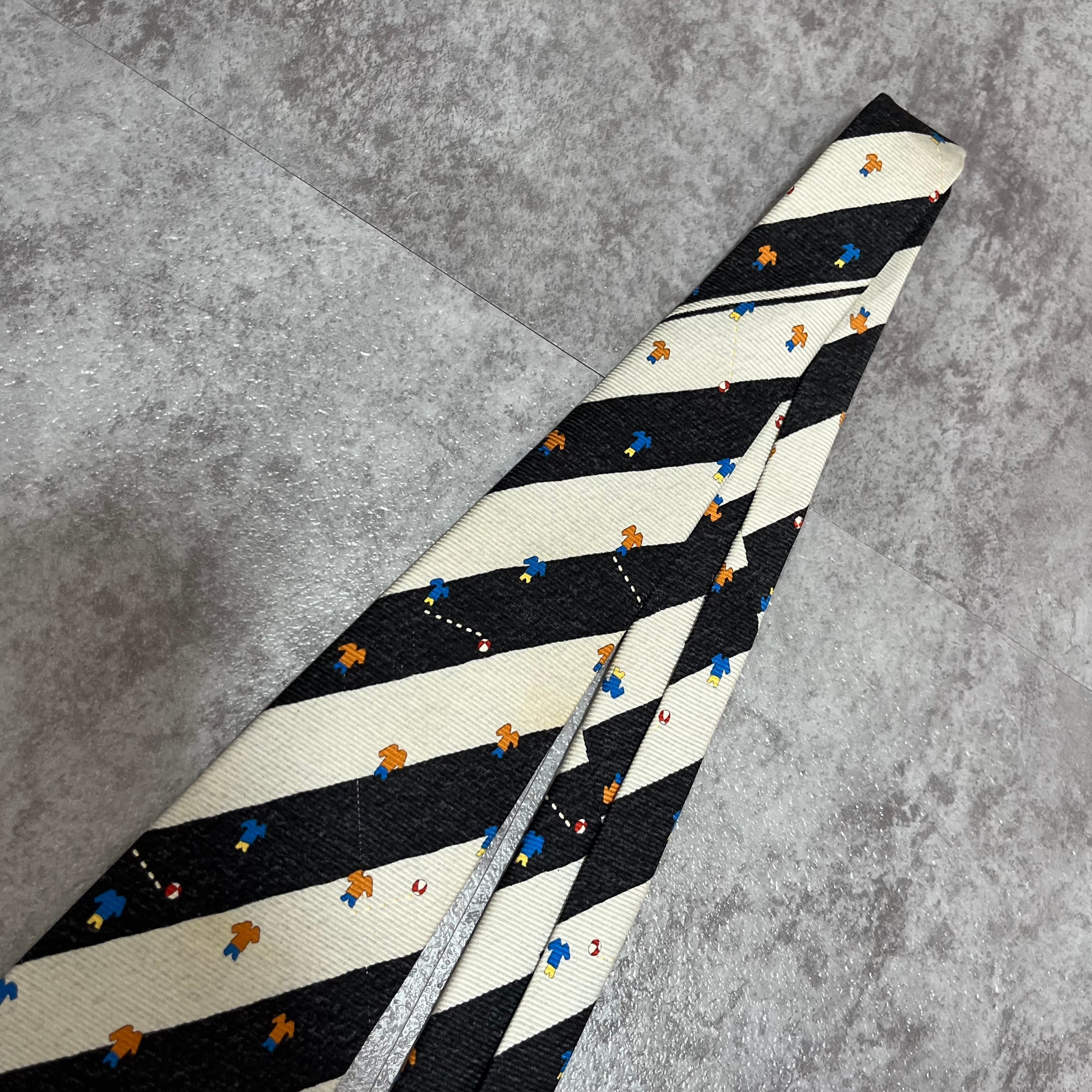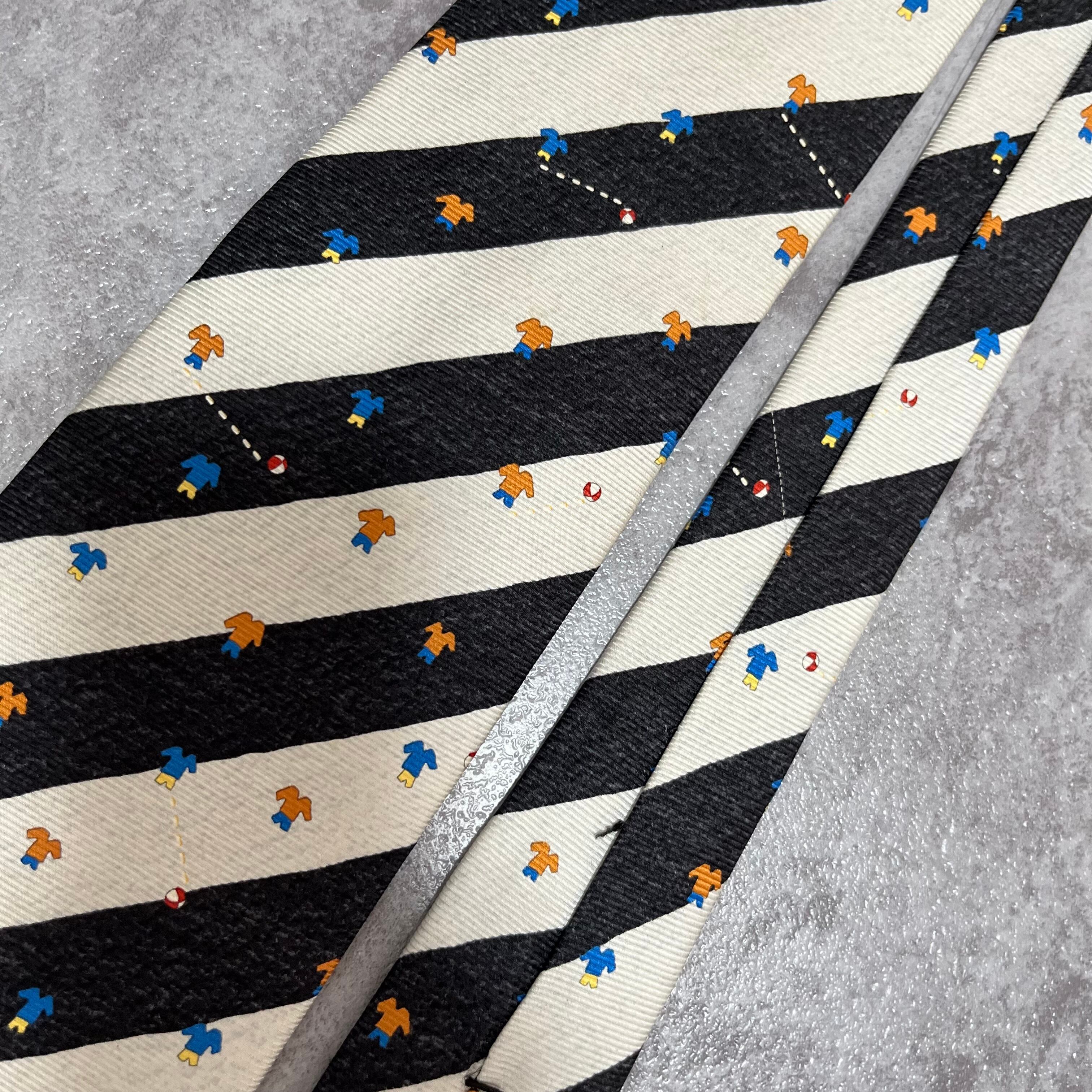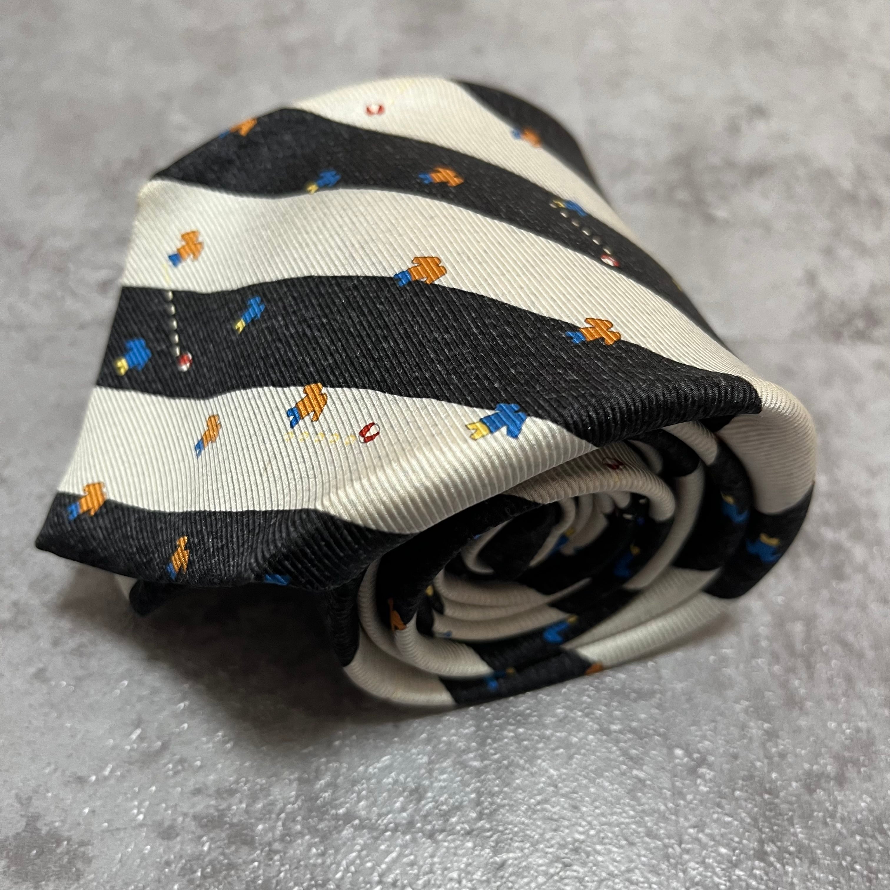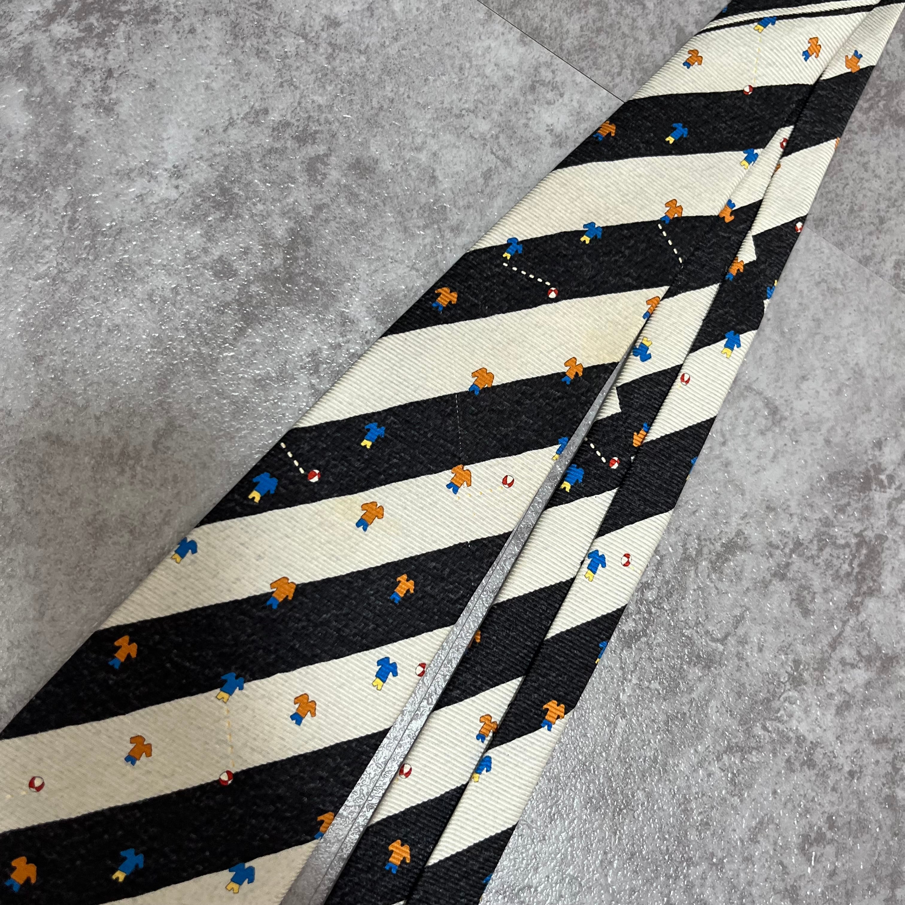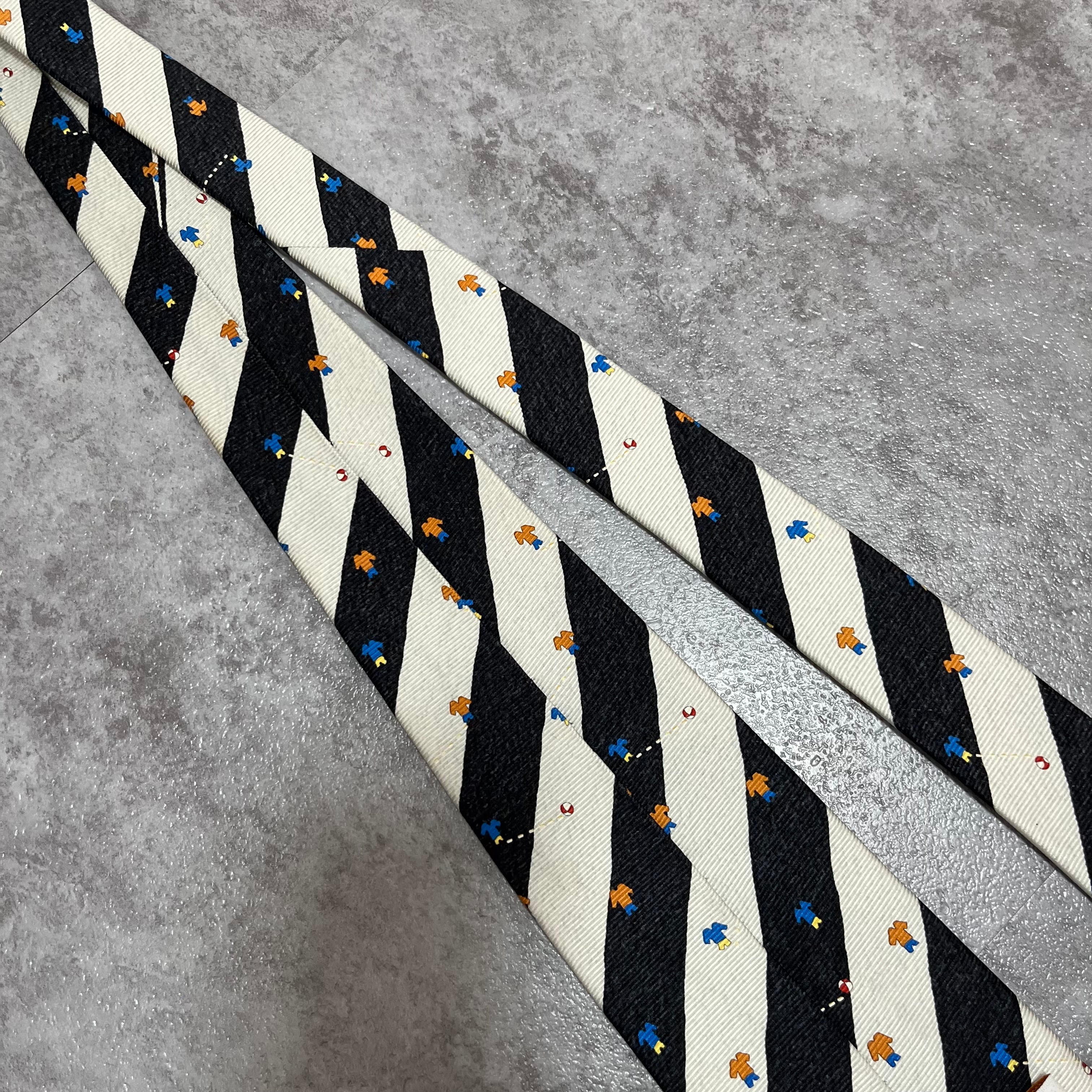 【BVLGARI】レジメンタルストライプネクタイ ビジネス向け バイカラー ブラック ホワイト 子供服モチーフ 黒 白 最高級 セッテピエゲ ブルガリ