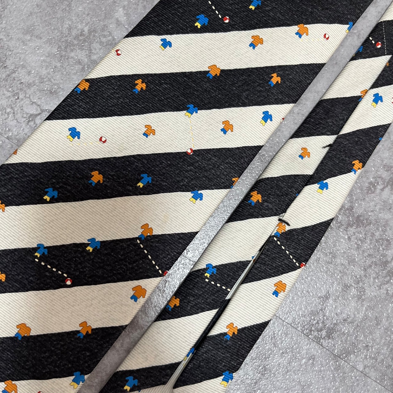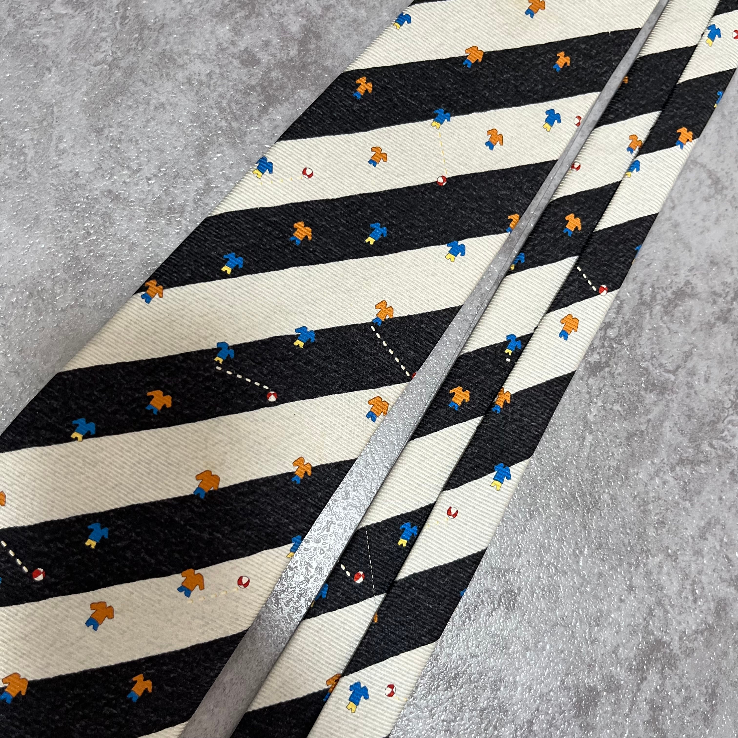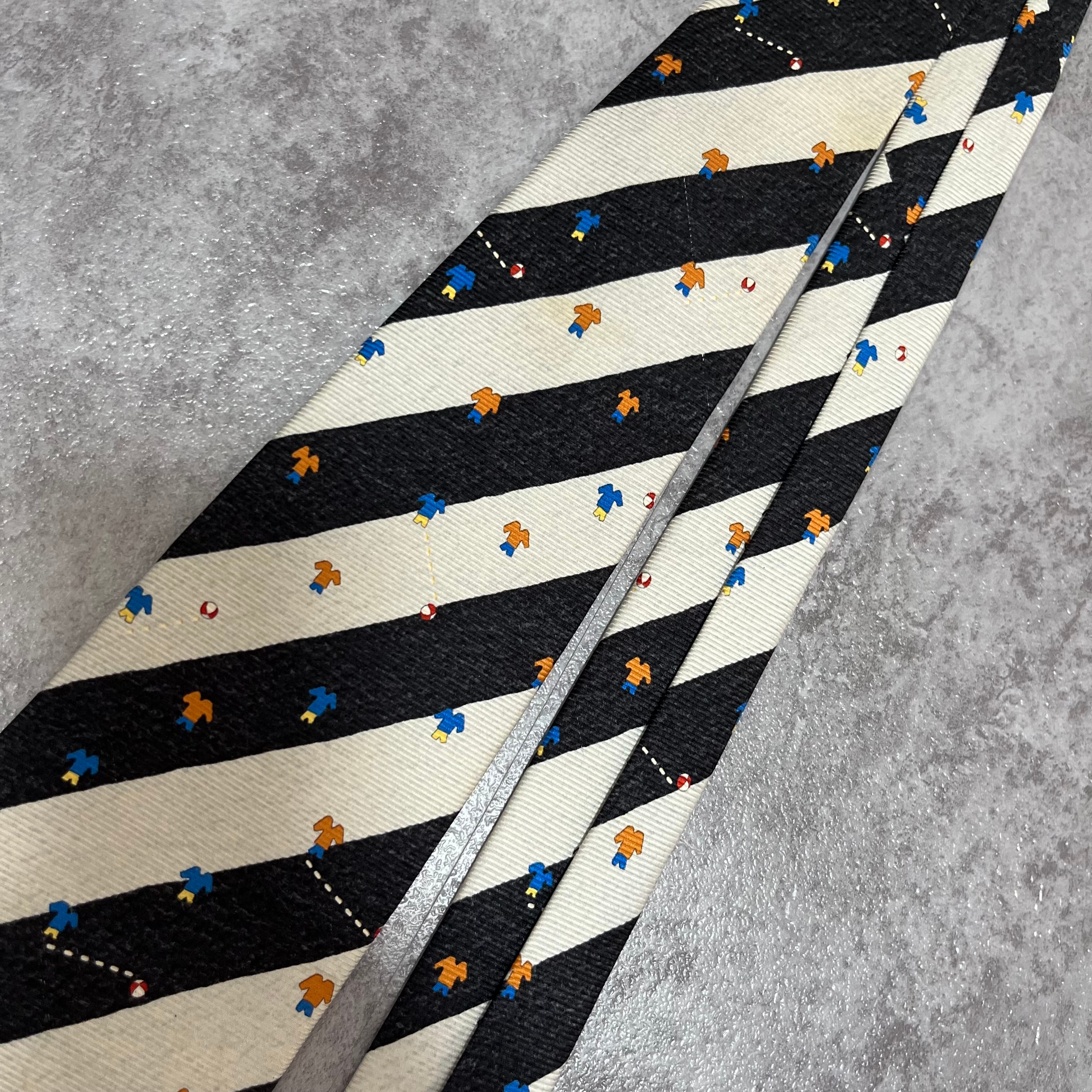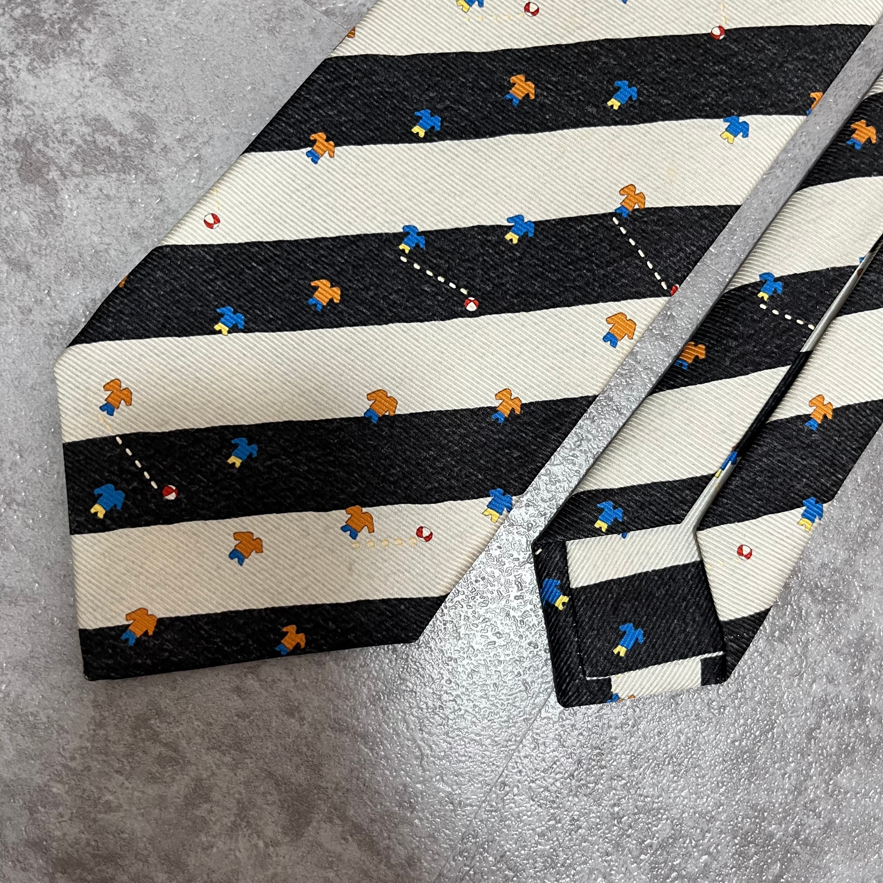【BVLGARI】レジメンタルストライプネクタイ ビジネス向け バイカラー ブラック ホワイト 子供服モチーフ 黒 白 最高級 セッテピエゲ ブルガリ