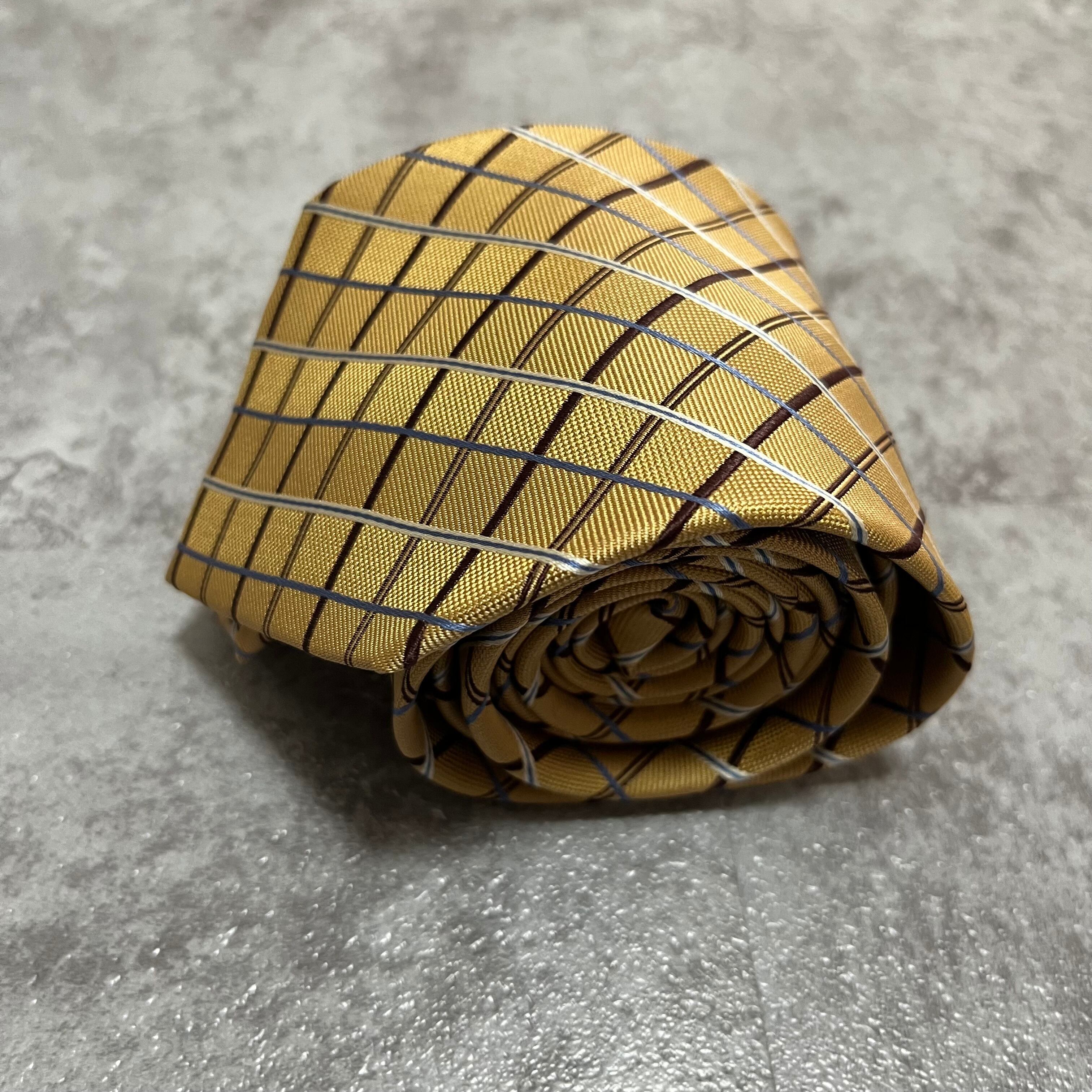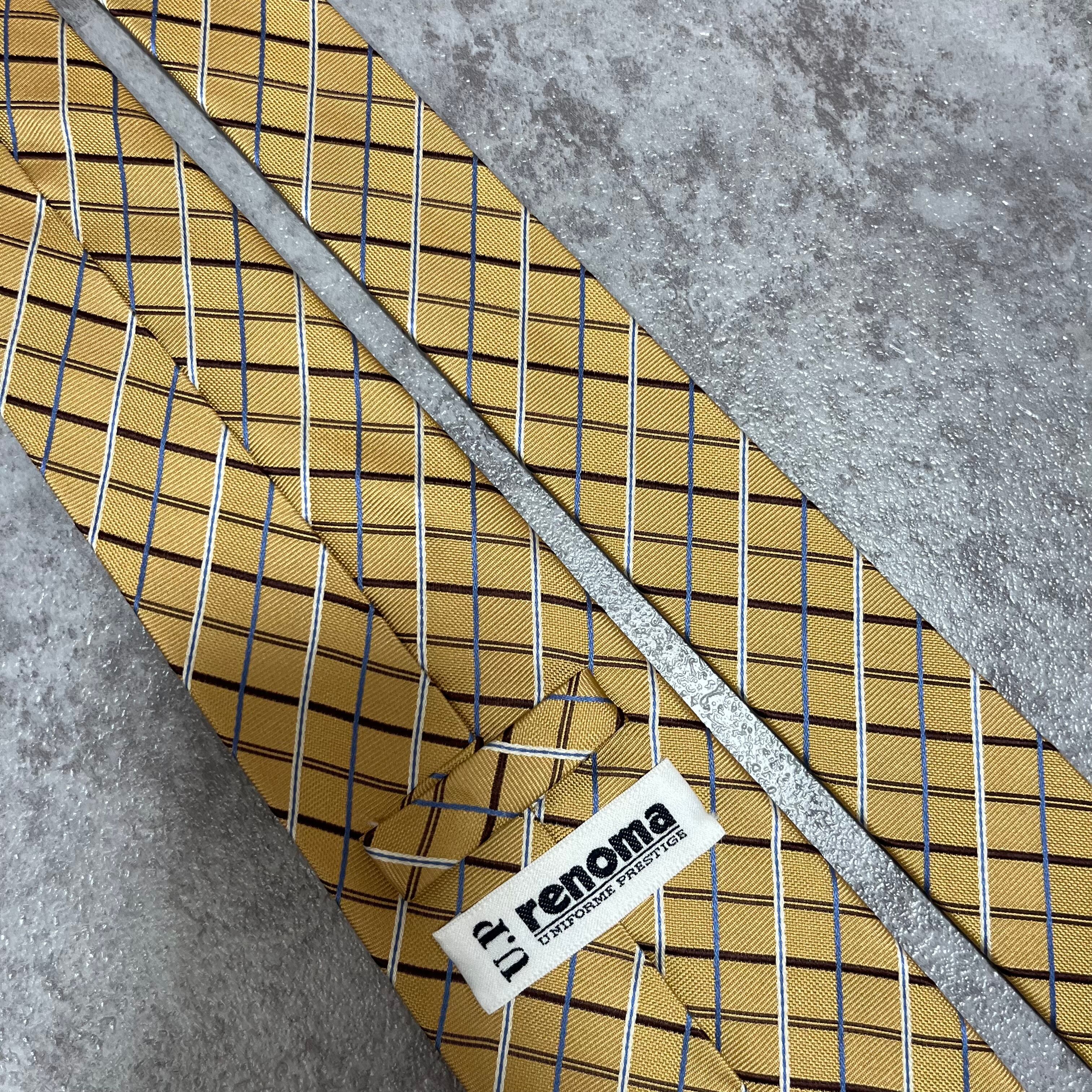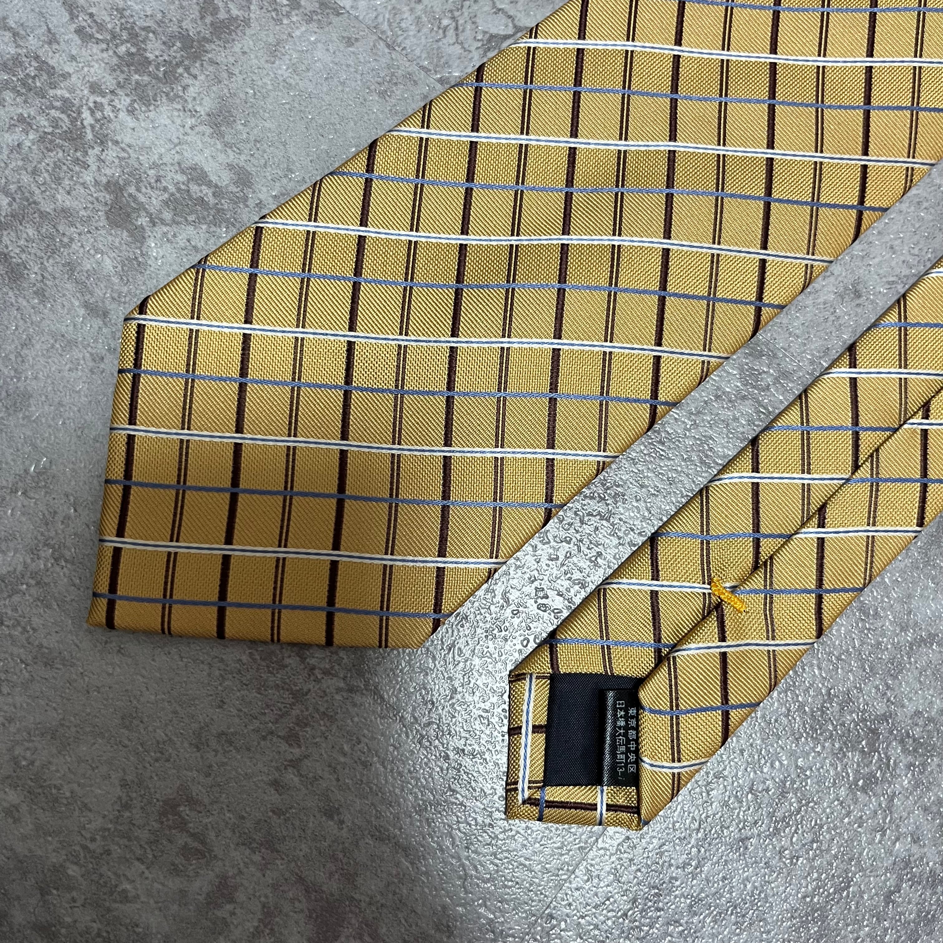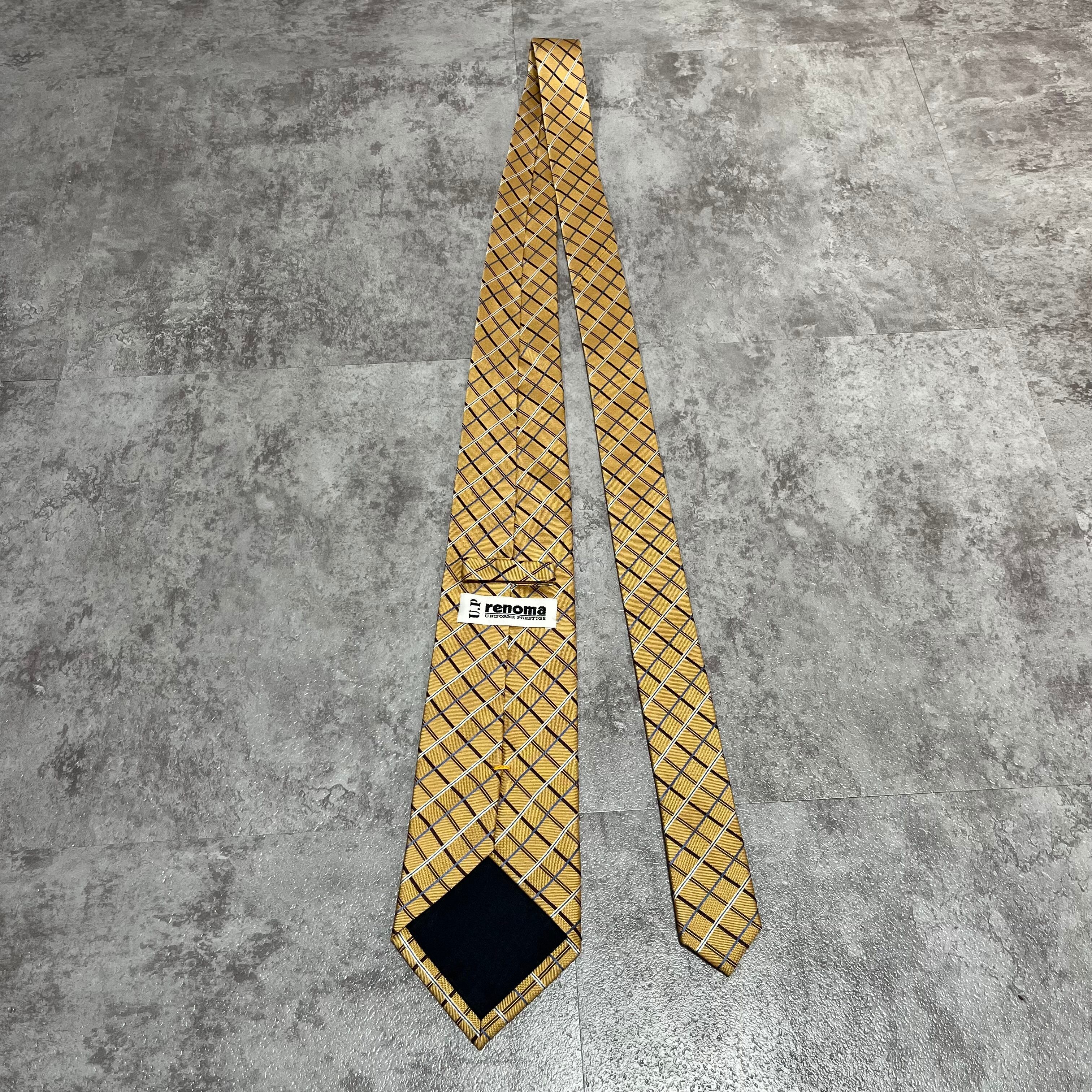 【U.P renoma】チェック柄ネクタイ ゴールド 金色 ビジネス向け 慶事にも ユーピーレノマ