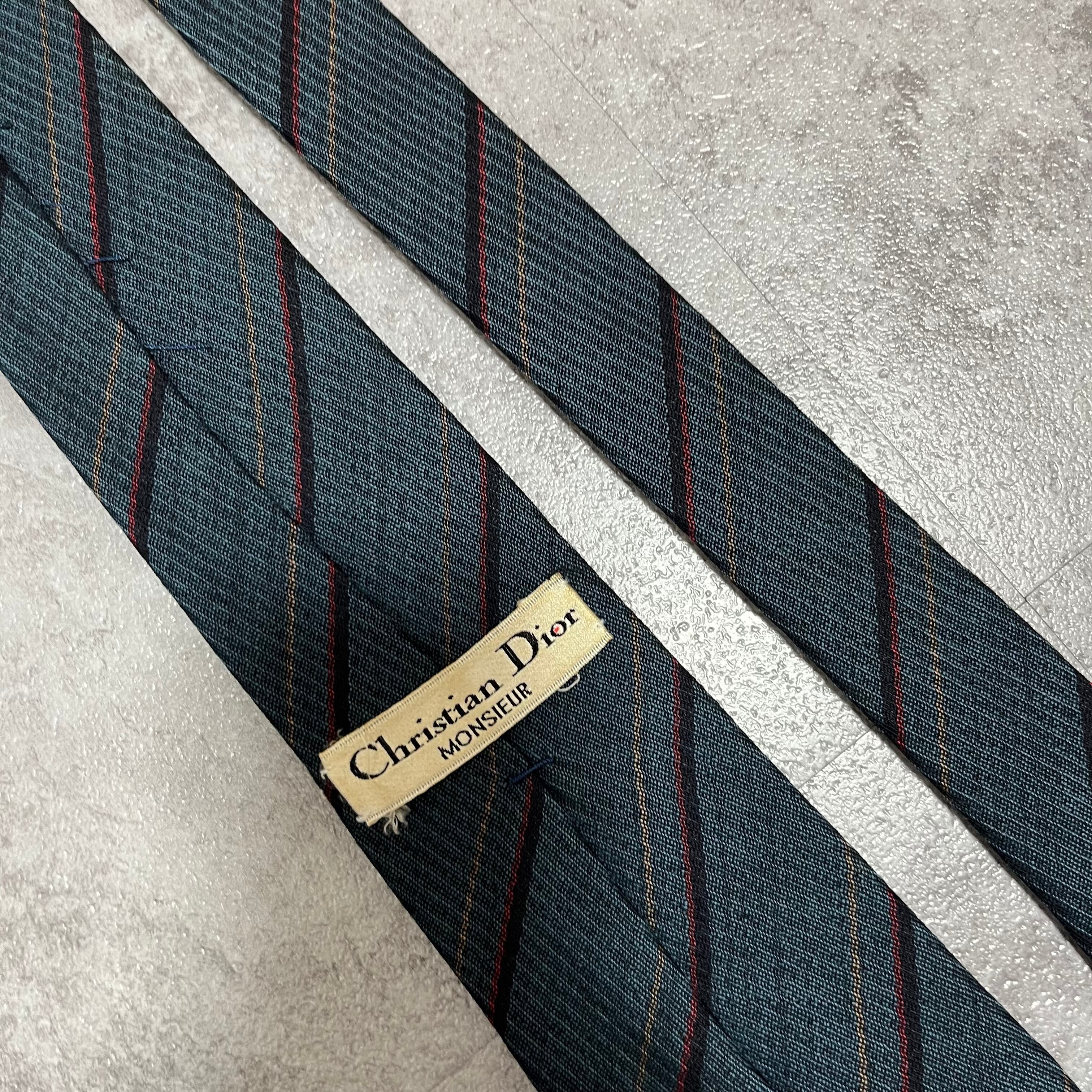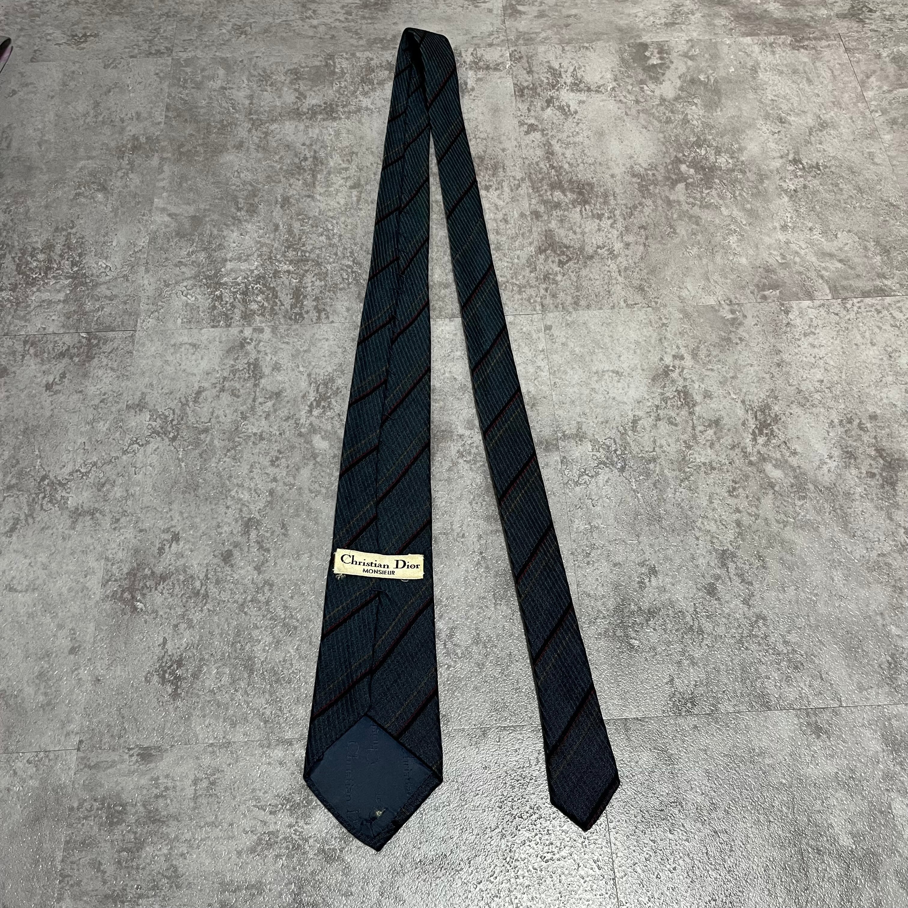 【Christian Dior】レジメンタルストライプネクタイ ビジネス向け バイカラー ネイビー 紺色 クリスチャンディオール ウールタイ ニットタイ