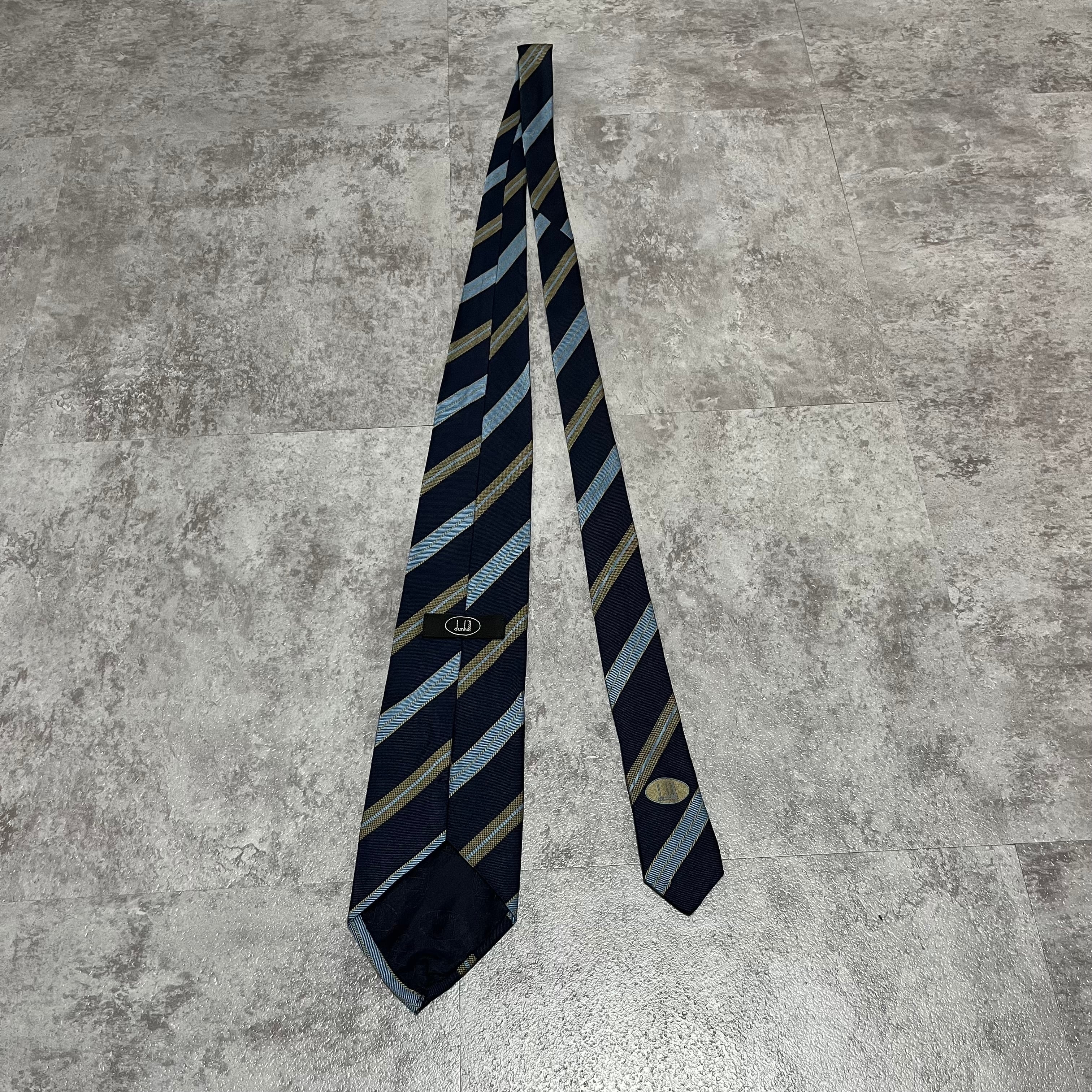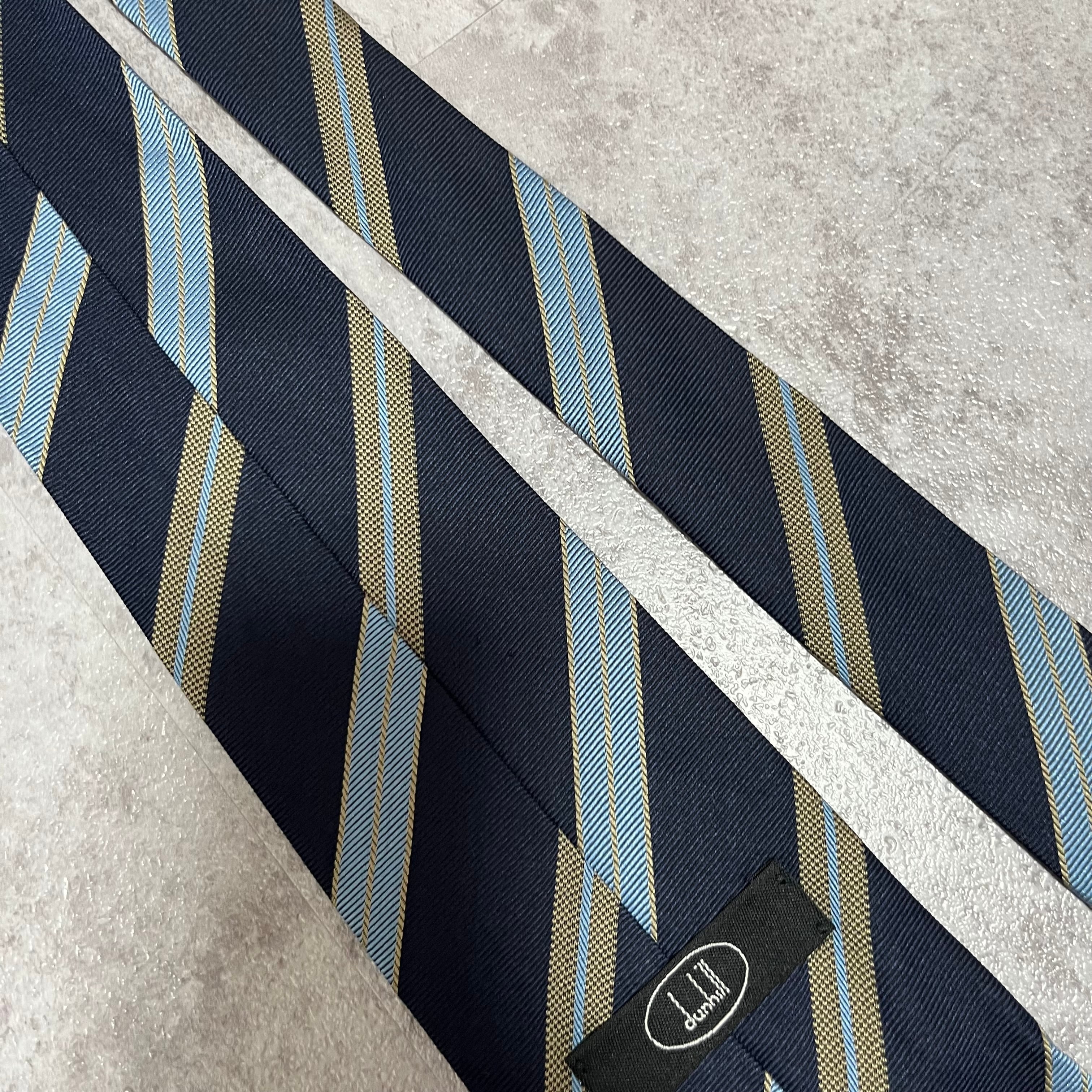 【dunhill】レジメンタルストライプネクタイ ビジネス向け バイカラー ネイビー ブルー 紺色 青 シンプル ダンヒル