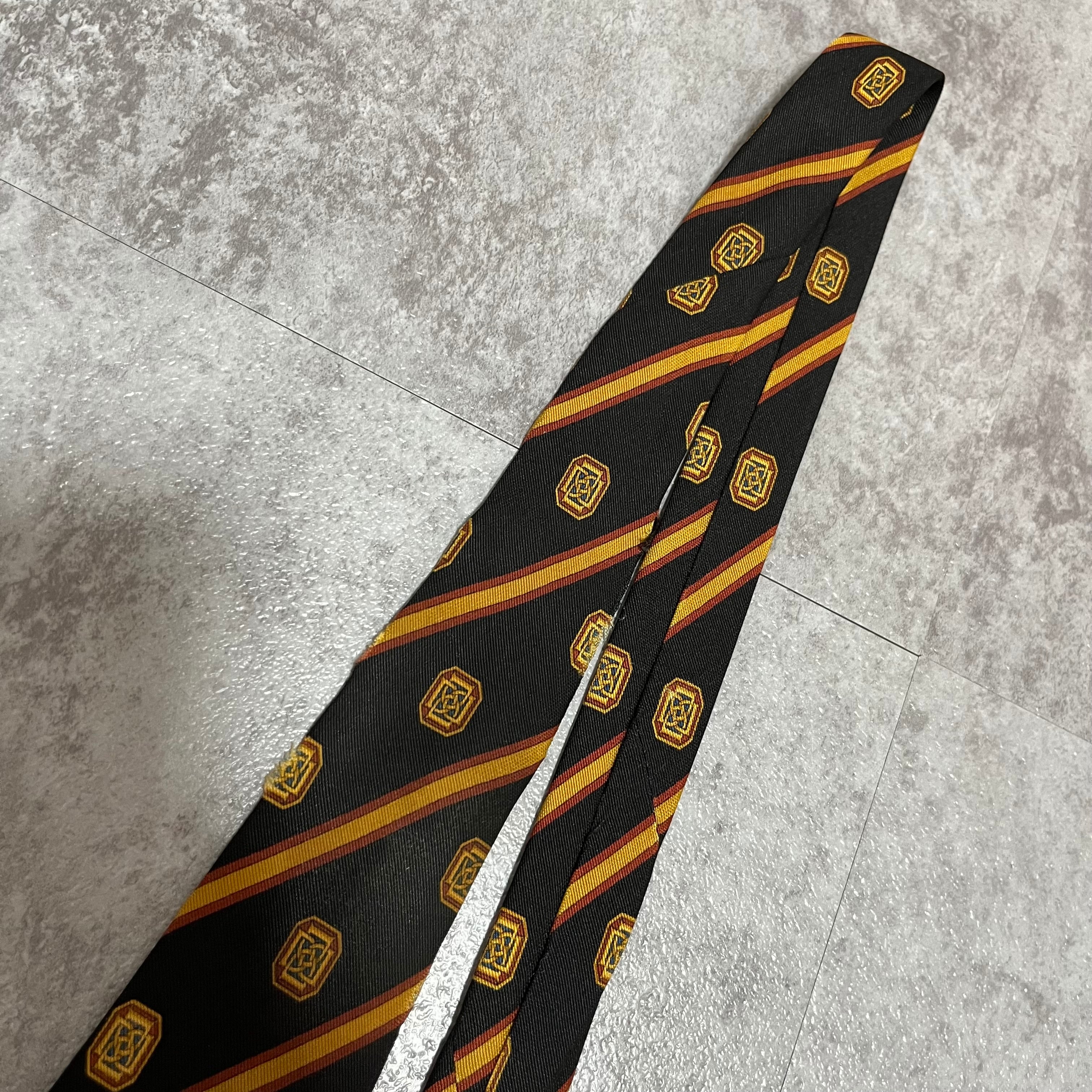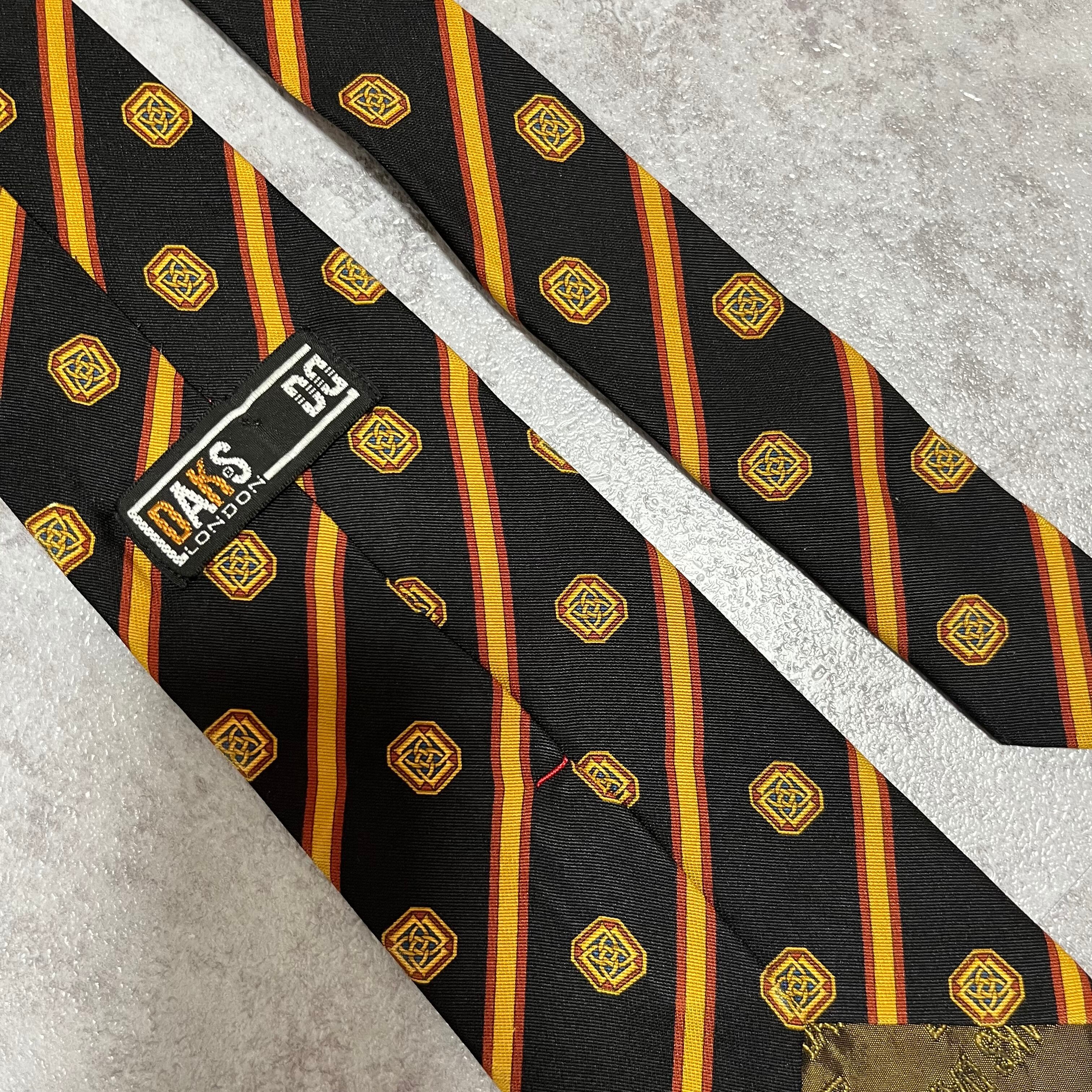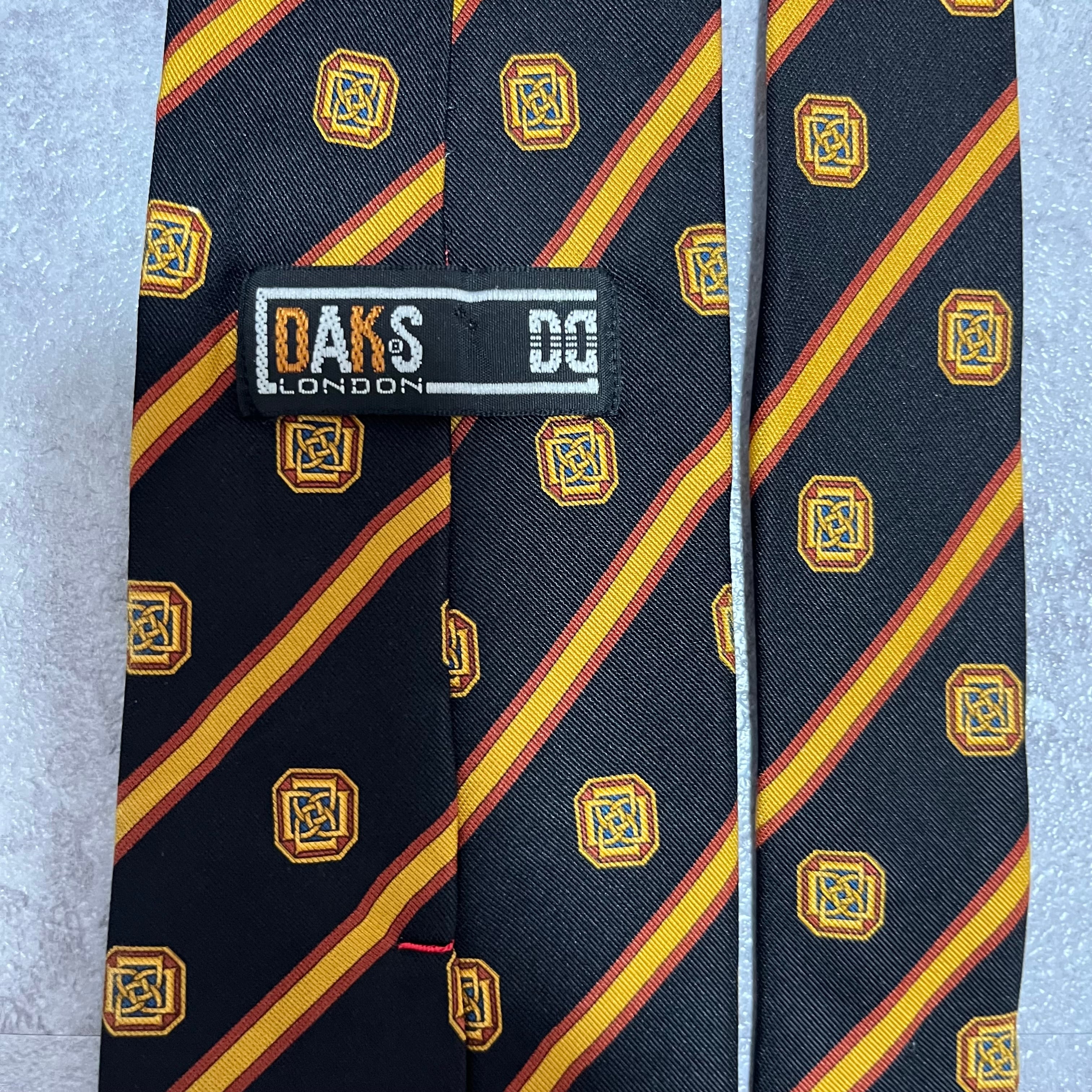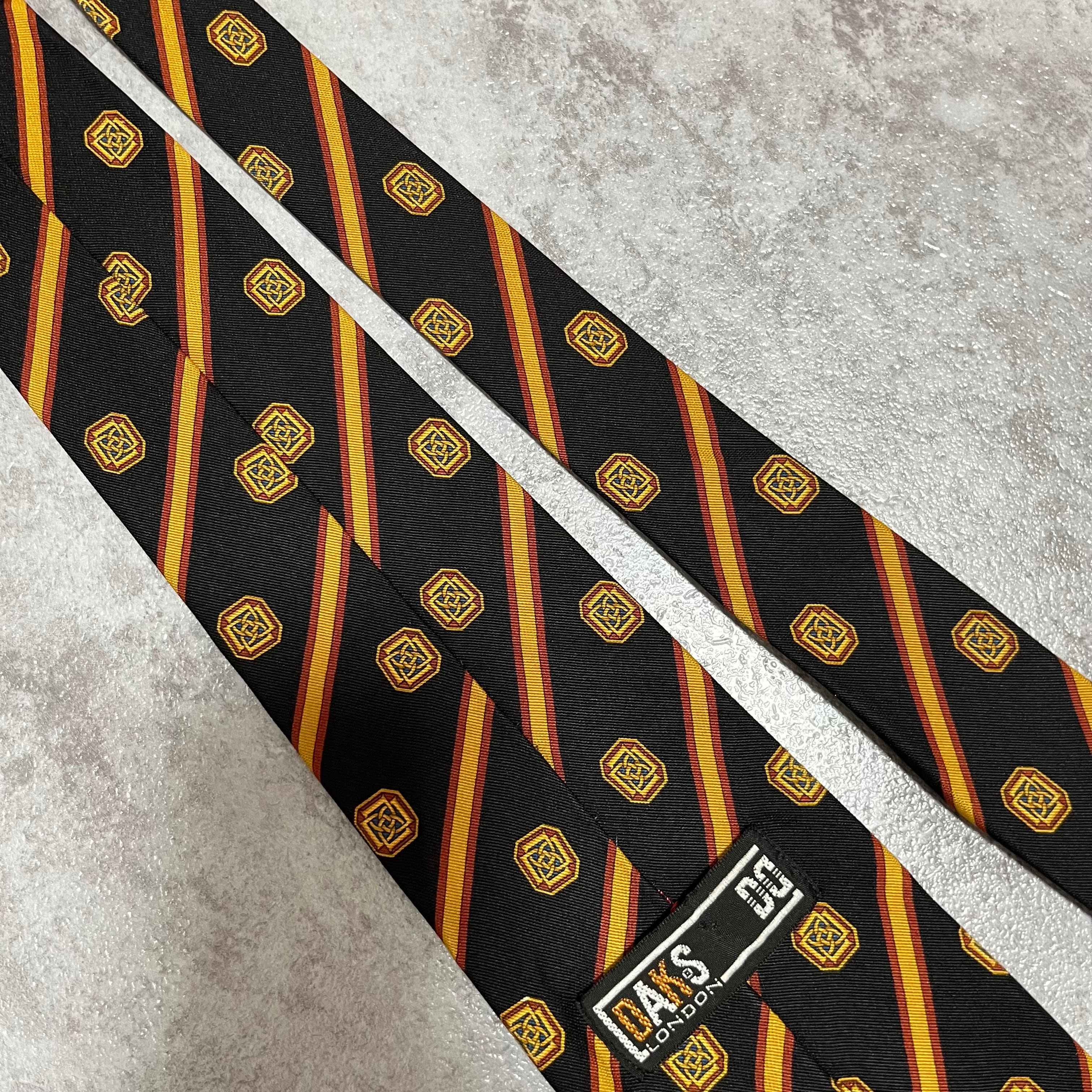 【DAKS】レジメンタルストライプネクタイ バイカラー ブラック オレンジ 黒 橙 紋章入り ビジネス向け ダックス
