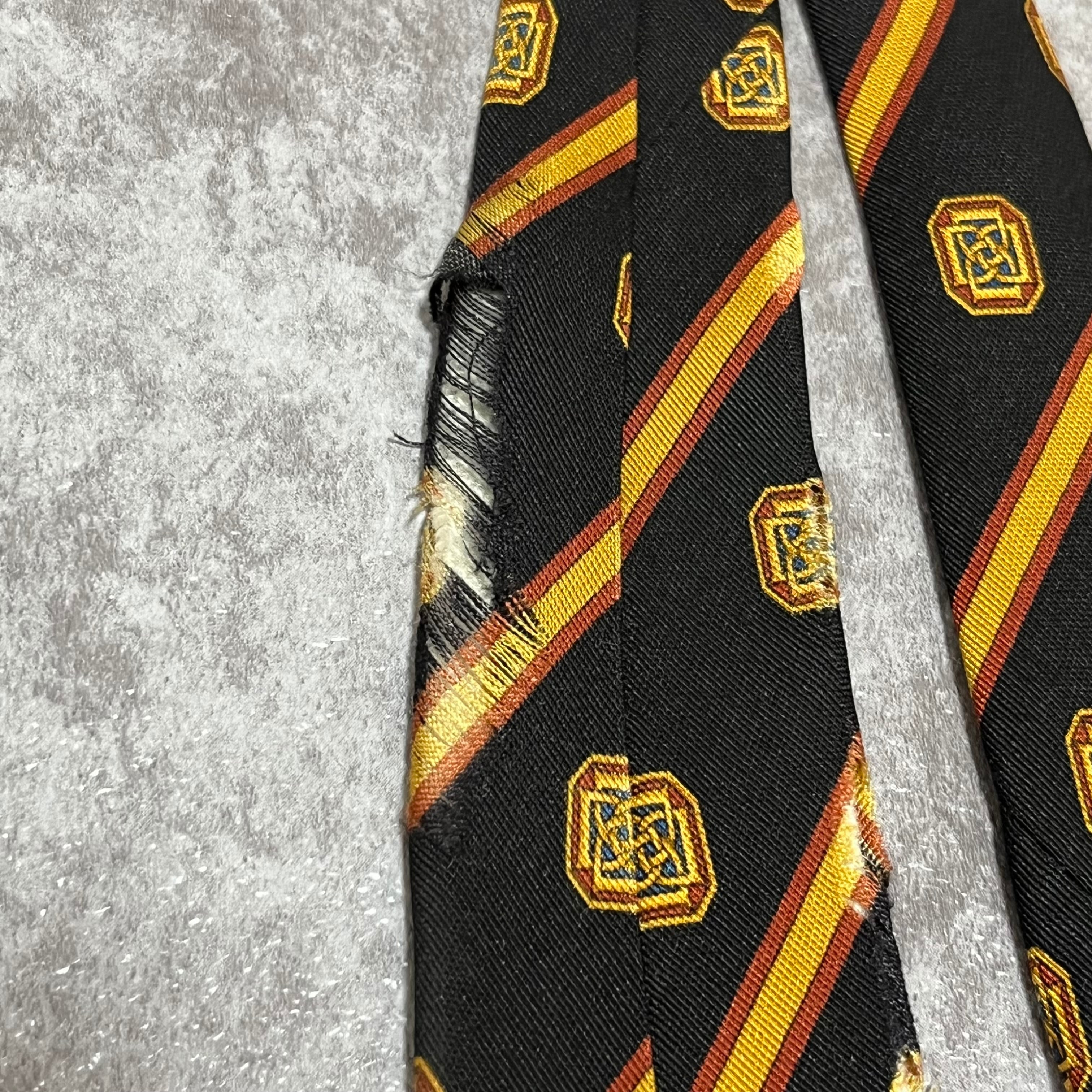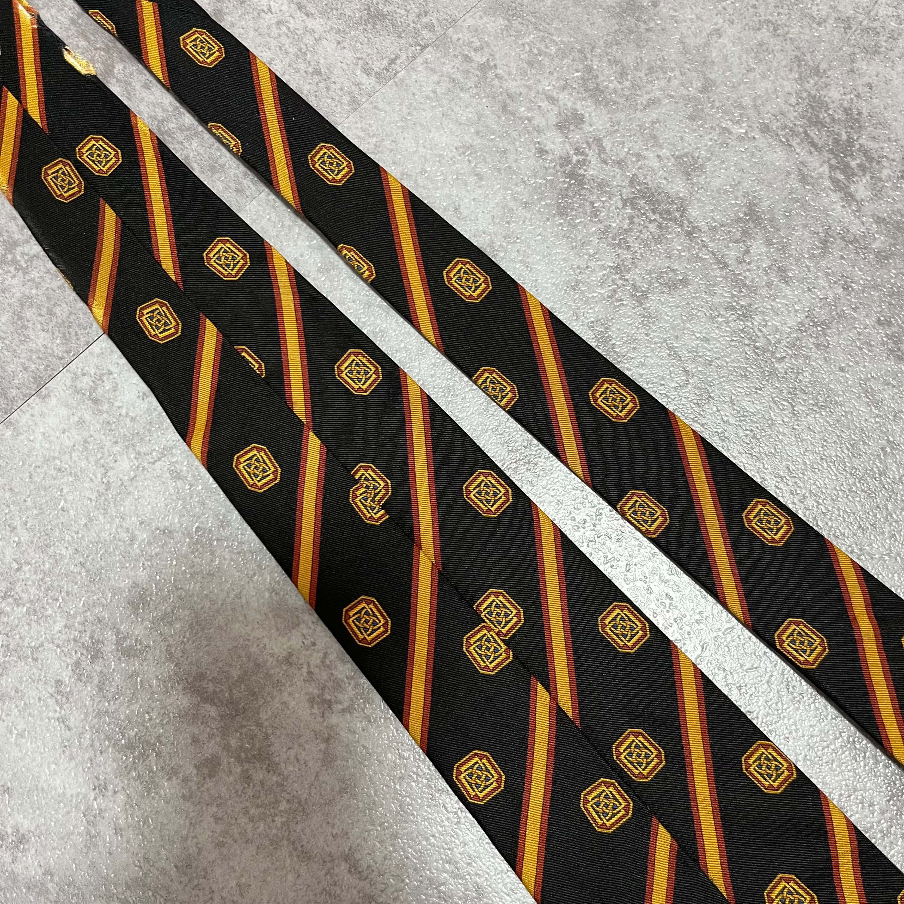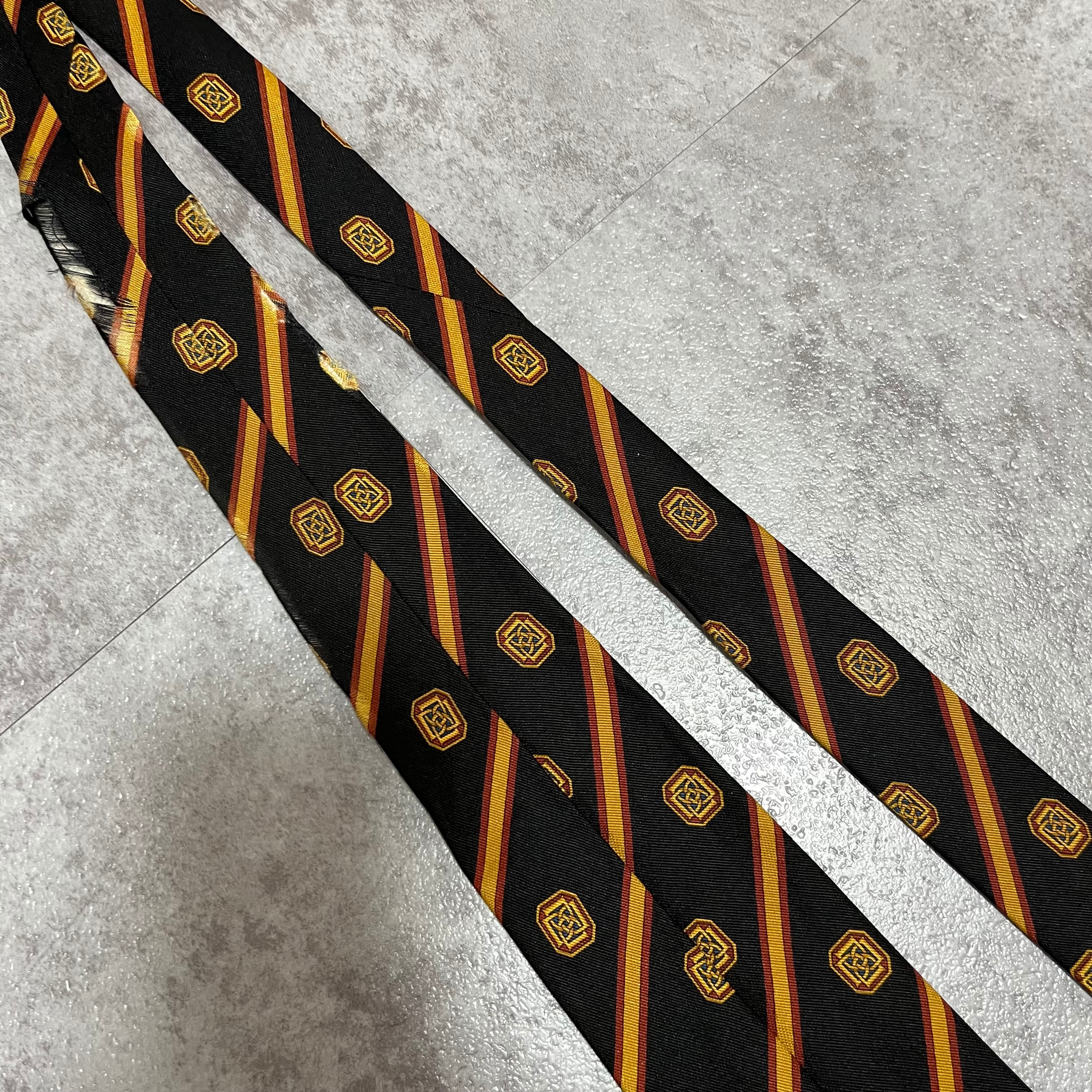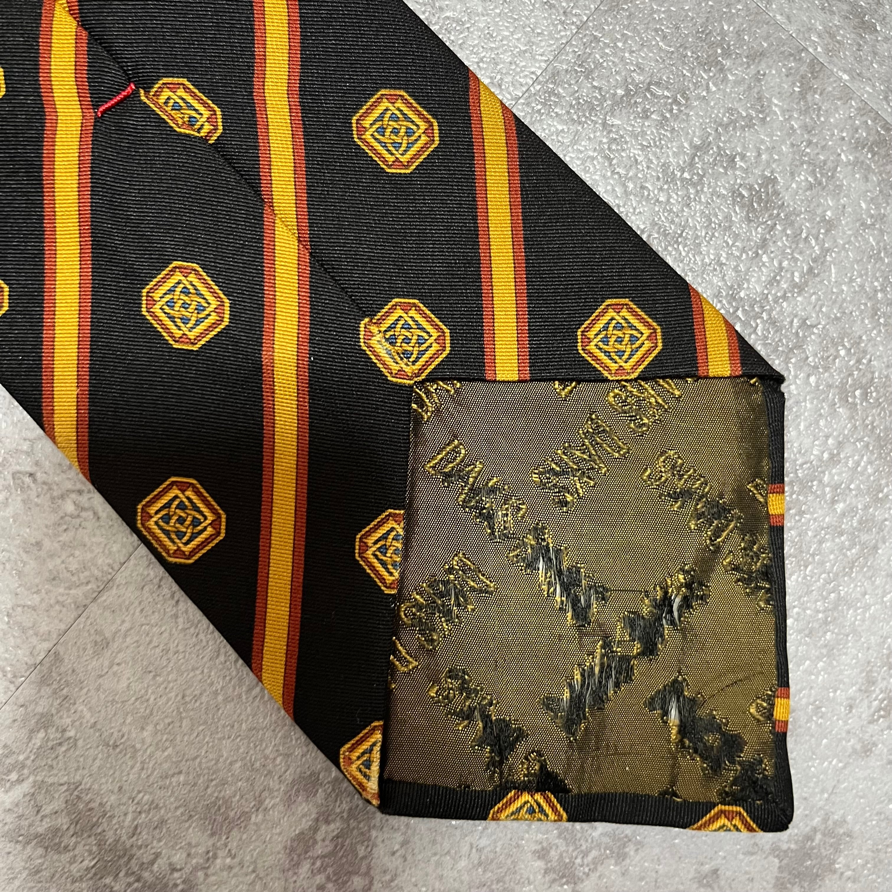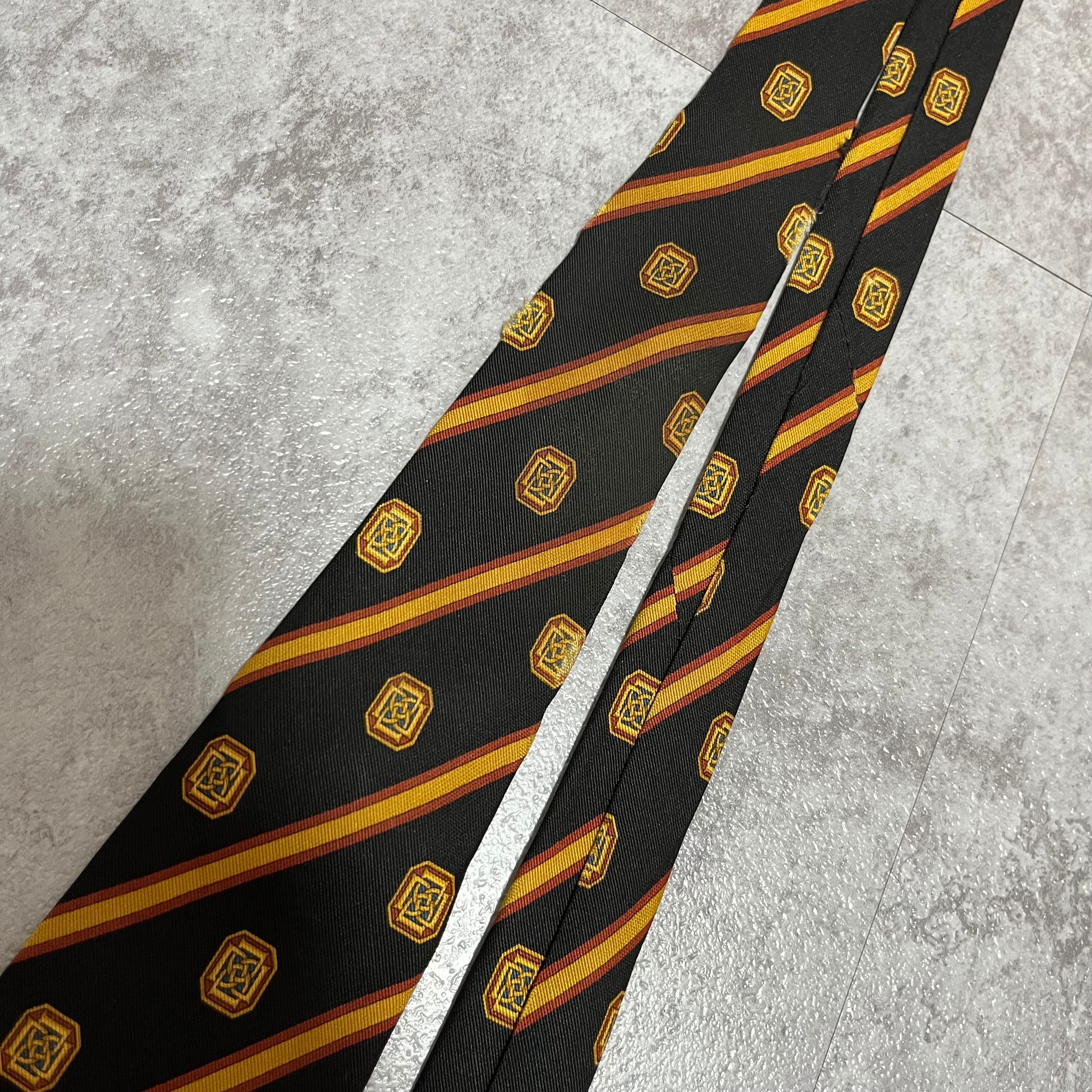 【DAKS】レジメンタルストライプネクタイ バイカラー ブラック オレンジ 黒 橙 紋章入り ビジネス向け ダックス