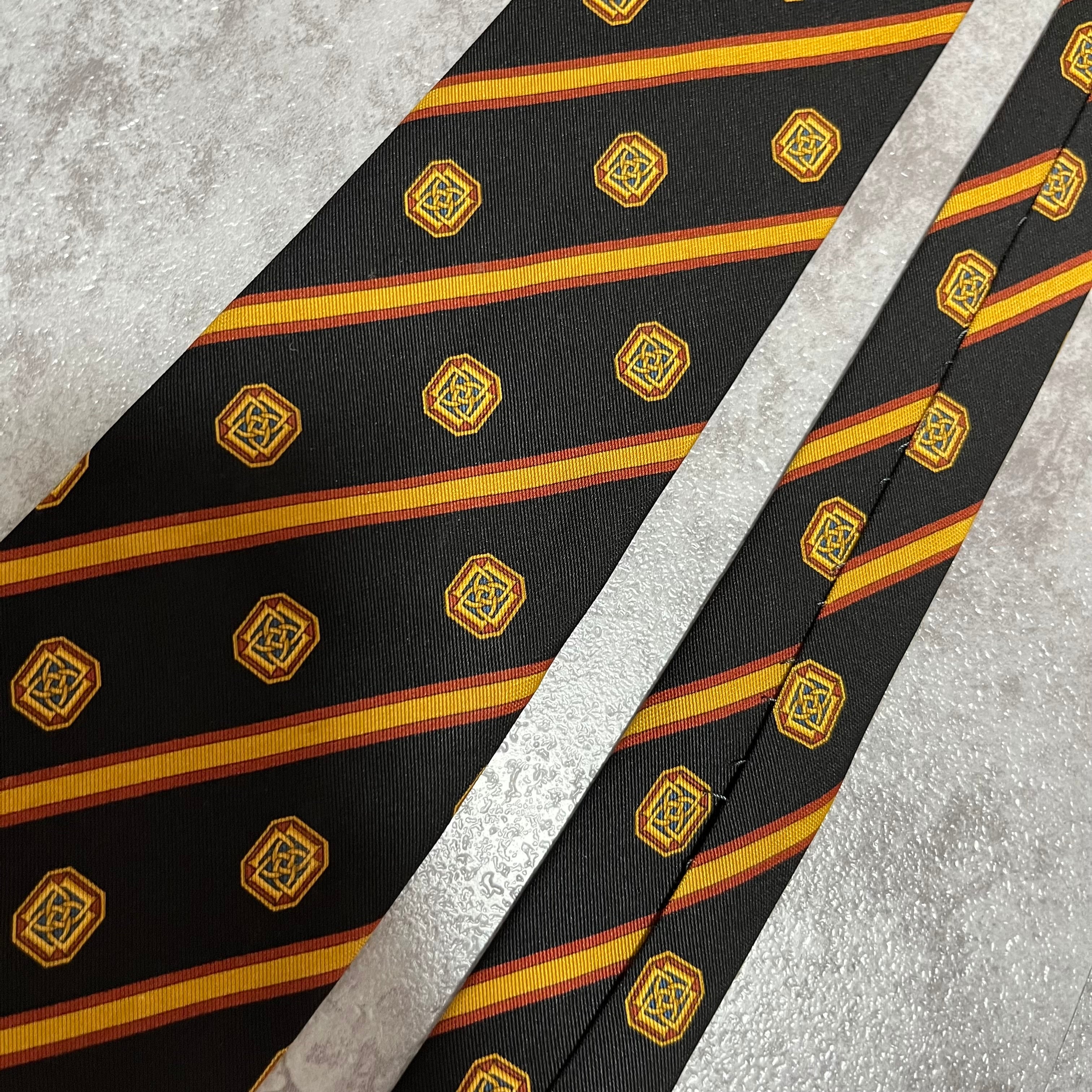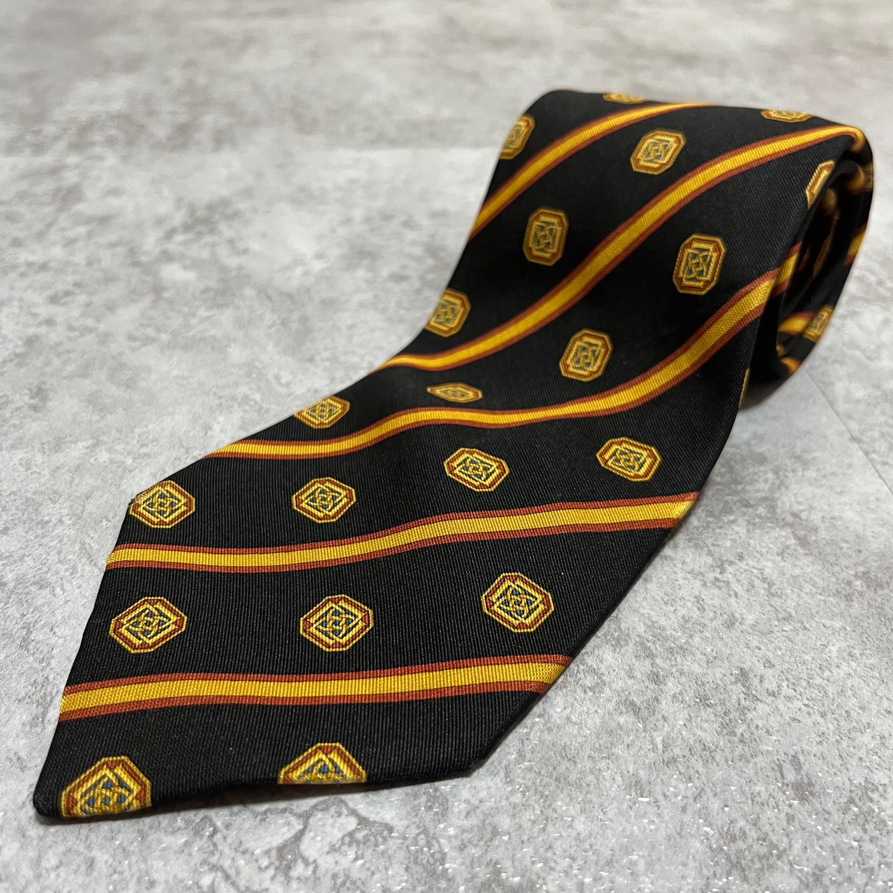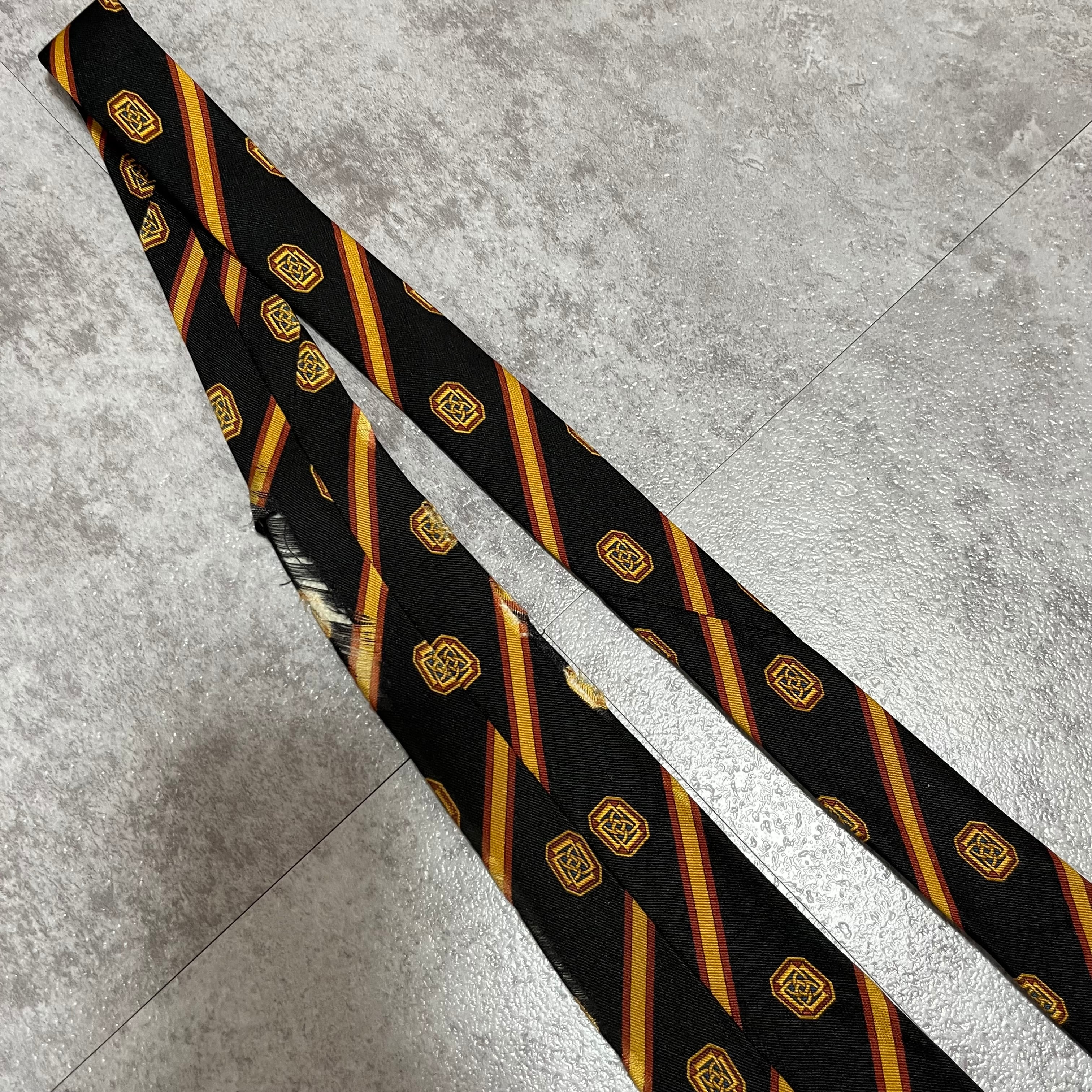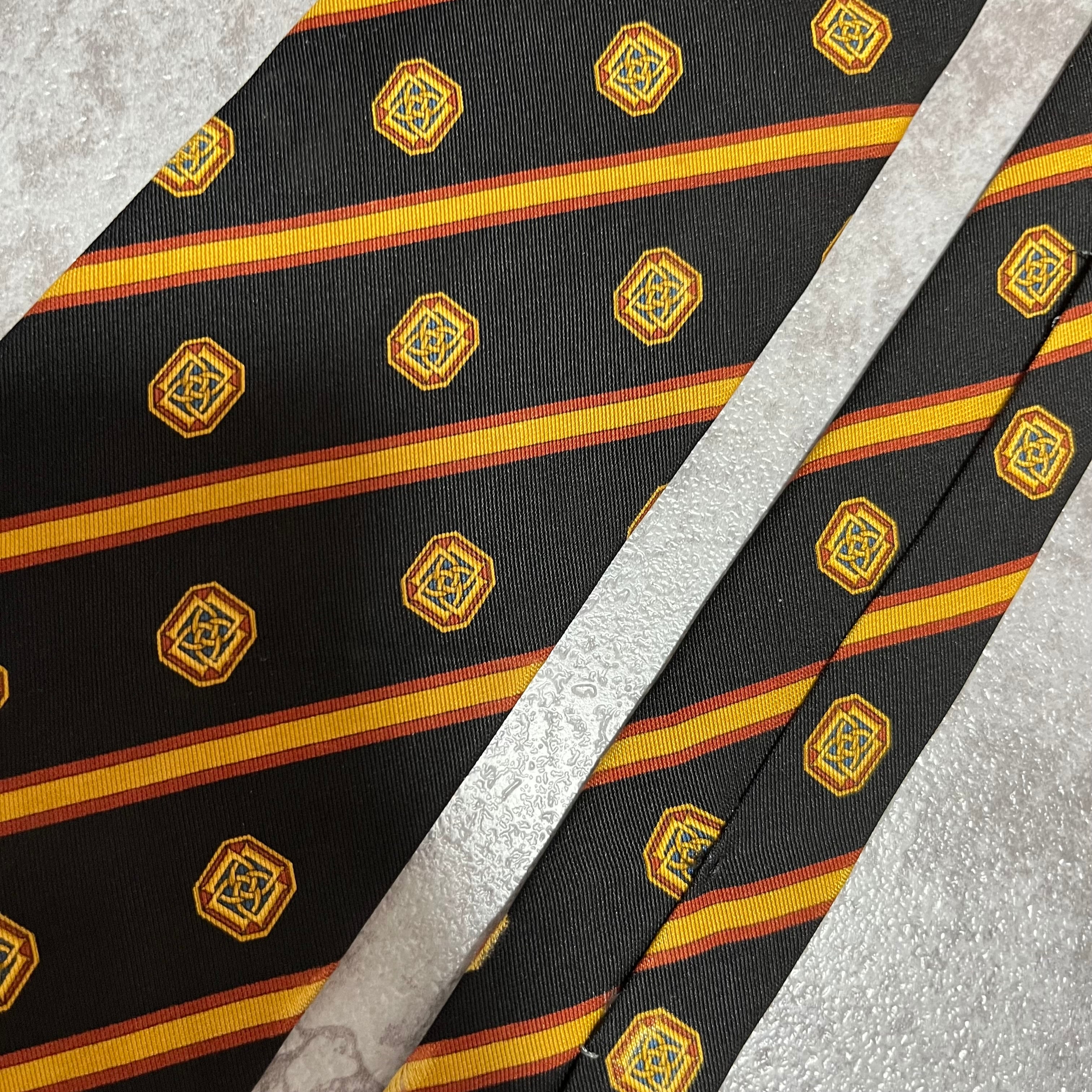 【DAKS】レジメンタルストライプネクタイ バイカラー ブラック オレンジ 黒 橙 紋章入り ビジネス向け ダックス