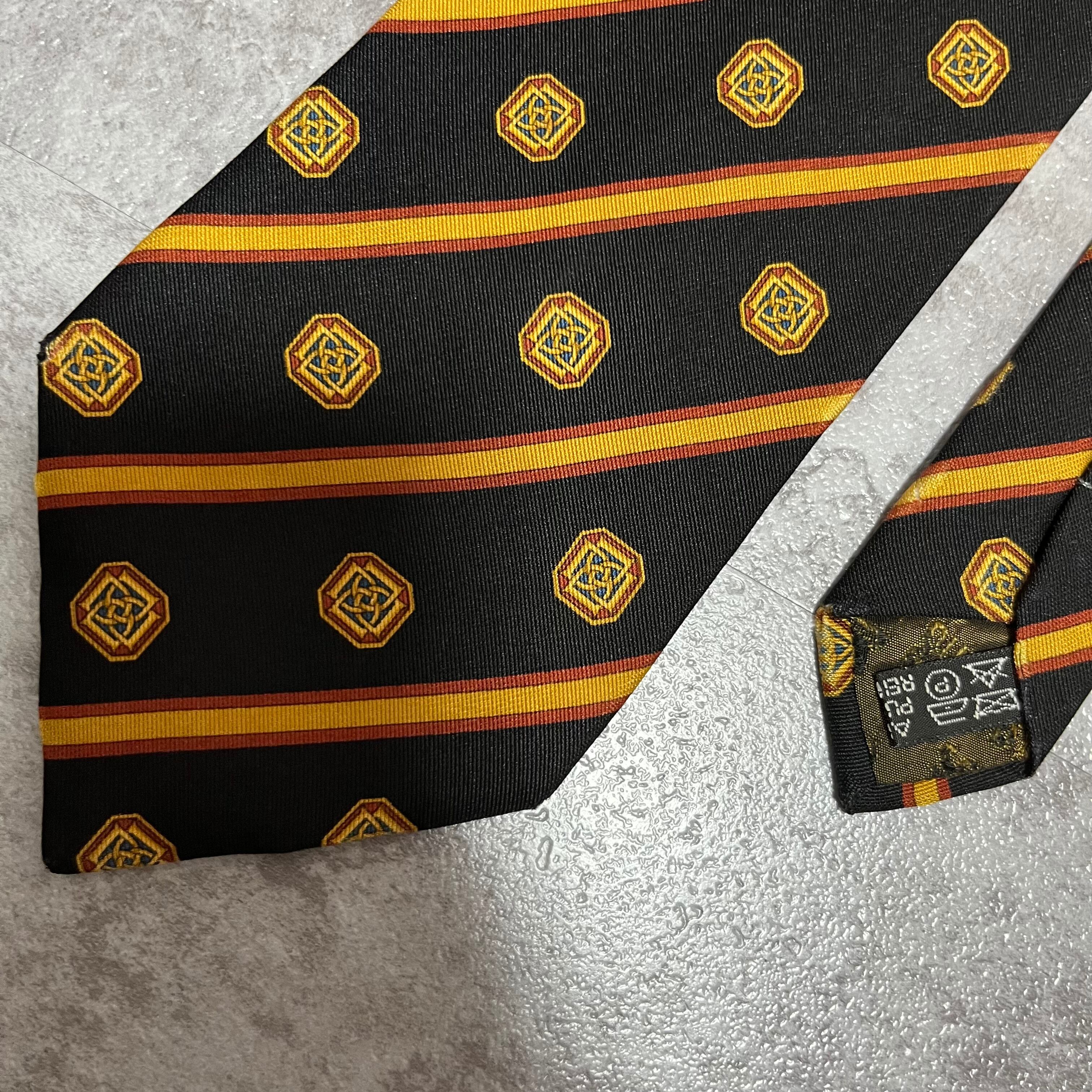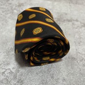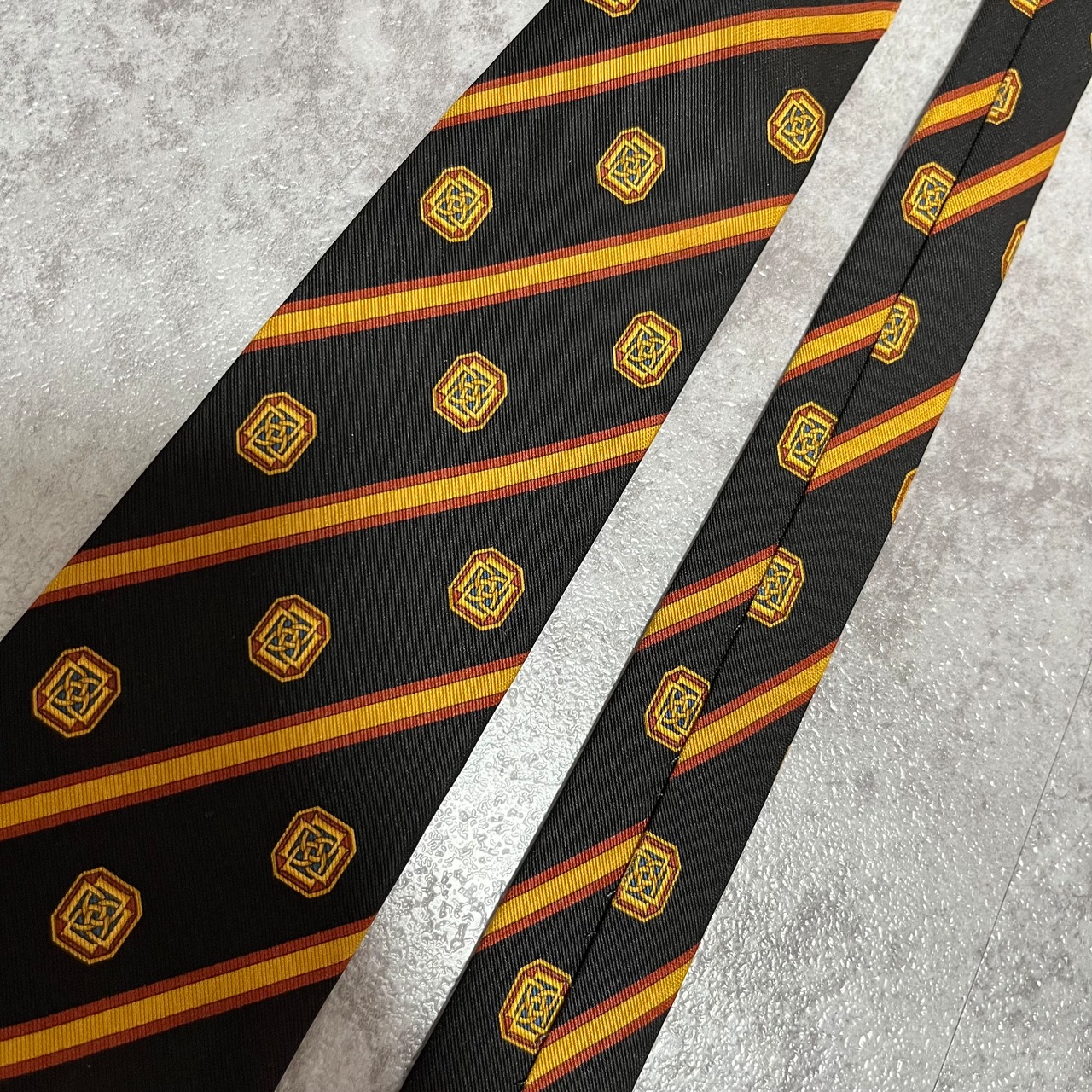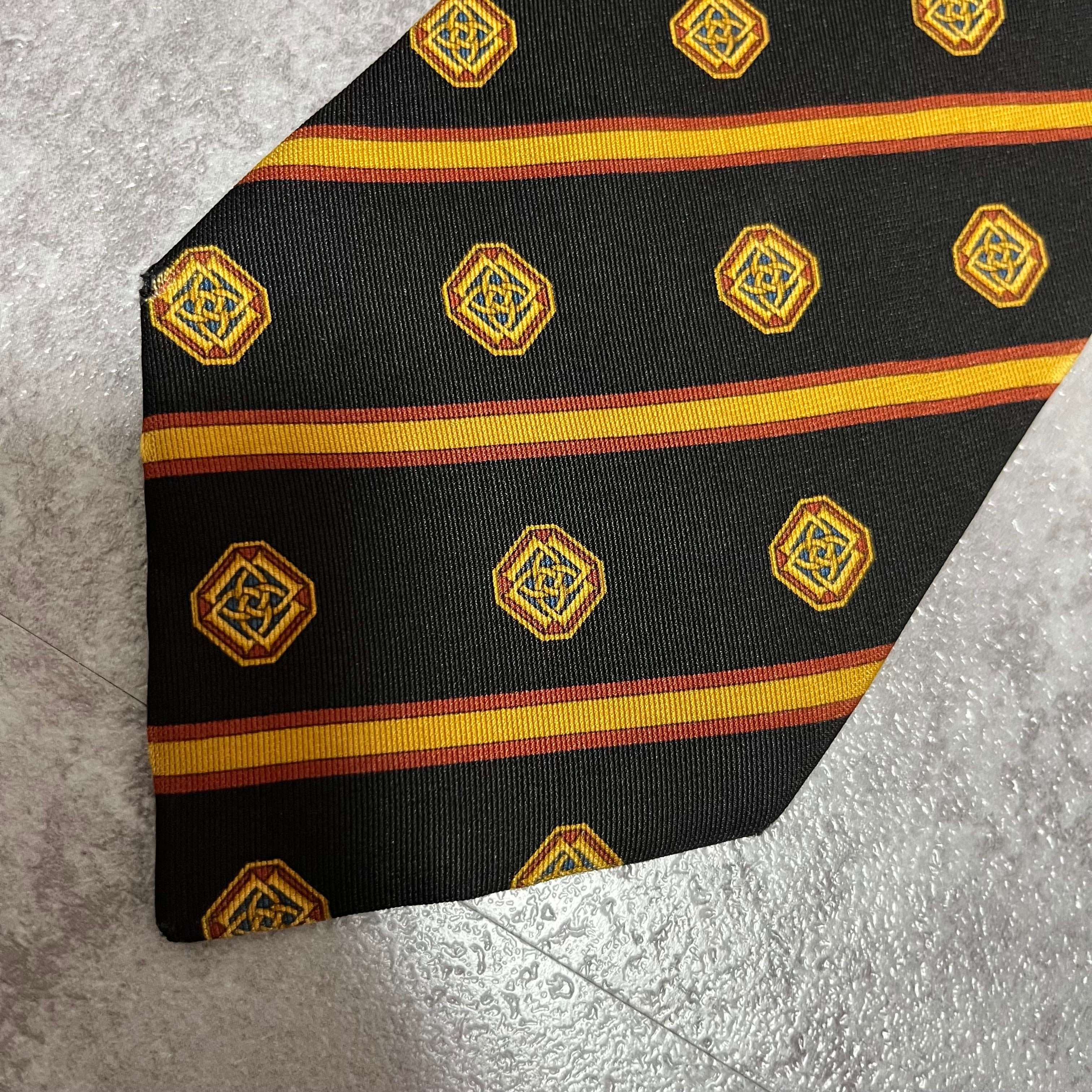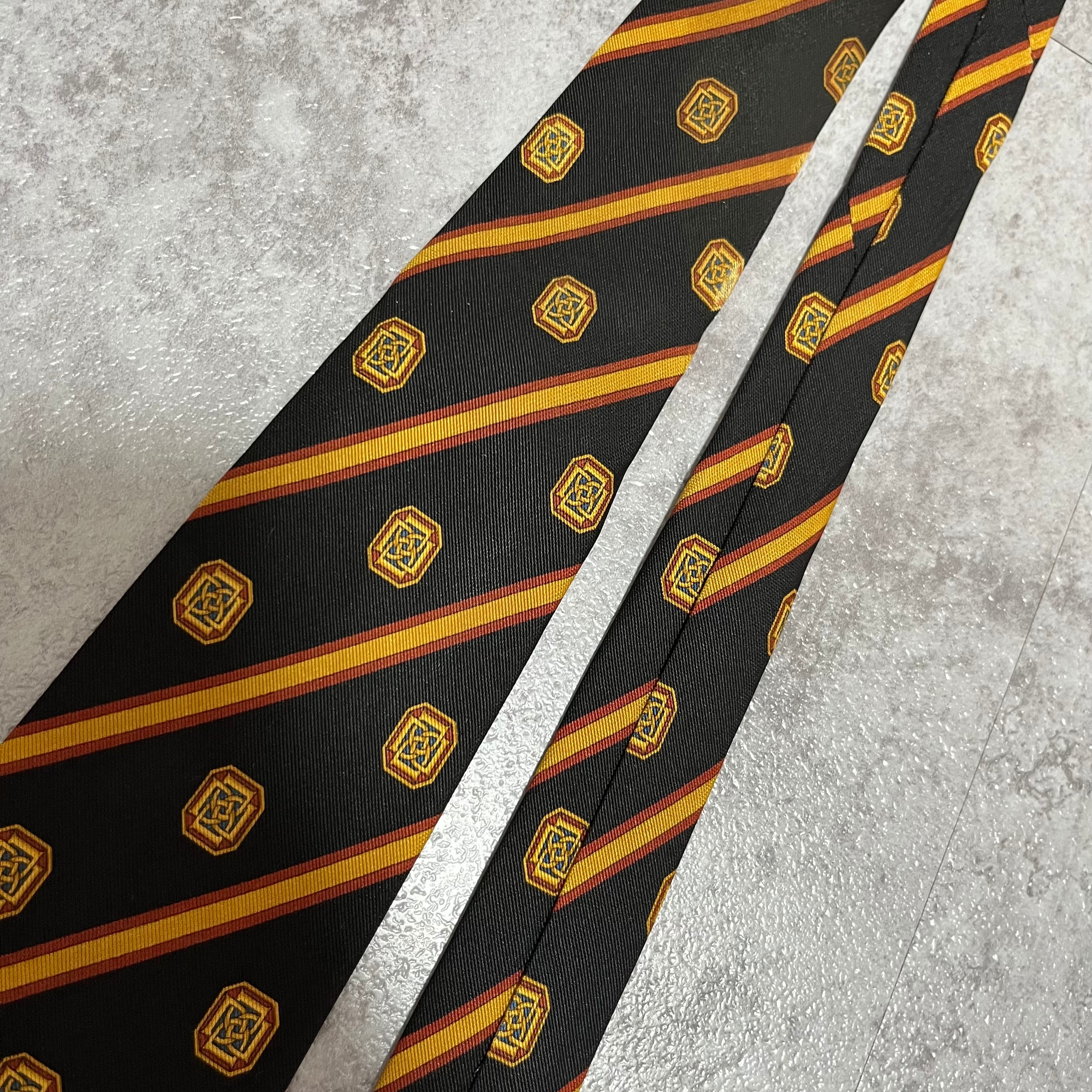 【DAKS】レジメンタルストライプネクタイ バイカラー ブラック オレンジ 黒 橙 紋章入り ビジネス向け ダックス