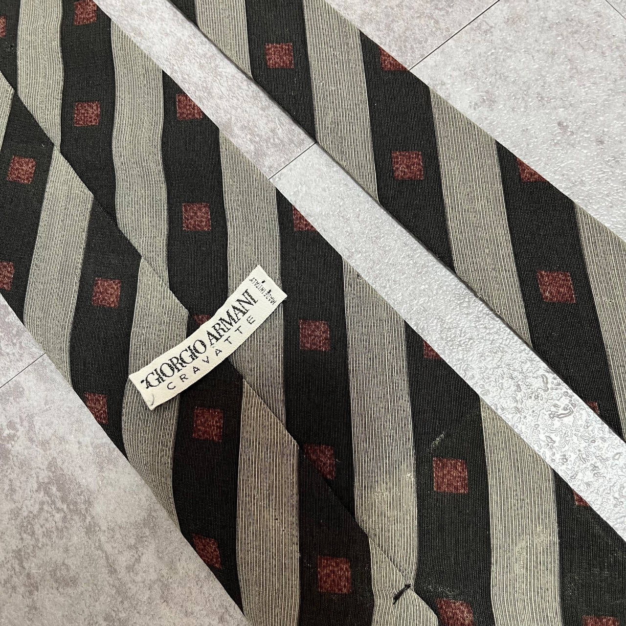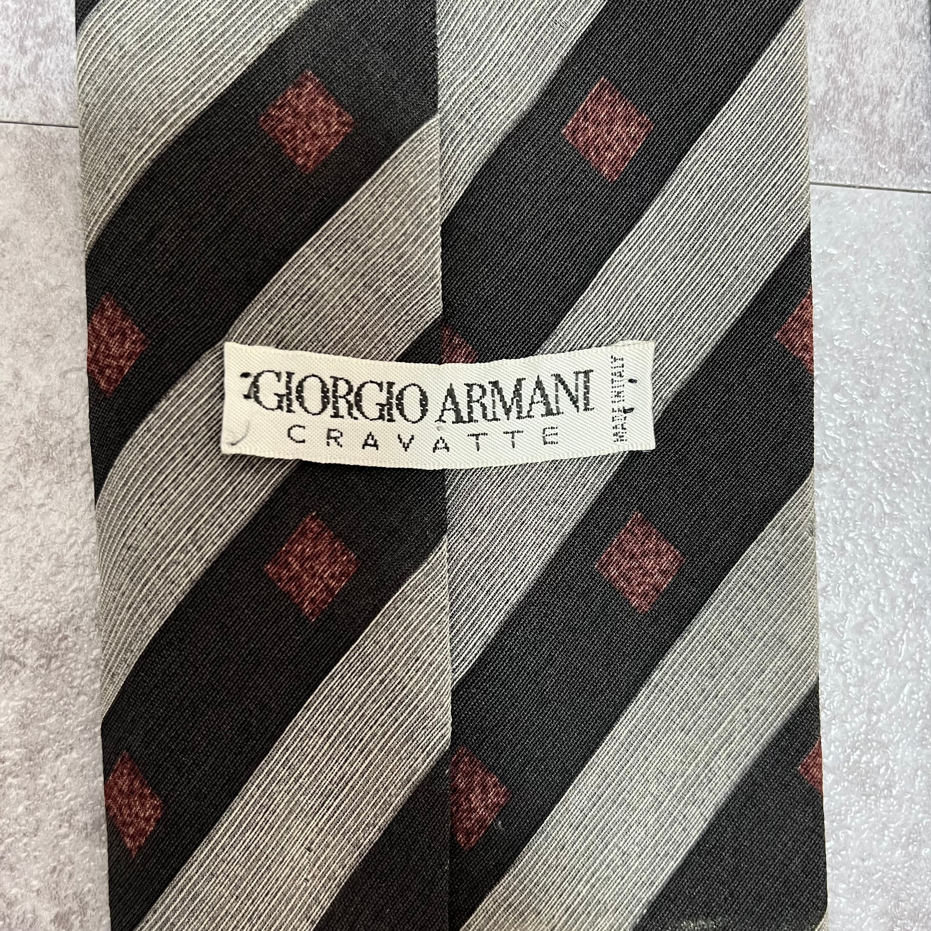 【GIORGIO ARMANI】レジメンタルストライプネクタイ グレー ジョルジオアルマーニ バイカラー ブラック 黒 灰色 ビジネス向け