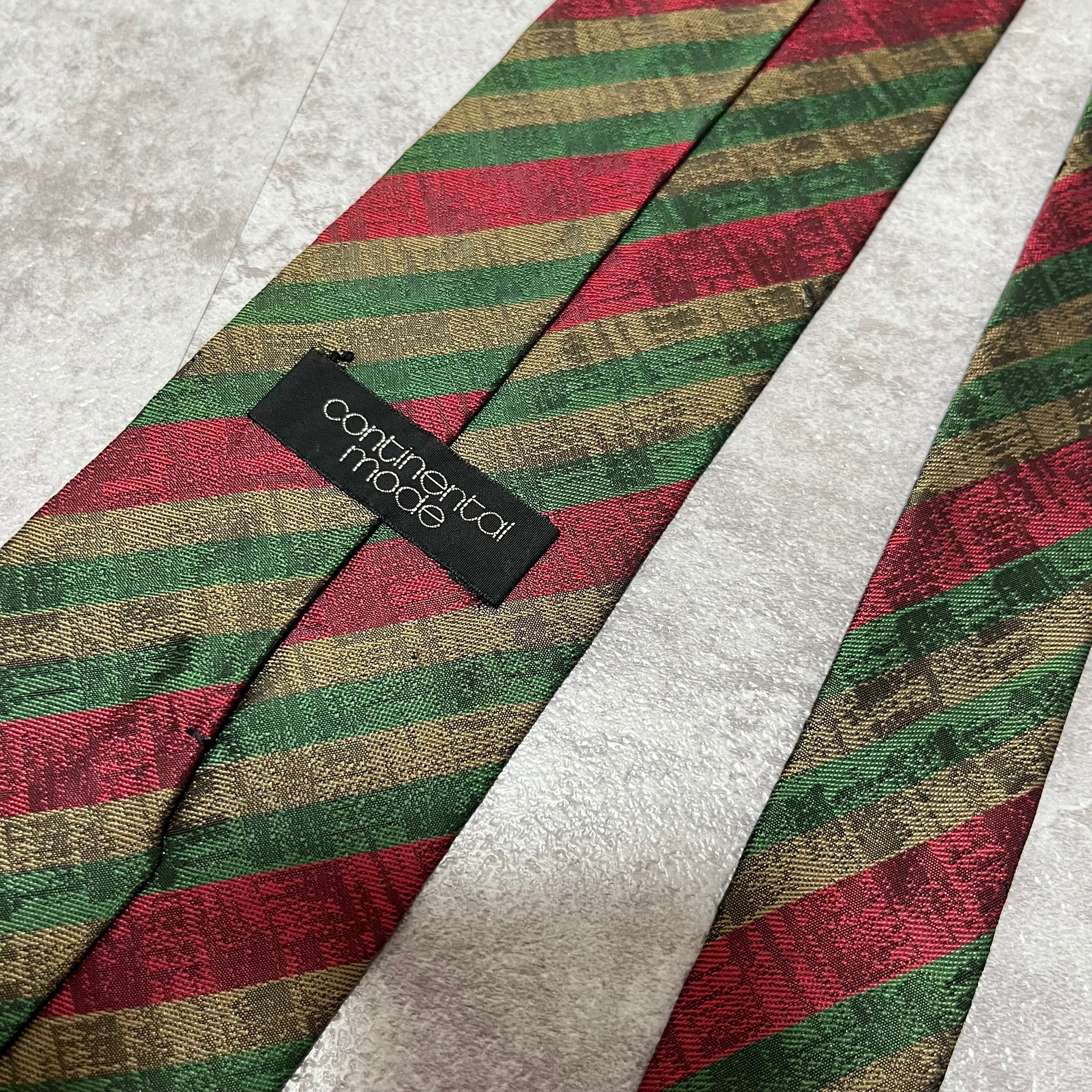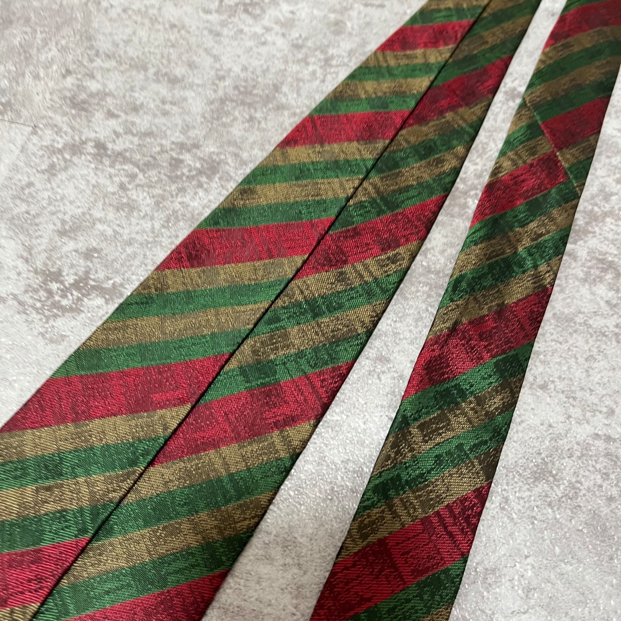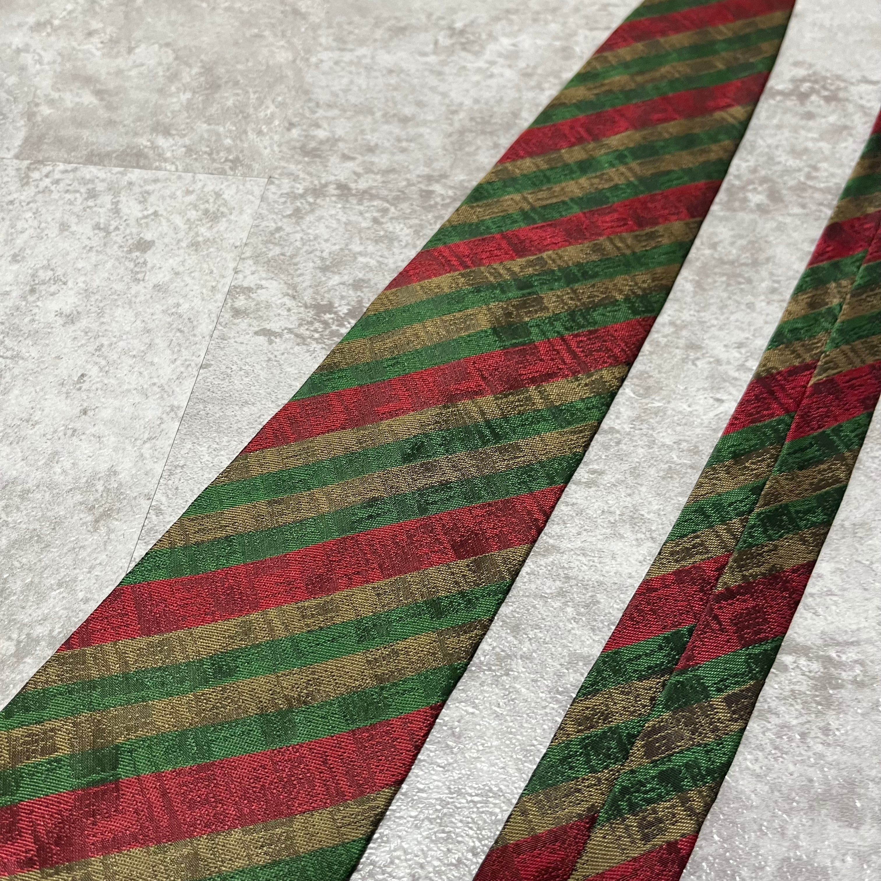 【ストライプ】光沢レジメンタルストライプネクタイ ビジネス向け マルチカラー グリーン レッド ゴールド 緑 金色 赤