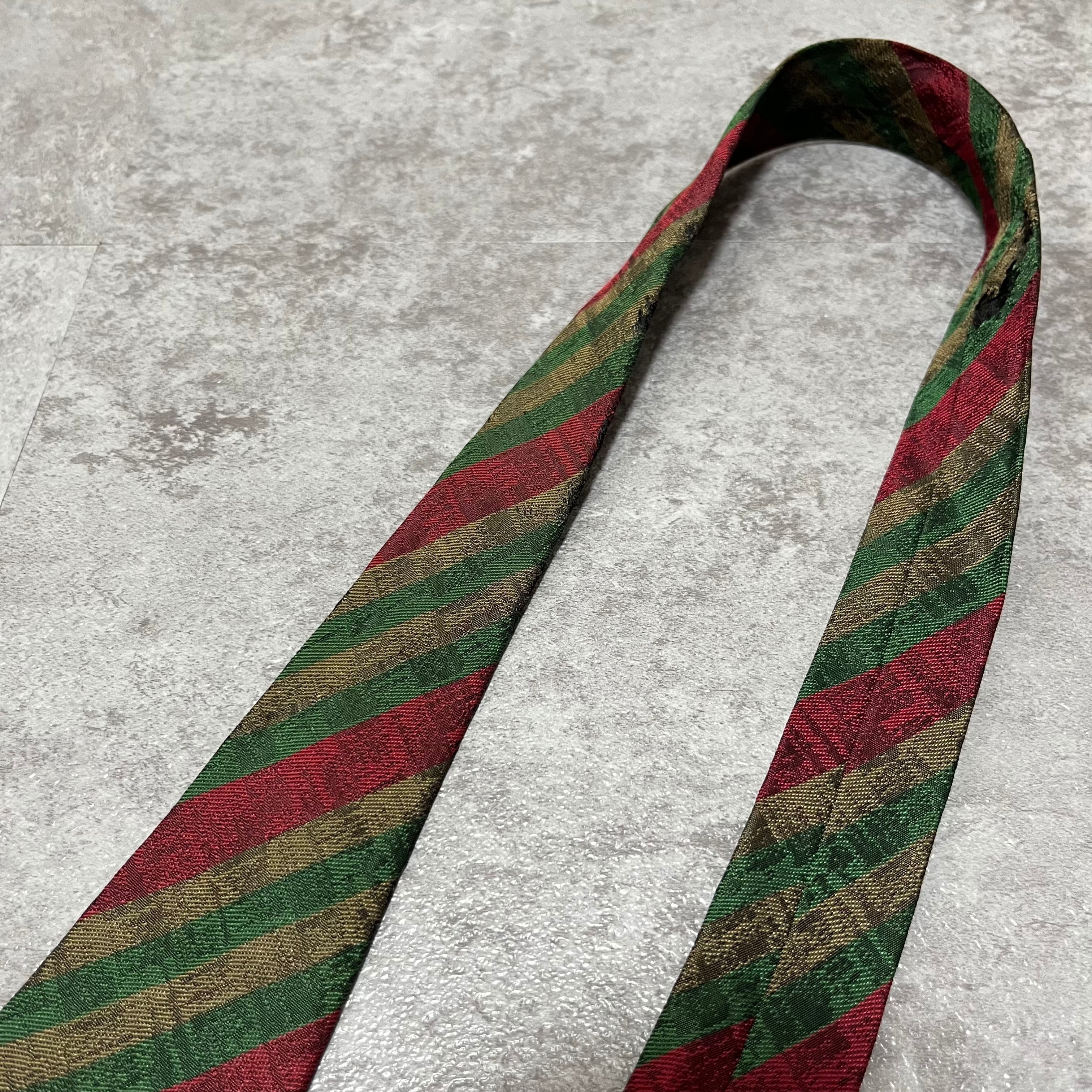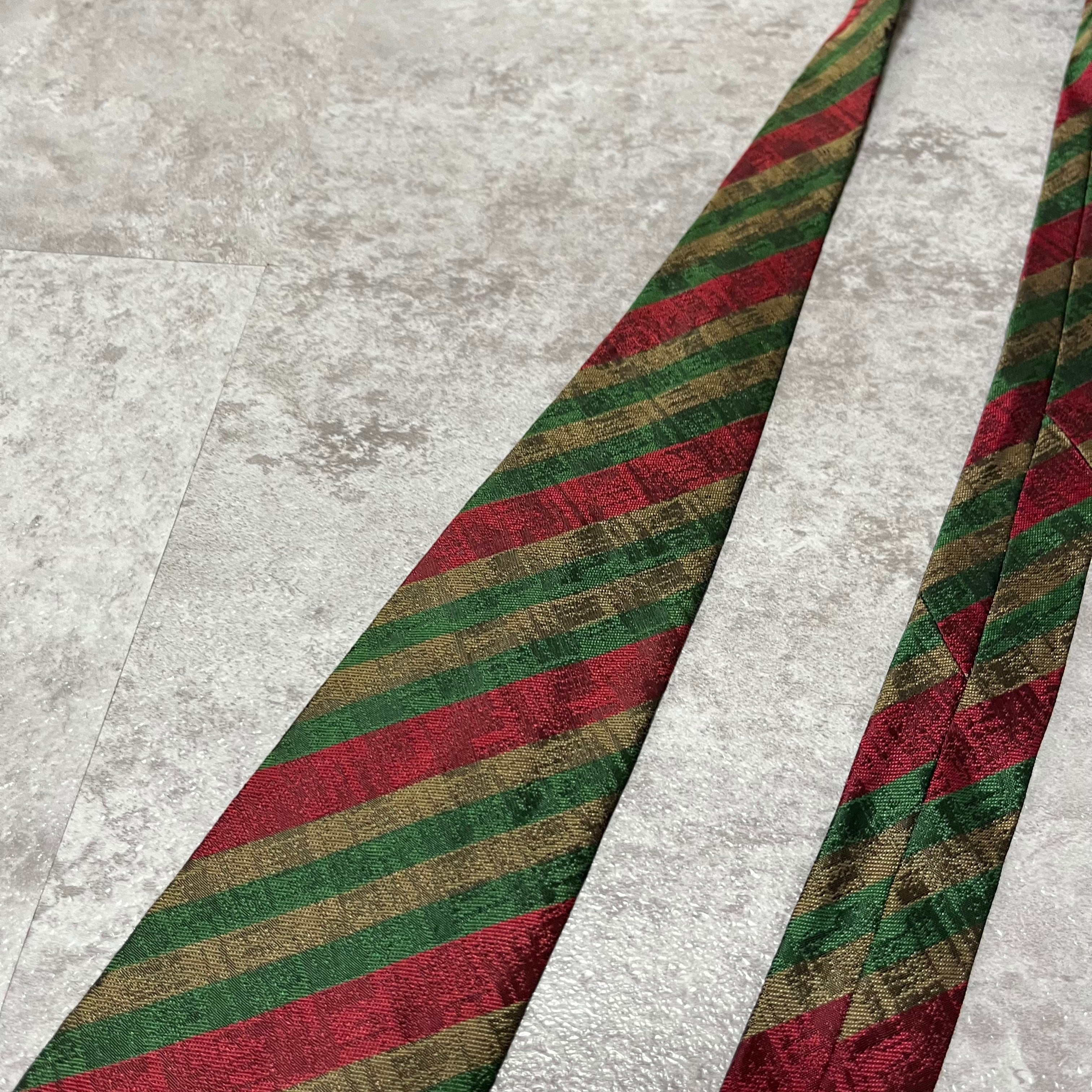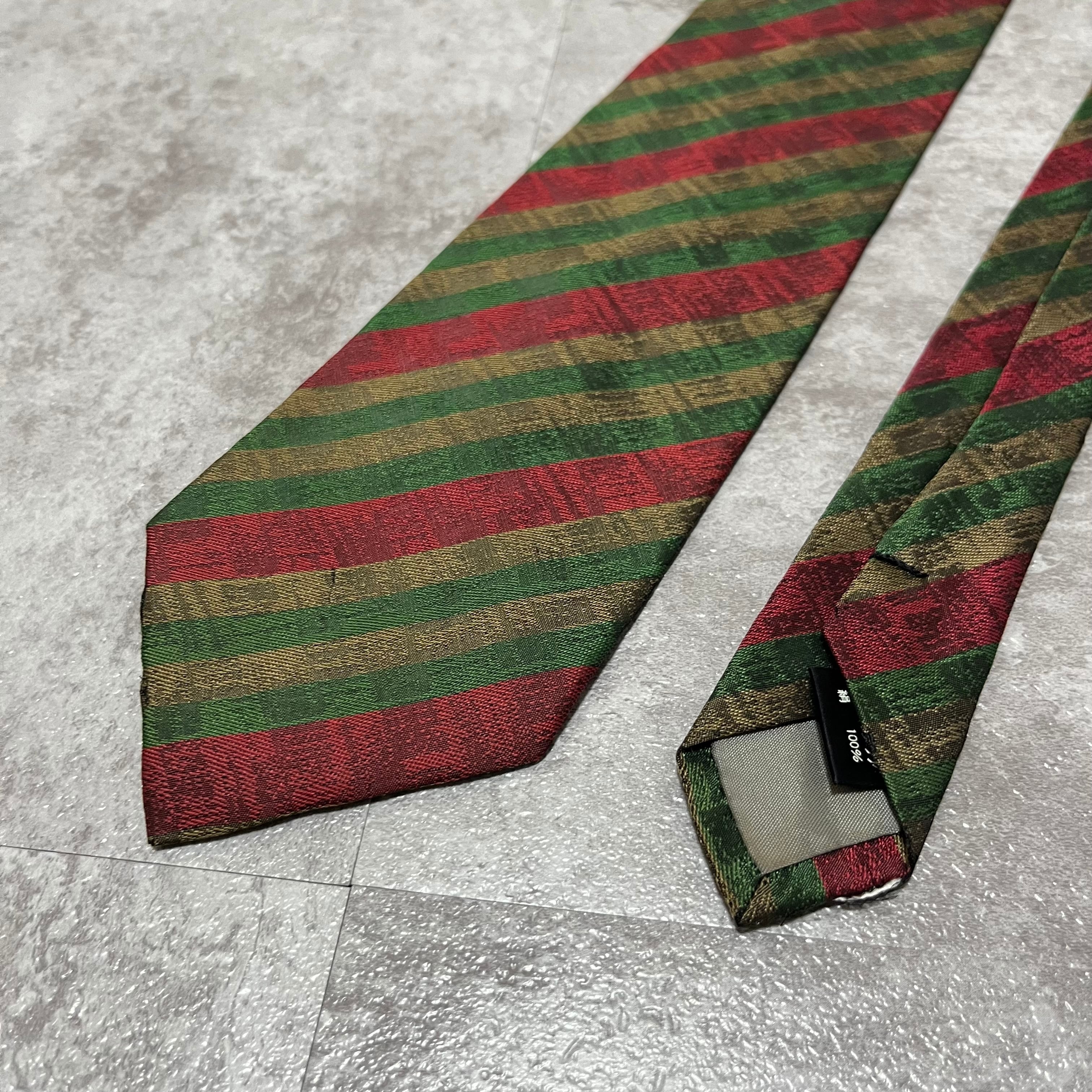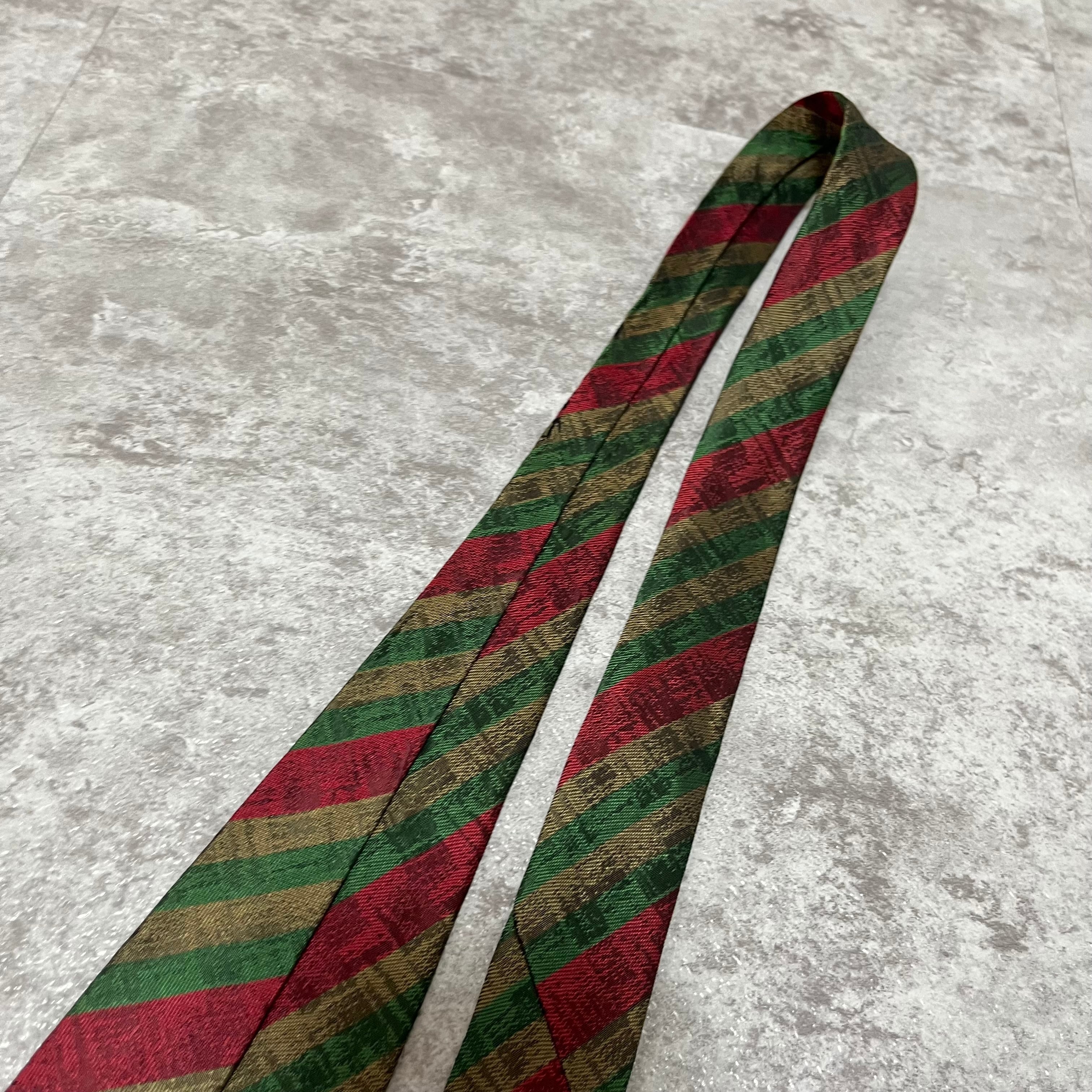 【ストライプ】光沢レジメンタルストライプネクタイ ビジネス向け マルチカラー グリーン レッド ゴールド 緑 金色 赤