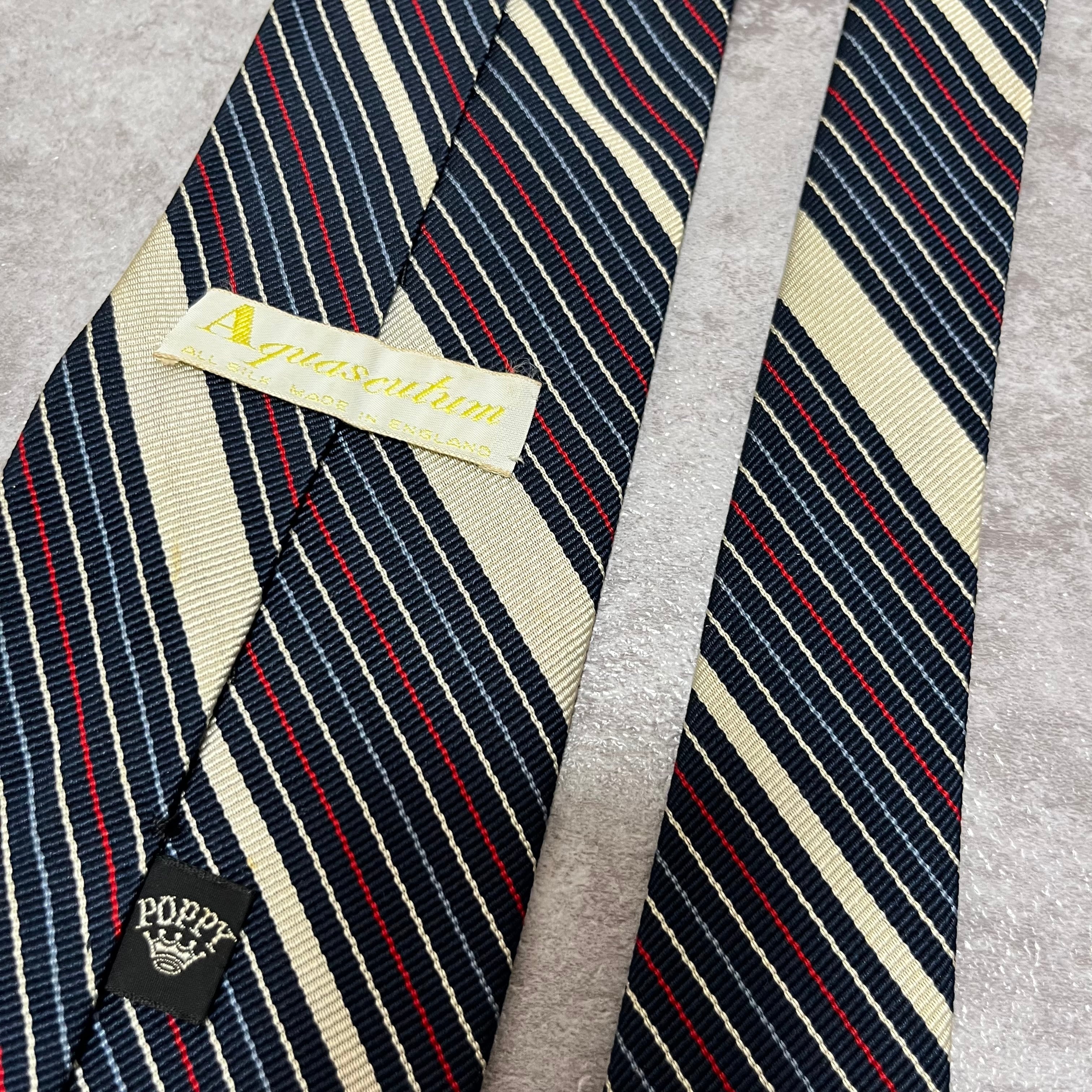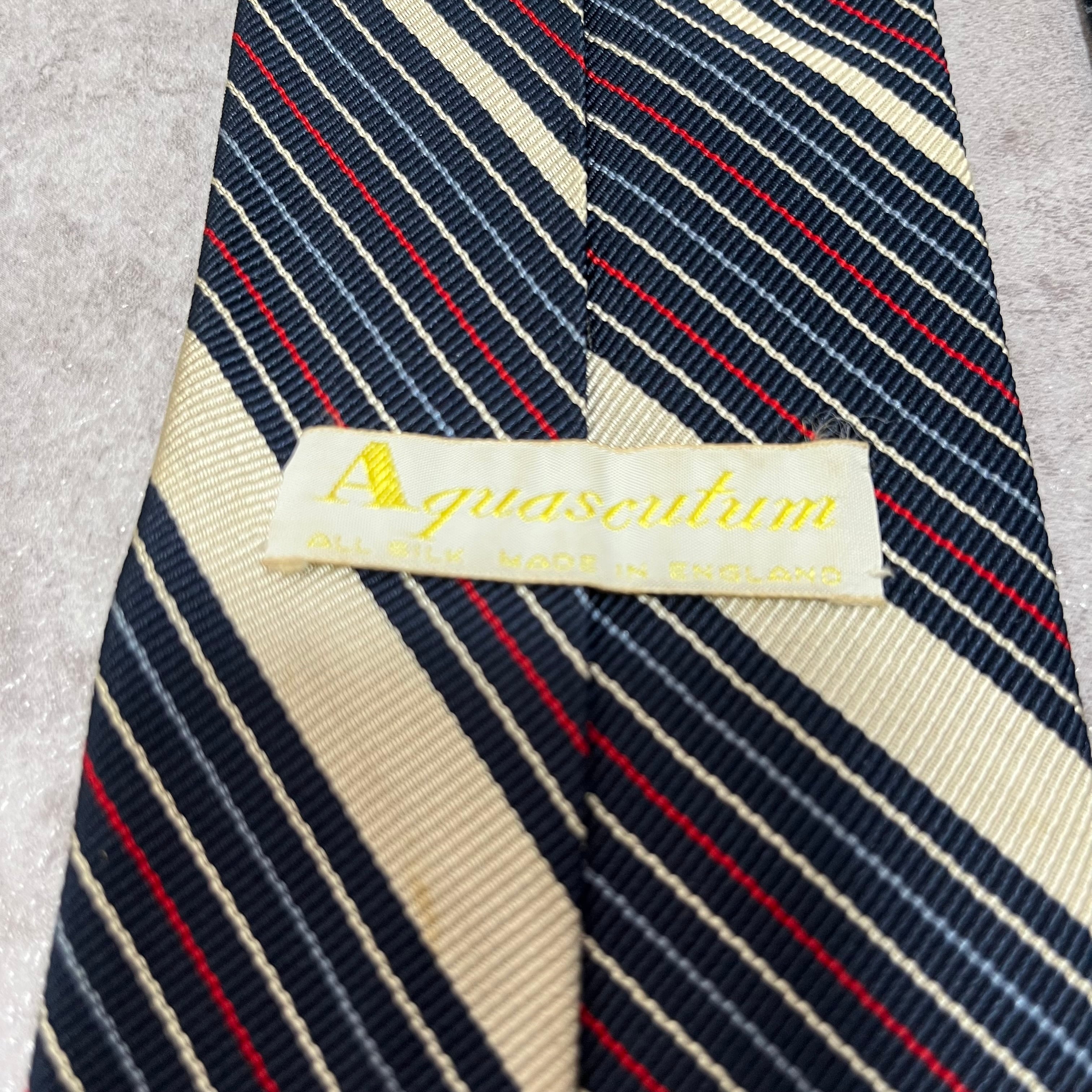 【Aquascutum】アクアスキュータム レジメンタルストライプネクタイ ビジネス向け バイカラー ネイビー 紺色