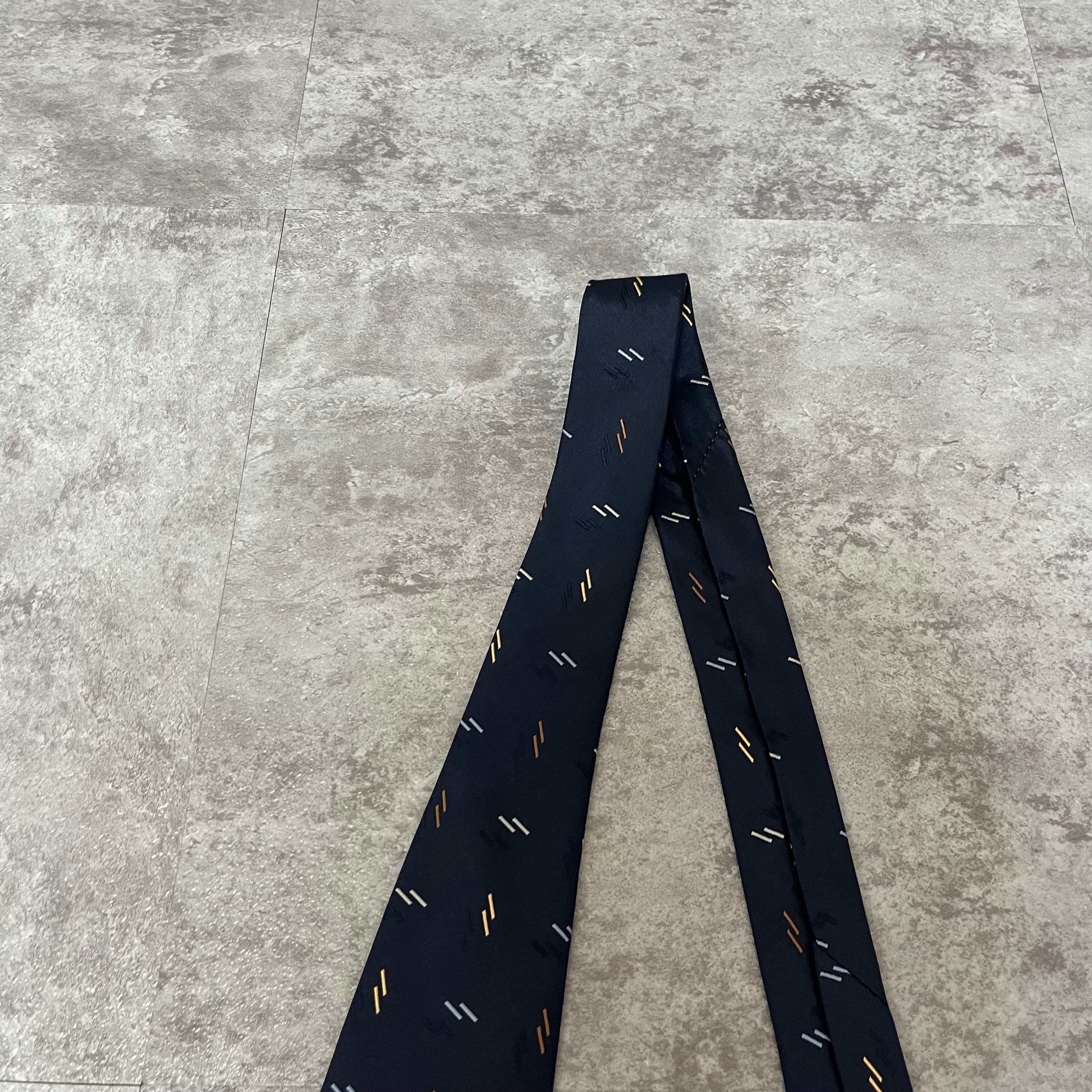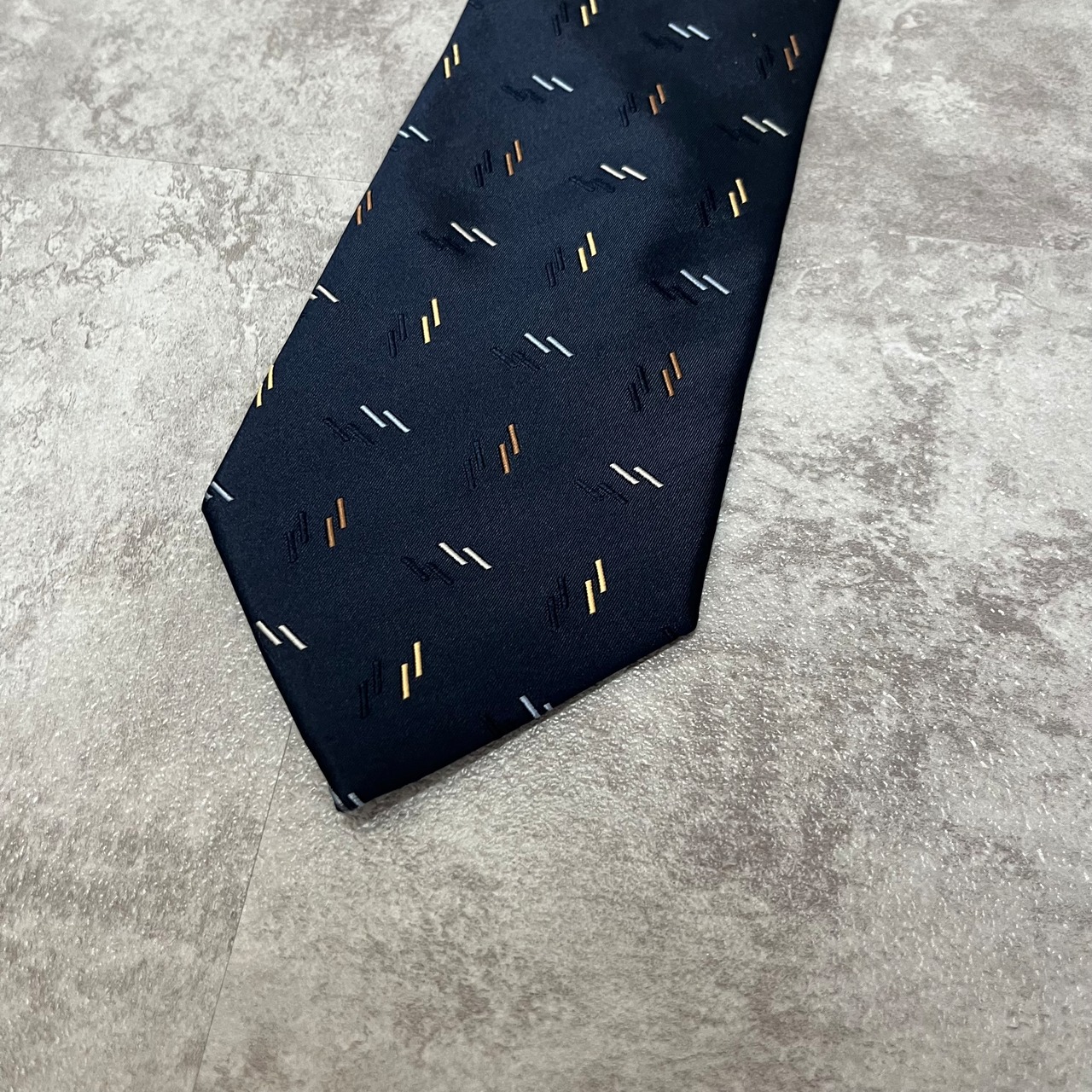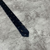 【小紋柄】小紋柄ネクタイ シャドウシルエット ネイビー 光沢 ビジネス向け 紺色