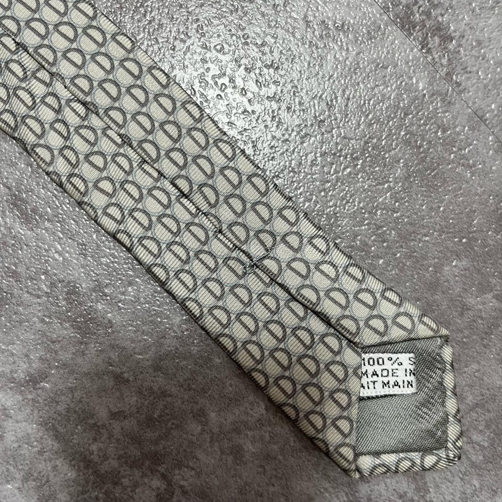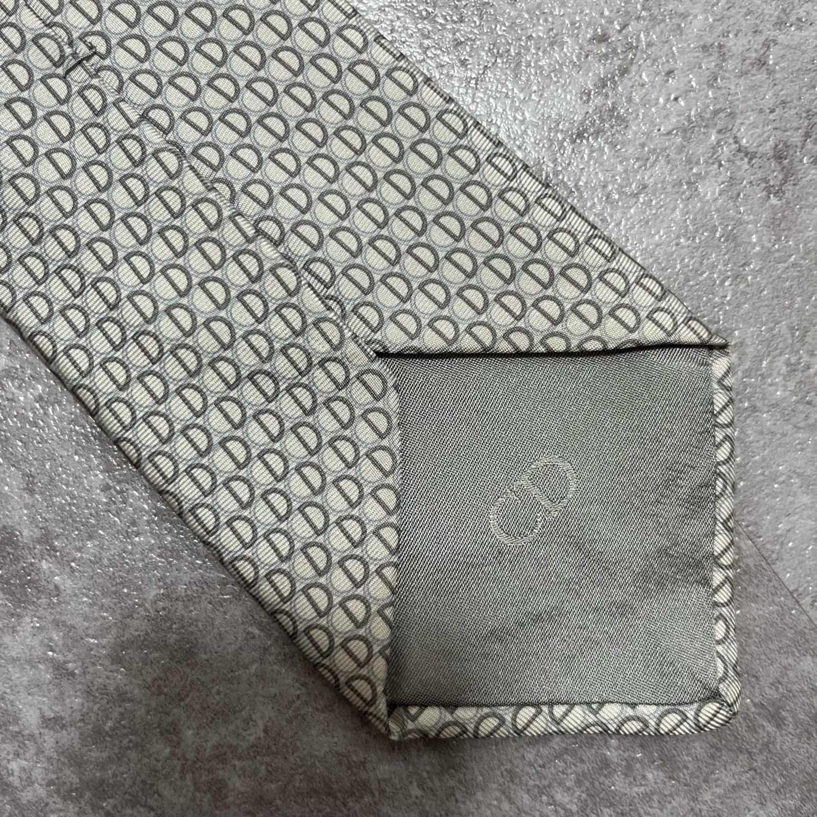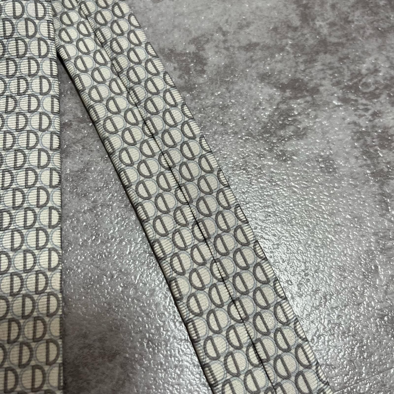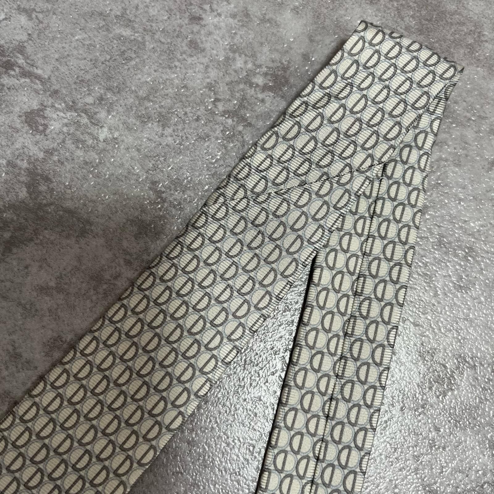 【Christian Dior】クリスチャンディオール ロゴ入り小紋柄ネクタイ シルク100% メンズ フランス製 グレー 灰色 ライトグレー CDロゴ 総柄 ビジネス向け クラシック ヴィンテージ