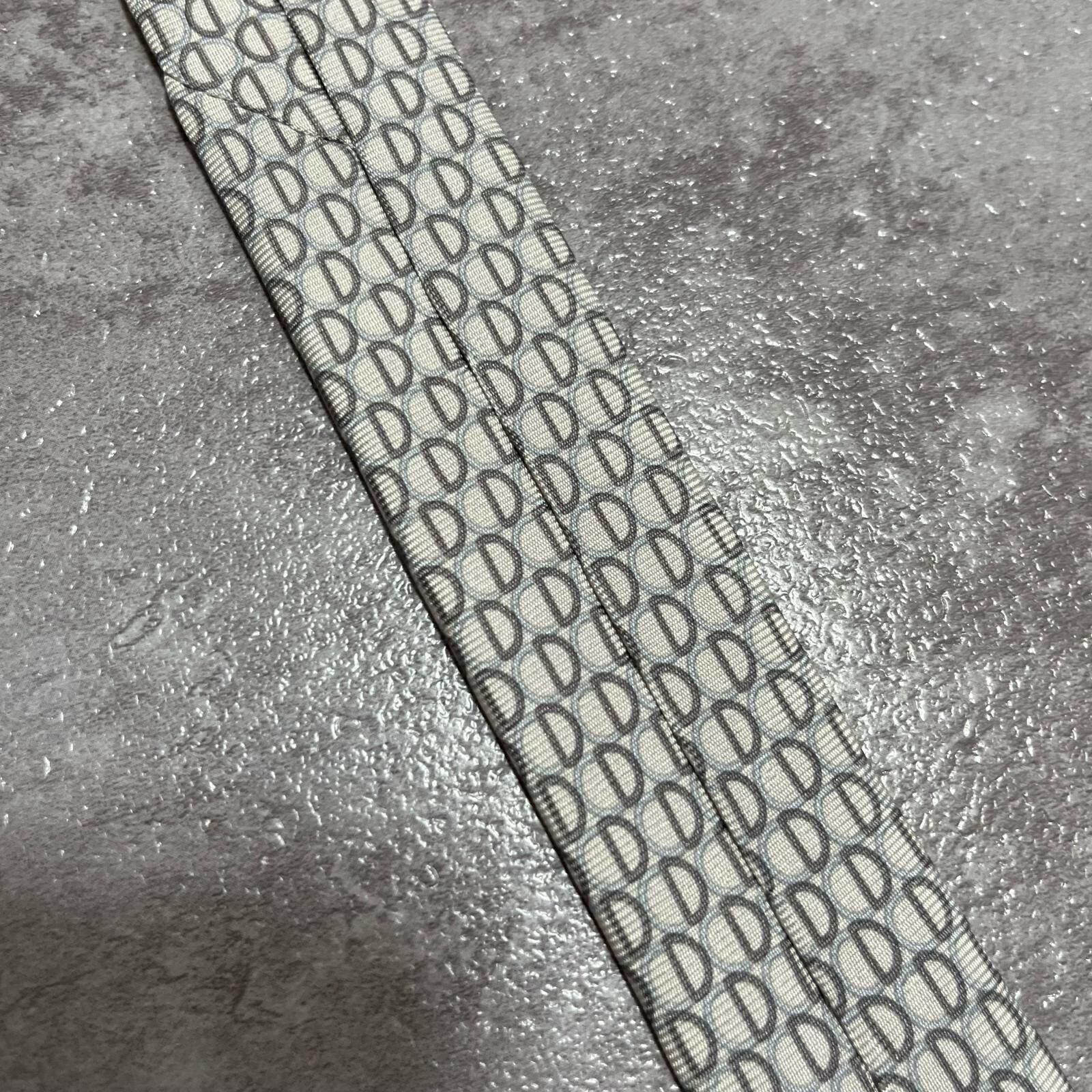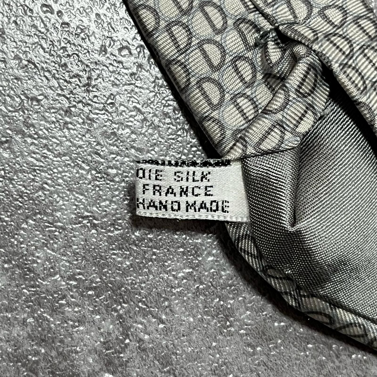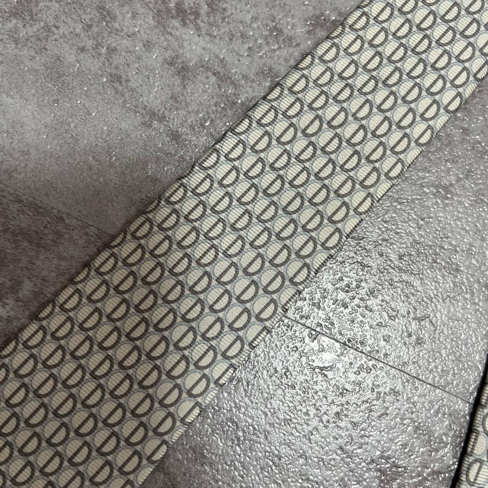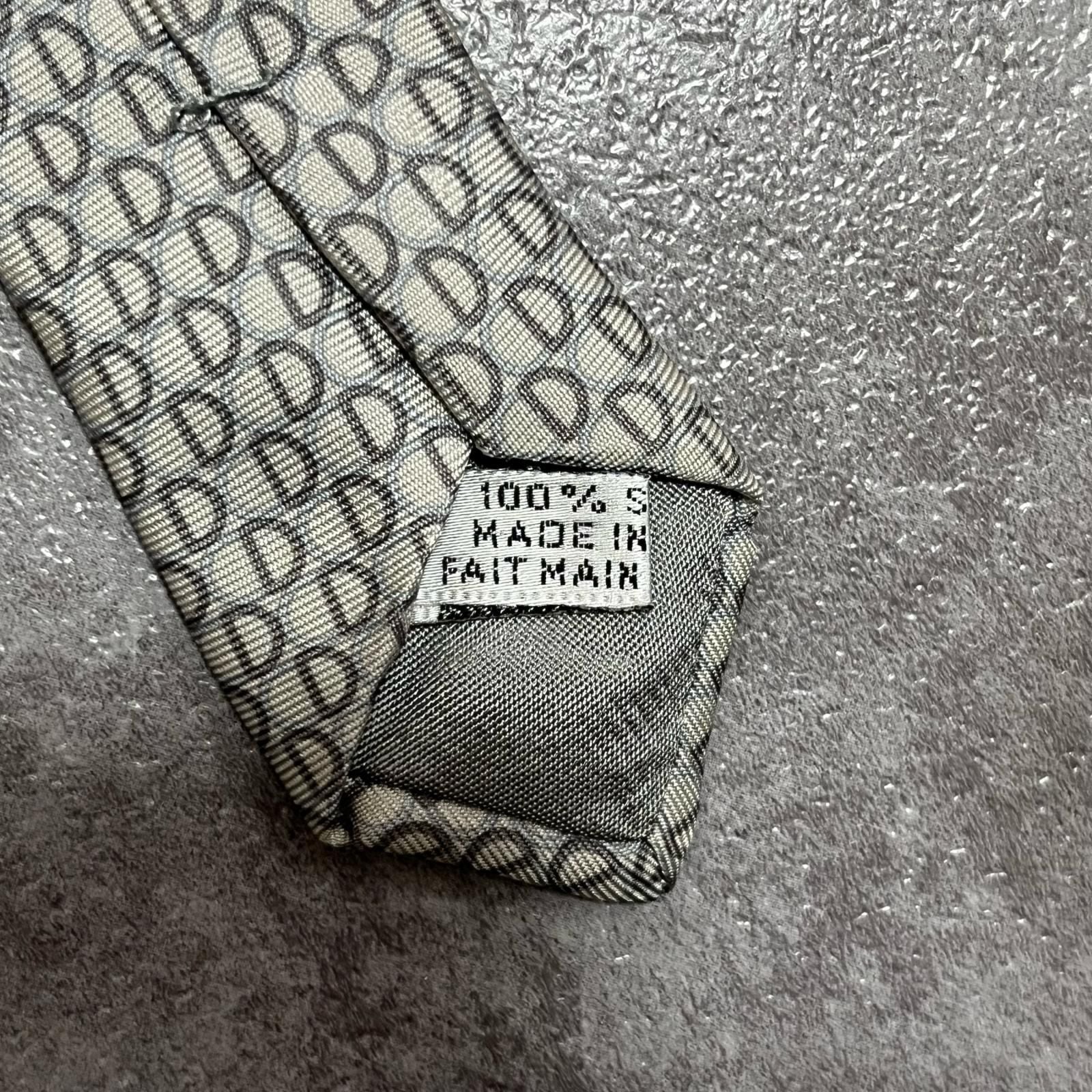 【Christian Dior】クリスチャンディオール ロゴ入り小紋柄ネクタイ シルク100% メンズ フランス製 グレー 灰色 ライトグレー CDロゴ 総柄 ビジネス向け クラシック ヴィンテージ