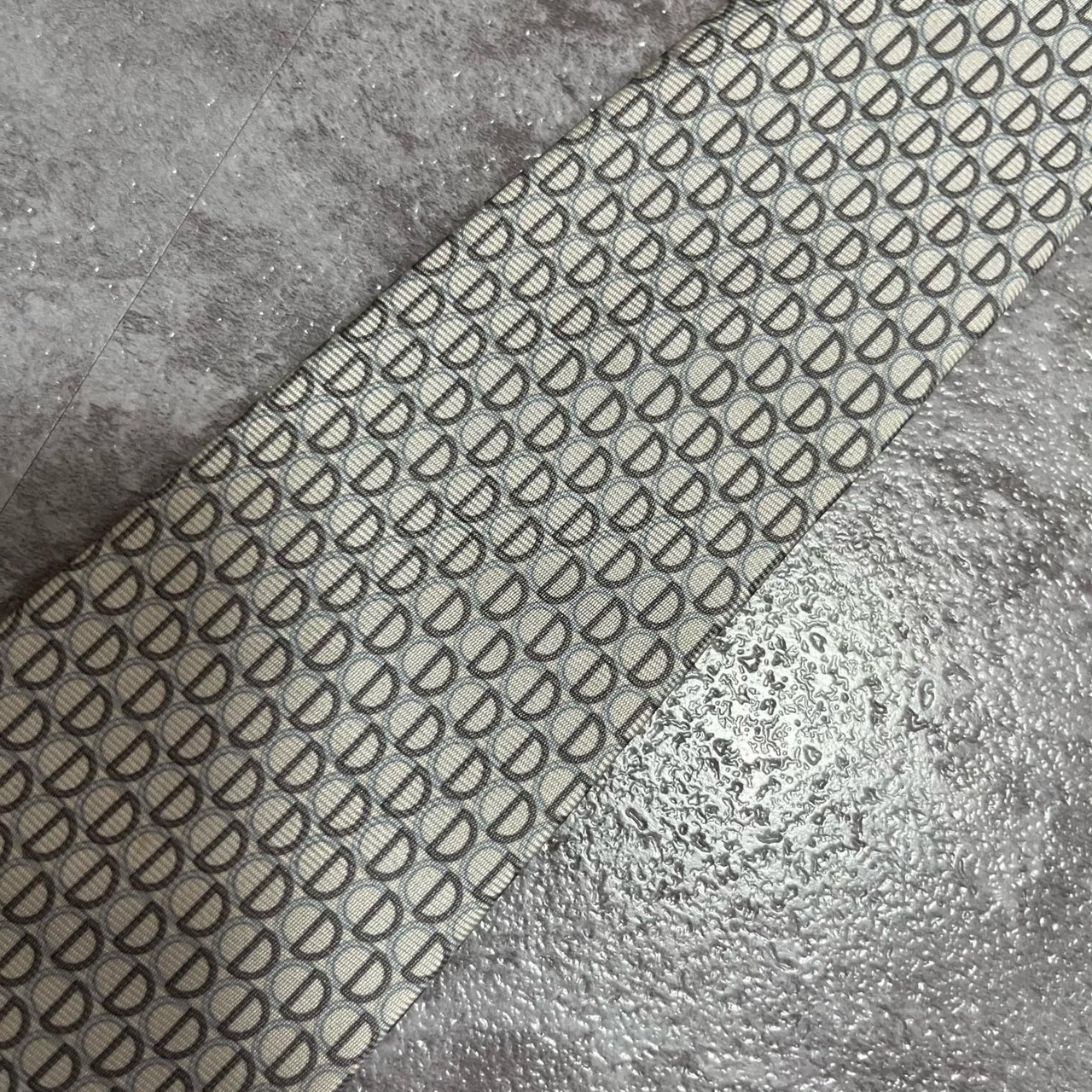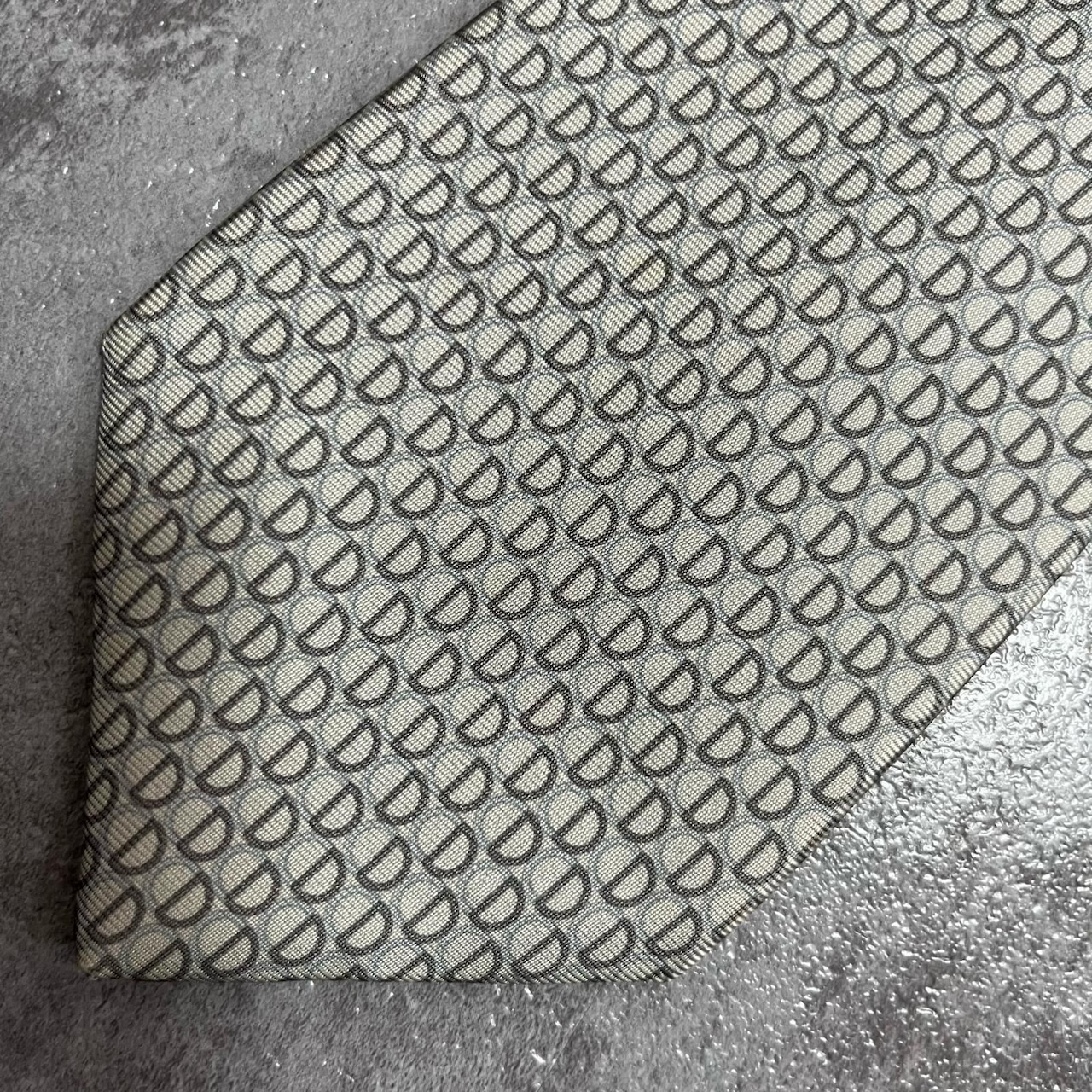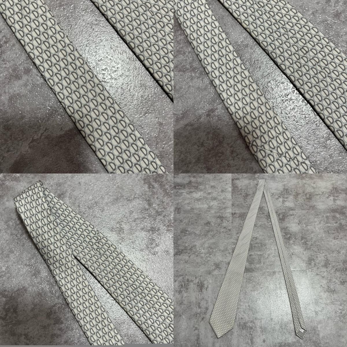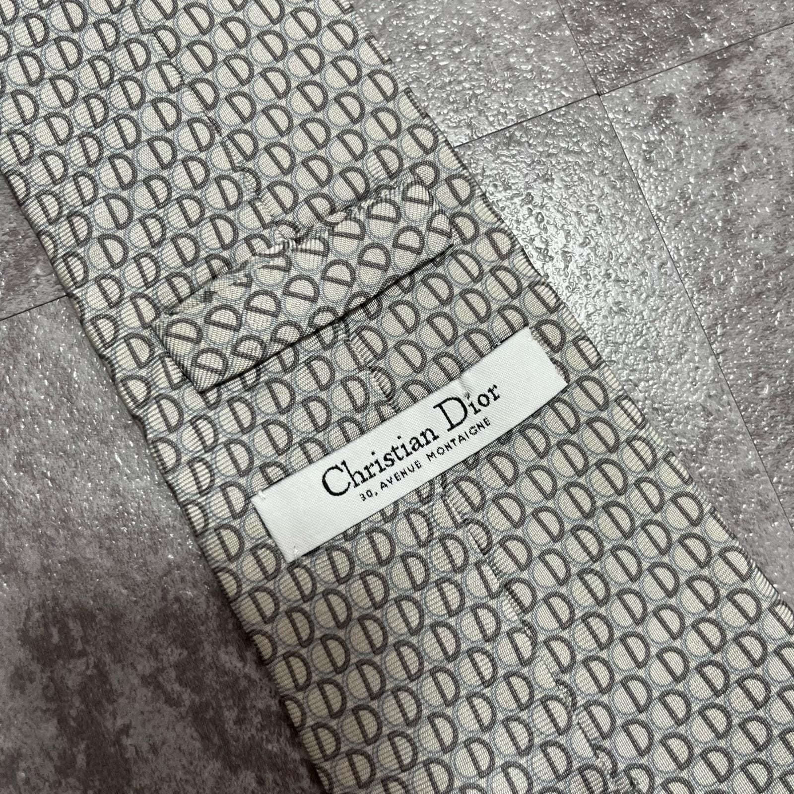 【Christian Dior】クリスチャンディオール ロゴ入り小紋柄ネクタイ シルク100% メンズ フランス製 グレー 灰色 ライトグレー CDロゴ 総柄 ビジネス向け クラシック ヴィンテージ
