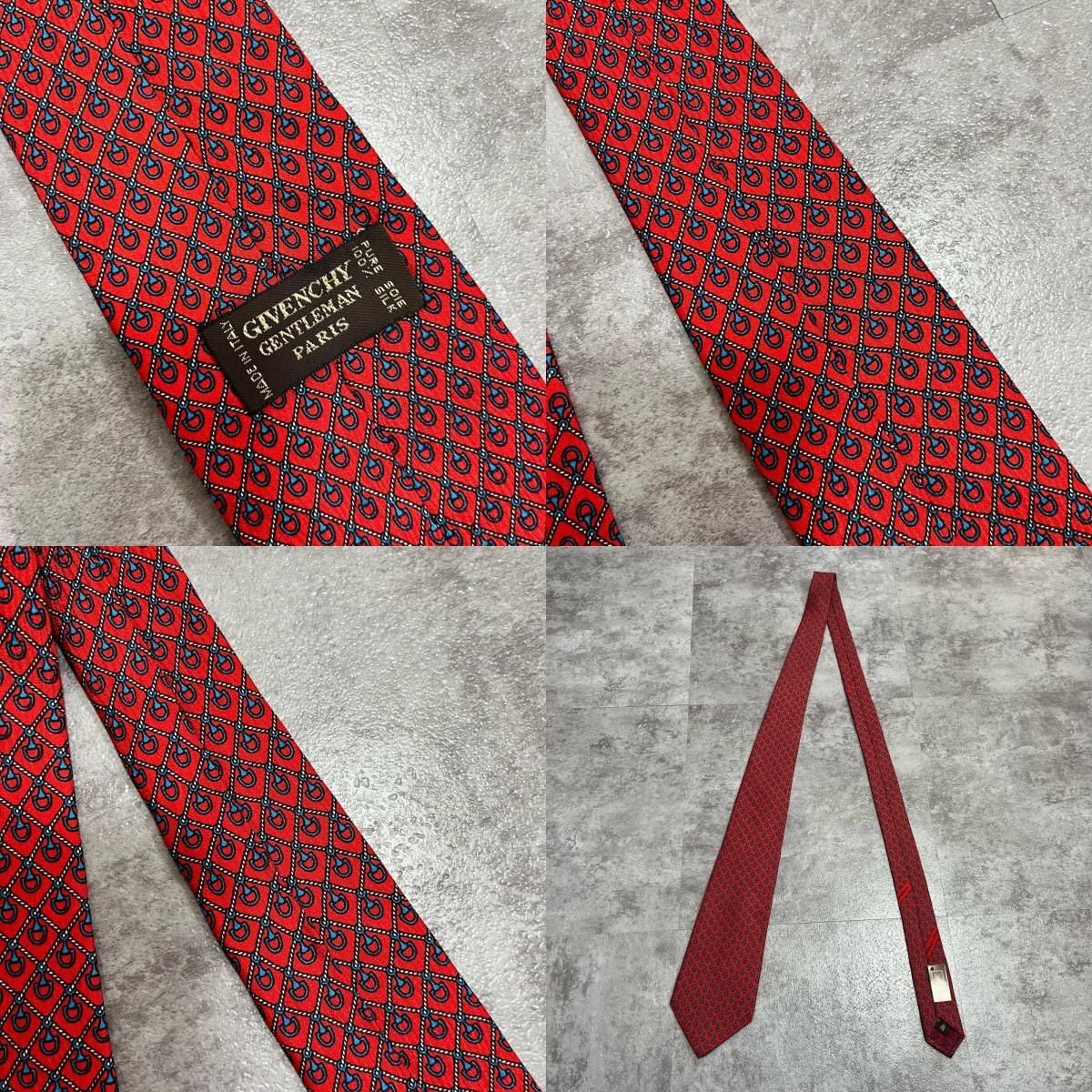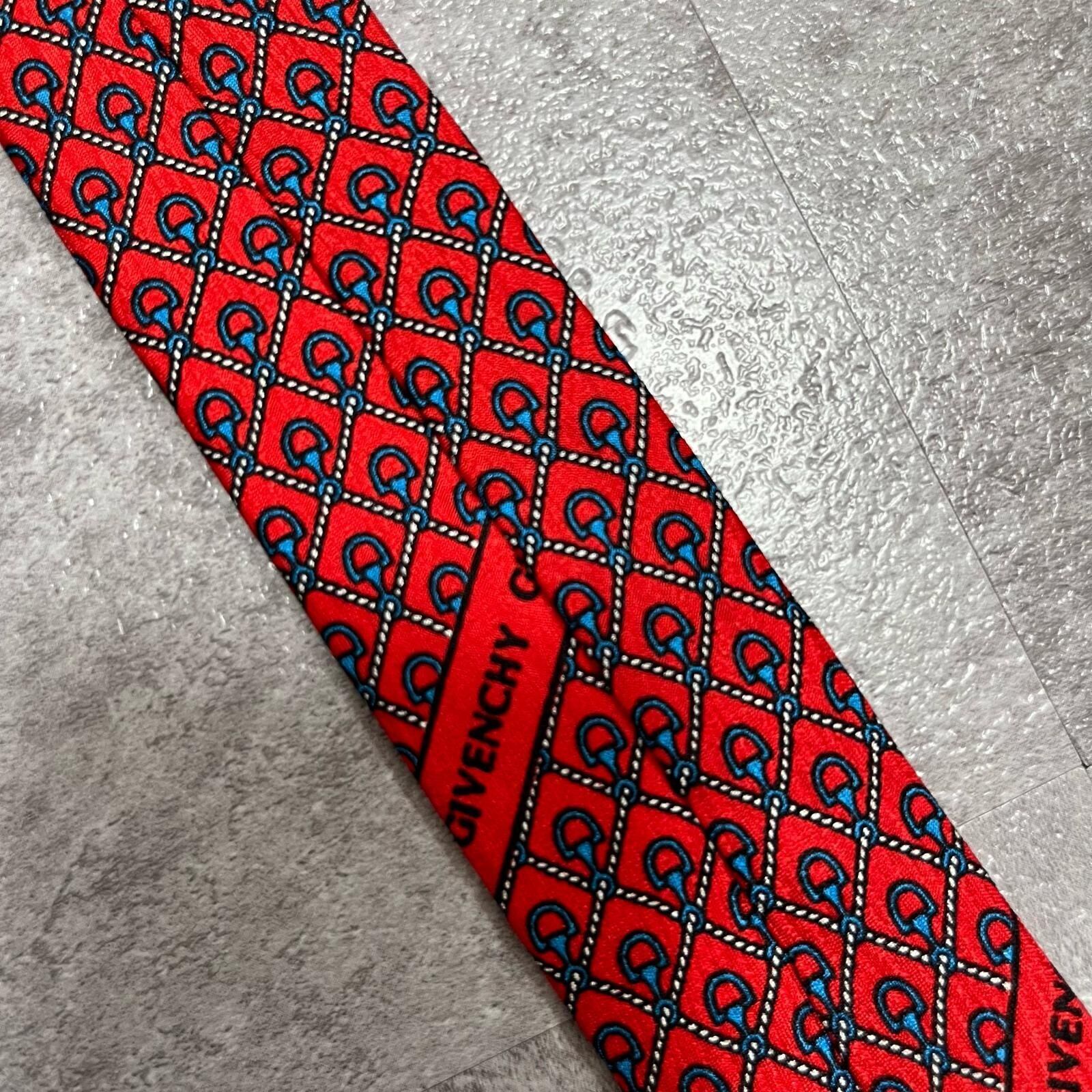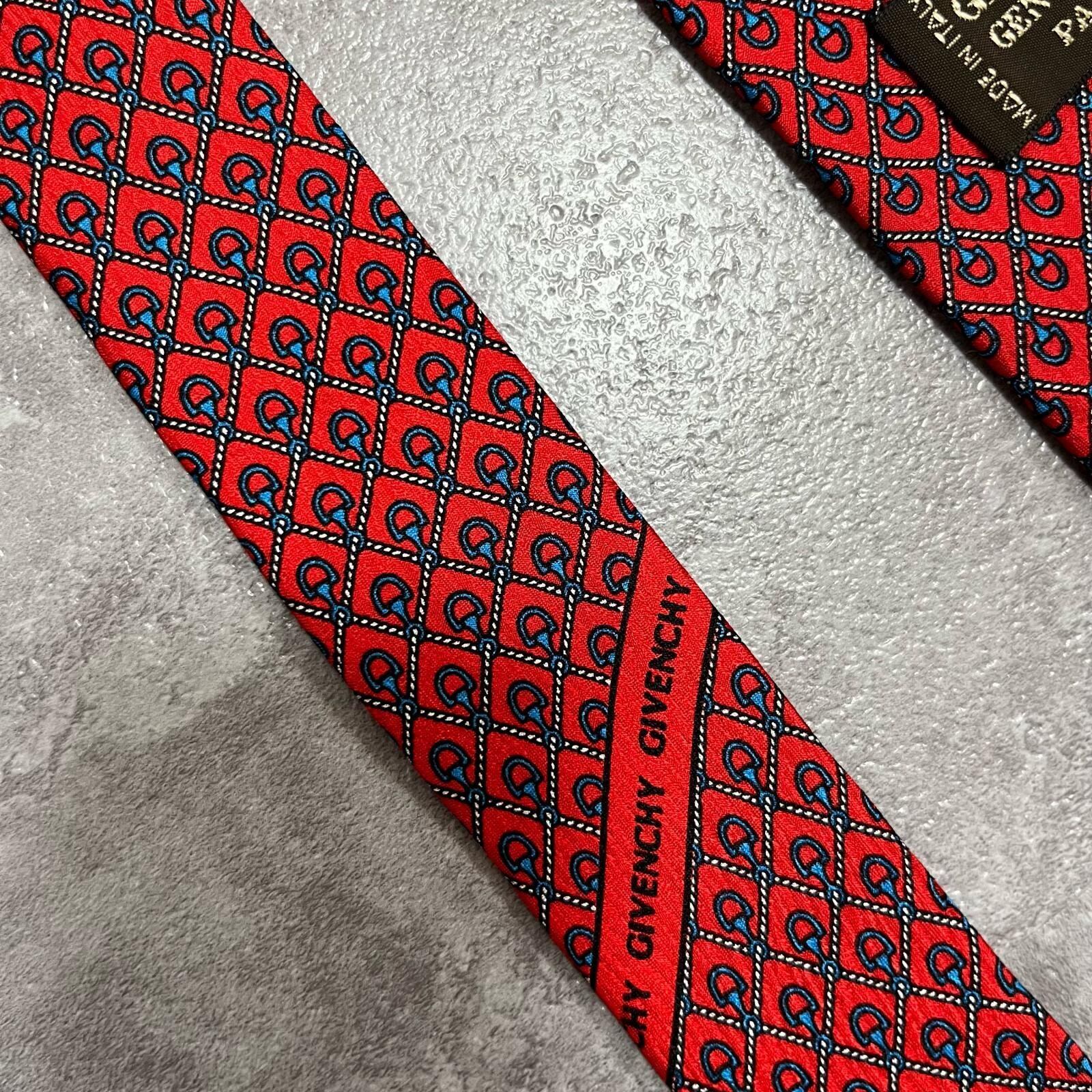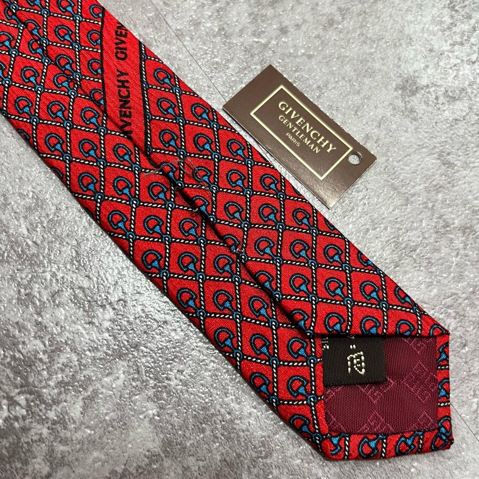 【未使用タグ付き】GIVENCHY ジバンシー シルクネクタイ シルク100% メンズ イタリア製 レッド 赤 総柄 小紋柄 ロゴ柄 クラシック ドレス ビジネス 高級ブランド ヴィンテージ