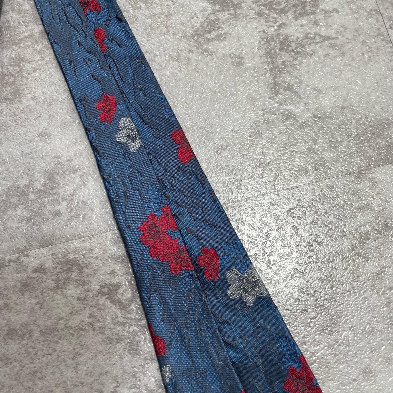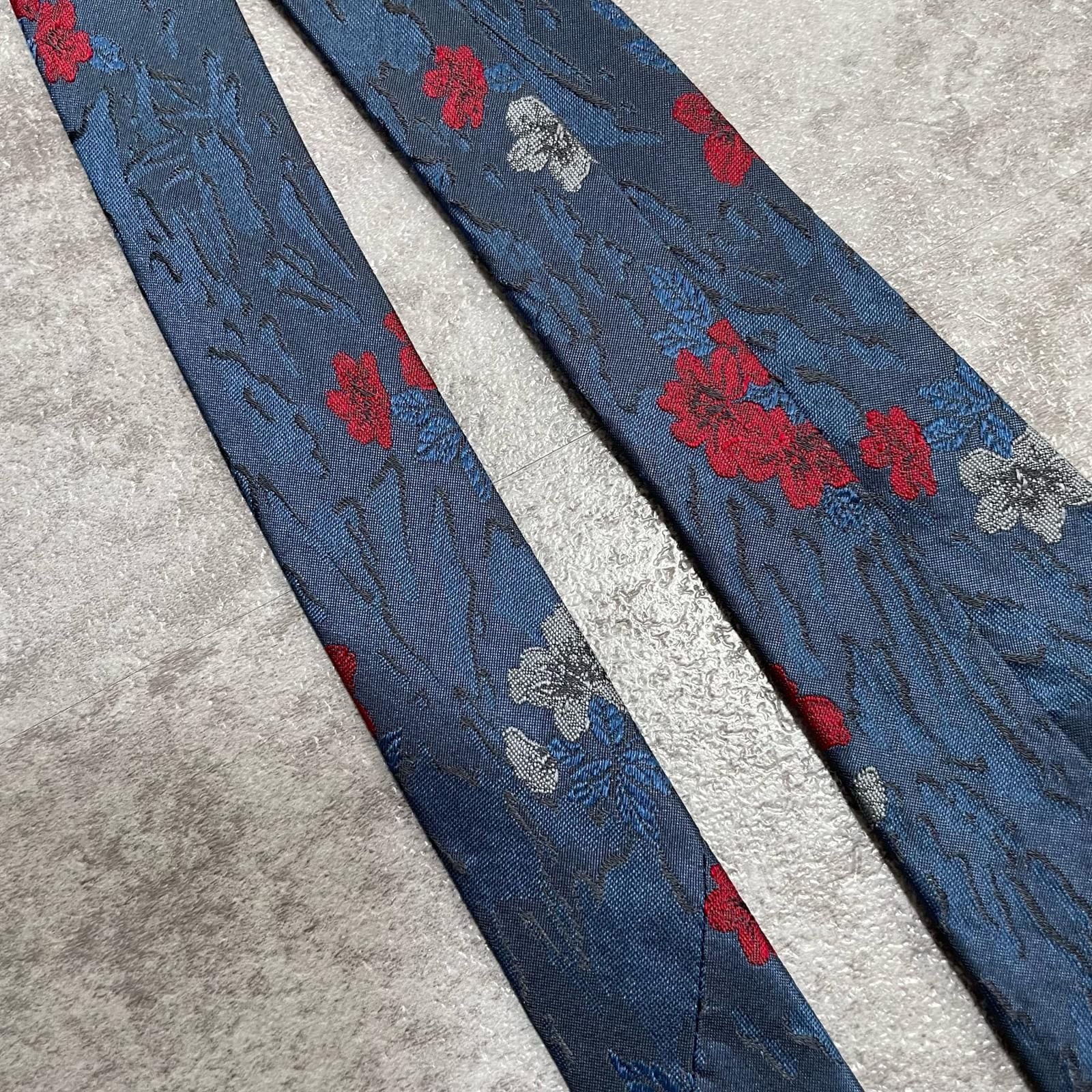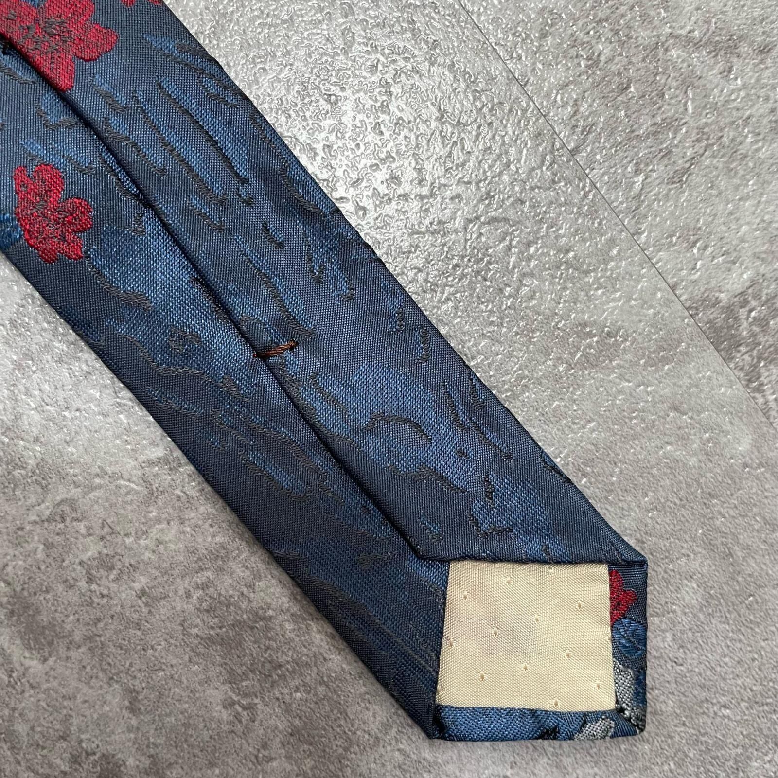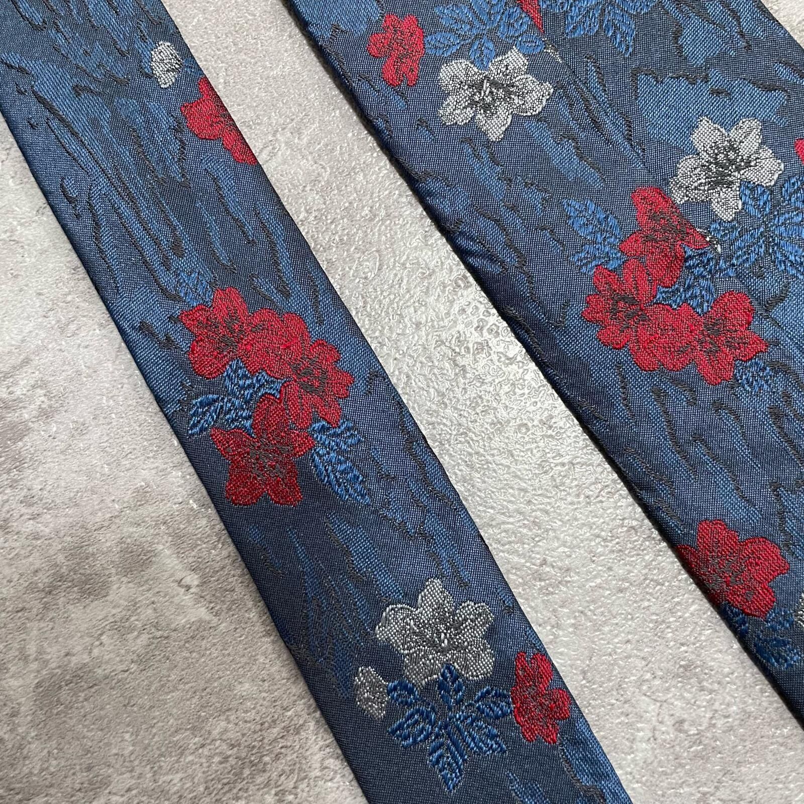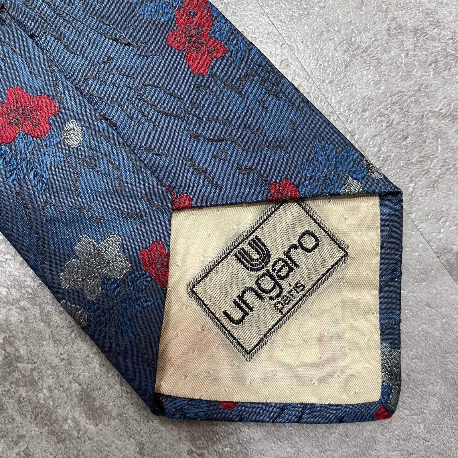【UNGARO】ウンガロ フラワー柄 シルクネクタイ シルク100% メンズ イタリア製 ネイビー 紺 レッド 赤 花柄 ジャガード 総柄 クラシック モード ドレス ビジネス ヴィンテージ