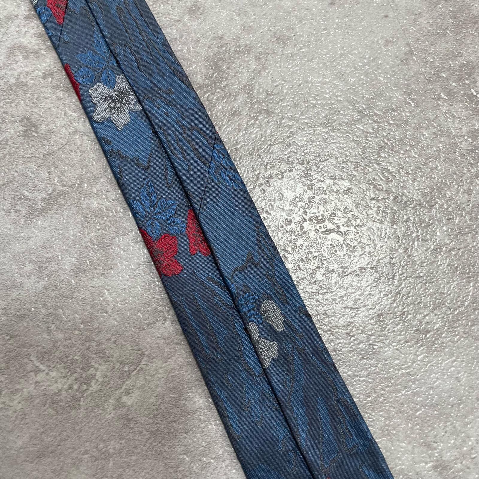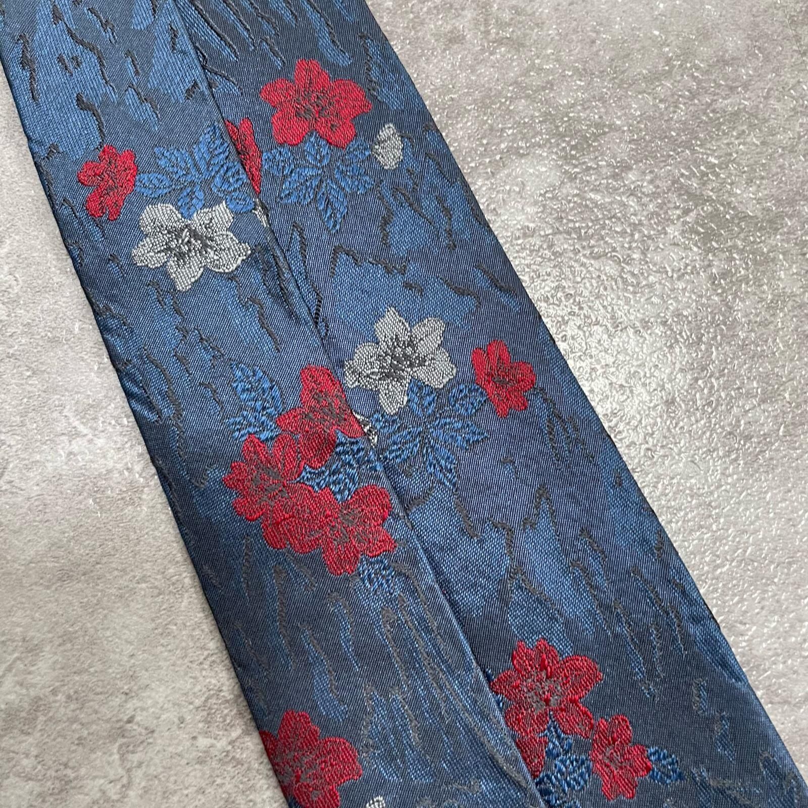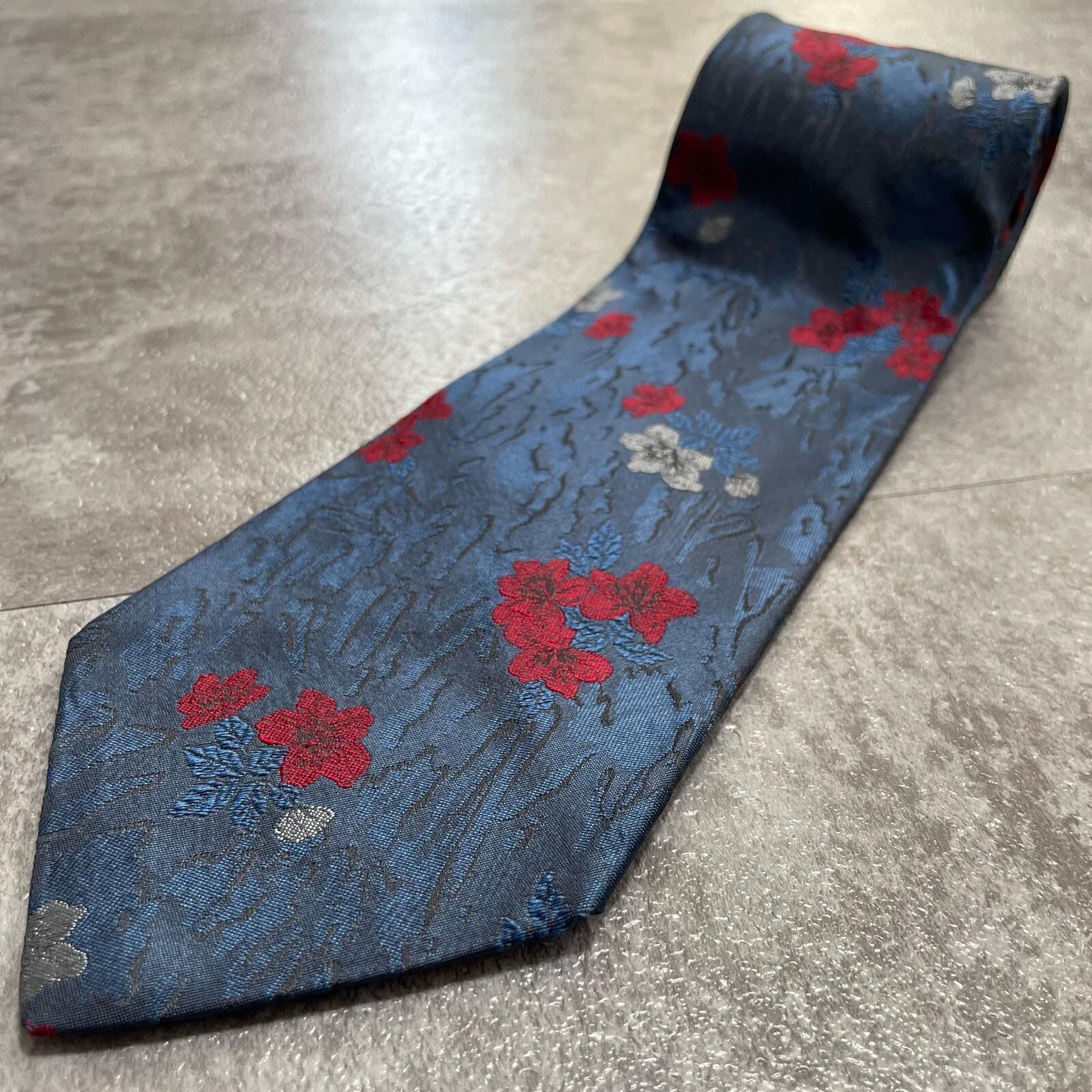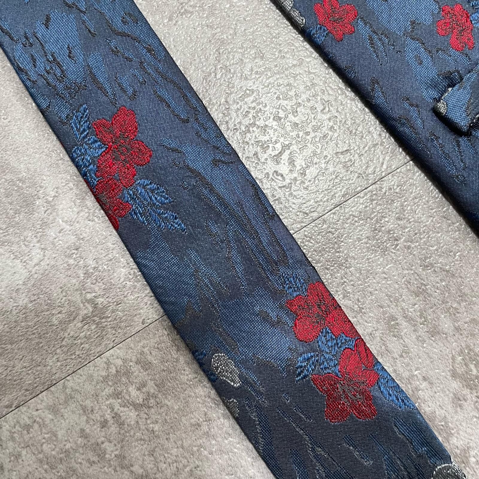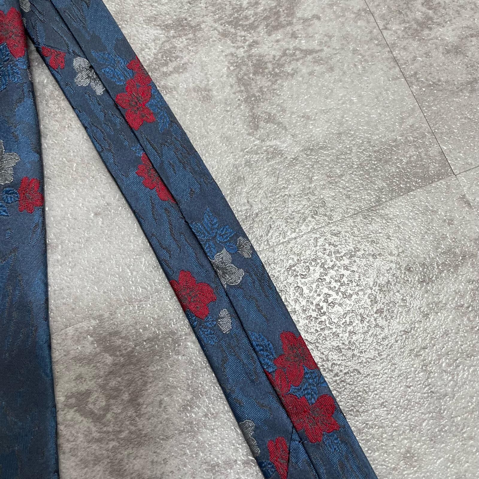 【UNGARO】ウンガロ フラワー柄 シルクネクタイ シルク100% メンズ イタリア製 ネイビー 紺 レッド 赤 花柄 ジャガード 総柄 クラシック モード ドレス ビジネス ヴィンテージ