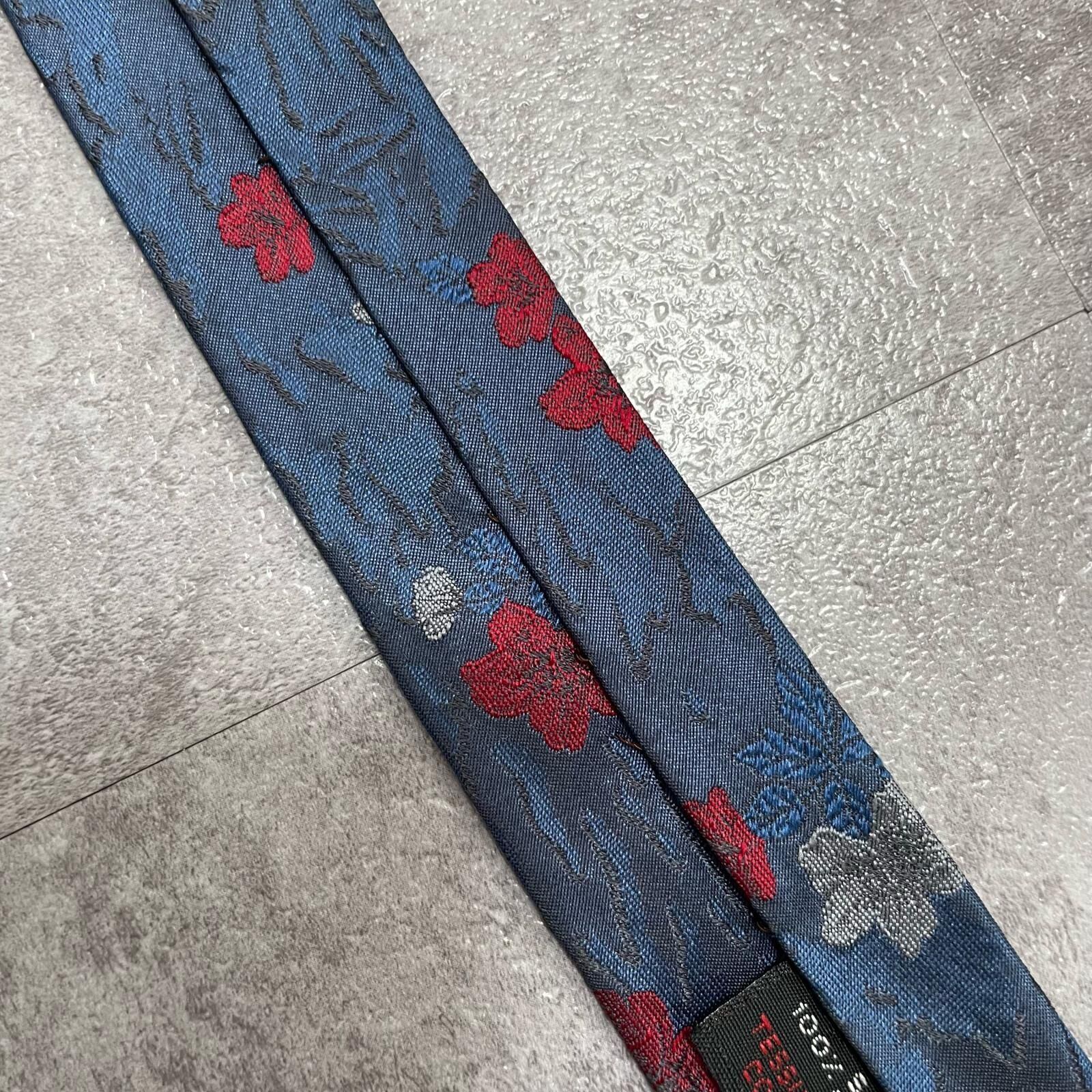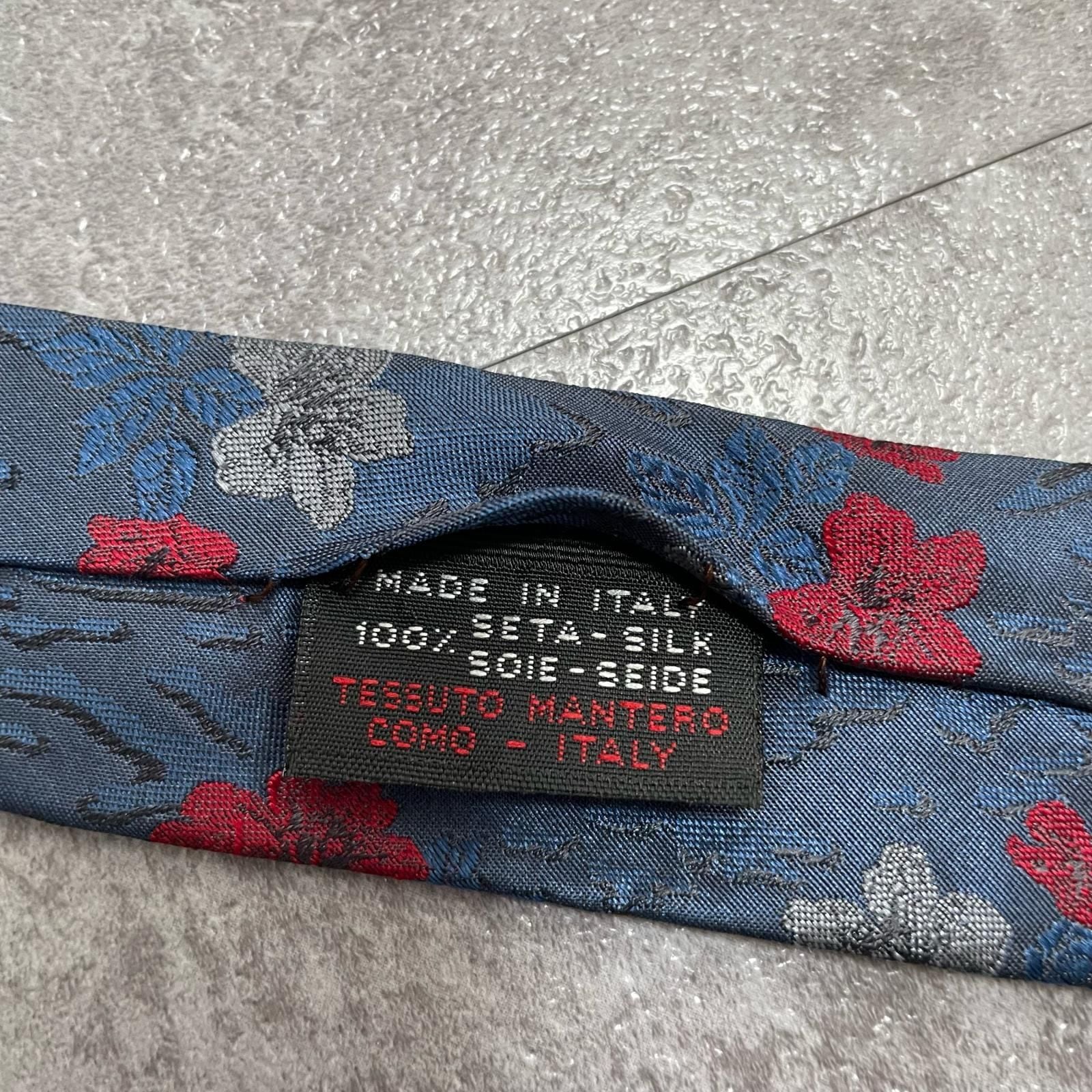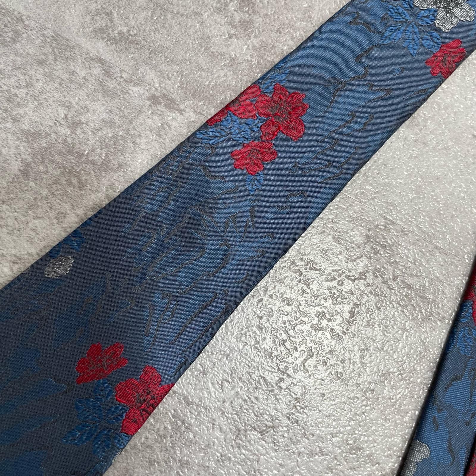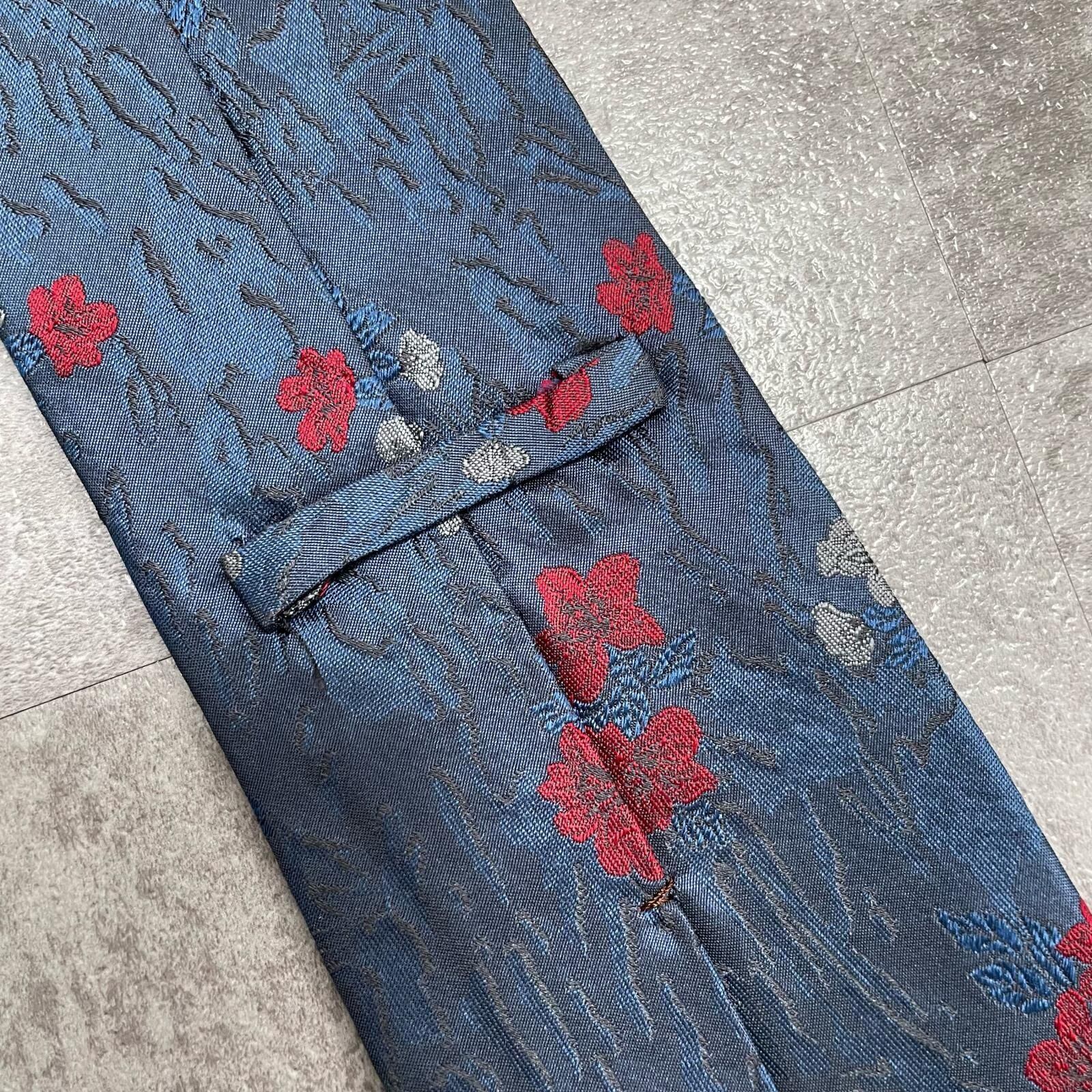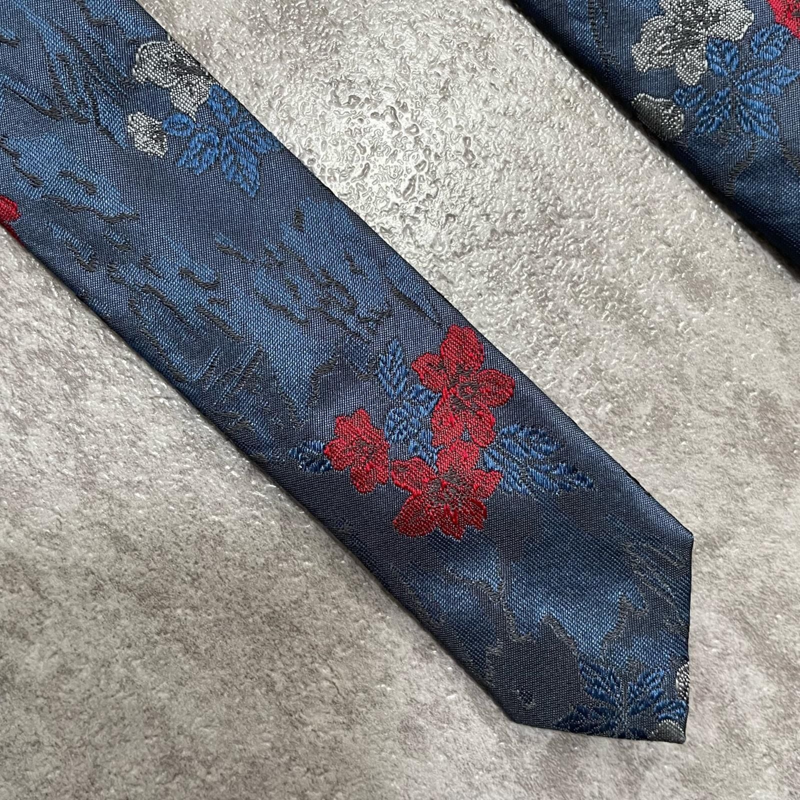 【UNGARO】ウンガロ フラワー柄 シルクネクタイ シルク100% メンズ イタリア製 ネイビー 紺 レッド 赤 花柄 ジャガード 総柄 クラシック モード ドレス ビジネス ヴィンテージ