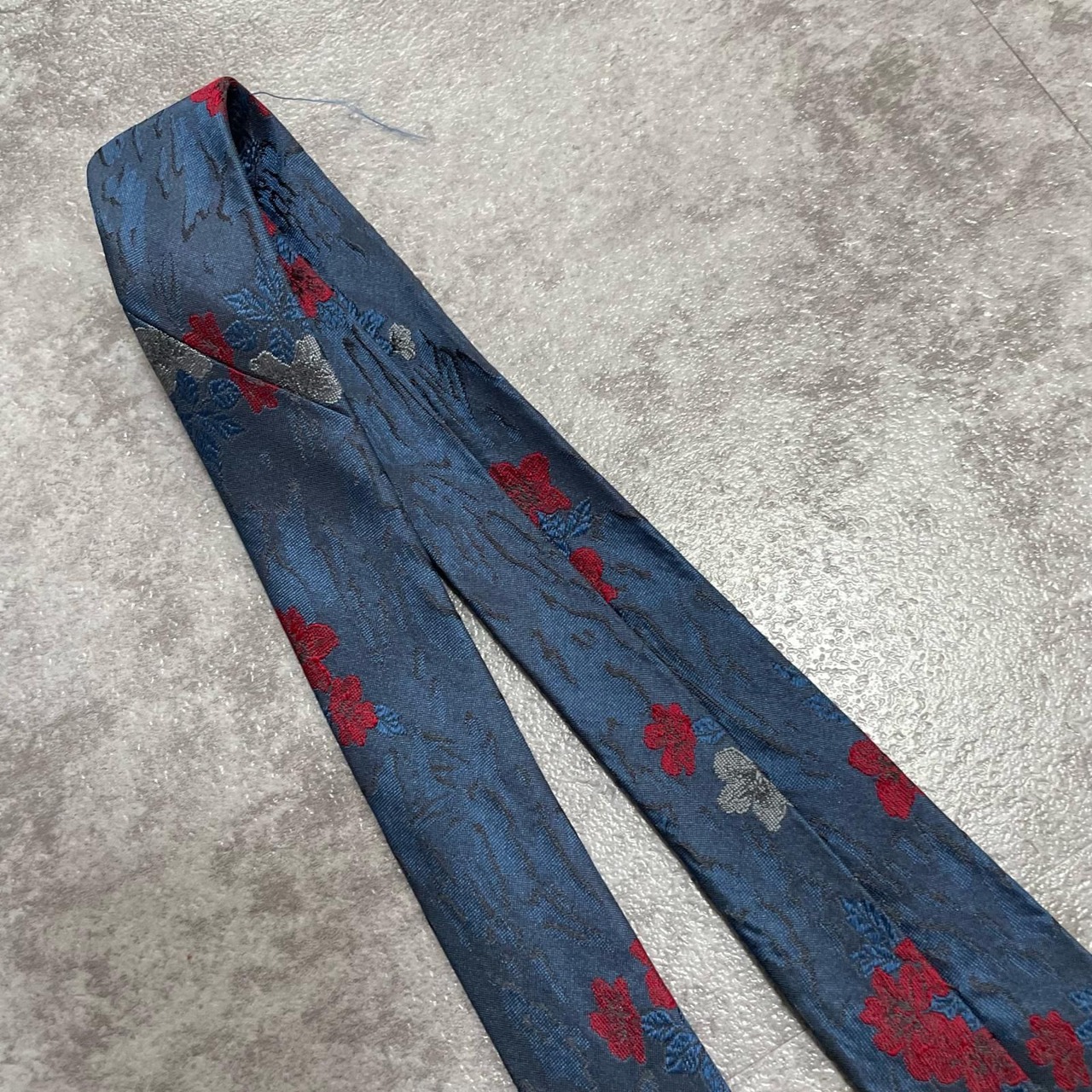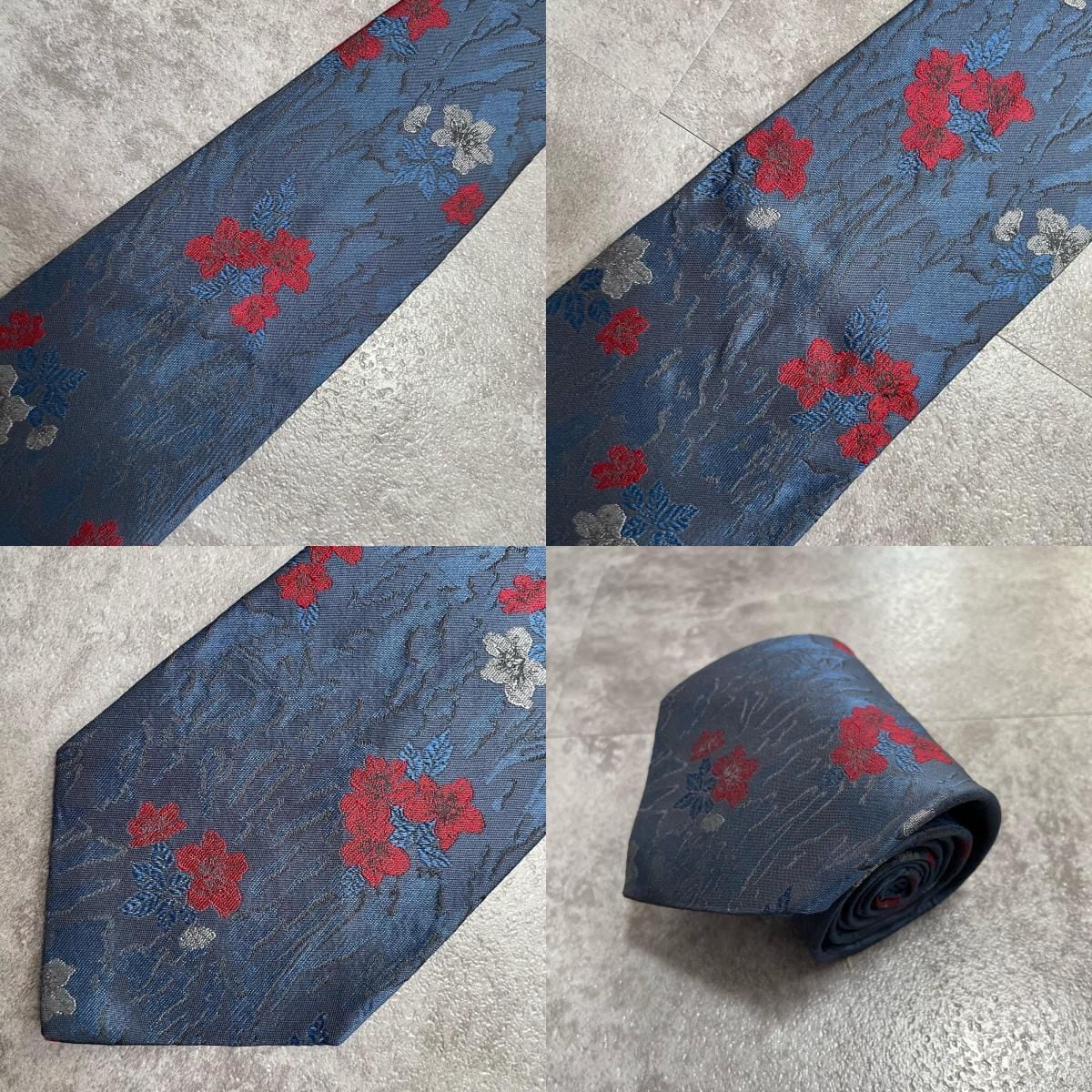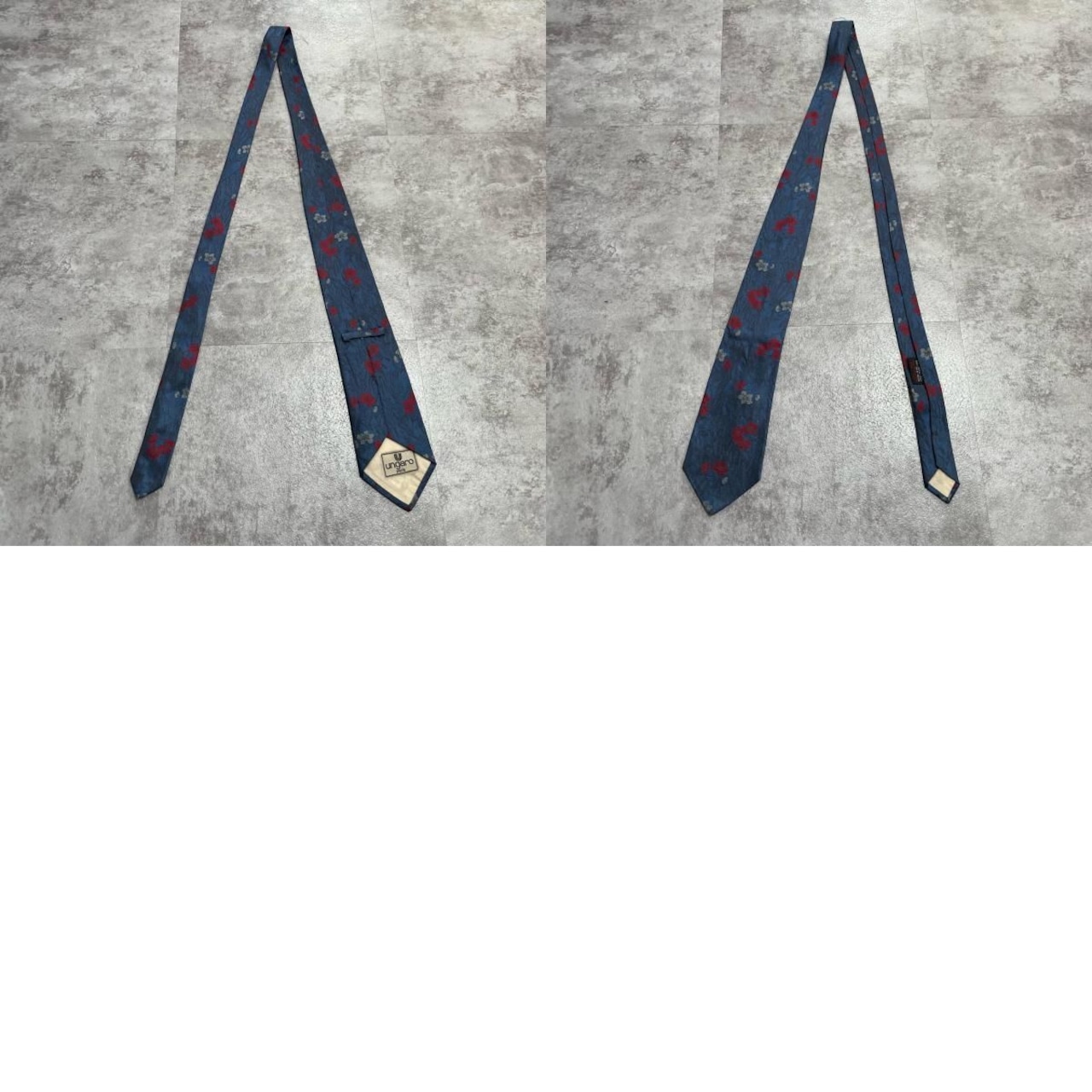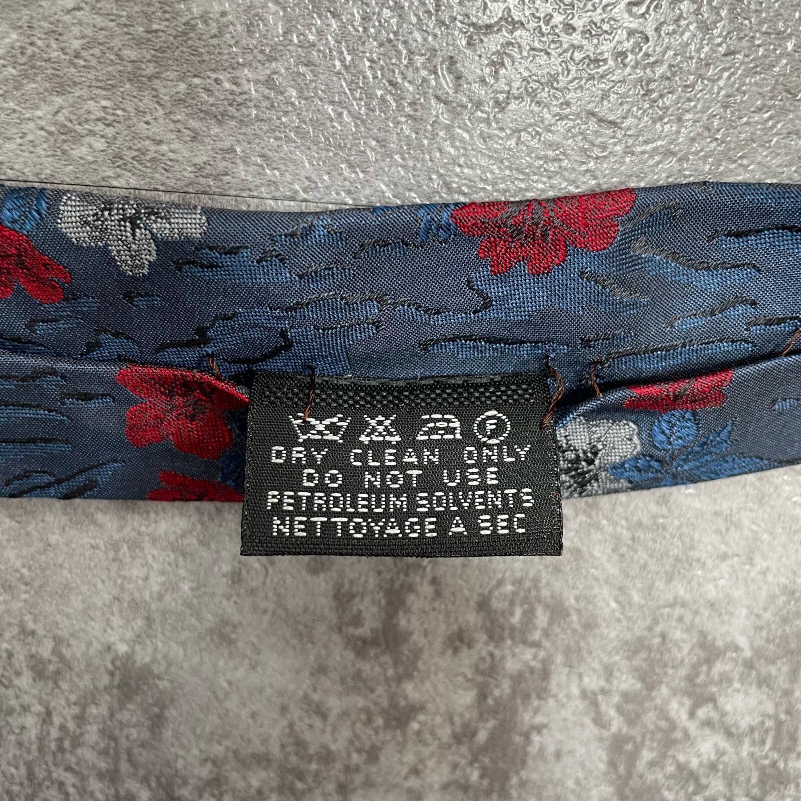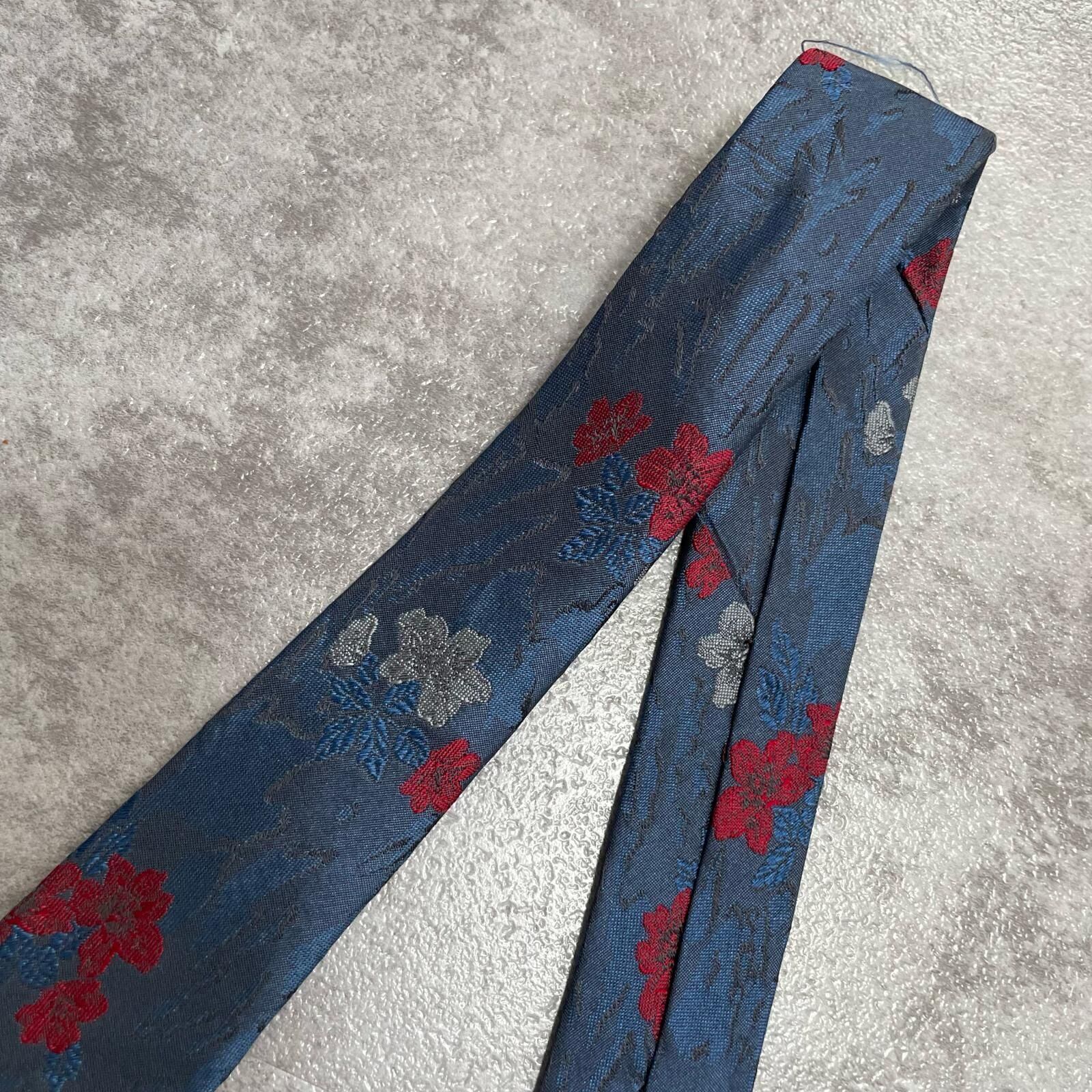 【UNGARO】ウンガロ フラワー柄 シルクネクタイ シルク100% メンズ イタリア製 ネイビー 紺 レッド 赤 花柄 ジャガード 総柄 クラシック モード ドレス ビジネス ヴィンテージ