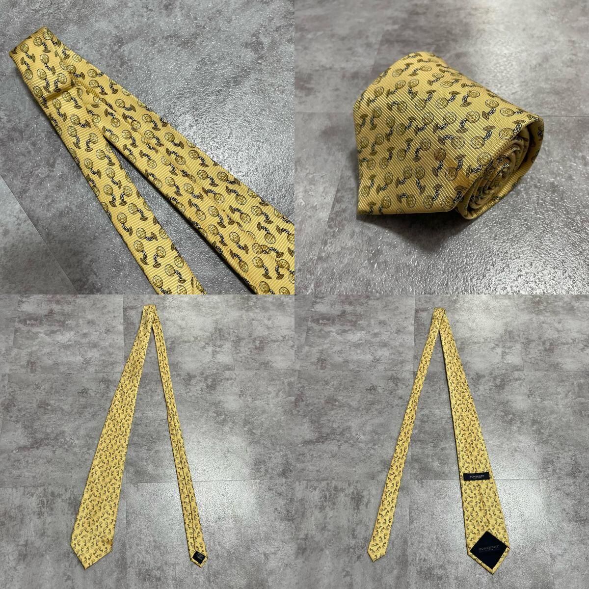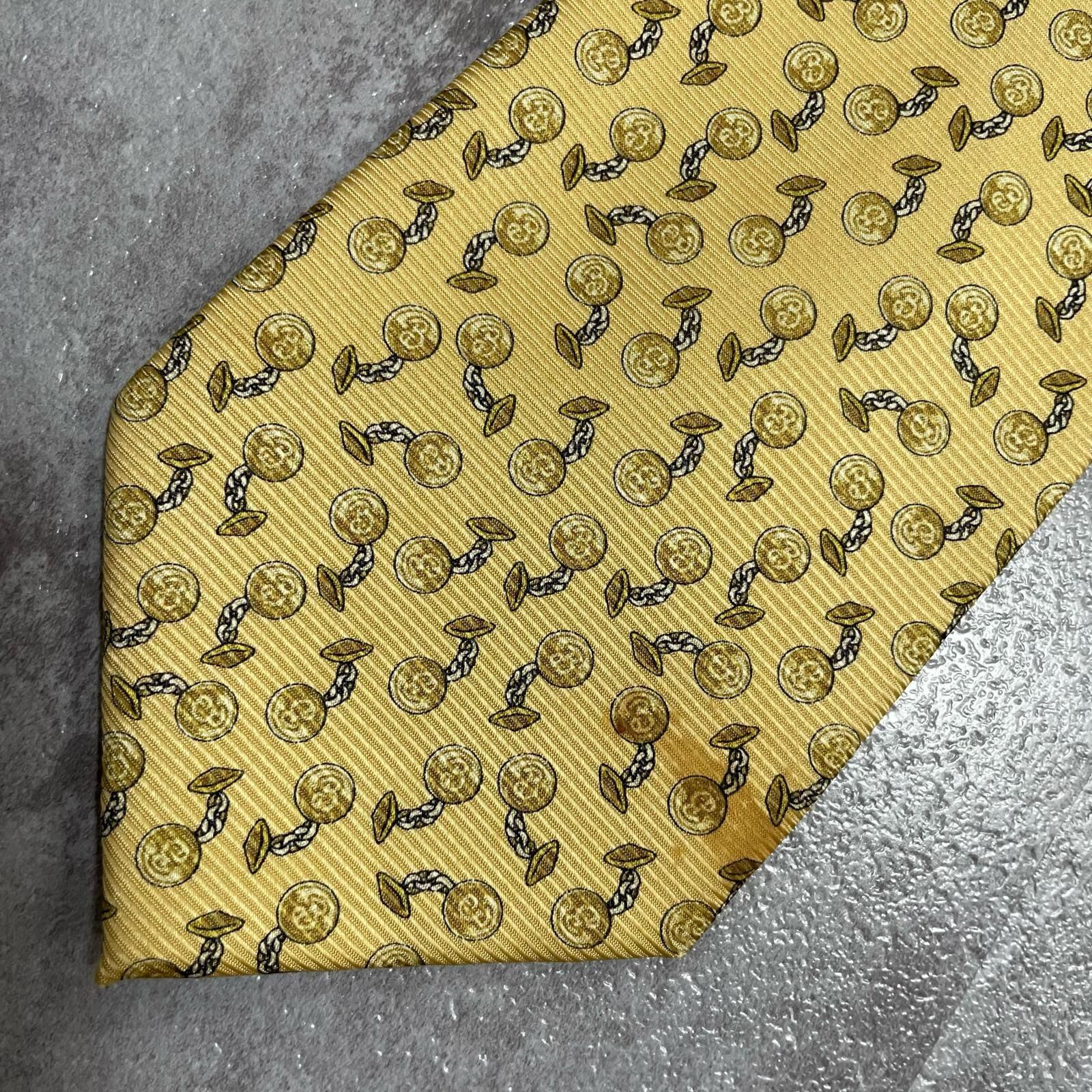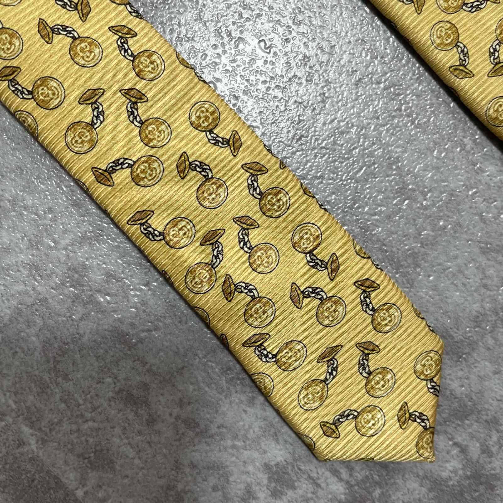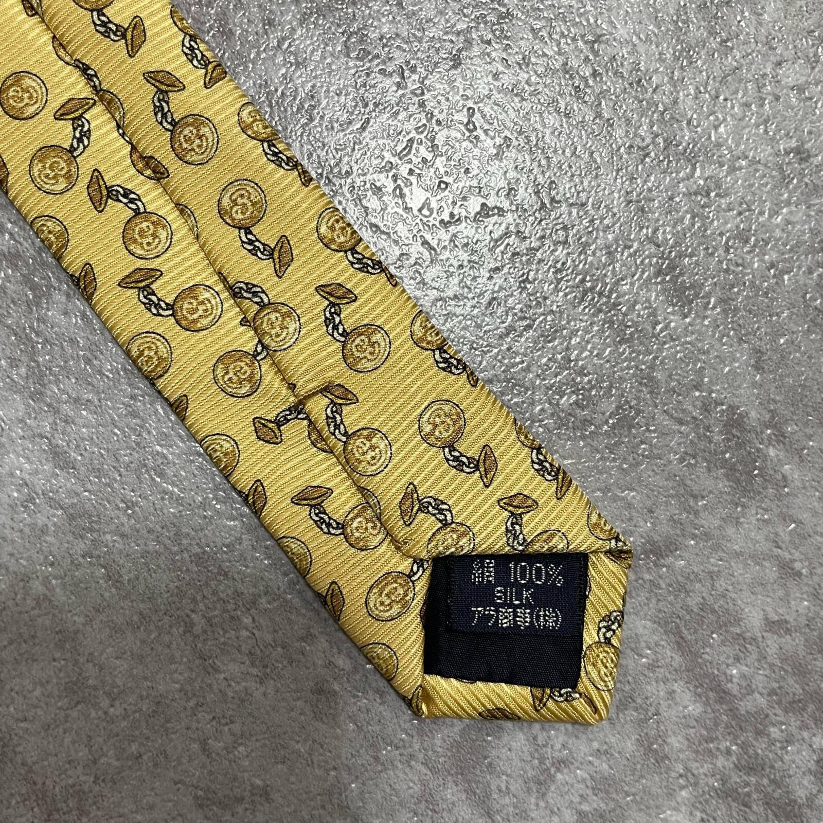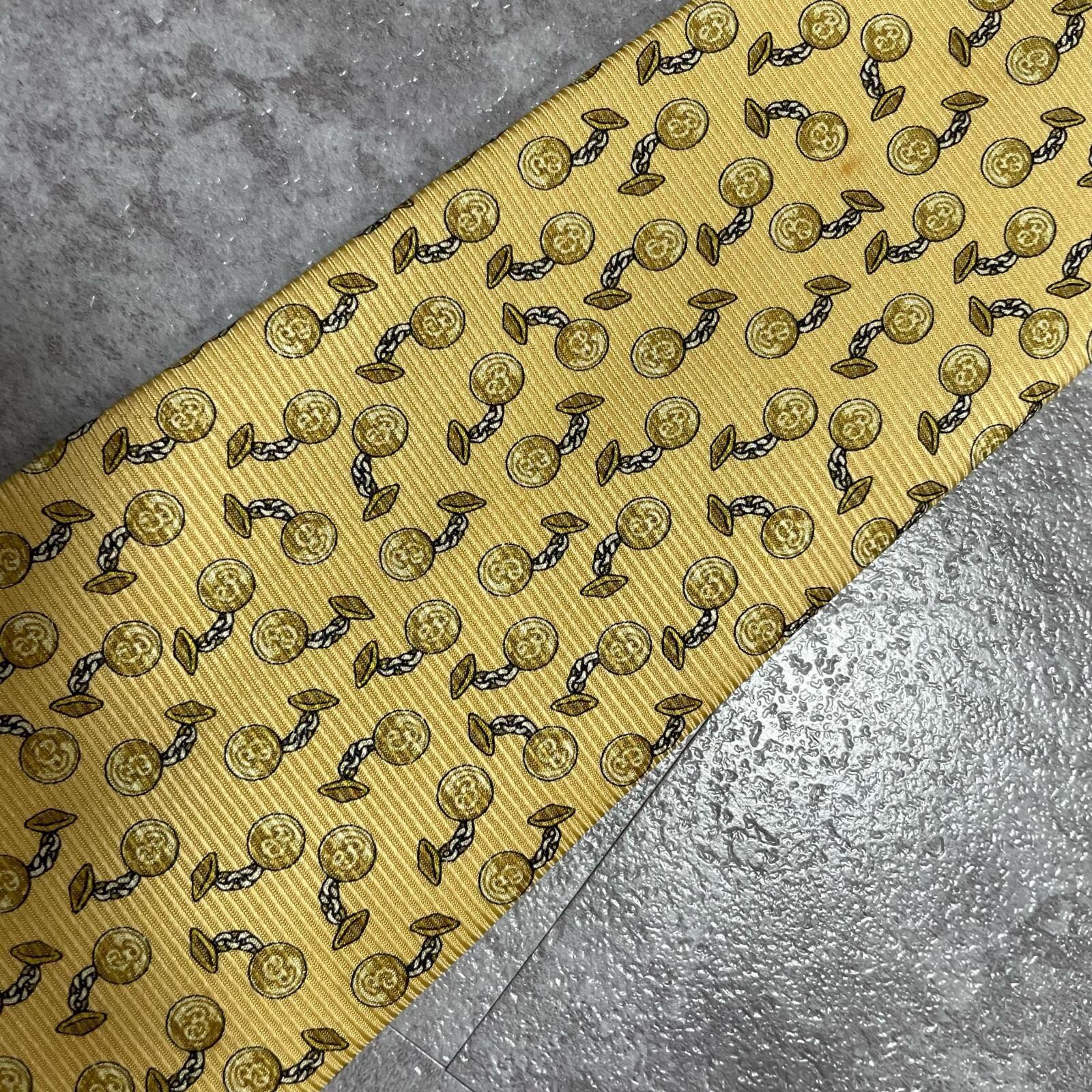 【BURBERRY】バーバリー チェーンコイン総柄 シルクネクタイ シルク100% メンズ 日本製 イエロー 黄色 コインモチーフ チェーン柄 総柄 クラシック ビジネス フォーマル