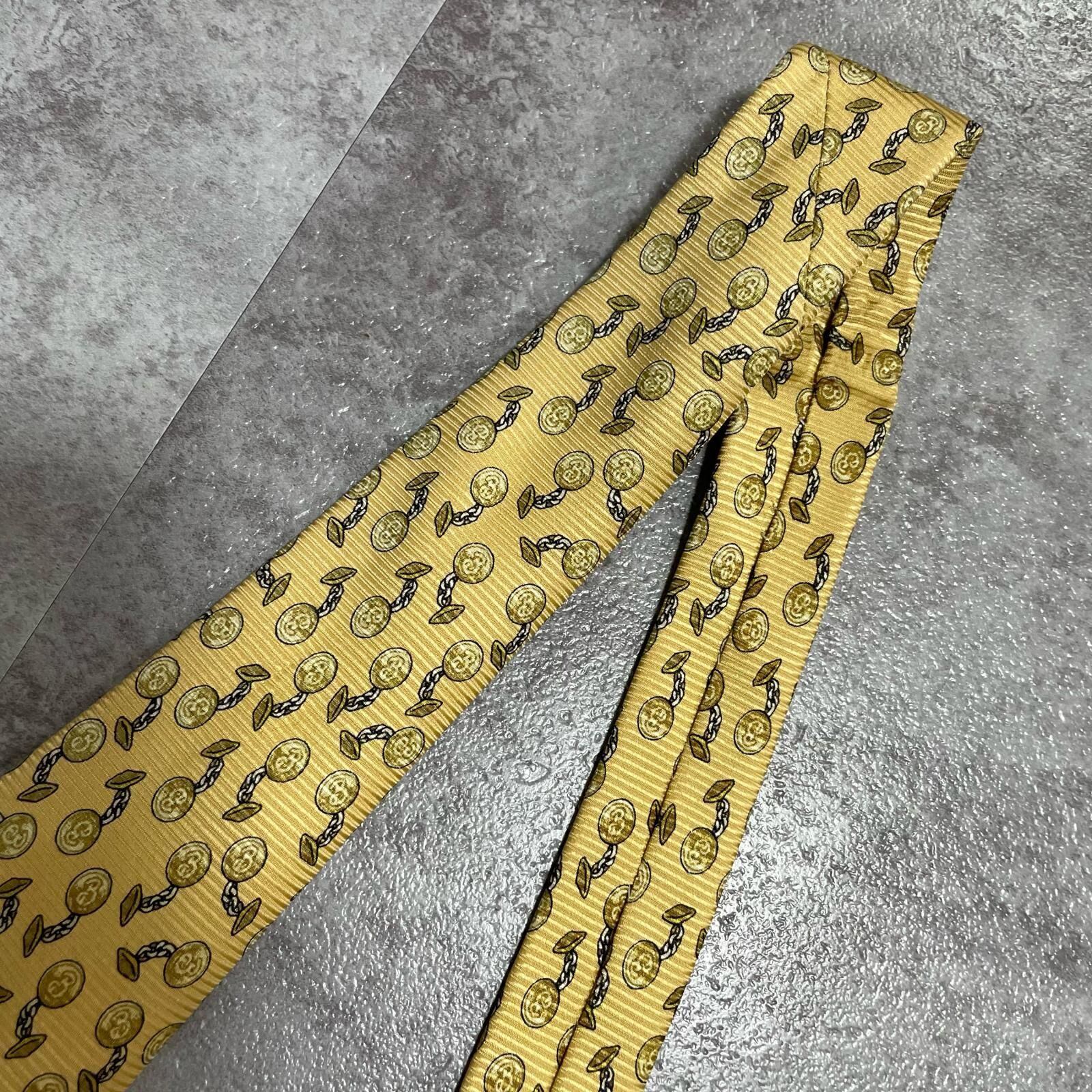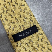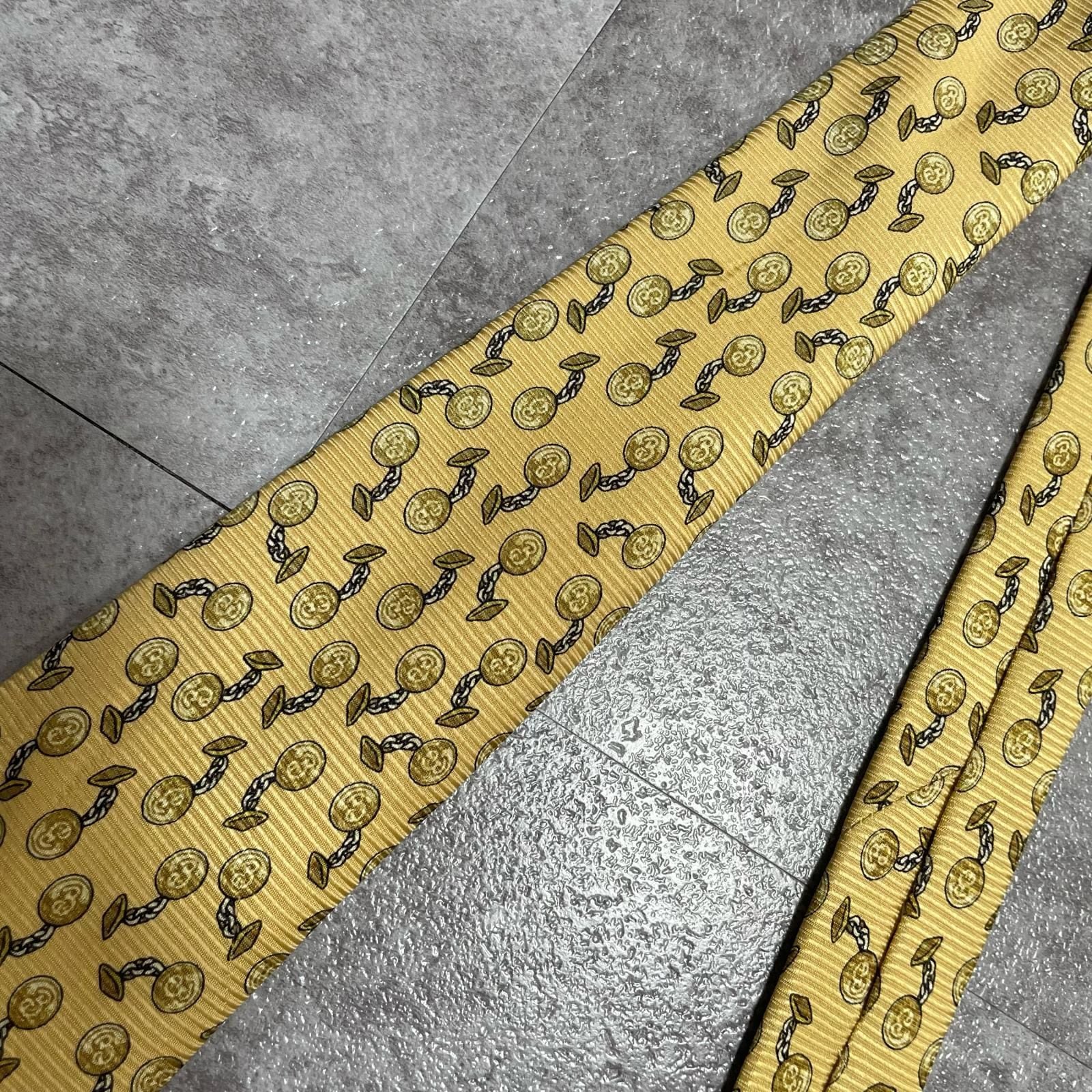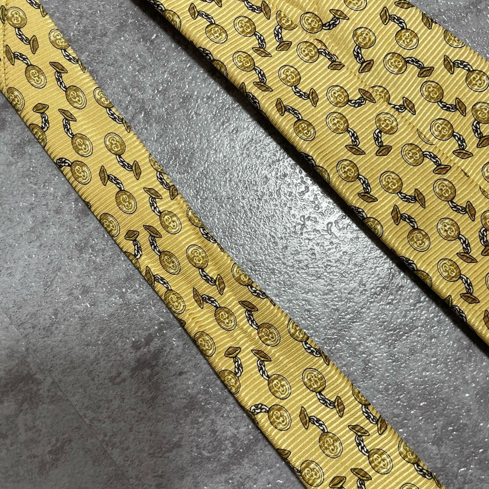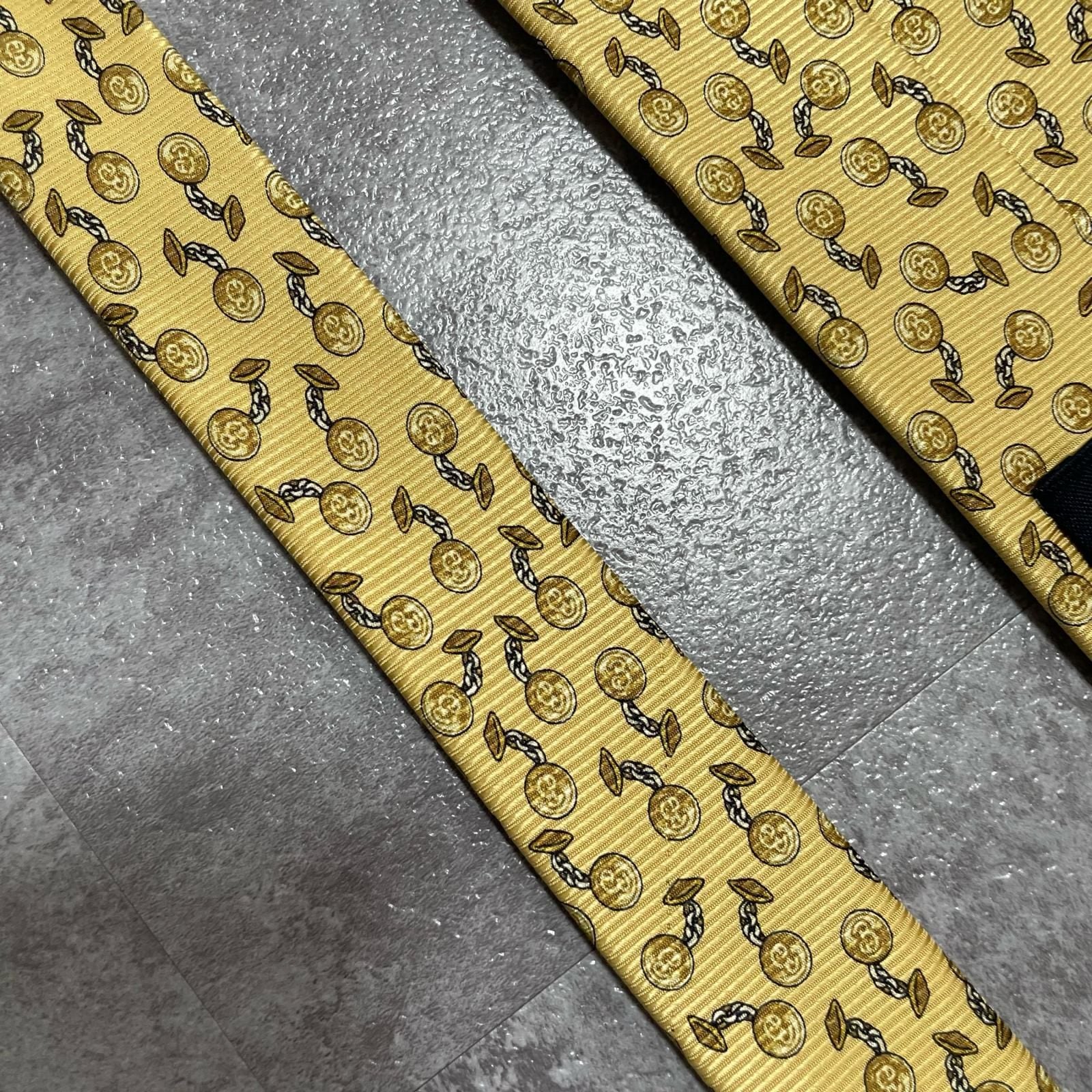 【BURBERRY】バーバリー チェーンコイン総柄 シルクネクタイ シルク100% メンズ 日本製 イエロー 黄色 コインモチーフ チェーン柄 総柄 クラシック ビジネス フォーマル