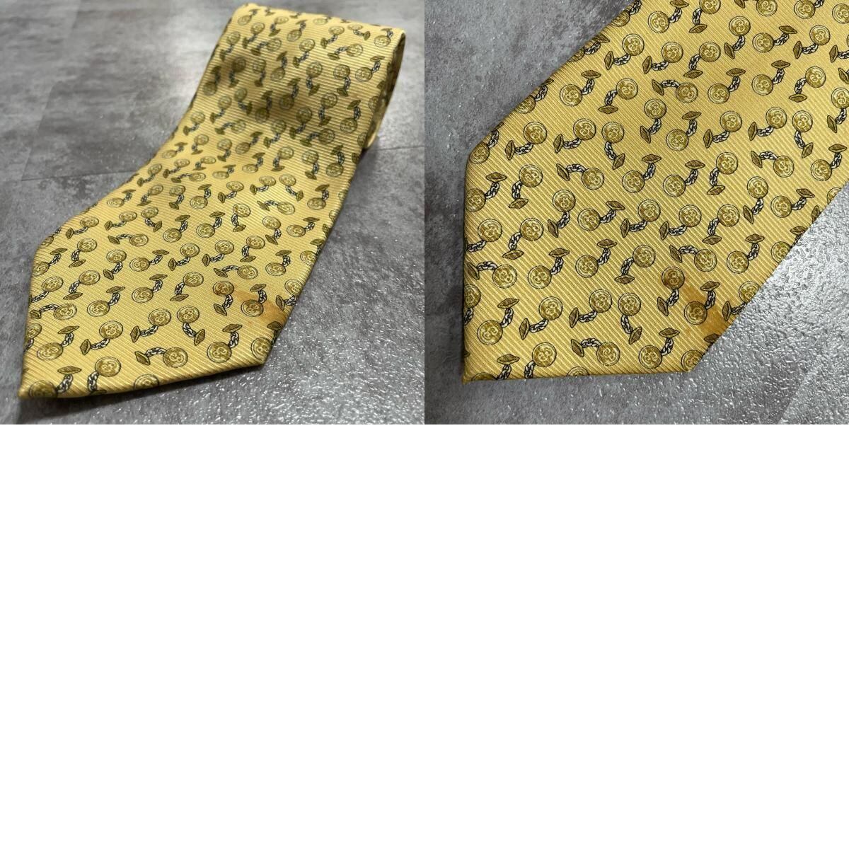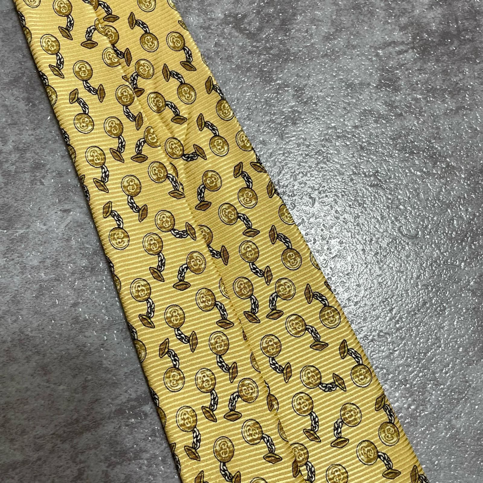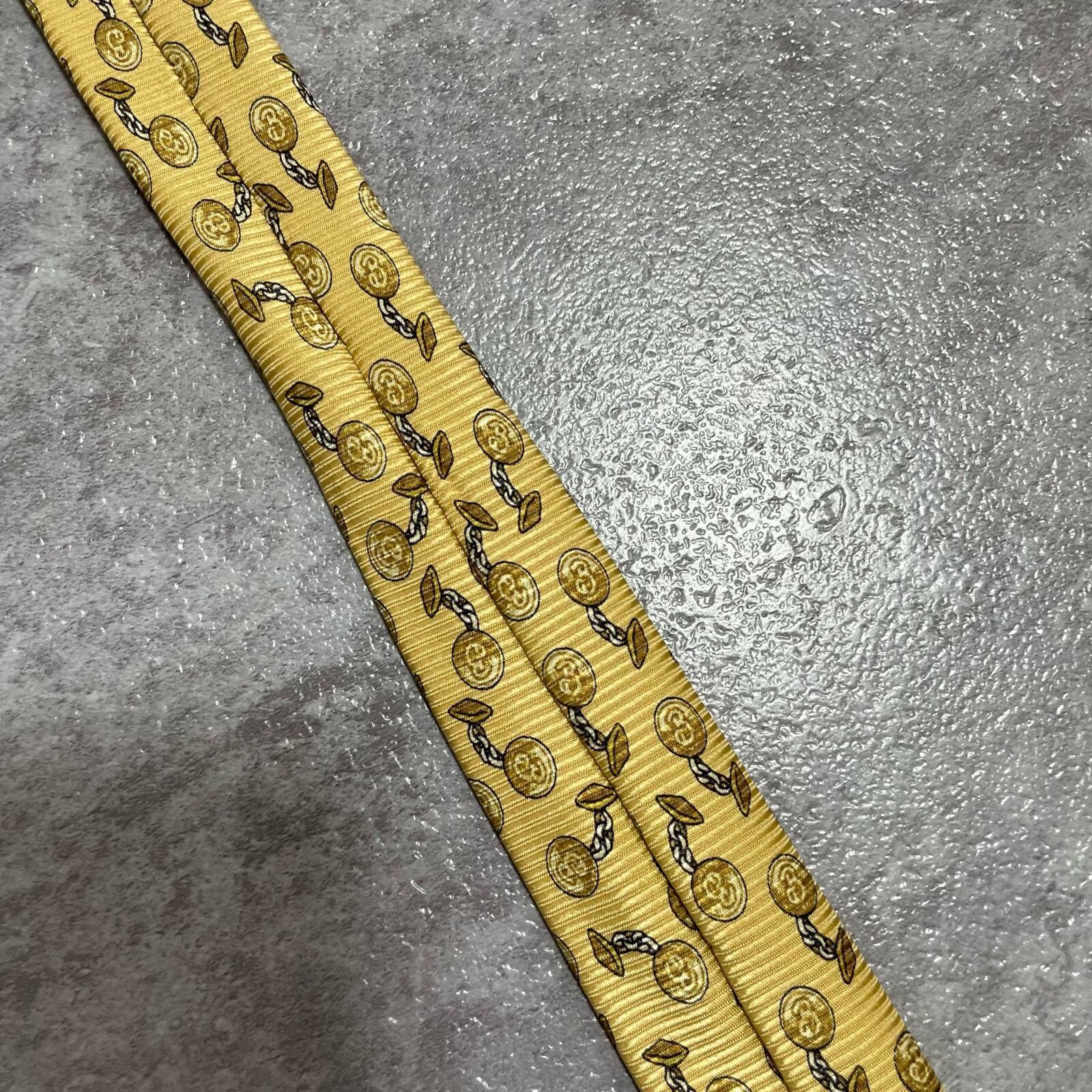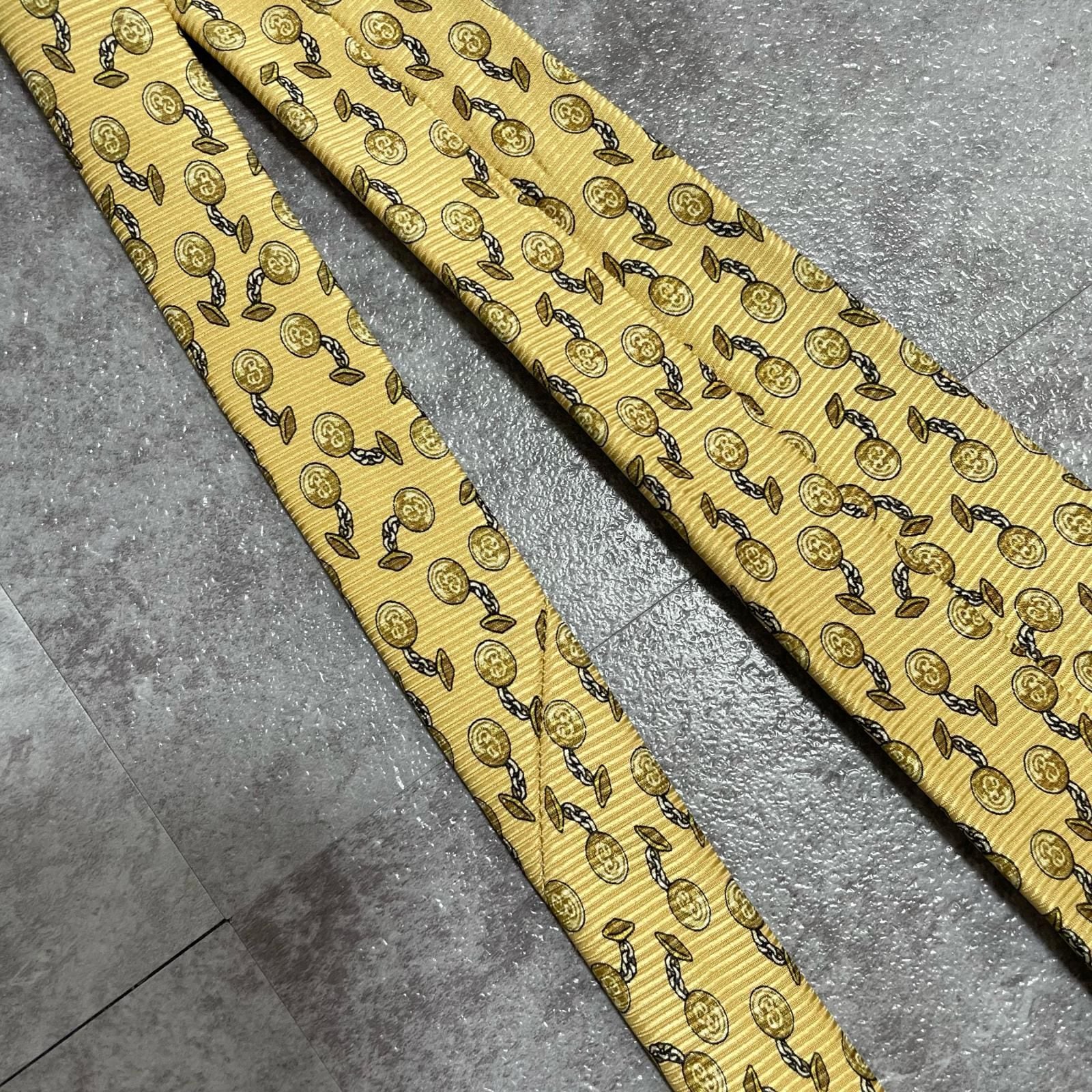 【BURBERRY】バーバリー チェーンコイン総柄 シルクネクタイ シルク100% メンズ 日本製 イエロー 黄色 コインモチーフ チェーン柄 総柄 クラシック ビジネス フォーマル