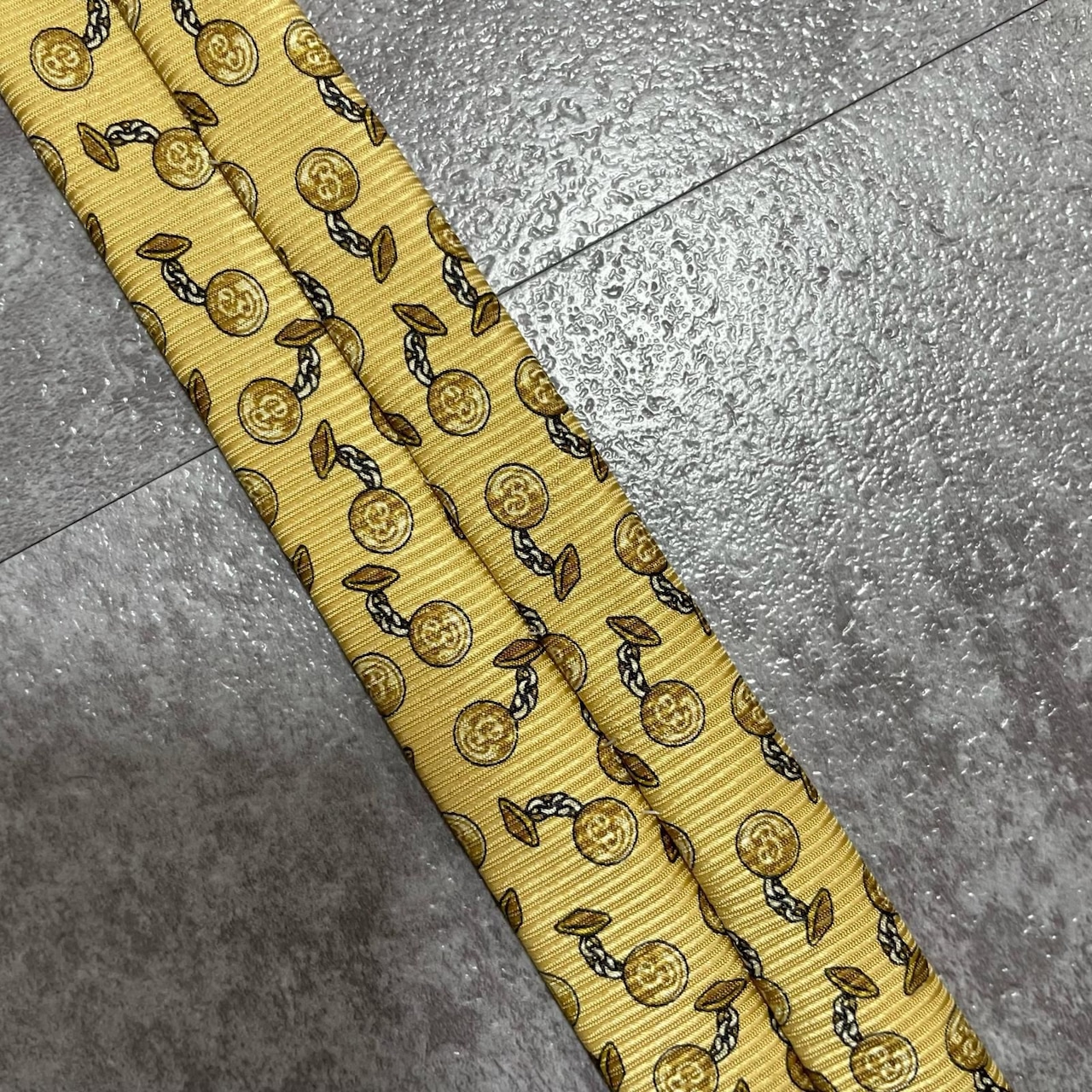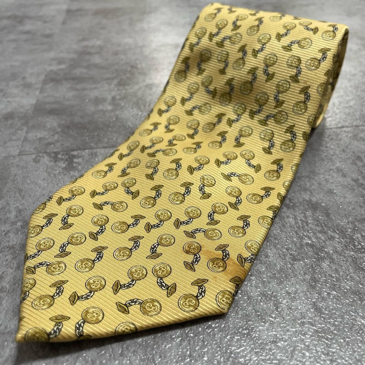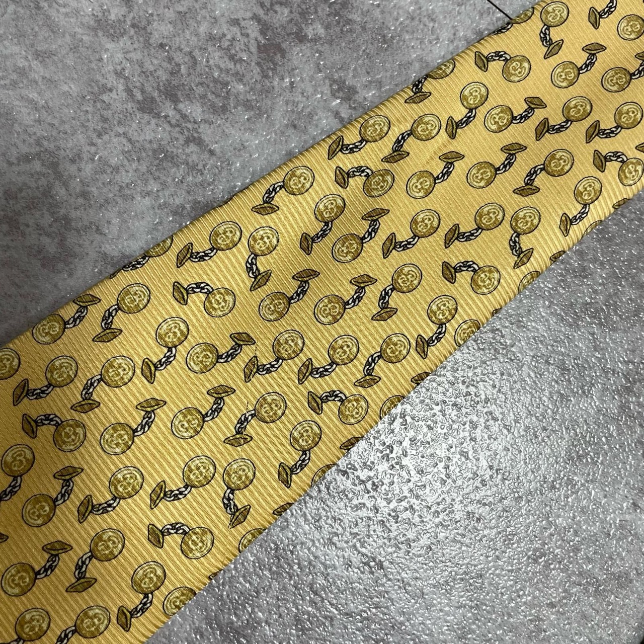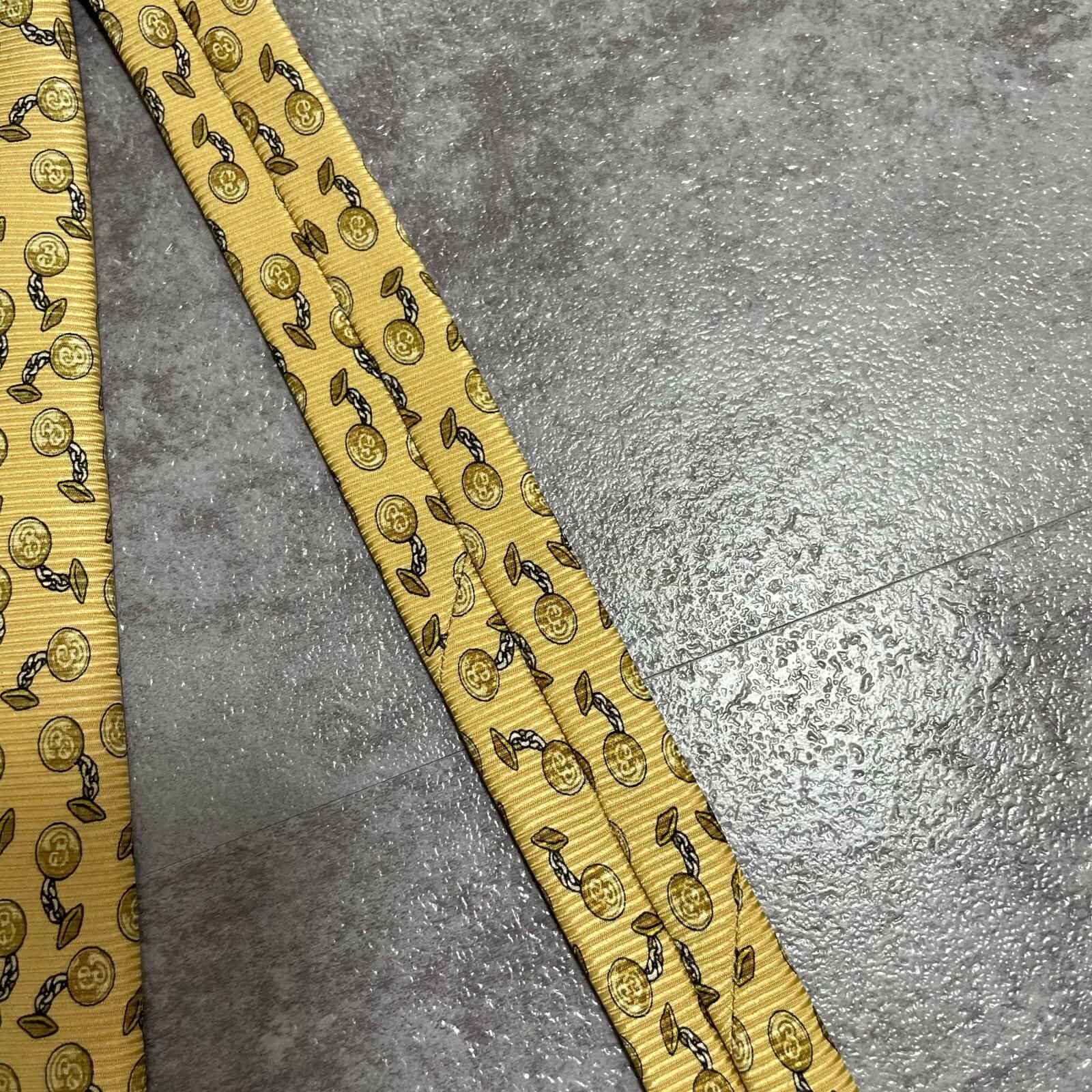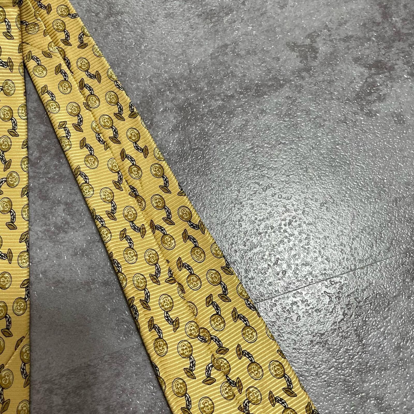 【BURBERRY】バーバリー チェーンコイン総柄 シルクネクタイ シルク100% メンズ 日本製 イエロー 黄色 コインモチーフ チェーン柄 総柄 クラシック ビジネス フォーマル
