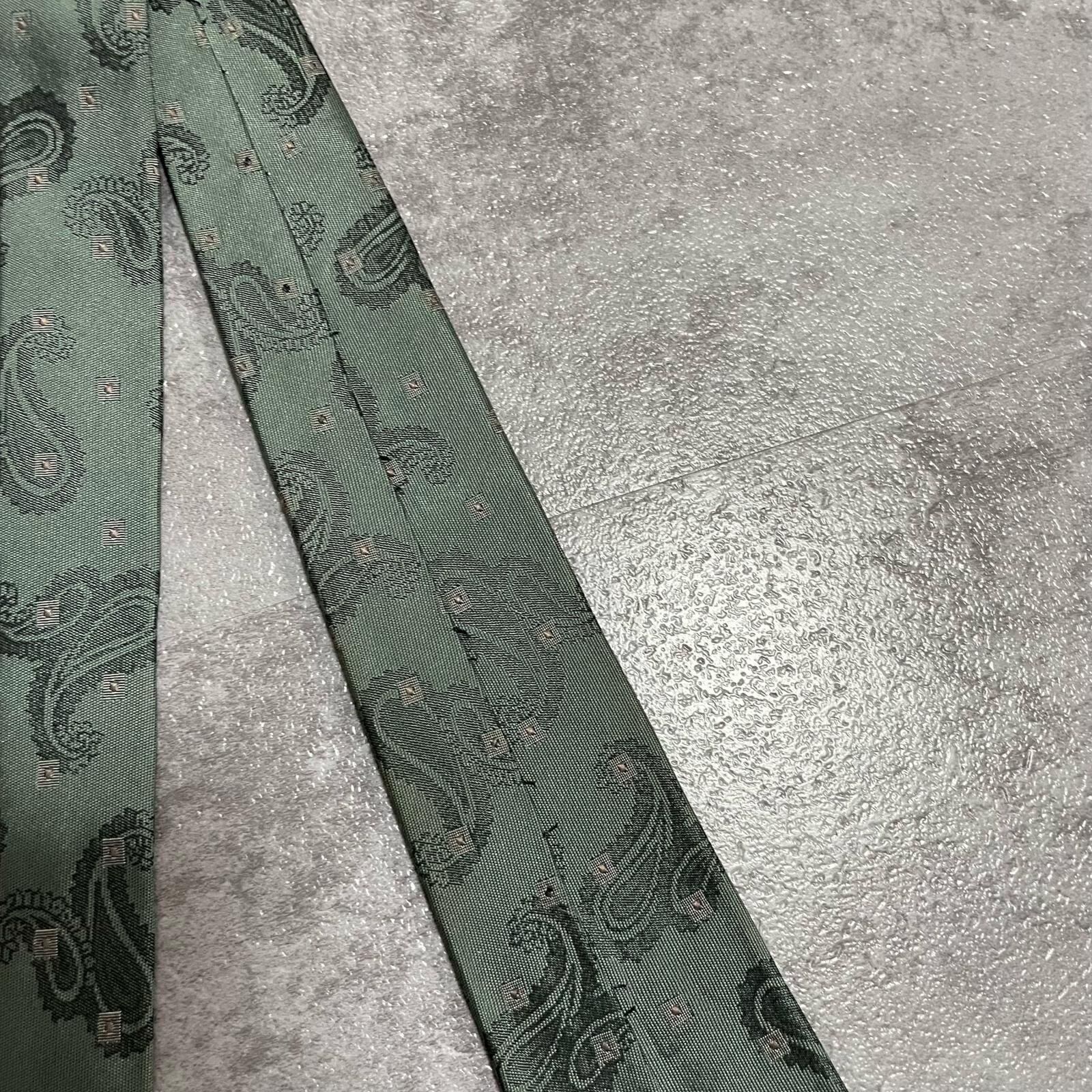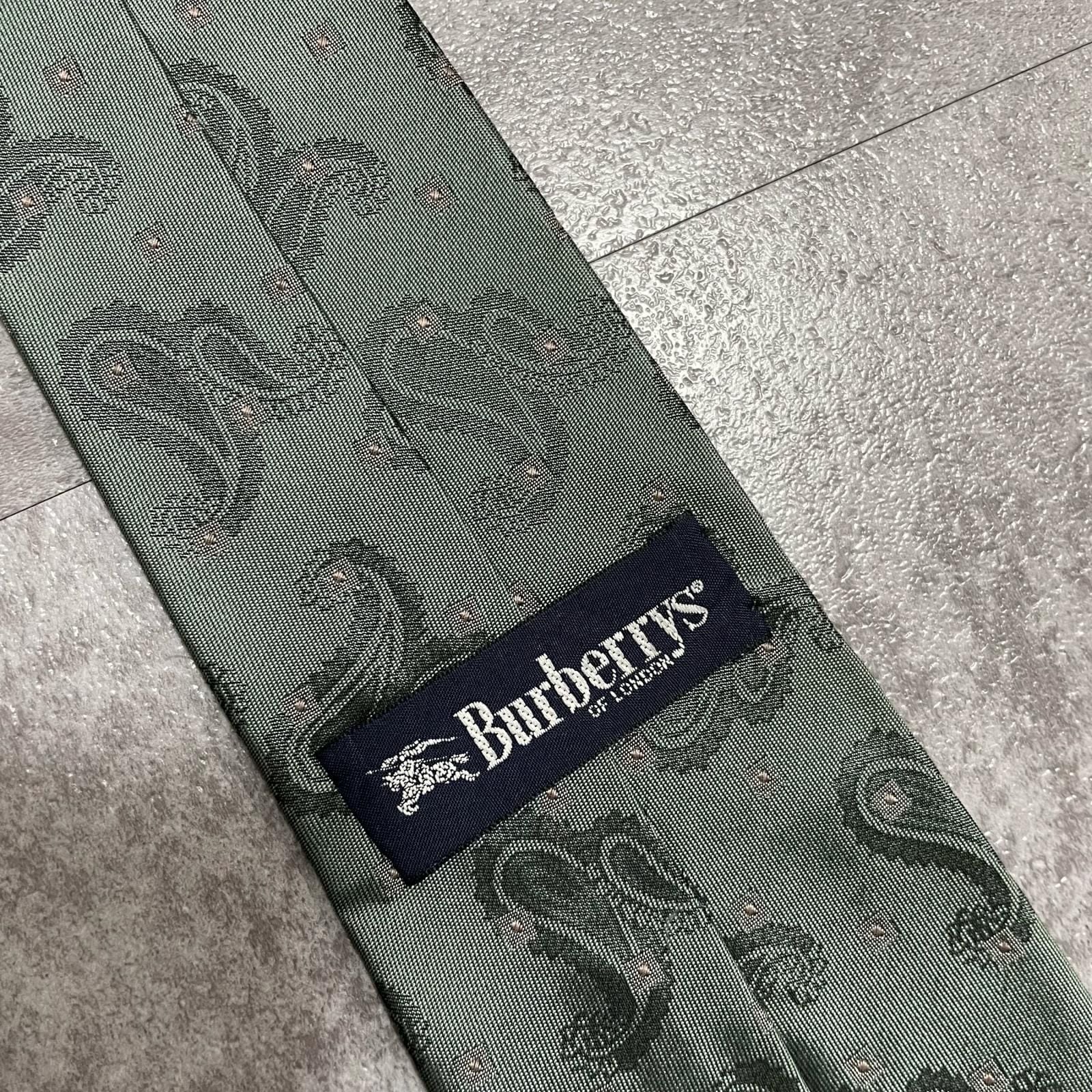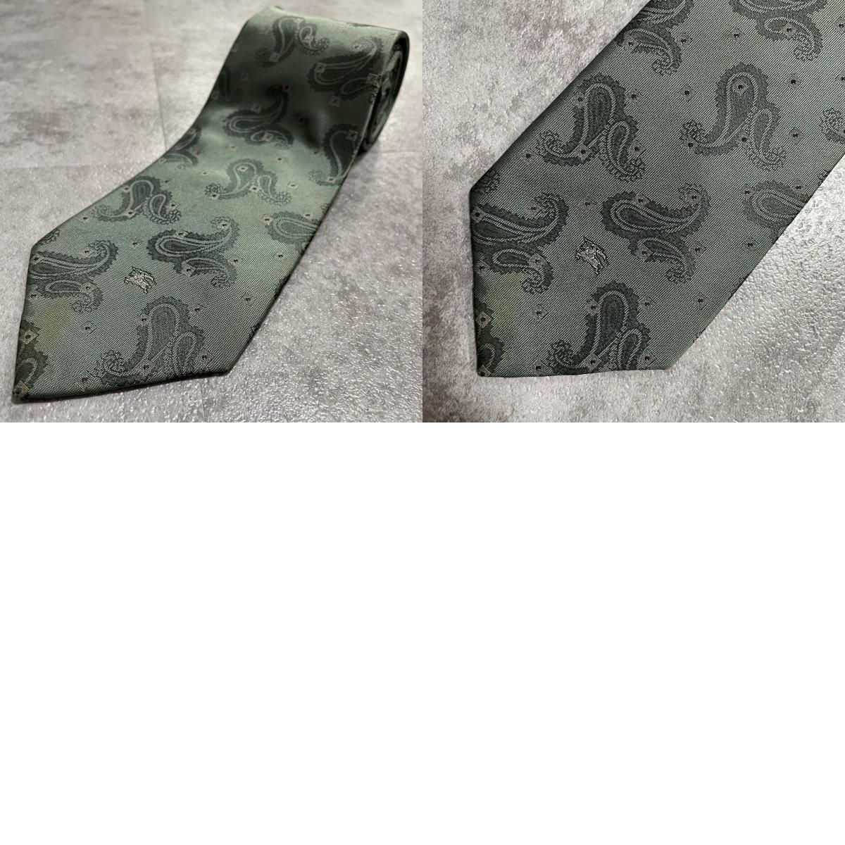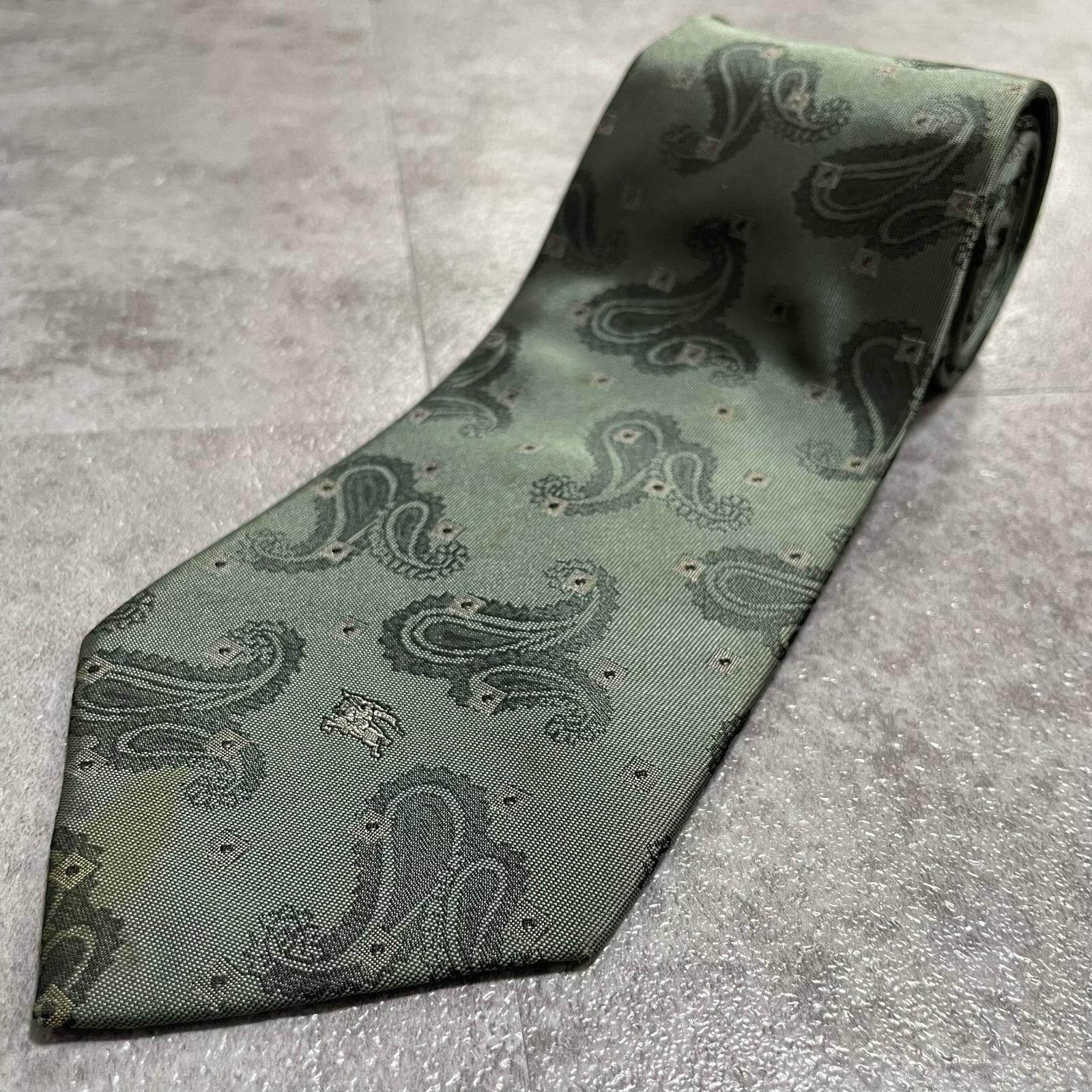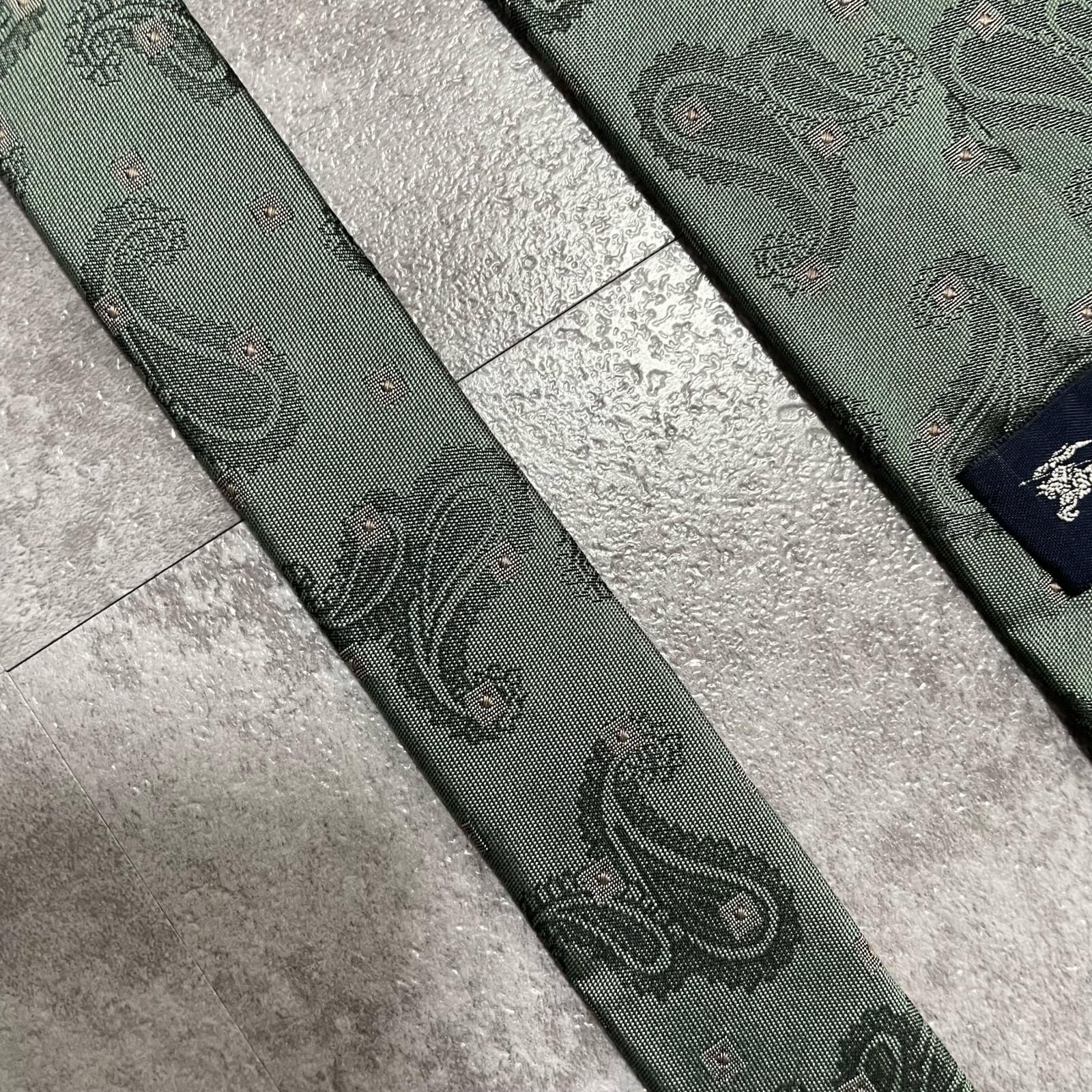 【BURBERRY】バーバリー ロゴ入りペイズリー柄 シルクネクタイ シルク100% メンズ 日本製 グリーン 緑色 ナイトロゴ ホースロゴ ワンポイント 総柄 クラシック ビジネス フォーマル